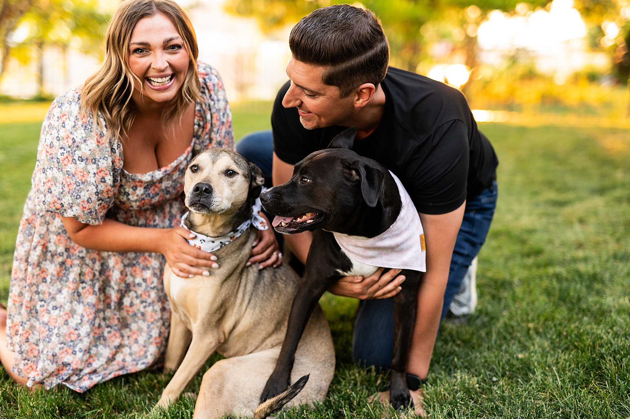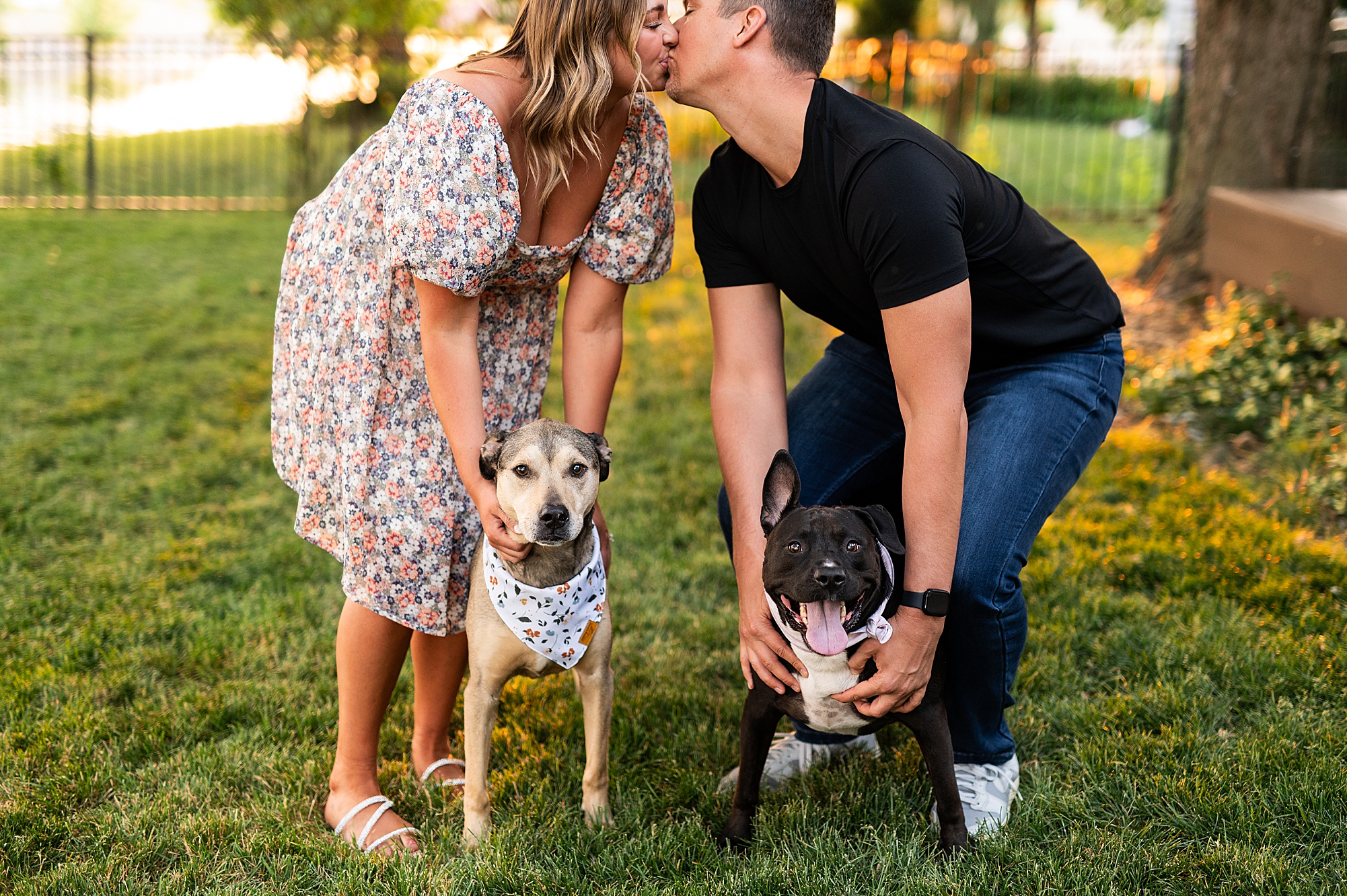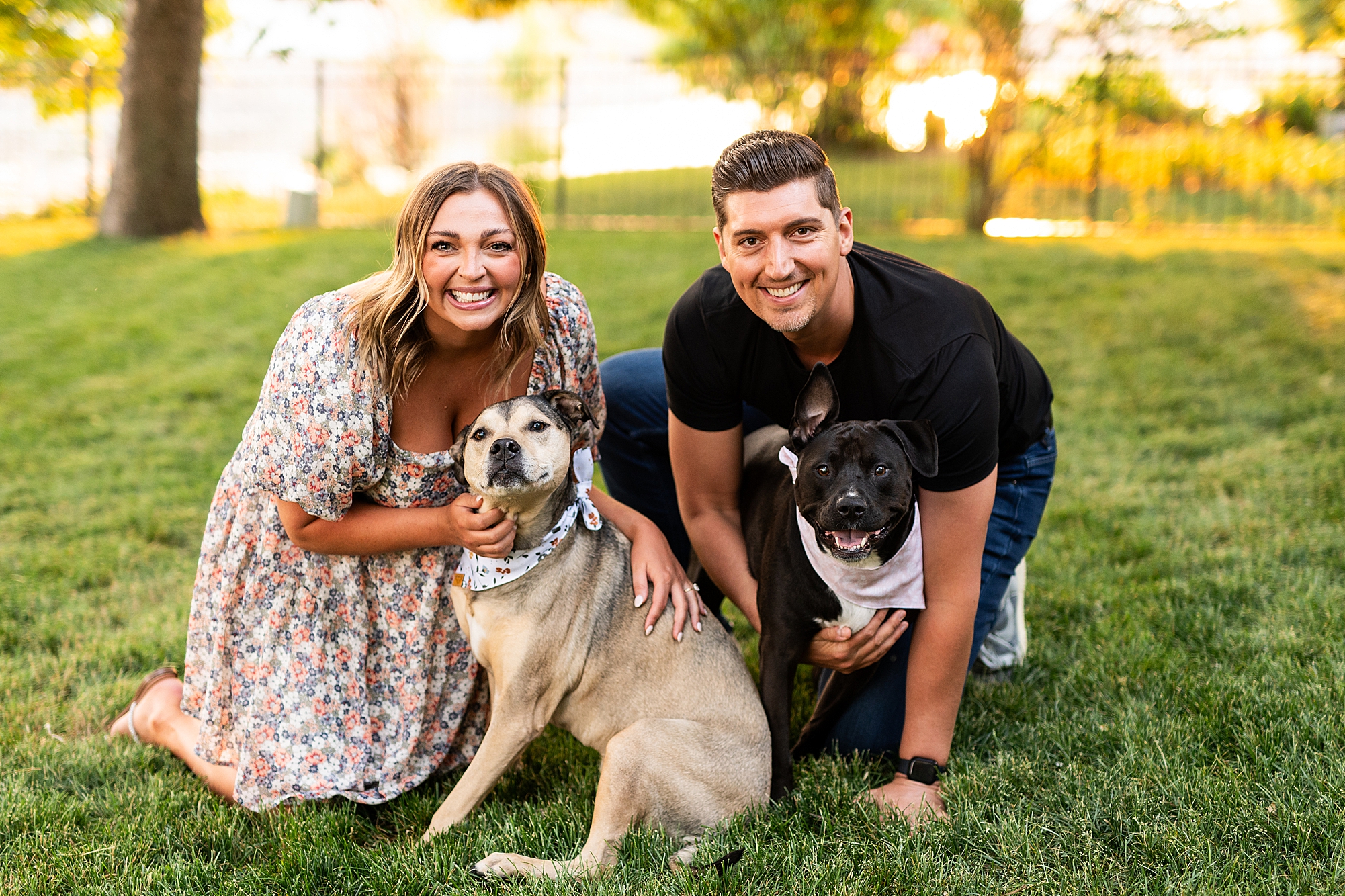 I am so glad to have met such a sweet couple like Kelli and Kyle. They are so perfect together and I loved travel to their home to capture their engagement session! This summer we met at a park near their home and I got them in front of my lens being so cute and making each other laugh. Their personalities mesh so well together and I loved watching them interact. Afterwards we headed to their home where Kelli whipped up some cocktails for us and we captured them with their adorable pups in one of their favorite places to spend tome together—their backyard. I loved everything about Kelli and Kyle’s engagement session—their smiles, the special locations and of course their pups. I cannot wait for their intimate wedding day next year and to celebrate them tying the knot!