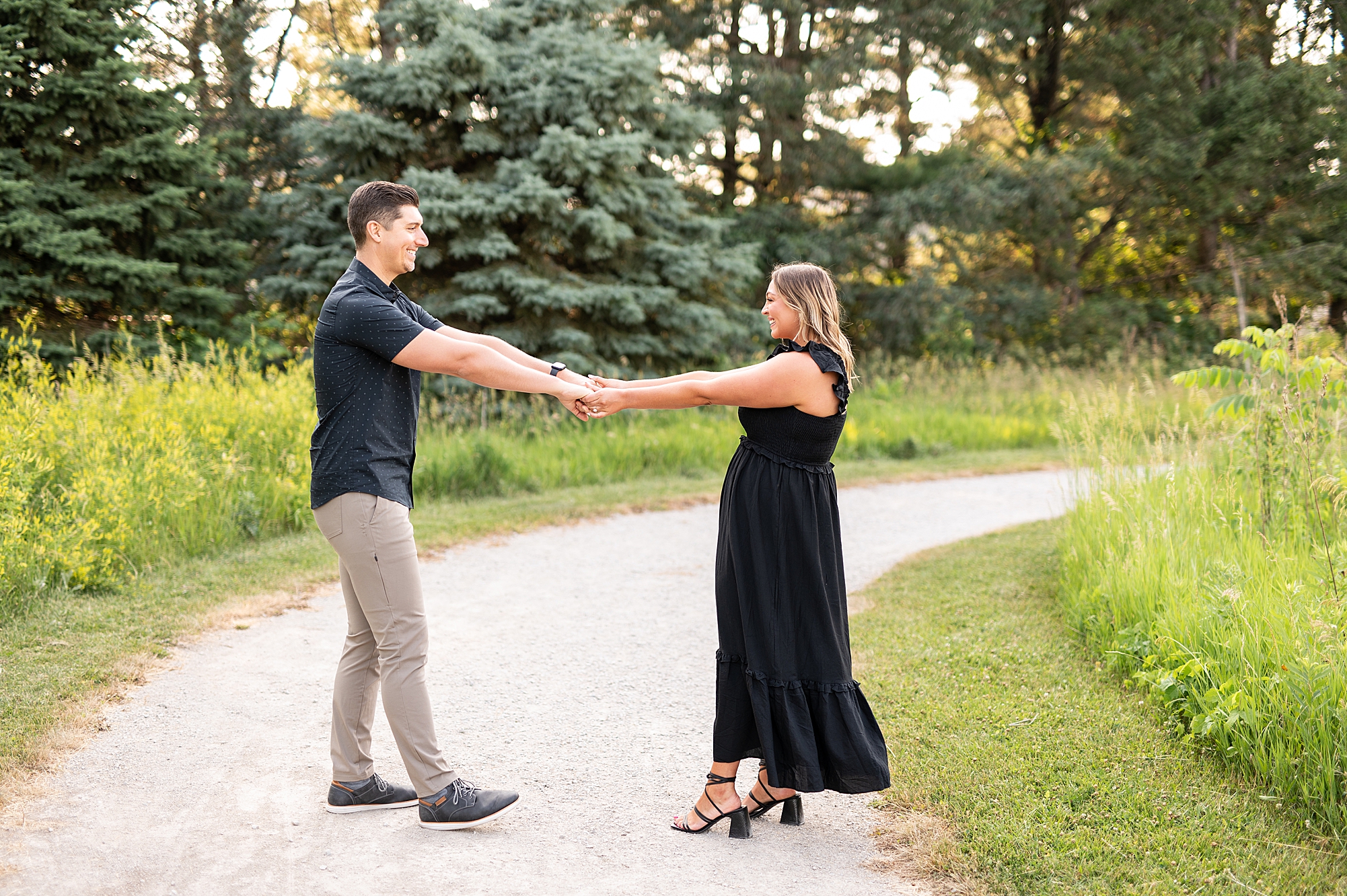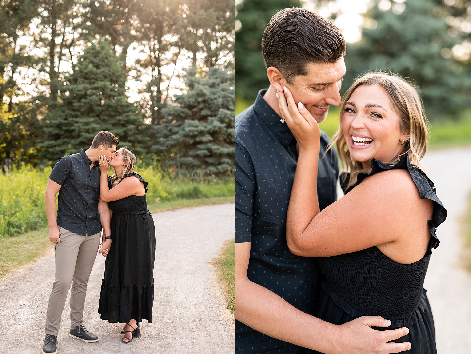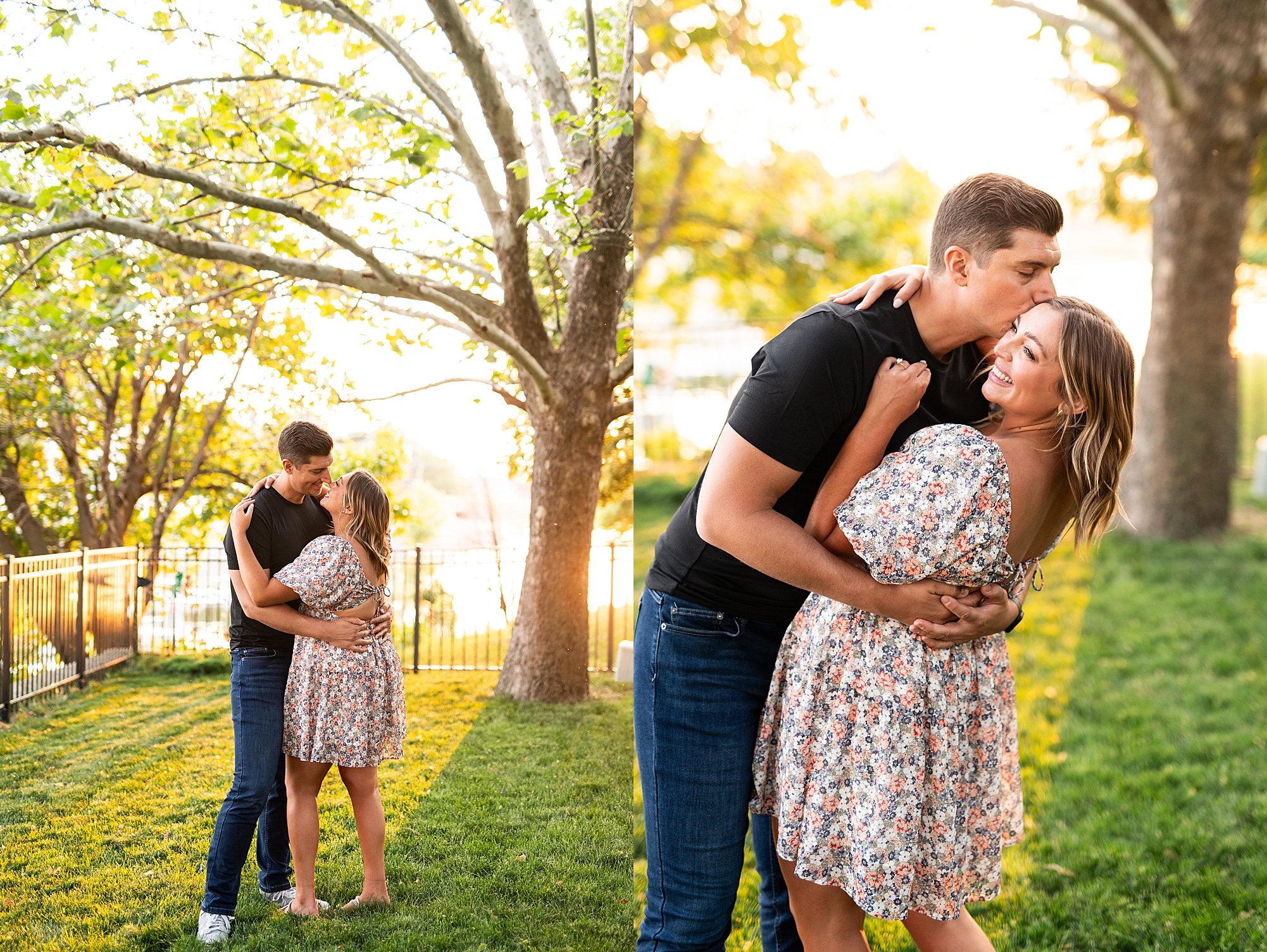I am so glad to have met such a sweet couple like Kelli and Kyle. They are so perfect together and I loved travel to their home to capture their engagement session! This summer we met at a park near their home and I got them in front of my lens being so cute and making each other laugh. Their personalities mesh so well together and I loved watching them interact. Afterwards we headed to their home where Kelli whipped up some cocktails for us and we captured them with their adorable pups in one of their favorite places to spend tome together—their backyard. I loved everything about Kelli and Kyle’s engagement session—their smiles, the special locations and of course their pups. I cannot wait for their intimate wedding day next year and to celebrate them tying the knot!