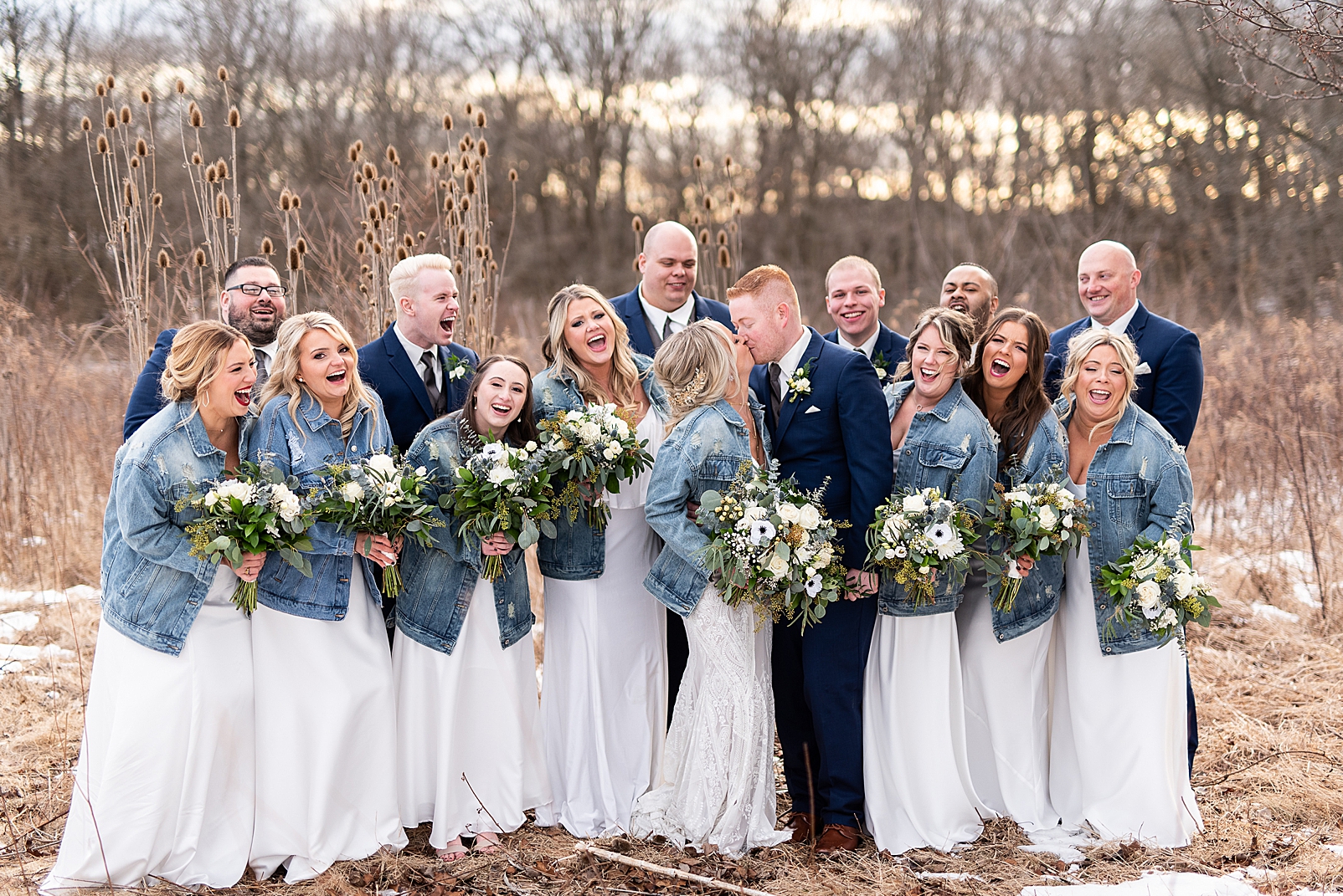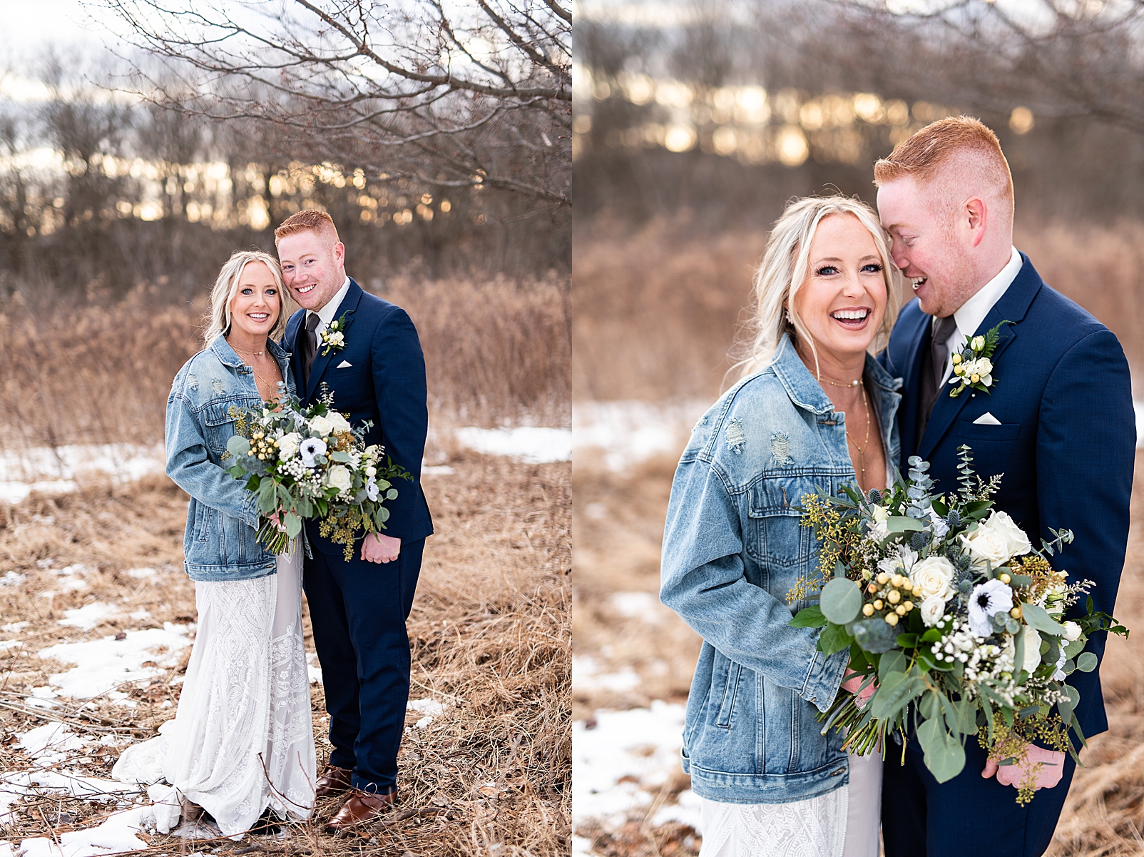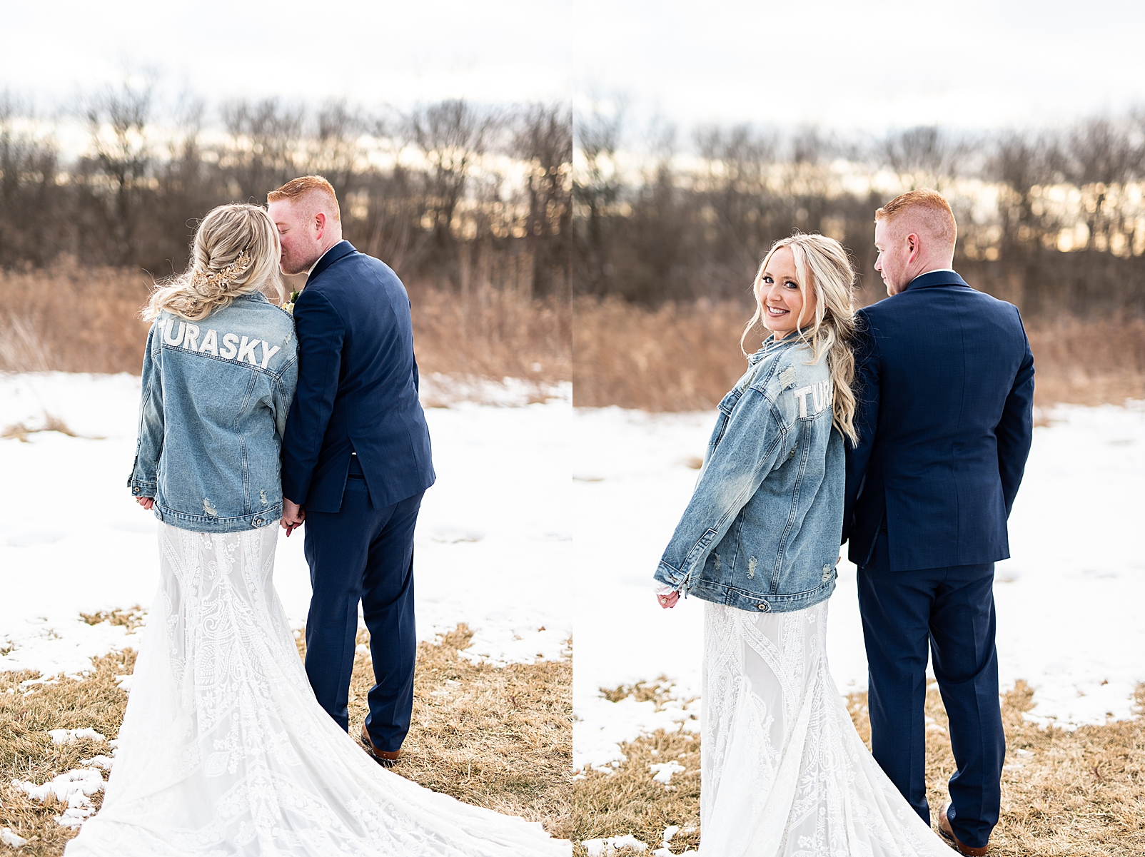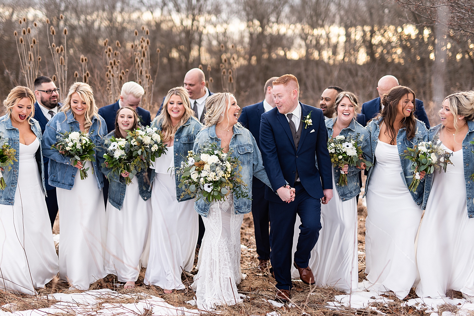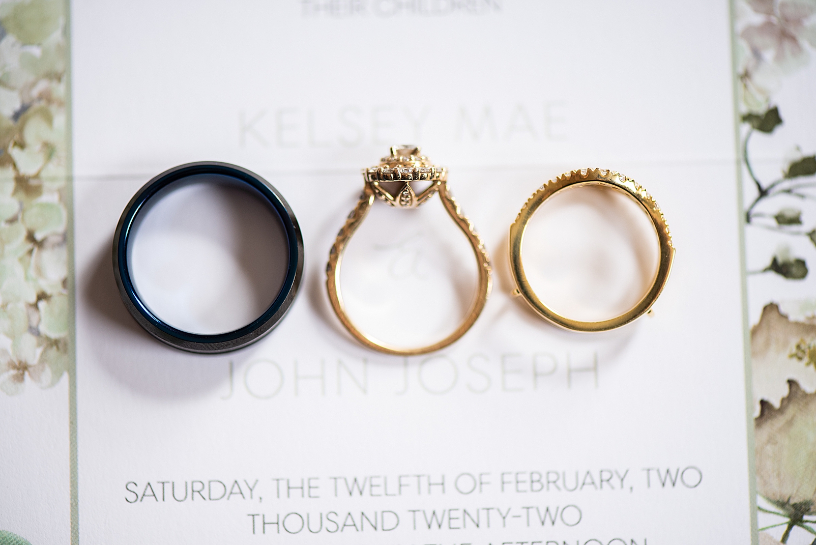 Kelsey and JT’s winter wedding was absolutely beautiful! Both of their birthdays are in February (one day apart) so when they got engaged, they immediately knew what month they wanted to get married. Kelsey was absolutely stunning in her custom wedding dress which had removable sleeves (such a gorgeous feature!). They were married in an intimate ceremony at Venue 1929 with just their closest family and friends in attendance. The temps were in the single digits most of the day, so the warm, inviting space was absolutely perfect. Kelsey and JT prepared beautiful, handwritten vows and read them to each other before exchanging rings and finally sharing their first kiss as husband and wife. Lydia (my amazing videography partner) had so much fun capturing the newlyweds after the ceremony. Their sweet pup, Wrigley even joined for some photos along with their bridal party.