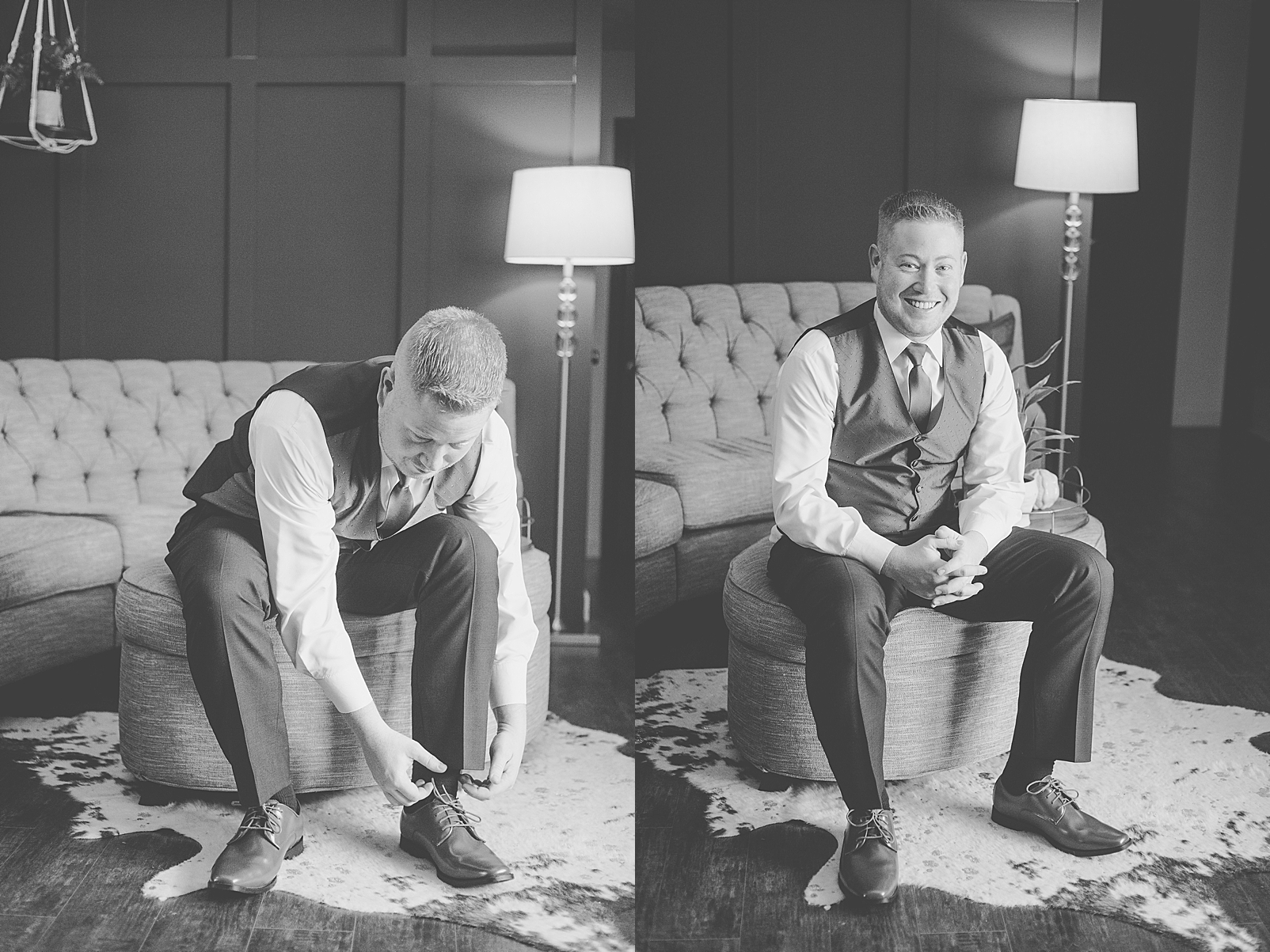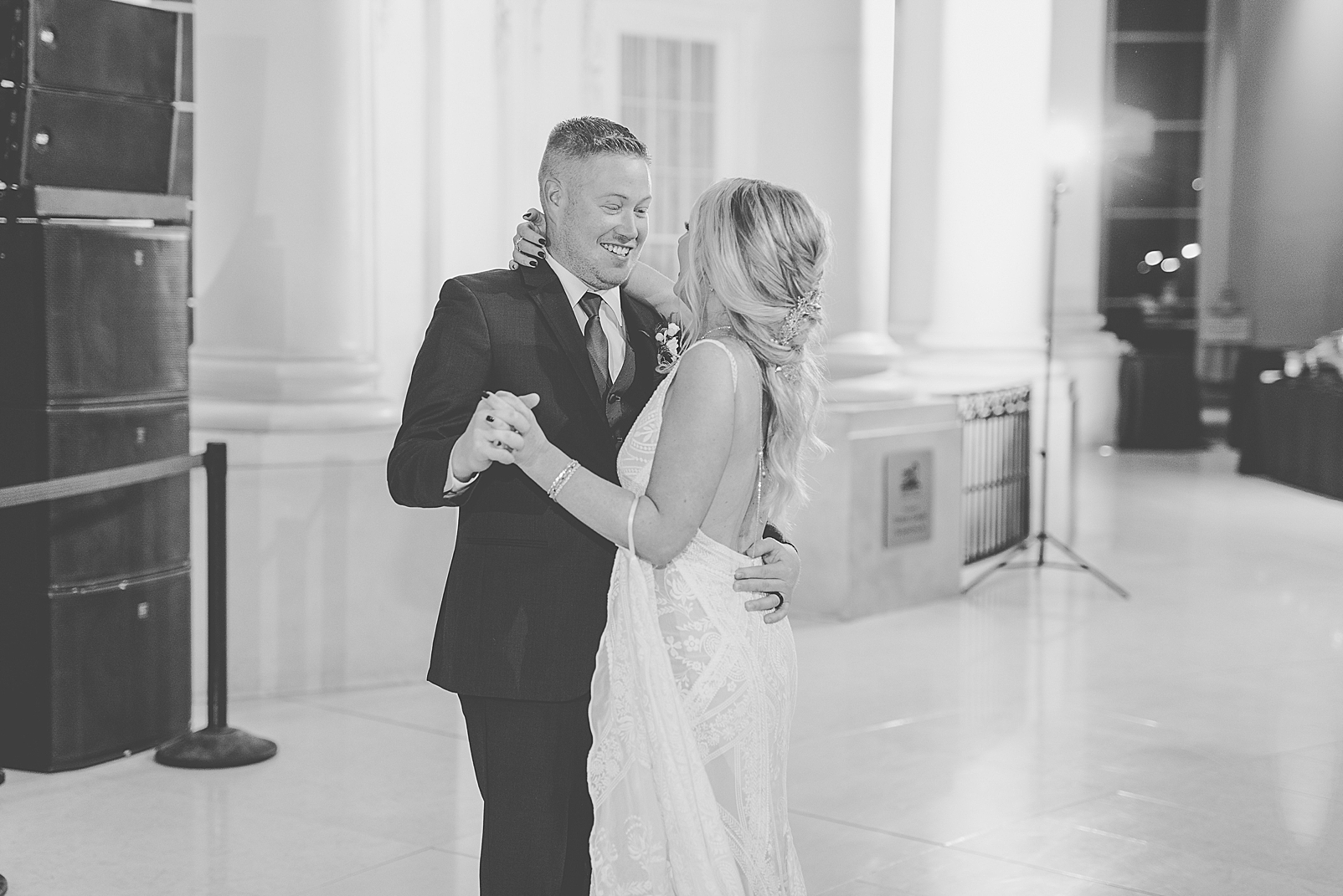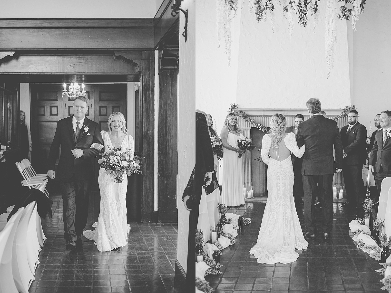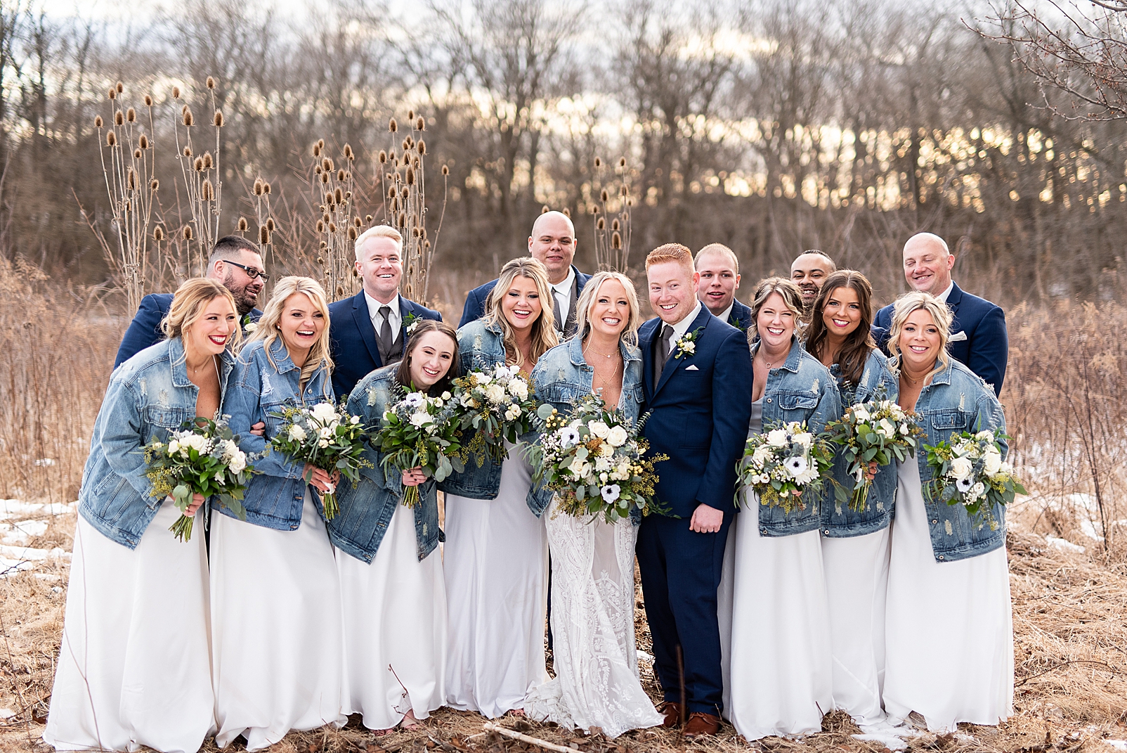 Kelsey and JT’s winter wedding was absolutely beautiful! Both of their birthdays are in February (one day apart) so when they got engaged, they immediately knew what month they wanted to get married. Kelsey was absolutely stunning in her custom wedding dress which had removable sleeves (such a gorgeous feature!). They were married in an intimate ceremony at Venue 1929 with just their closest family and friends in attendance. The temps were in the single digits most of the day, so the warm, inviting space was absolutely perfect. Kelsey and JT prepared beautiful, handwritten vows and read them to each other before exchanging rings and finally sharing their first kiss as husband and wife. Lydia (my amazing videography partner) had so much fun capturing the newlyweds after the ceremony. Their sweet pup, Wrigley even joined for some photos along with their bridal party.