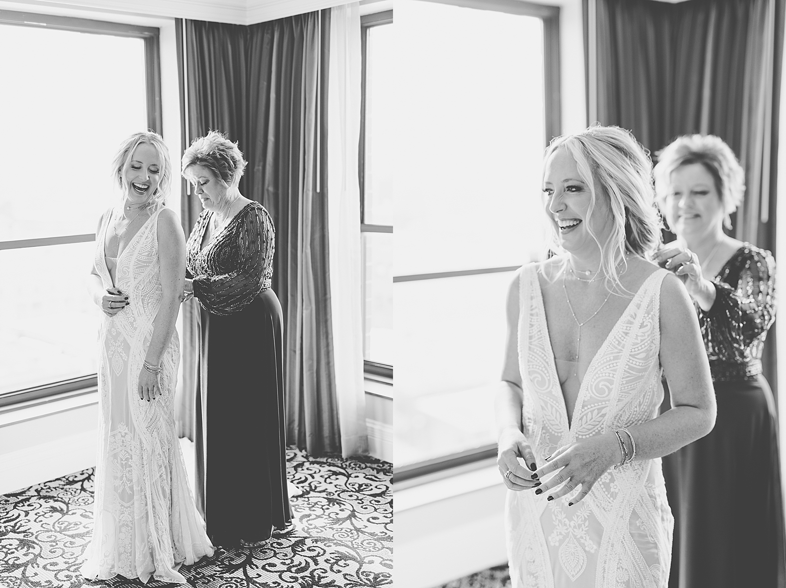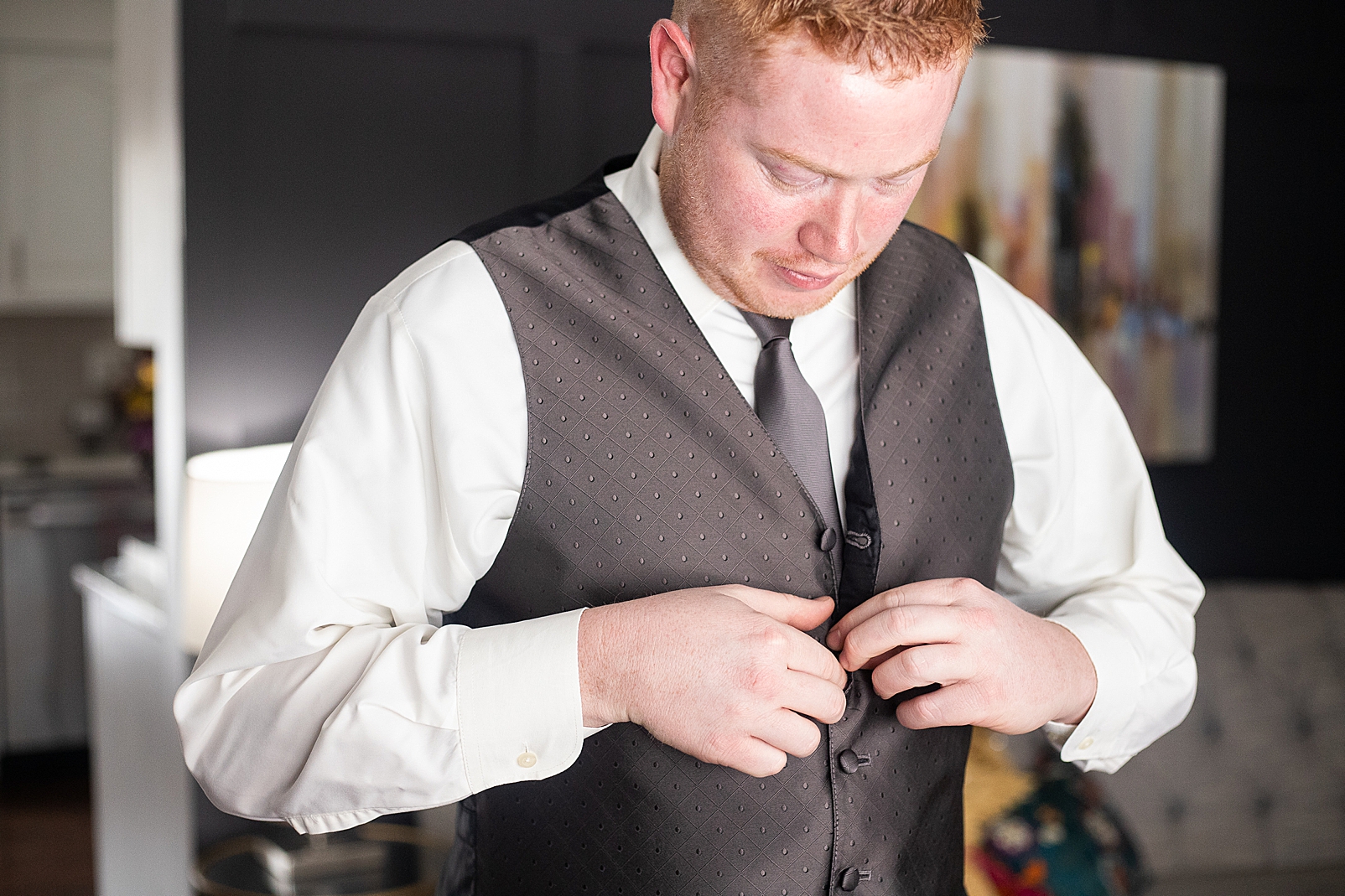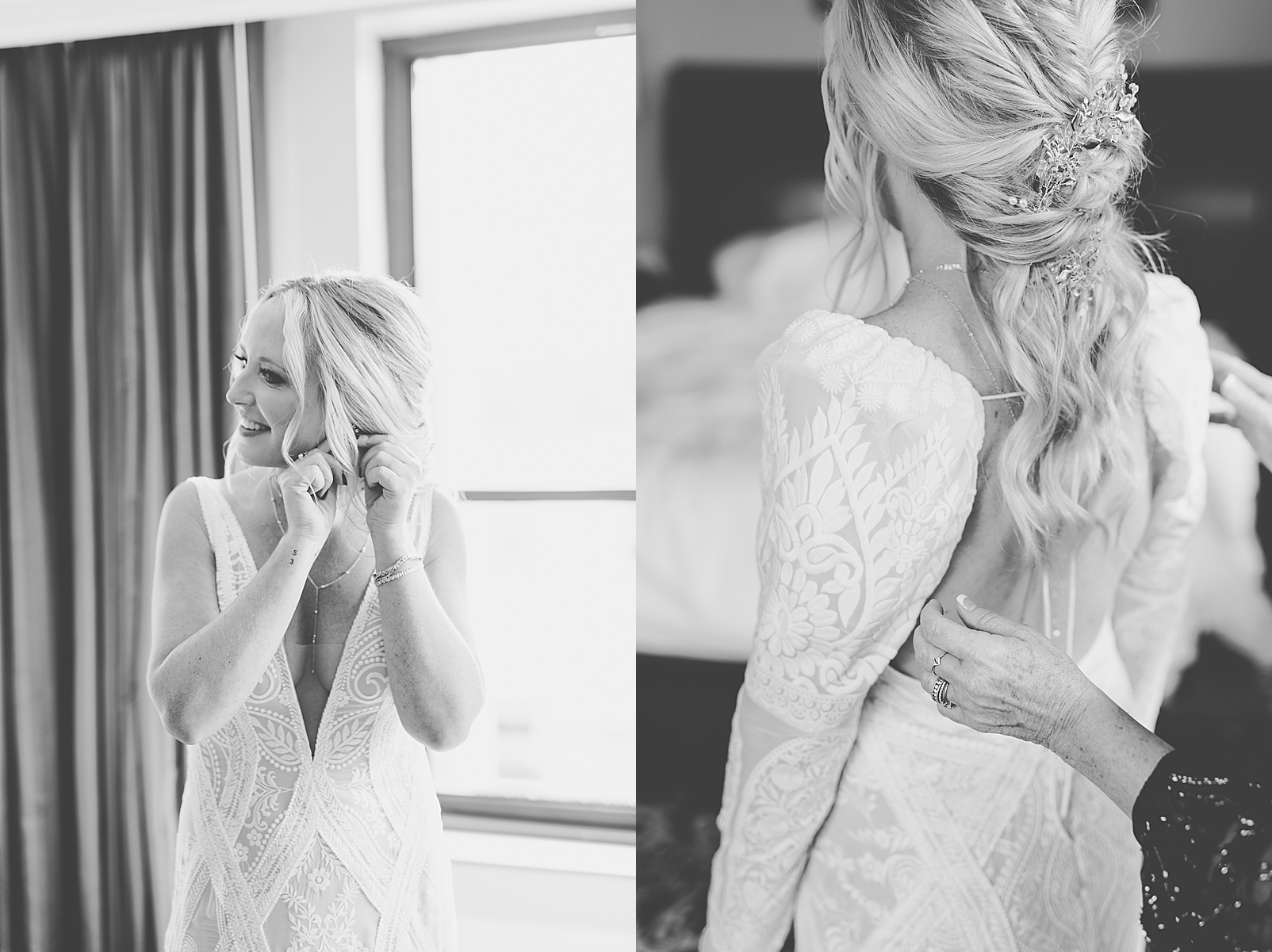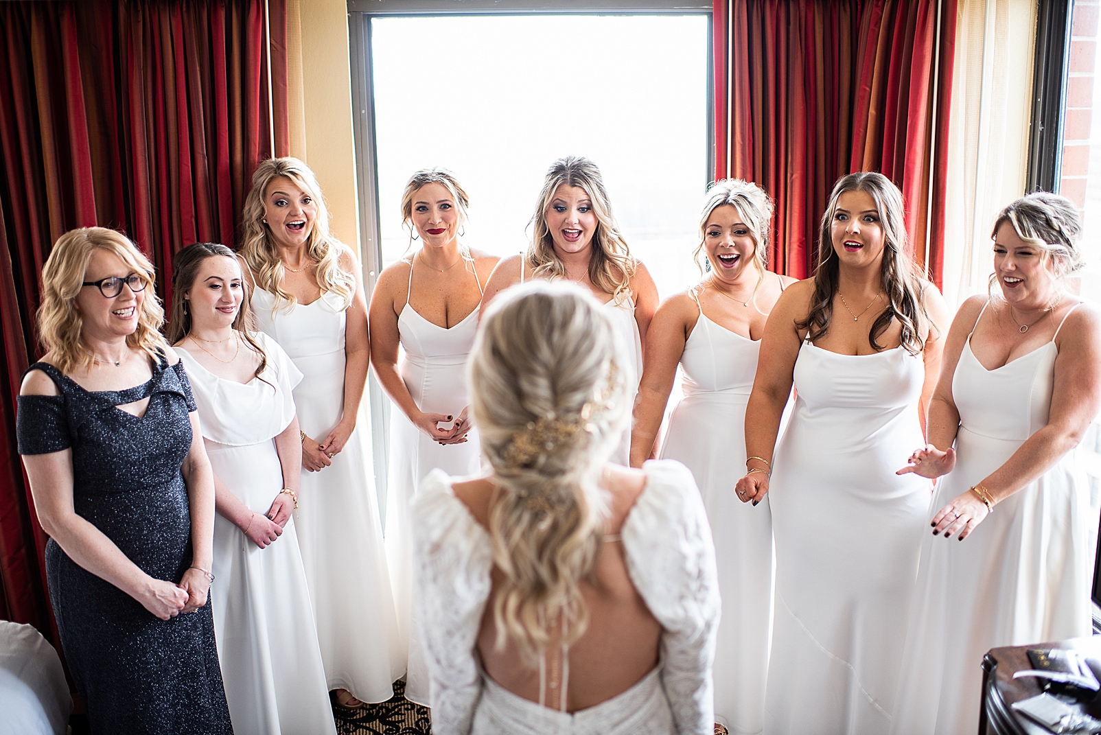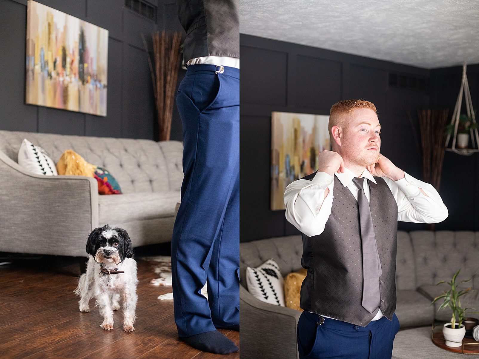 Kelsey and JT’s winter wedding was absolutely beautiful! Both of their birthdays are in February (one day apart) so when they got engaged, they immediately knew what month they wanted to get married. Kelsey was absolutely stunning in her custom wedding dress which had removable sleeves (such a gorgeous feature!). They were married in an intimate ceremony at Venue 1929 with just their closest family and friends in attendance. The temps were in the single digits most of the day, so the warm, inviting space was absolutely perfect. Kelsey and JT prepared beautiful, handwritten vows and read them to each other before exchanging rings and finally sharing their first kiss as husband and wife. Lydia (my amazing videography partner) had so much fun capturing the newlyweds after the ceremony. Their sweet pup, Wrigley even joined for some photos along with their bridal party.