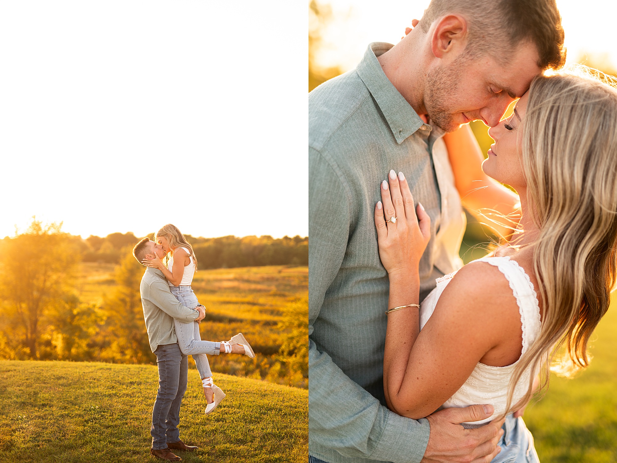 I had such a great time capturing Will and Kelsey’s engagement session! This couple is so special to me and I was so excited and thankful when they got engaged and then reach out about me capturing this sweet time for them! We planned their engagement session at their favorite park where they spend lots of time with their fur child, Sunny girl! We climbed the giant hill too, where Will popped the question during a gorgeous sunset! It was truly such a beautiful evening and I cannot wait to capture their wedding day!