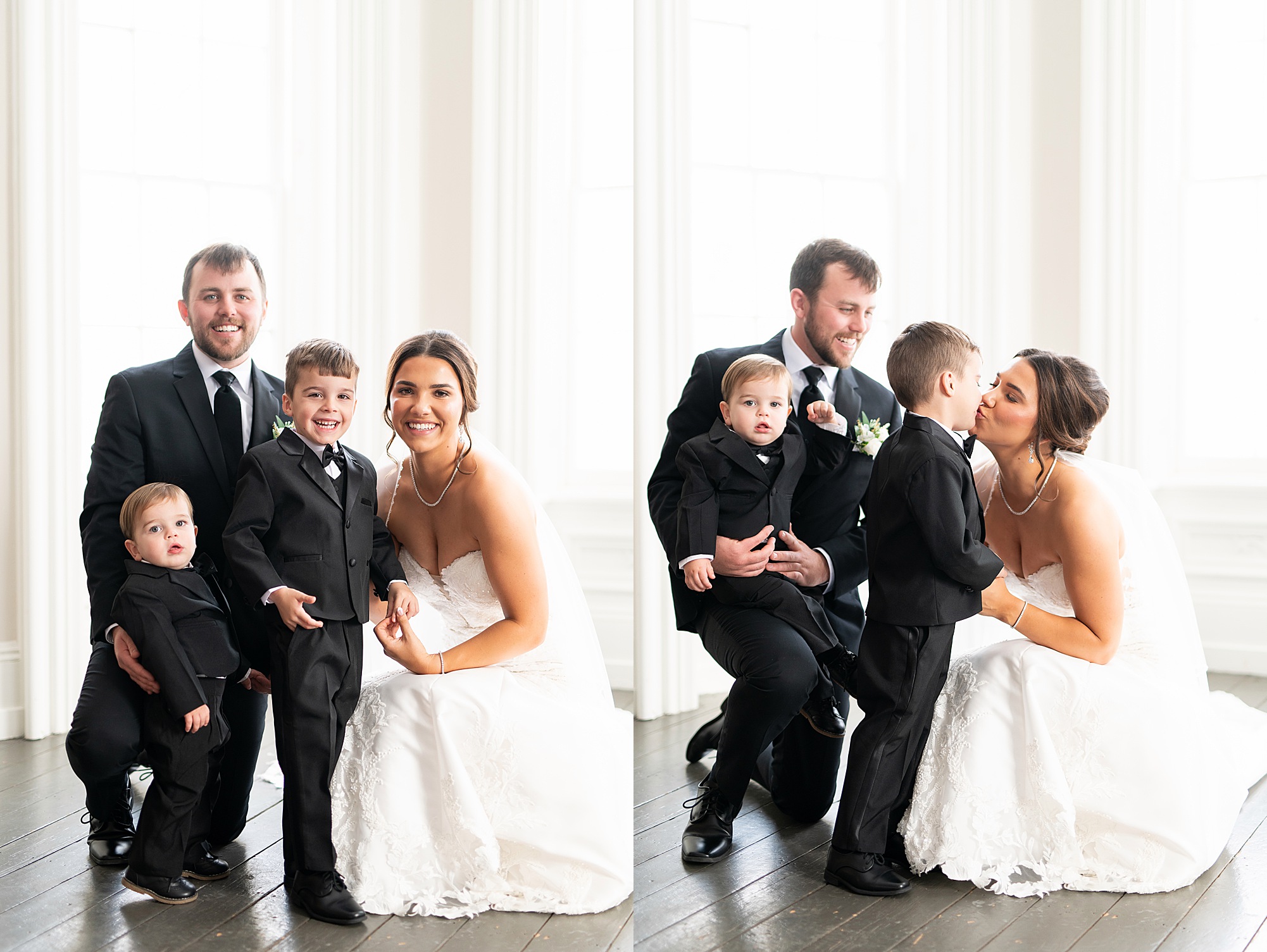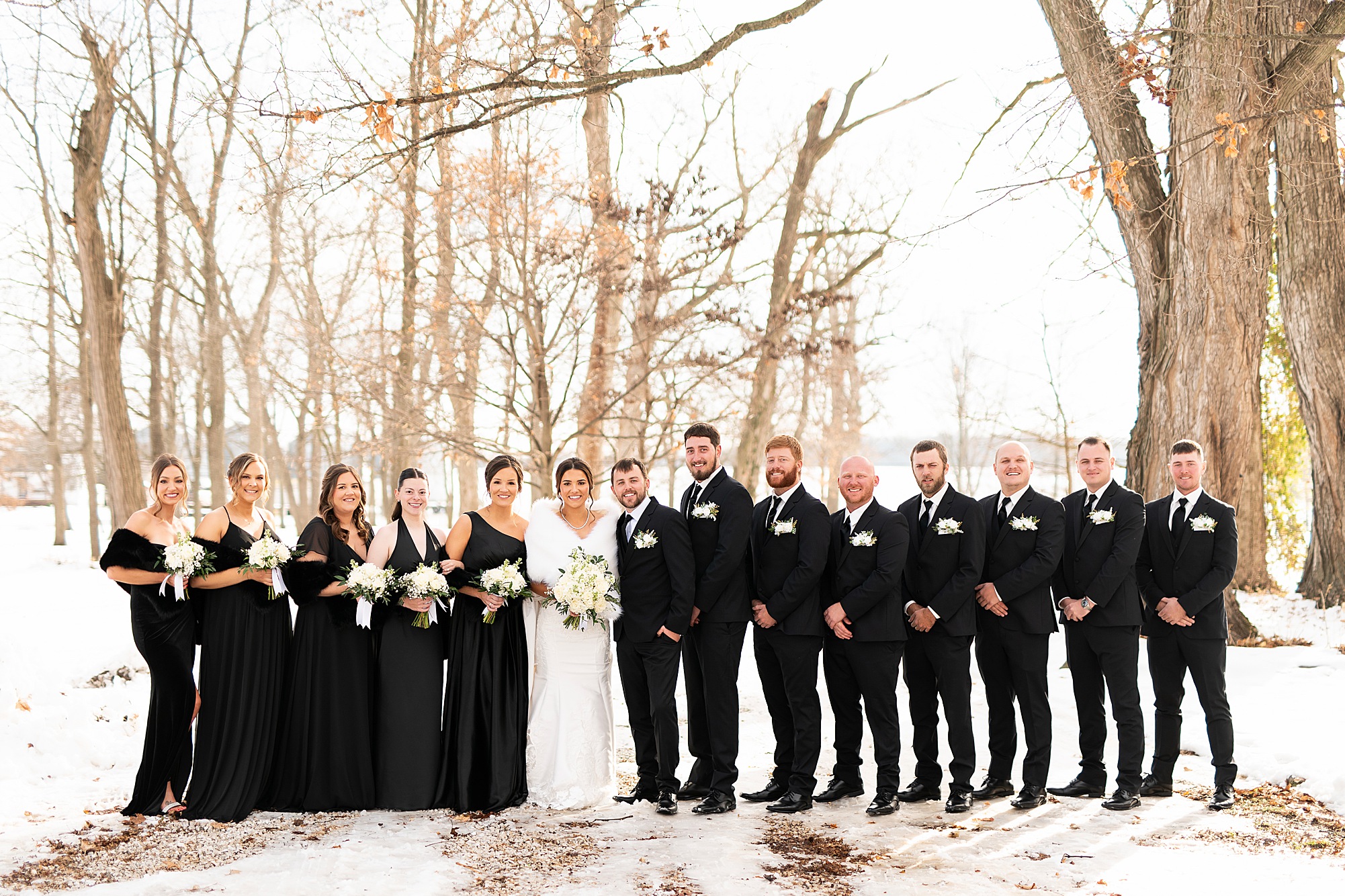 Introducing Mr. & Mrs. Arnett! Kelsie and Jayce’s winter wonderland wedding at the beautiful Walnut Hall Estates was such a joy to capture. These two are so laid back and handled the cold weather and any little bits of chaos with ease, simply enjoying every moment together. Their sweet boys joined in on the fun and looked so dapper, making the day even more special! From the simple, classic black-and-white details to a dance floor that stayed packed all night with Kelsie and Jayce leading the way, every part of the day felt so true to them. With so many gorgeous spots around the venue and a bride who was absolutely stunning, it was the perfect setting to celebrate this sweet couple. Cheers to the Arnetts!