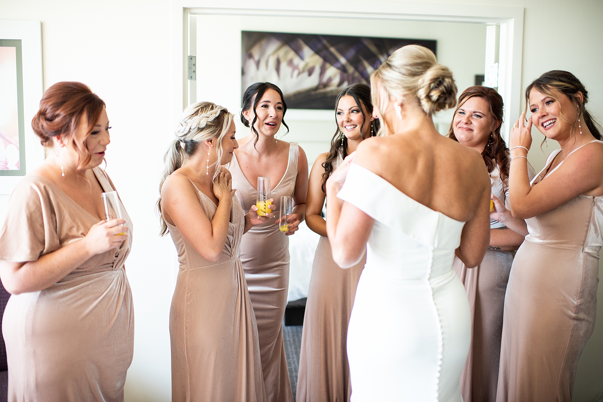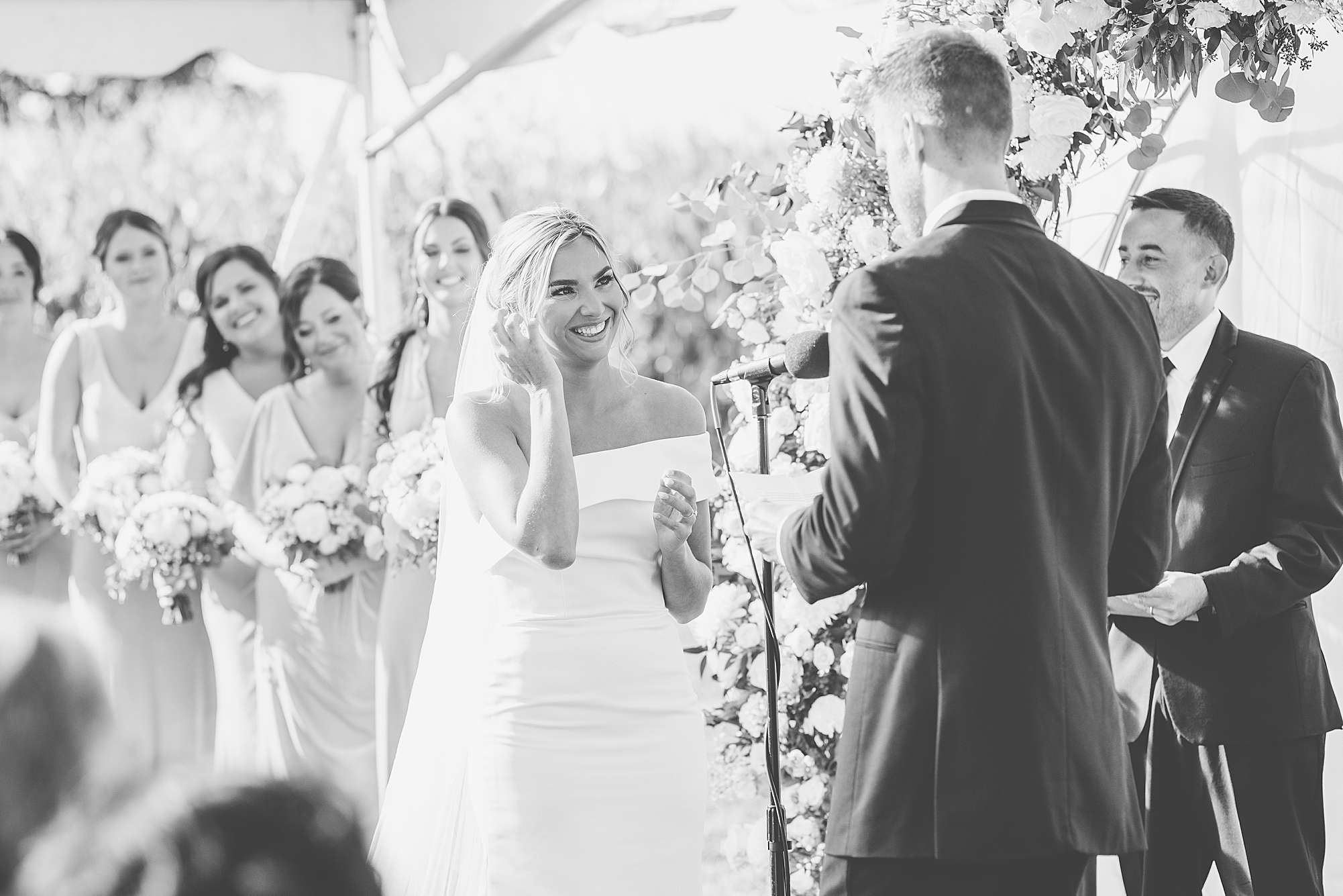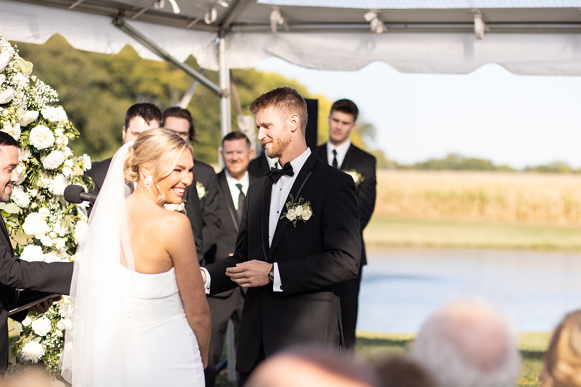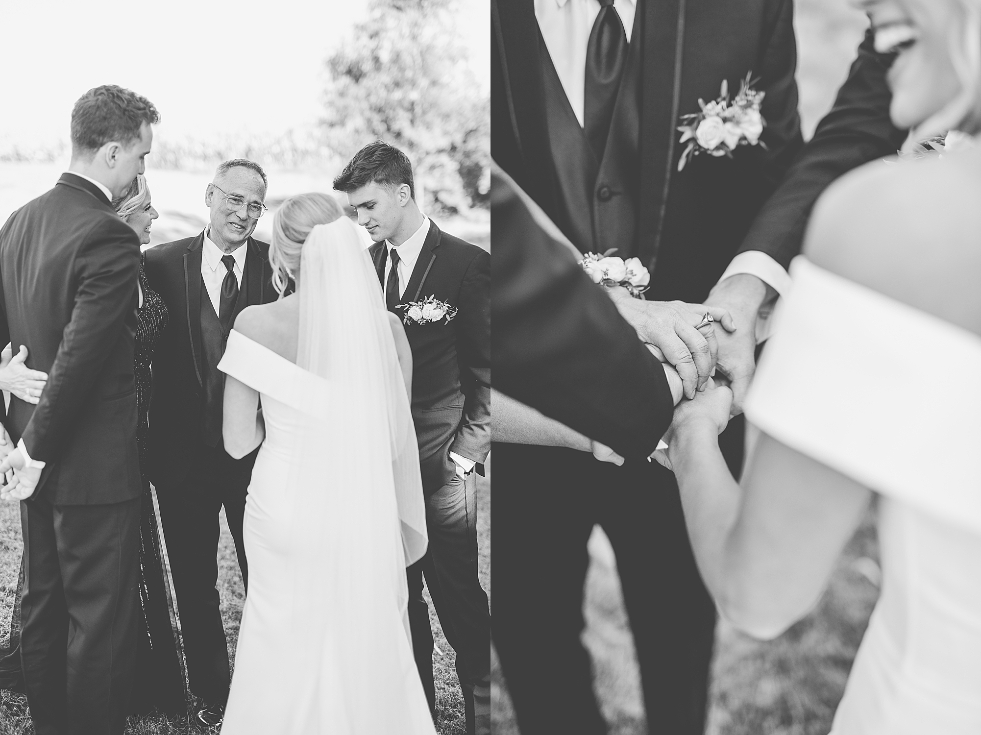 The girls and guys got ready separately in the morning. Kerby spent time sipping mimosas and getting ready with her girls. Her mom helped her step into her stunning dress and put on her final details. Tyler and the groomsmen hung out and his dad helped him getting ready. Before the ceremony, Kerby shared a first look with both her dad and her brothers. It was such a sweet moment for them to get to hang out a little bit before Kerby’s dad walked her down the aisle. Tyler was smiling from ear to ear as violins played and he finally got to see his gorgeous bride for the first time. They were married in a sweet and simple ceremony by a close friend and celebrated back down the aisle as Mr. and Mrs. Scanlan!