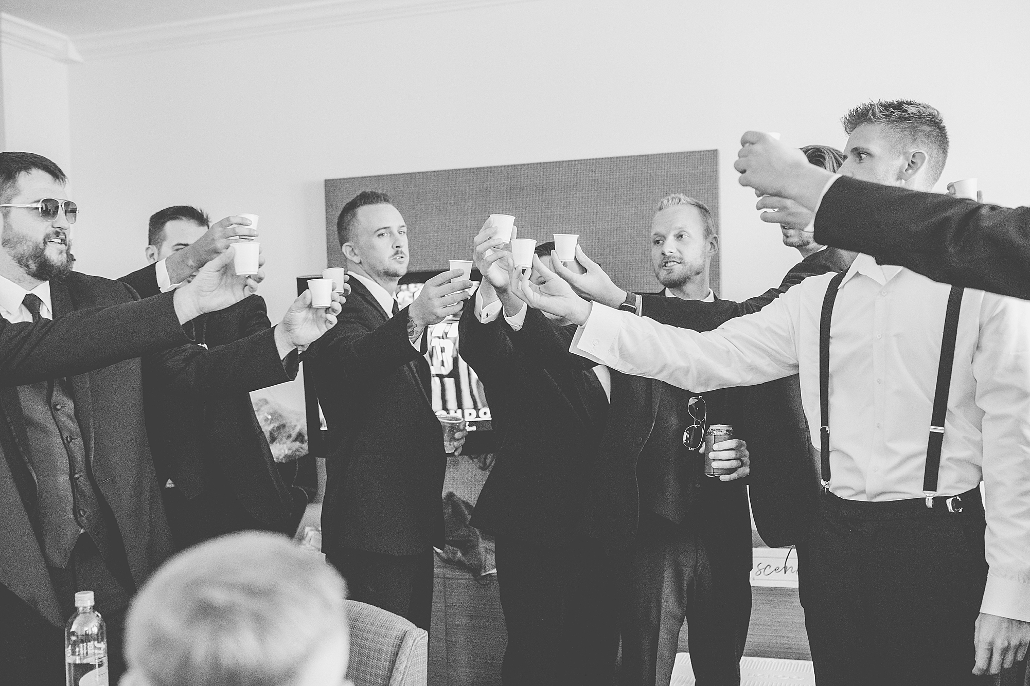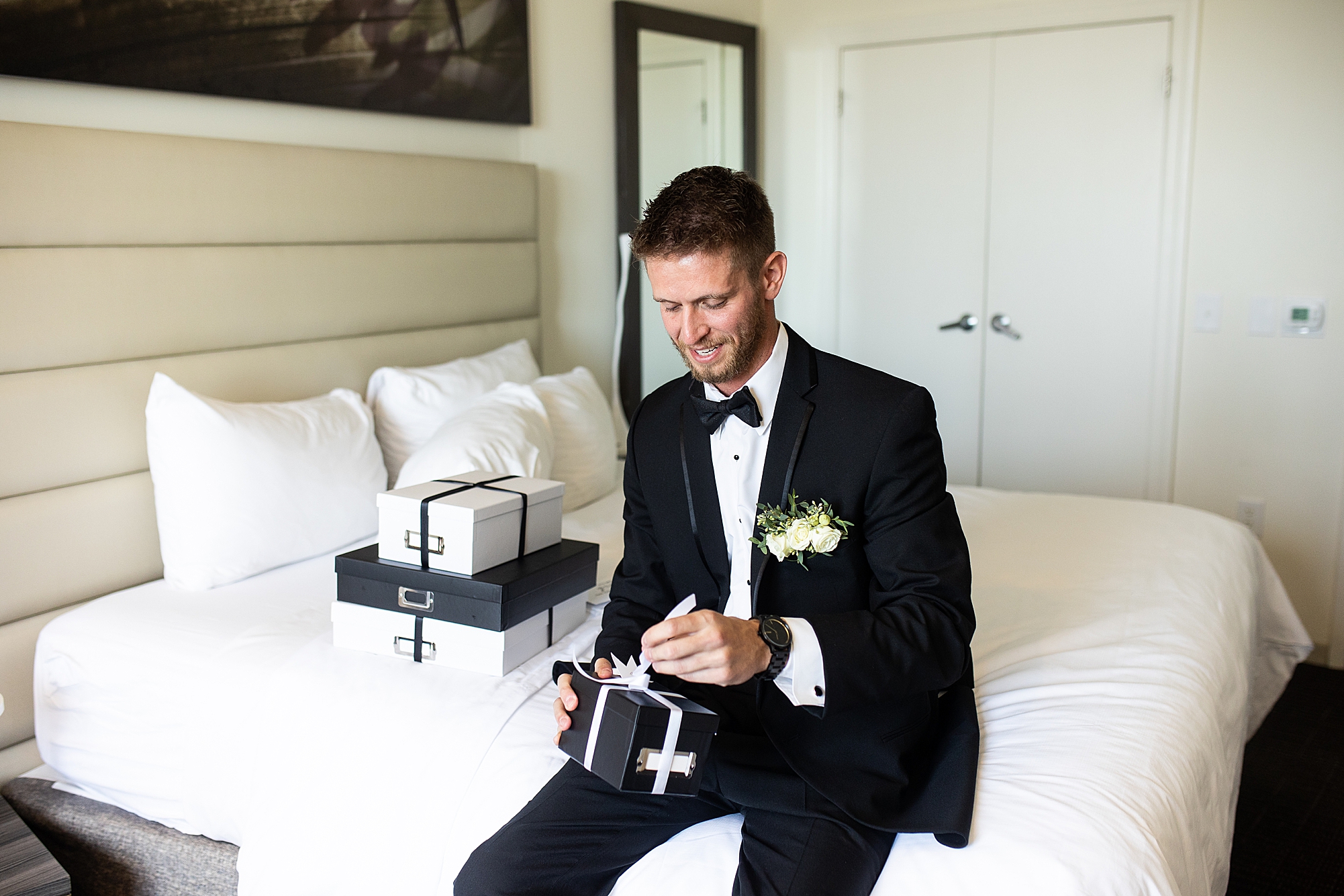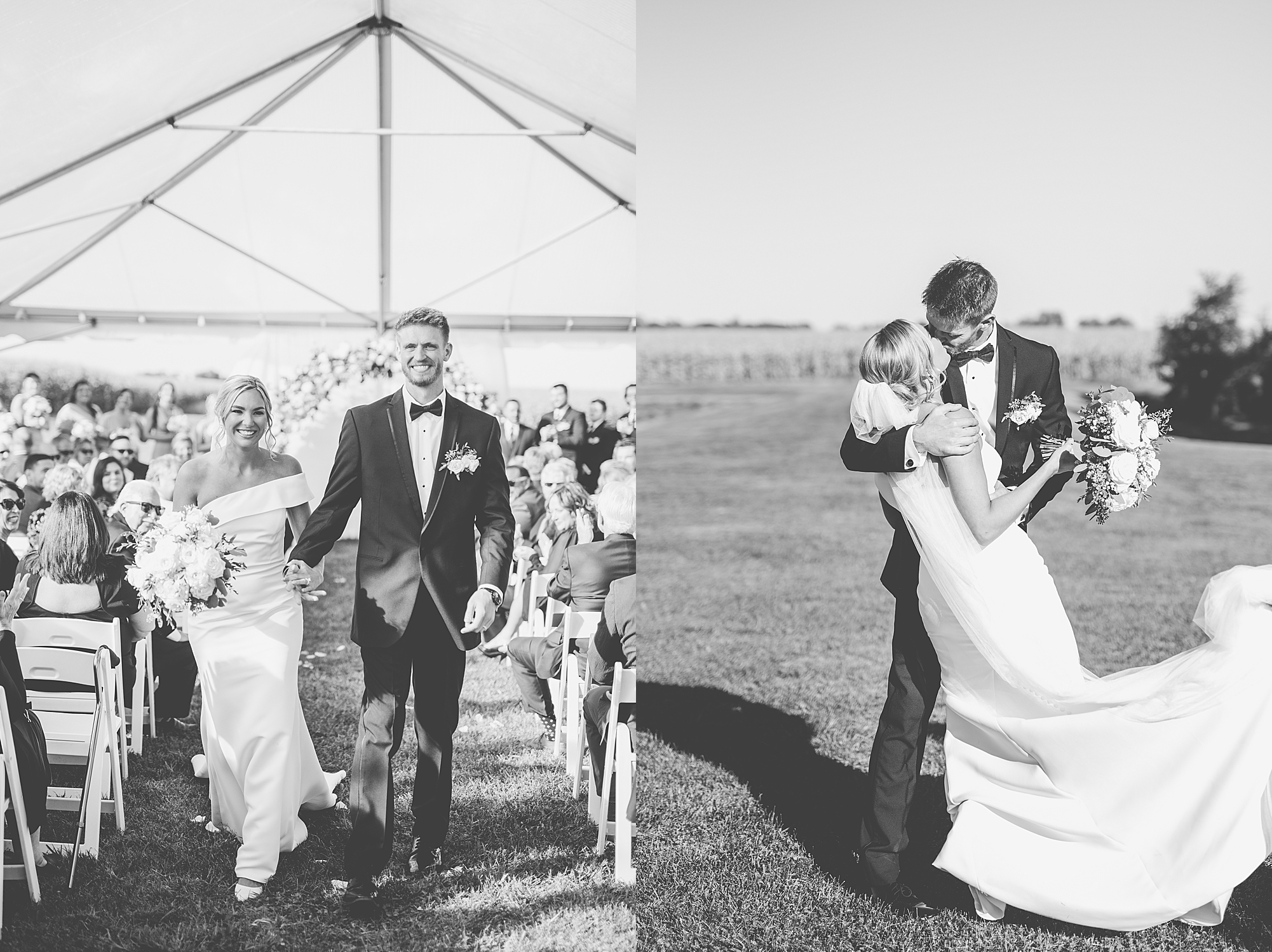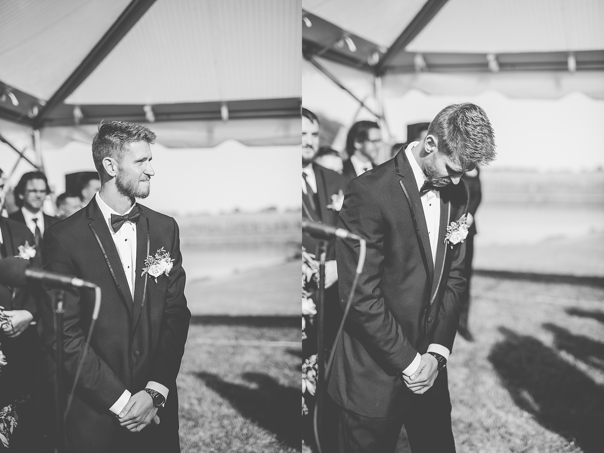 The girls and guys got ready separately in the morning. Kerby spent time sipping mimosas and getting ready with her girls. Her mom helped her step into her stunning dress and put on her final details. Tyler and the groomsmen hung out and his dad helped him getting ready. Before the ceremony, Kerby shared a first look with both her dad and her brothers. It was such a sweet moment for them to get to hang out a little bit before Kerby’s dad walked her down the aisle. Tyler was smiling from ear to ear as violins played and he finally got to see his gorgeous bride for the first time. They were married in a sweet and simple ceremony by a close friend and celebrated back down the aisle as Mr. and Mrs. Scanlan!
