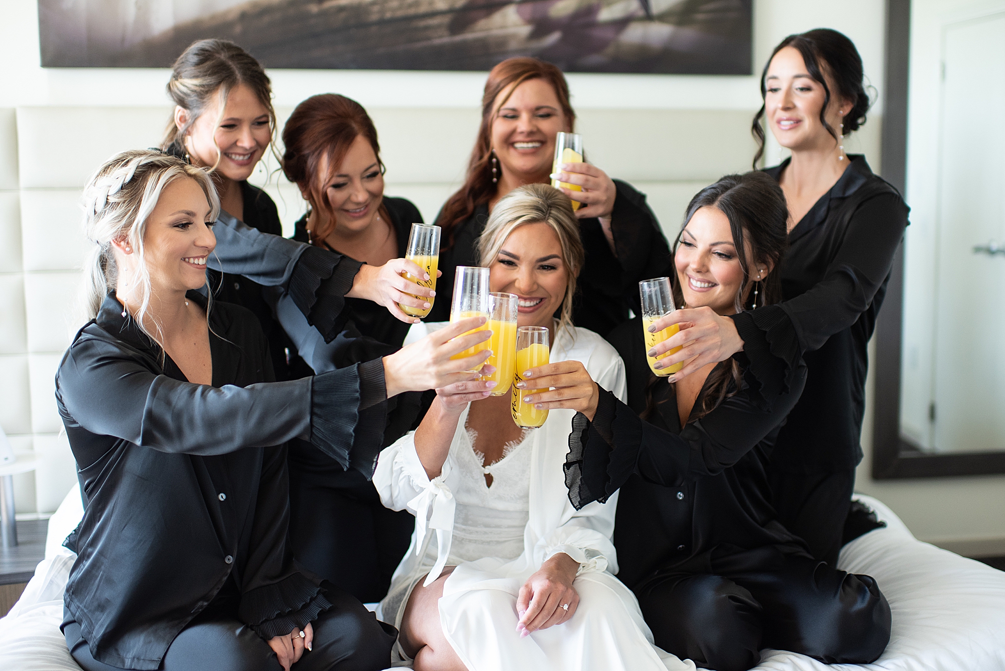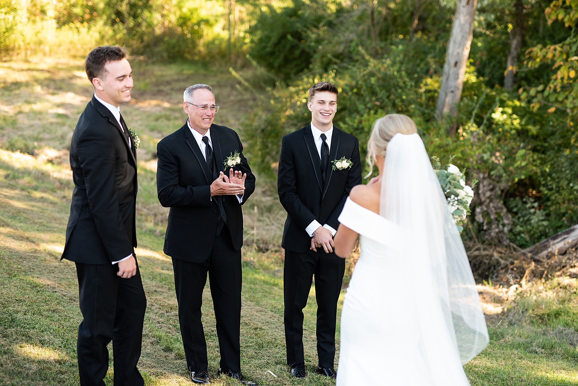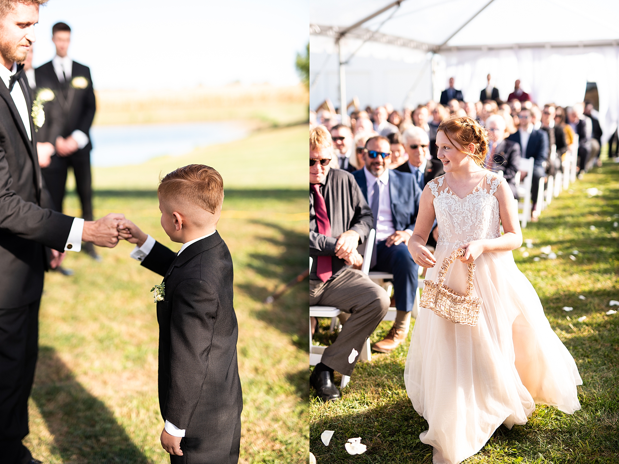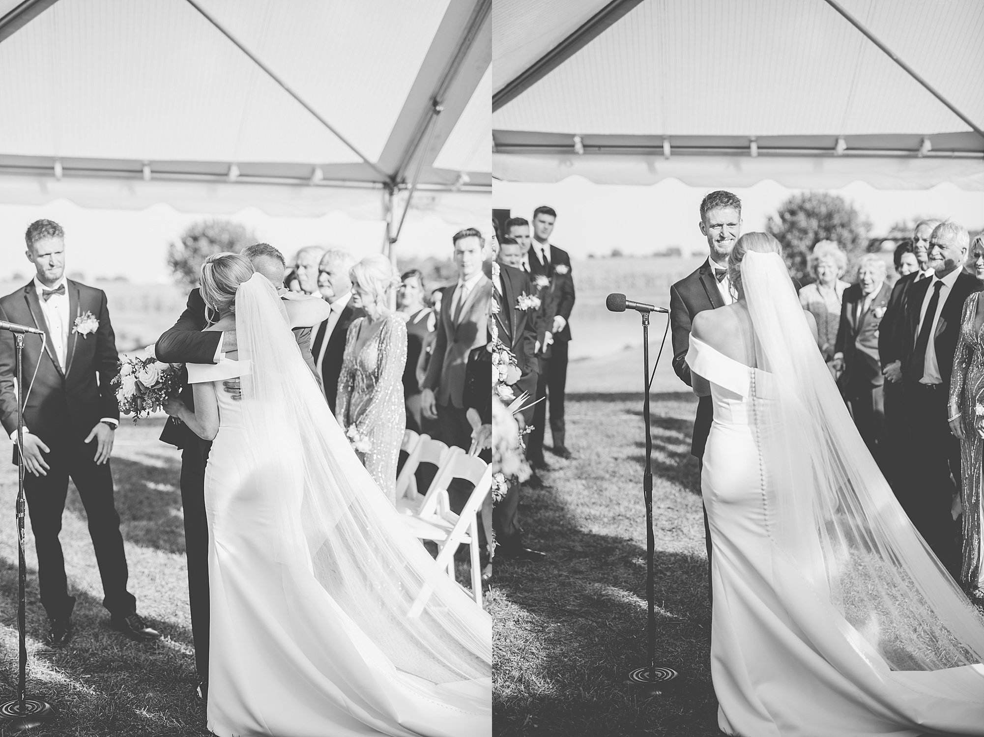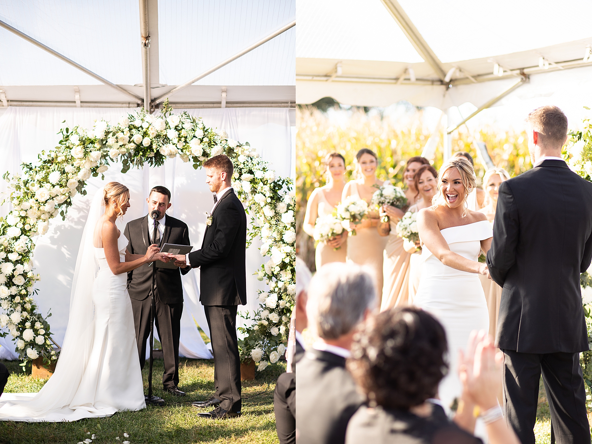 The girls and guys got ready separately in the morning. Kerby spent time sipping mimosas and getting ready with her girls. Her mom helped her step into her stunning dress and put on her final details. Tyler and the groomsmen hung out and his dad helped him getting ready. Before the ceremony, Kerby shared a first look with both her dad and her brothers. It was such a sweet moment for them to get to hang out a little bit before Kerby’s dad walked her down the aisle. Tyler was smiling from ear to ear as violins played and he finally got to see his gorgeous bride for the first time. They were married in a sweet and simple ceremony by a close friend and celebrated back down the aisle as Mr. and Mrs. Scanlan!