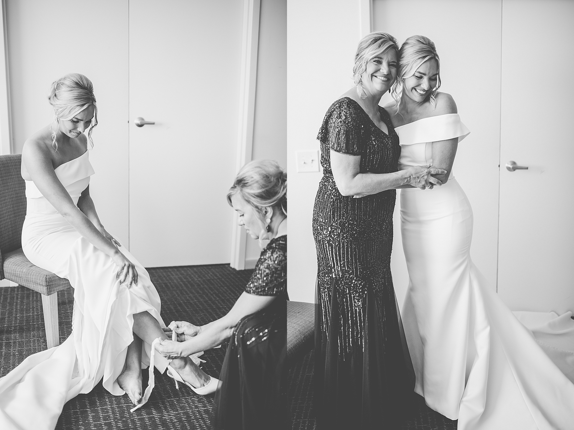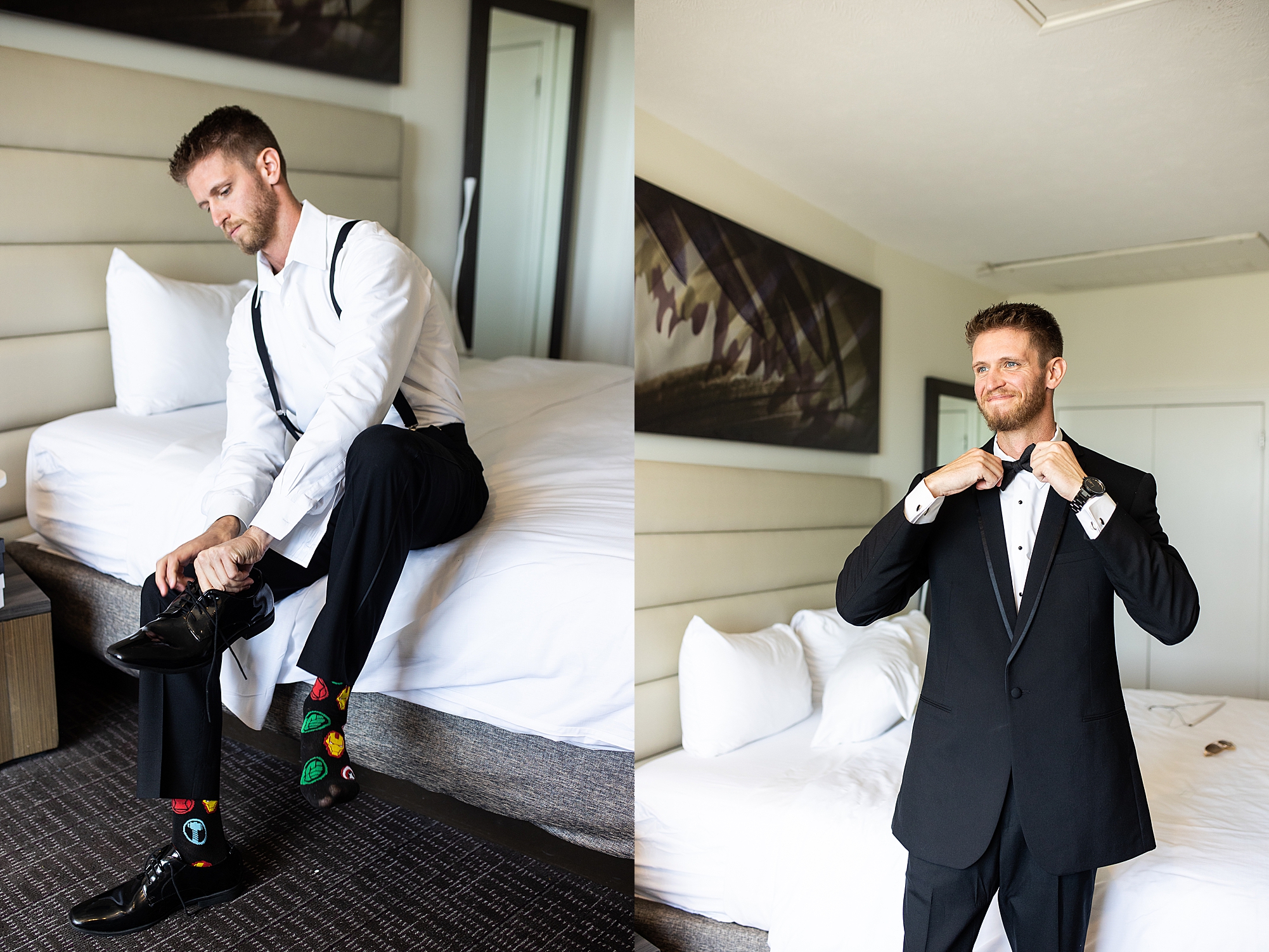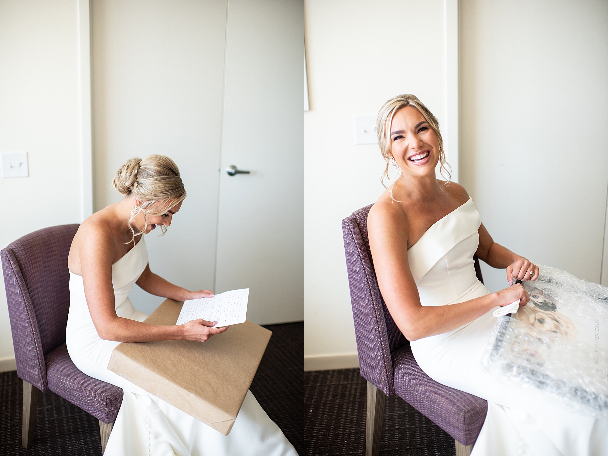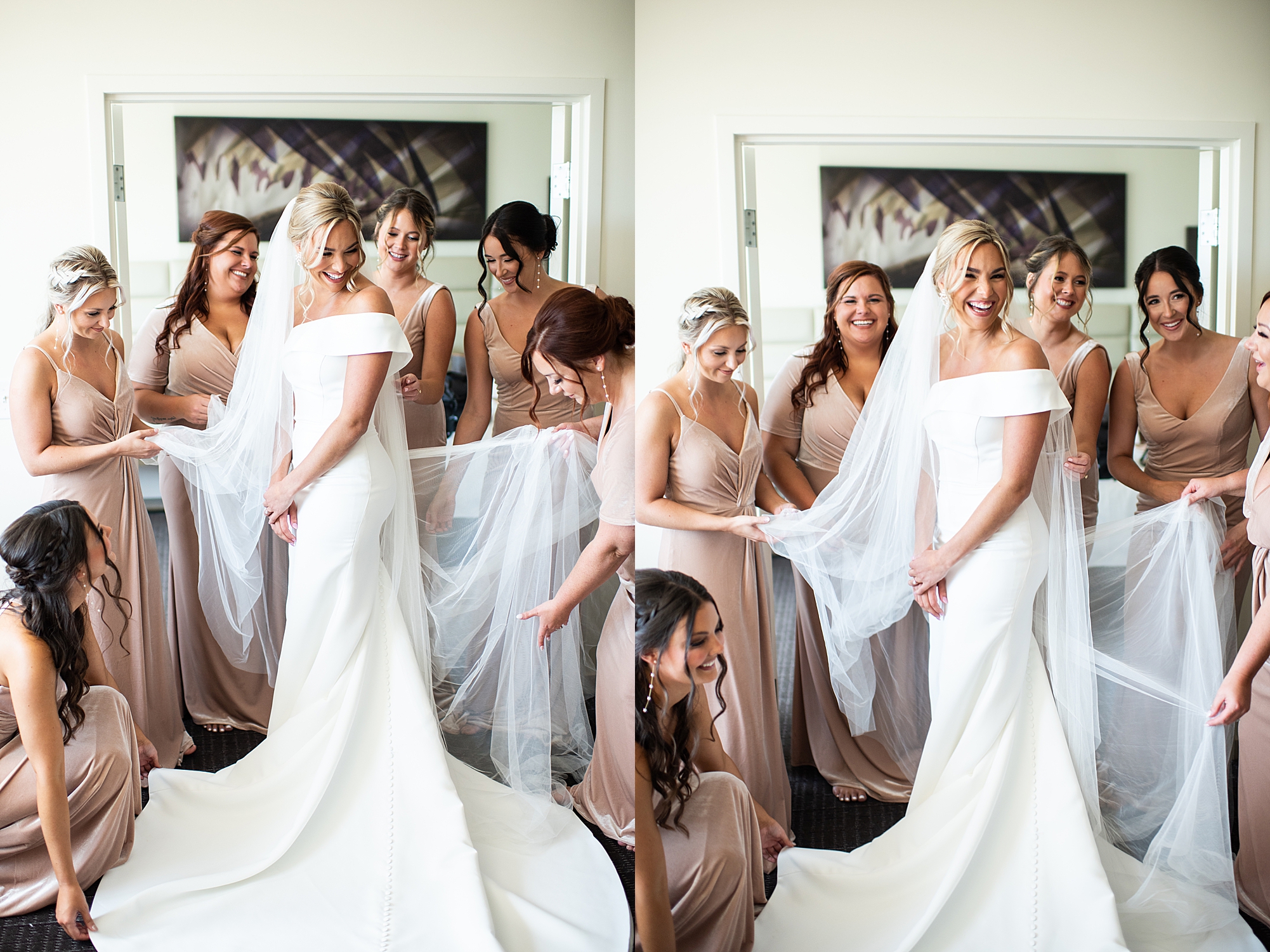 The girls and guys got ready separately in the morning. Kerby spent time sipping mimosas and getting ready with her girls. Her mom helped her step into her stunning dress and put on her final details. Tyler and the groomsmen hung out and his dad helped him getting ready. Before the ceremony, Kerby shared a first look with both her dad and her brothers. It was such a sweet moment for them to get to hang out a little bit before Kerby’s dad walked her down the aisle. Tyler was smiling from ear to ear as violins played and he finally got to see his gorgeous bride for the first time. They were married in a sweet and simple ceremony by a close friend and celebrated back down the aisle as Mr. and Mrs. Scanlan!