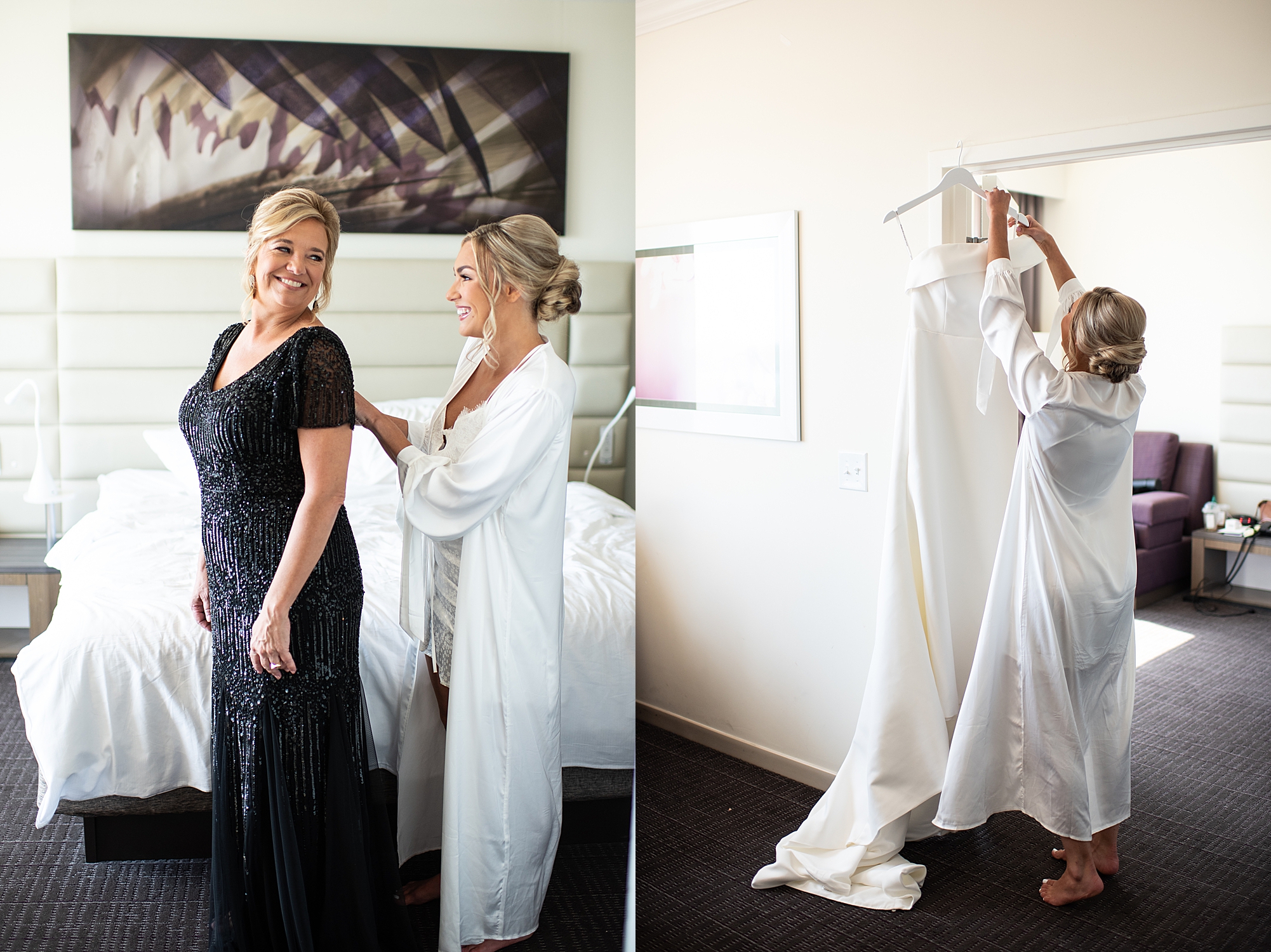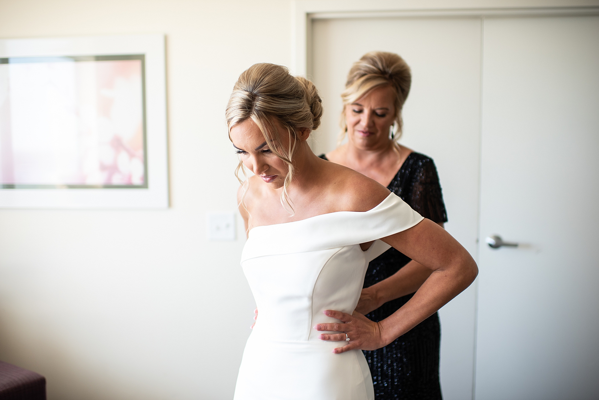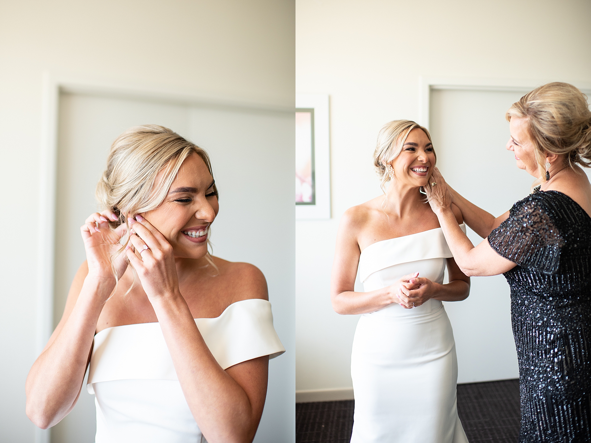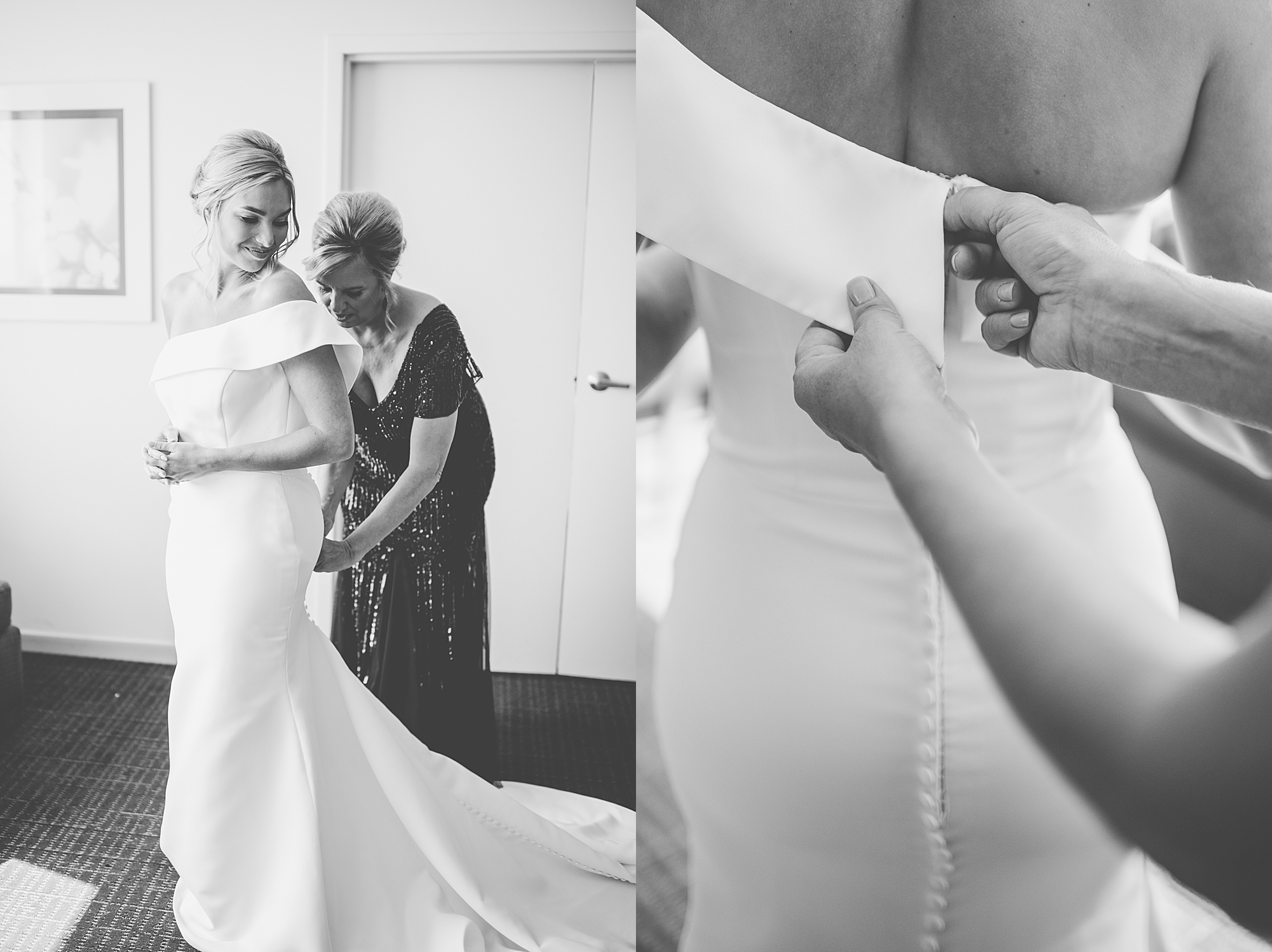 The girls and guys got ready separately in the morning. Kerby spent time sipping mimosas and getting ready with her girls. Her mom helped her step into her stunning dress and put on her final details. Tyler and the groomsmen hung out and his dad helped him getting ready. Before the ceremony, Kerby shared a first look with both her dad and her brothers. It was such a sweet moment for them to get to hang out a little bit before Kerby’s dad walked her down the aisle. Tyler was smiling from ear to ear as violins played and he finally got to see his gorgeous bride for the first time. They were married in a sweet and simple ceremony by a close friend and celebrated back down the aisle as Mr. and Mrs. Scanlan!