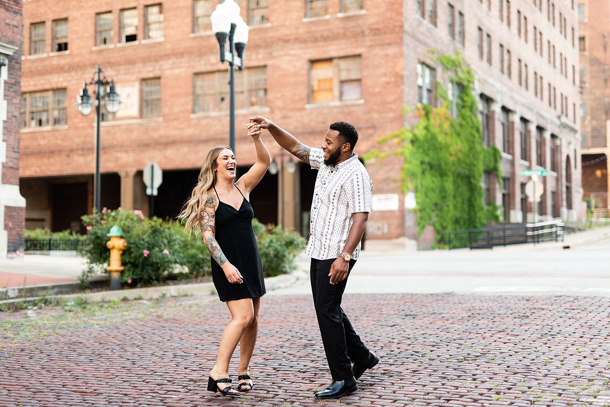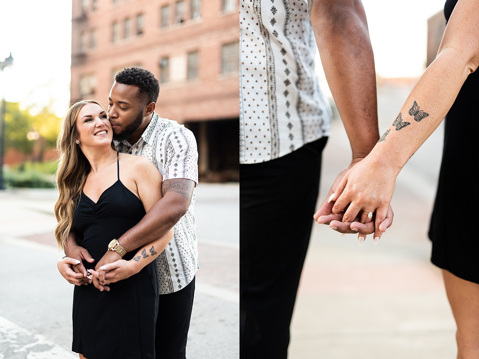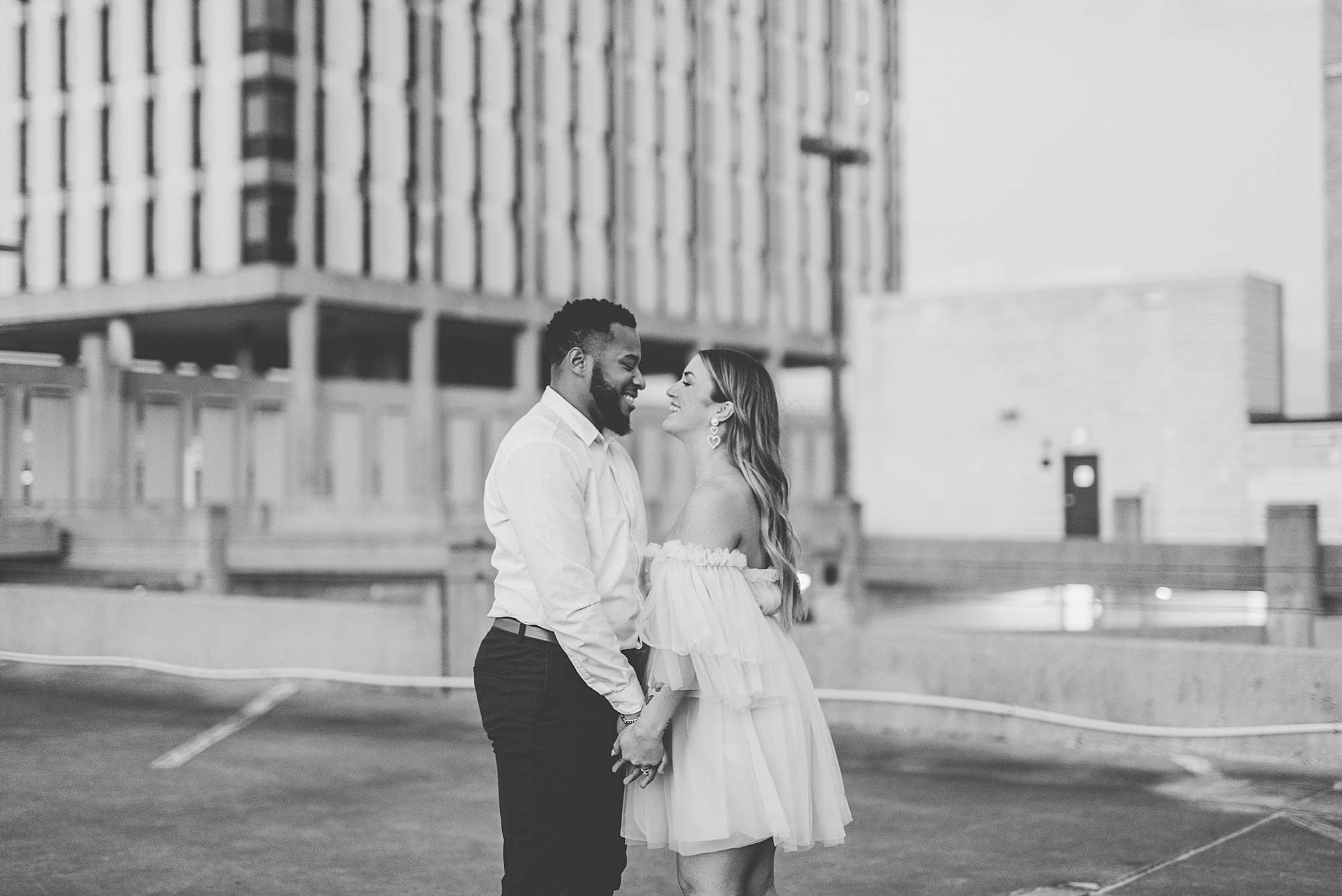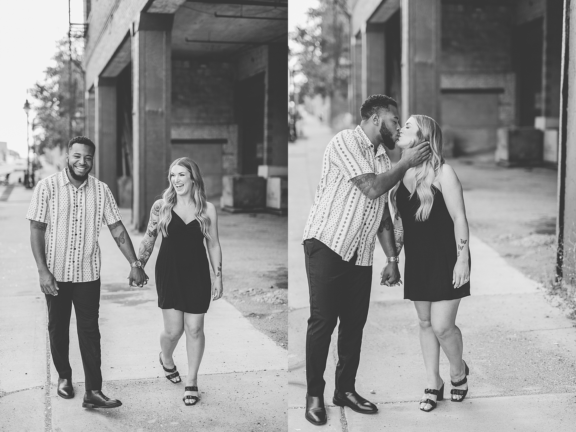 Kinzie told me her dream for an engagement session was in the city, getting glammed up with Aaron and capturing them having fun! So the two of them got all dressed up and we headed up to Peoria to explore. We started in the Warehouse District before heading close to downtown for some rooftop photos. Kinzie and Aaron did a great job making each other laugh, dancing in the streets, cuddling with each other and popping champagne to celebrate their engagement! I loved capturing these two because they are crazy photogenic and so so sweet together! I am so excited to share more of our fun evening and cannot wait to be a part of their wedding day next summer!