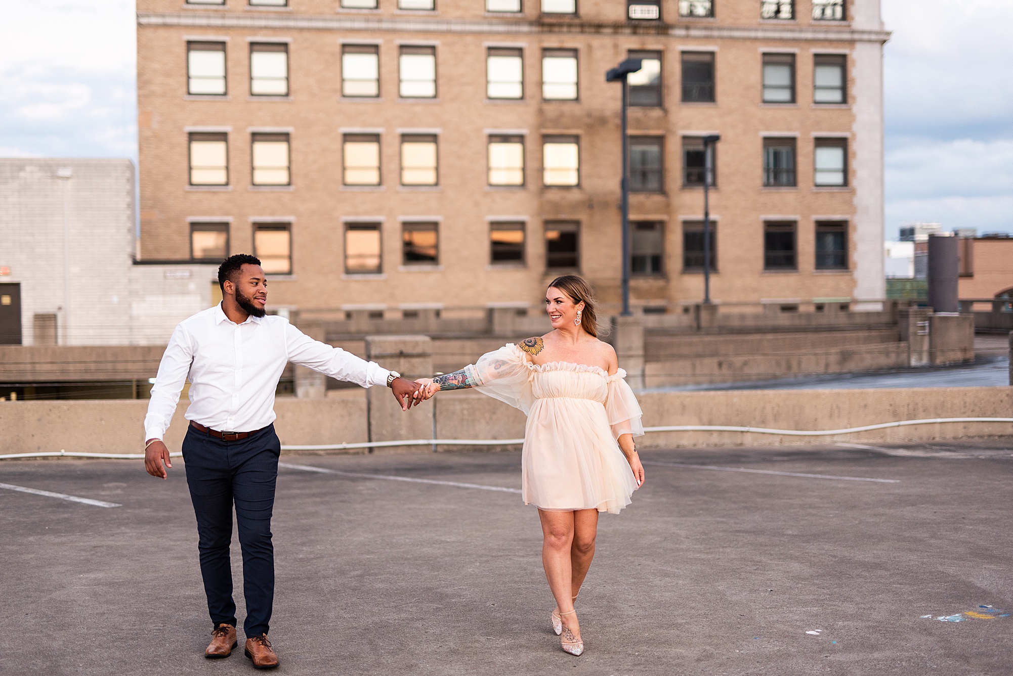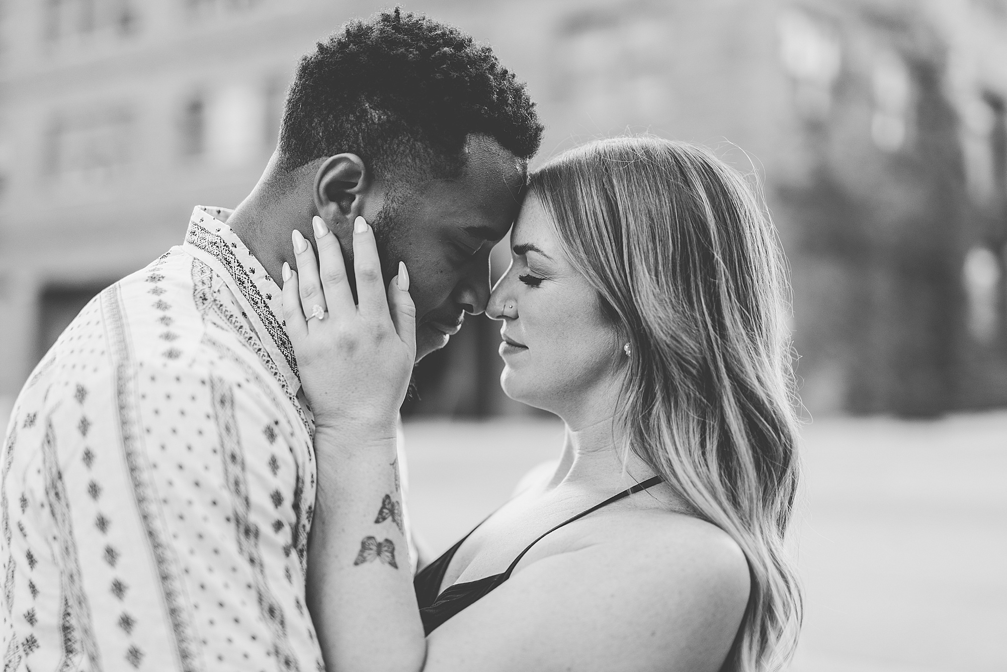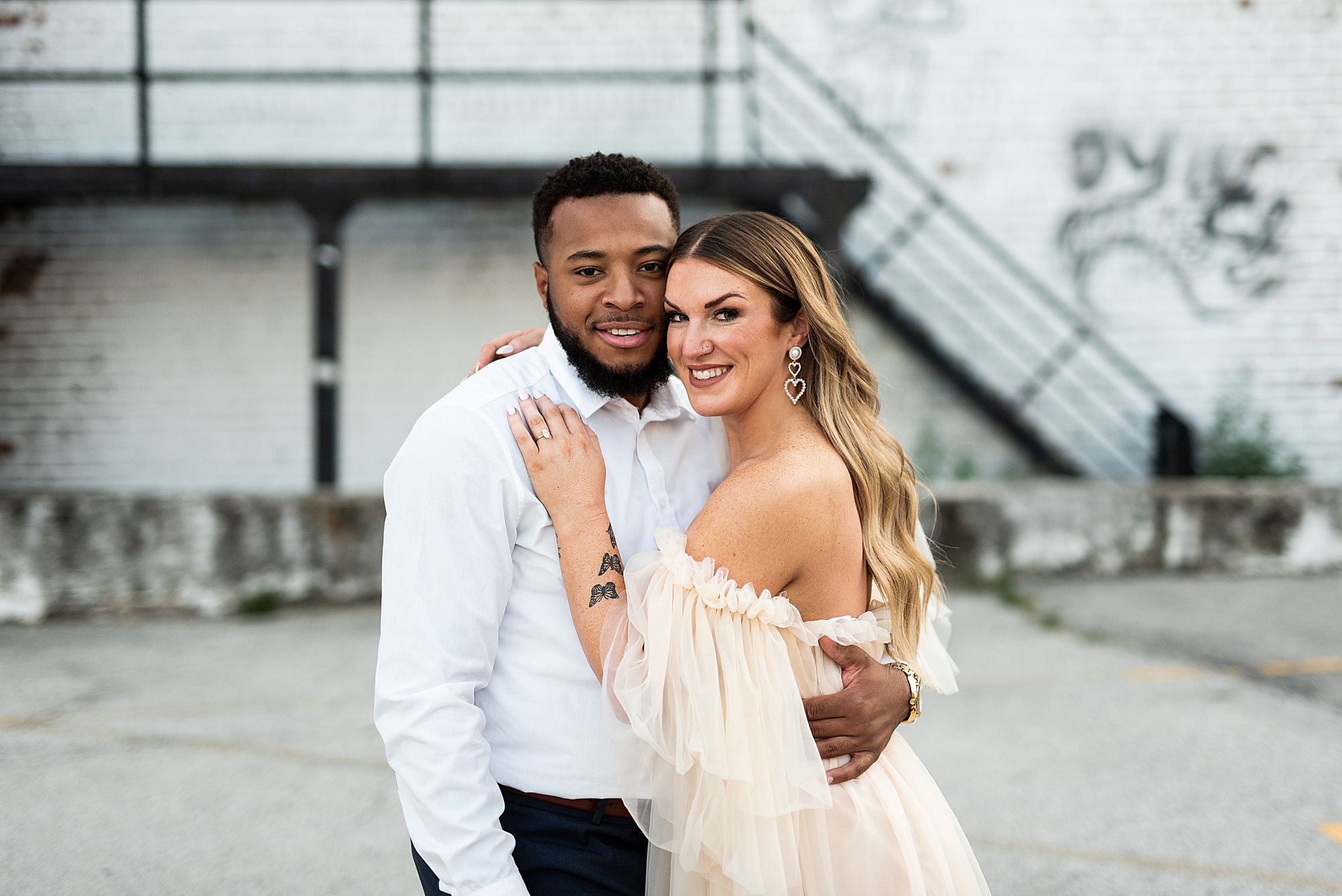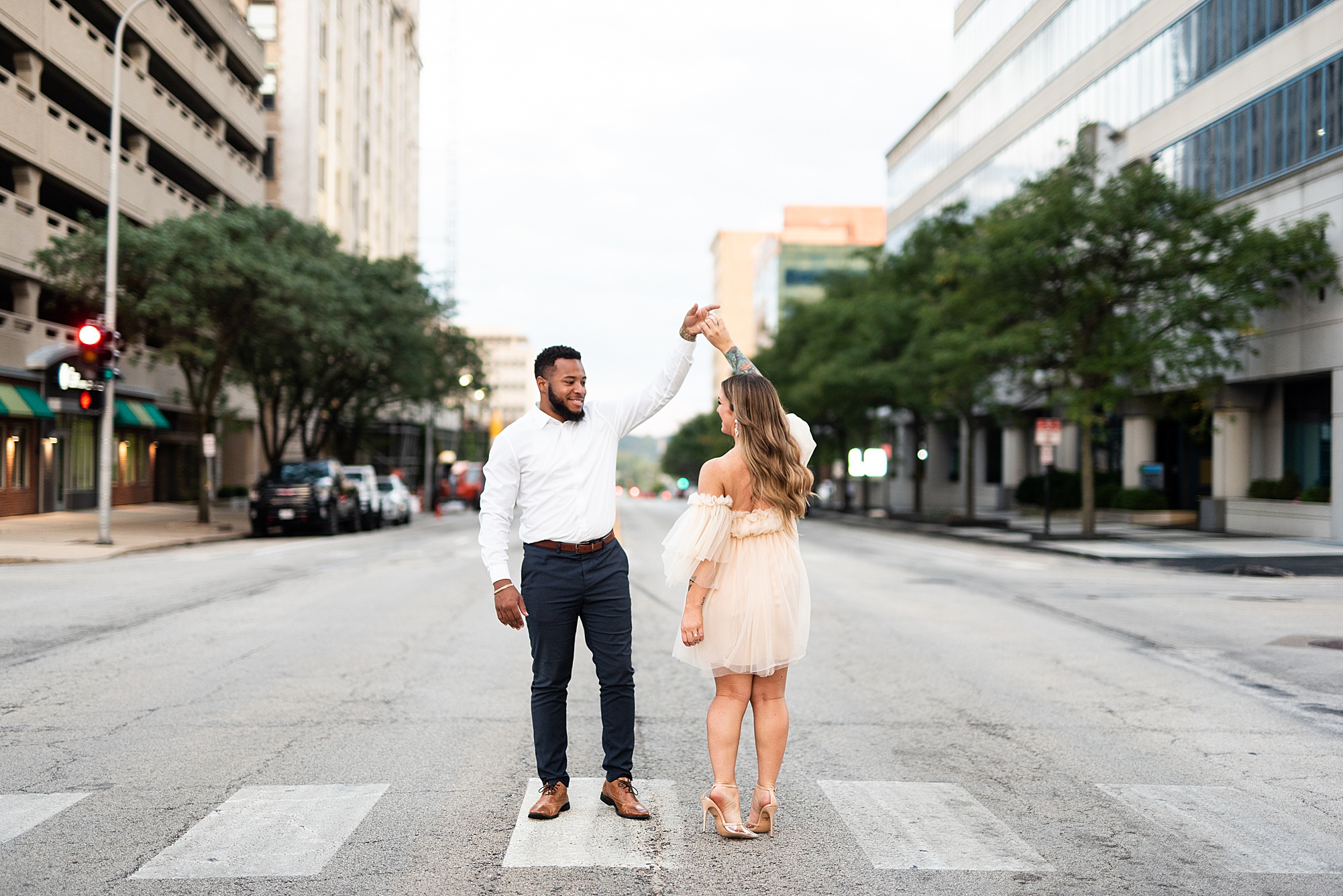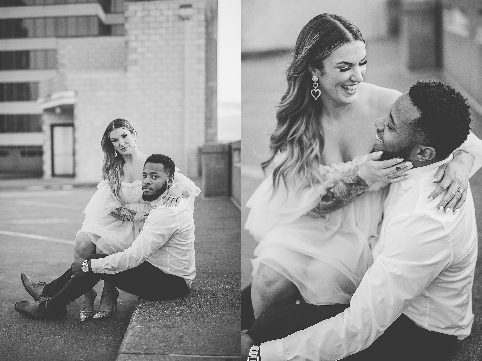 Kinzie told me her dream for an engagement session was in the city, getting glammed up with Aaron and capturing them having fun! So the two of them got all dressed up and we headed up to Peoria to explore. We started in the Warehouse District before heading close to downtown for some rooftop photos. Kinzie and Aaron did a great job making each other laugh, dancing in the streets, cuddling with each other and popping champagne to celebrate their engagement! I loved capturing these two because they are crazy photogenic and so so sweet together! I am so excited to share more of our fun evening and cannot wait to be a part of their wedding day next summer!