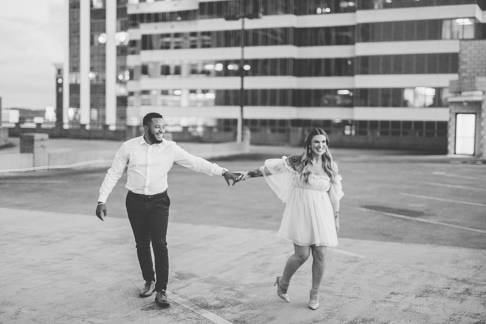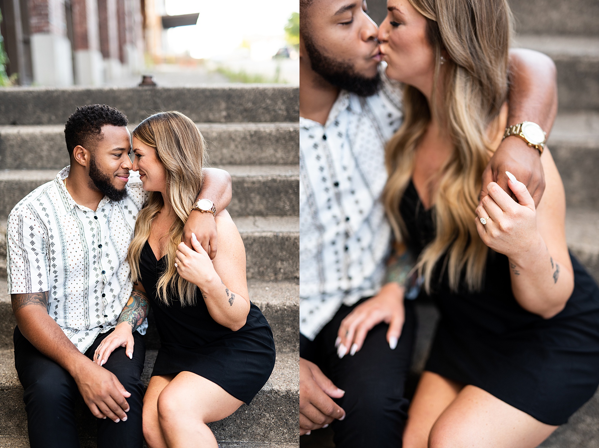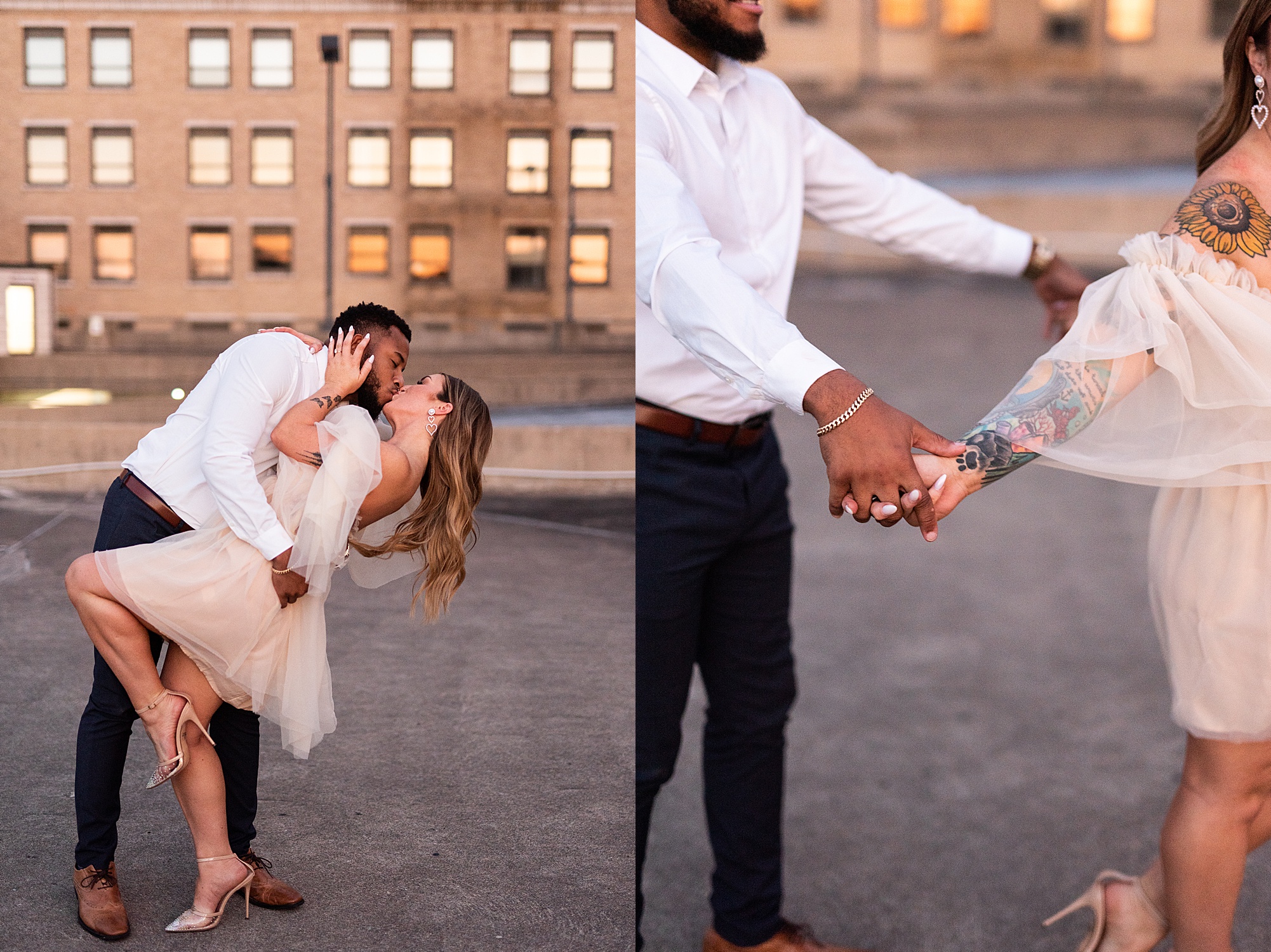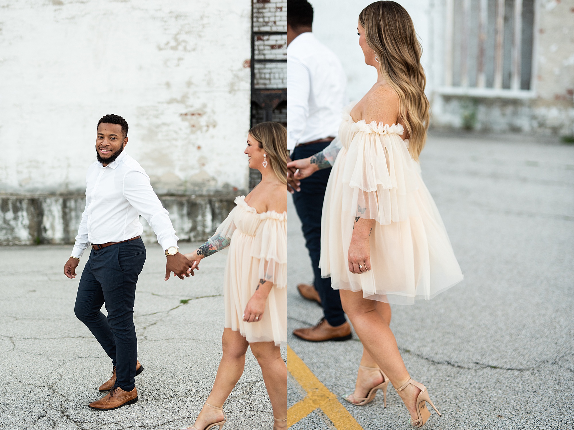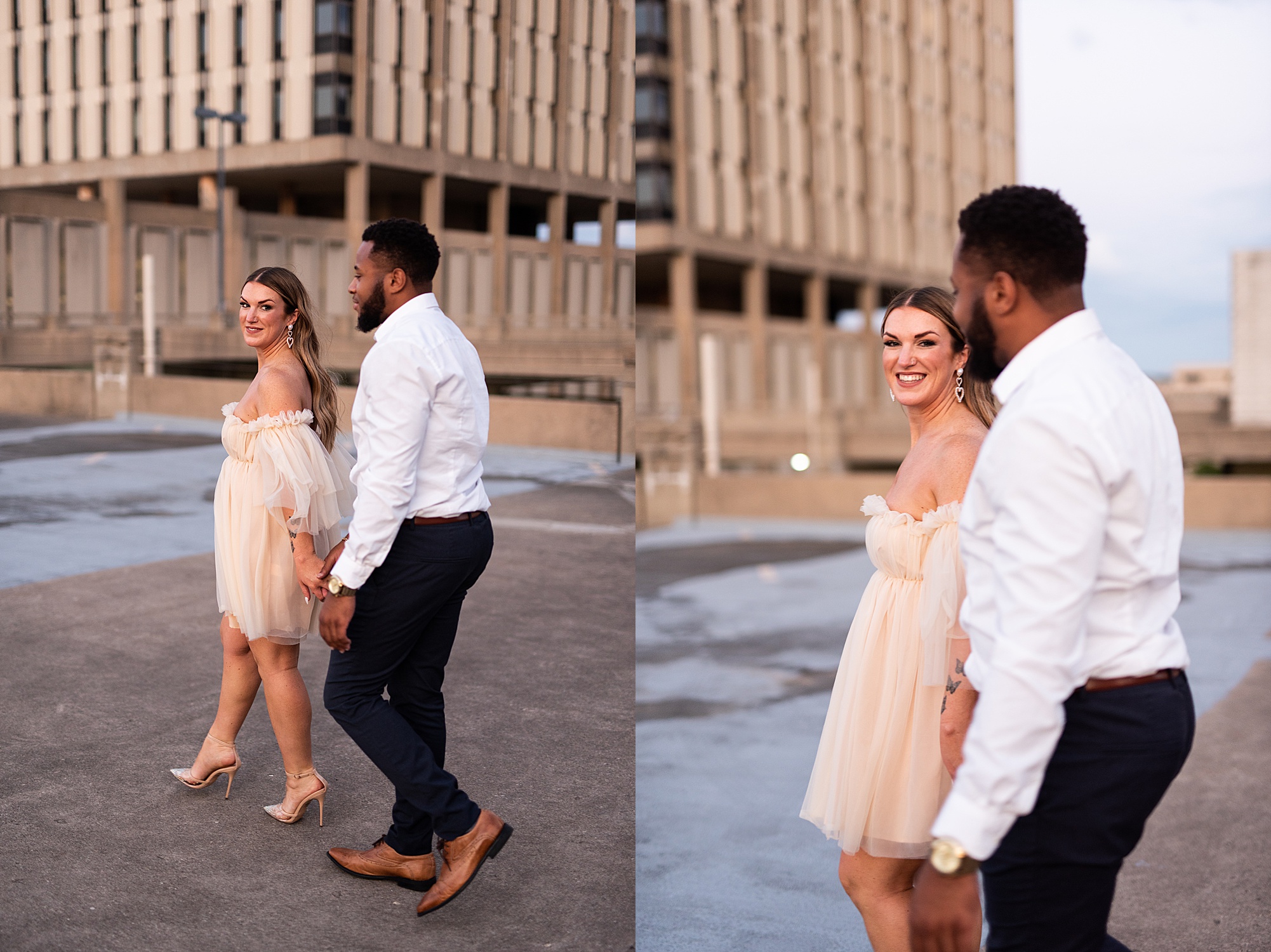 Kinzie told me her dream for an engagement session was in the city, getting glammed up with Aaron and capturing them having fun! So the two of them got all dressed up and we headed up to Peoria to explore. We started in the Warehouse District before heading close to downtown for some rooftop photos. Kinzie and Aaron did a great job making each other laugh, dancing in the streets, cuddling with each other and popping champagne to celebrate their engagement! I loved capturing these two because they are crazy photogenic and so so sweet together! I am so excited to share more of our fun evening and cannot wait to be a part of their wedding day next summer!