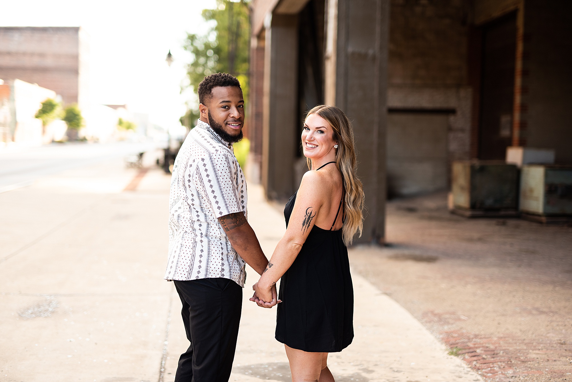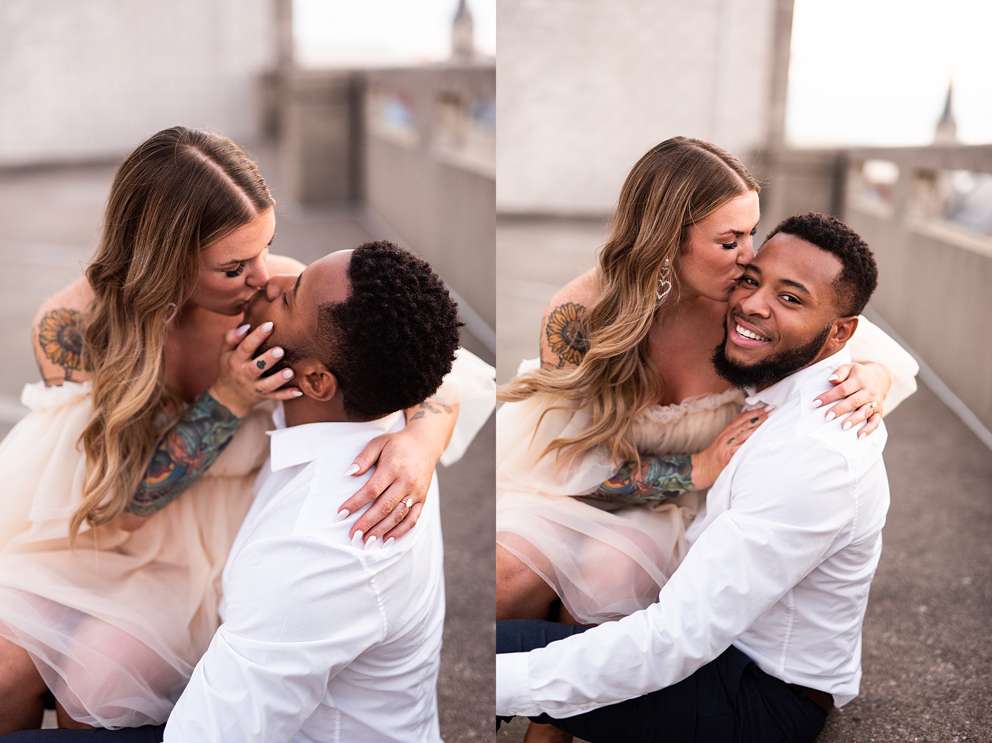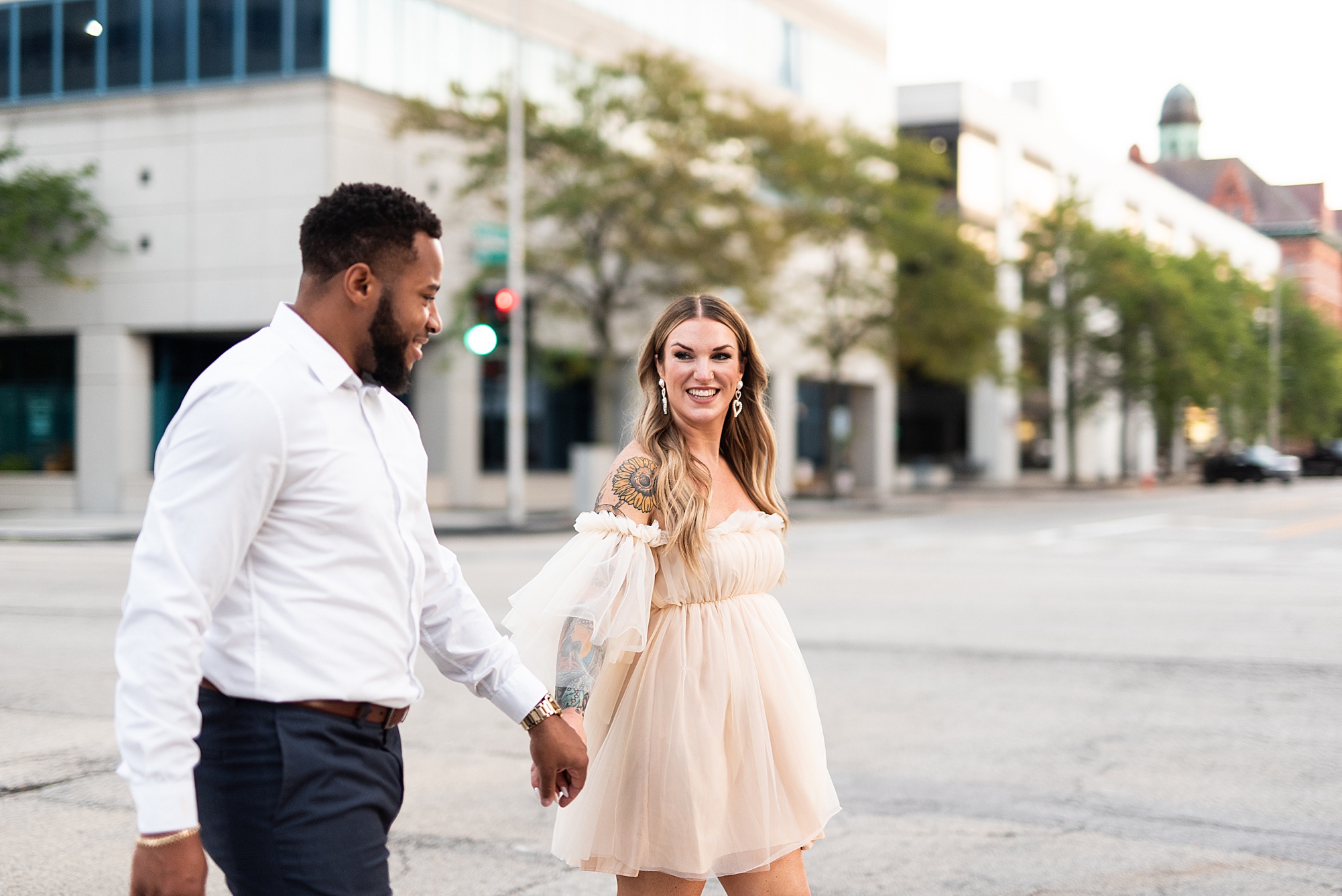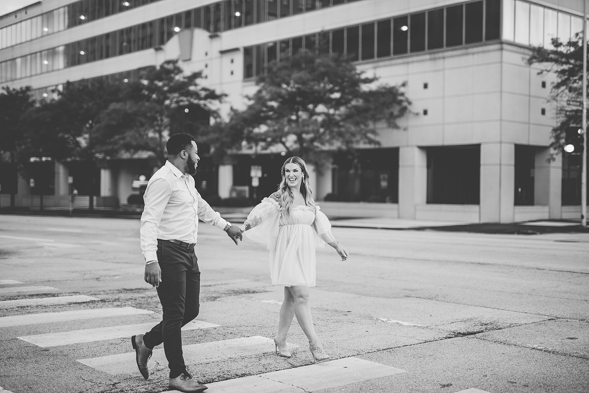 Kinzie told me her dream for an engagement session was in the city, getting glammed up with Aaron and capturing them having fun! So the two of them got all dressed up and we headed up to Peoria to explore. We started in the Warehouse District before heading close to downtown for some rooftop photos. Kinzie and Aaron did a great job making each other laugh, dancing in the streets, cuddling with each other and popping champagne to celebrate their engagement! I loved capturing these two because they are crazy photogenic and so so sweet together! I am so excited to share more of our fun evening and cannot wait to be a part of their wedding day next summer!