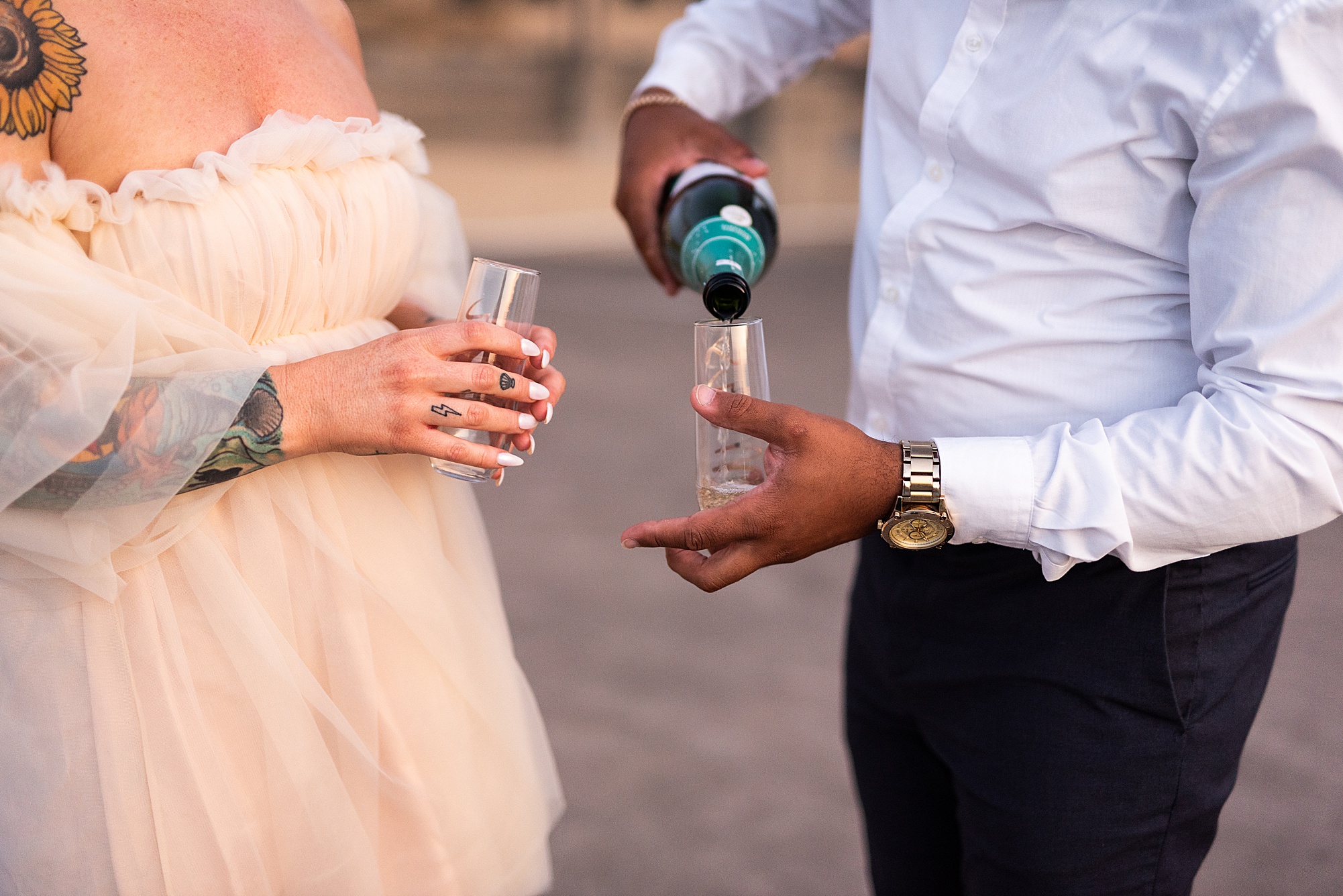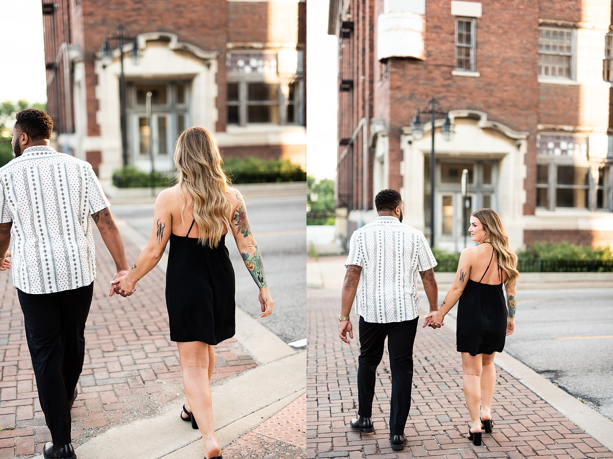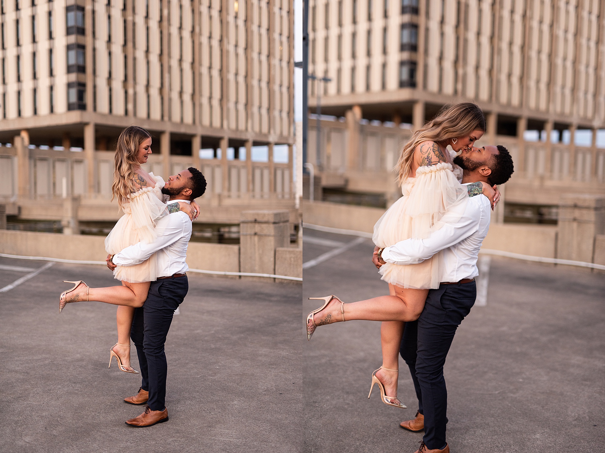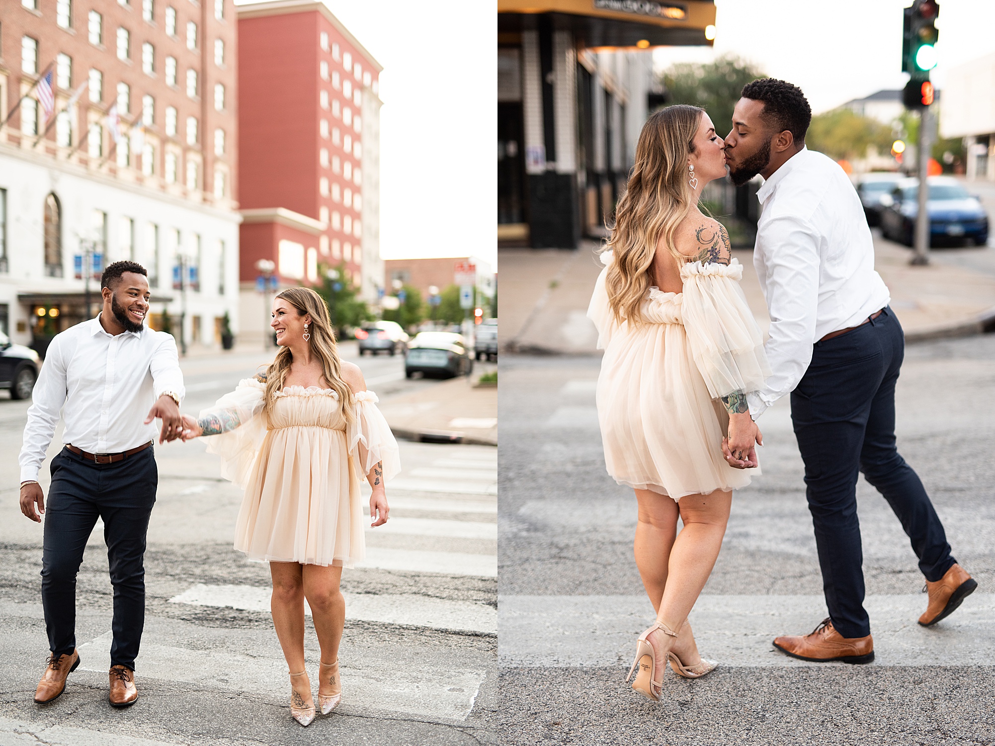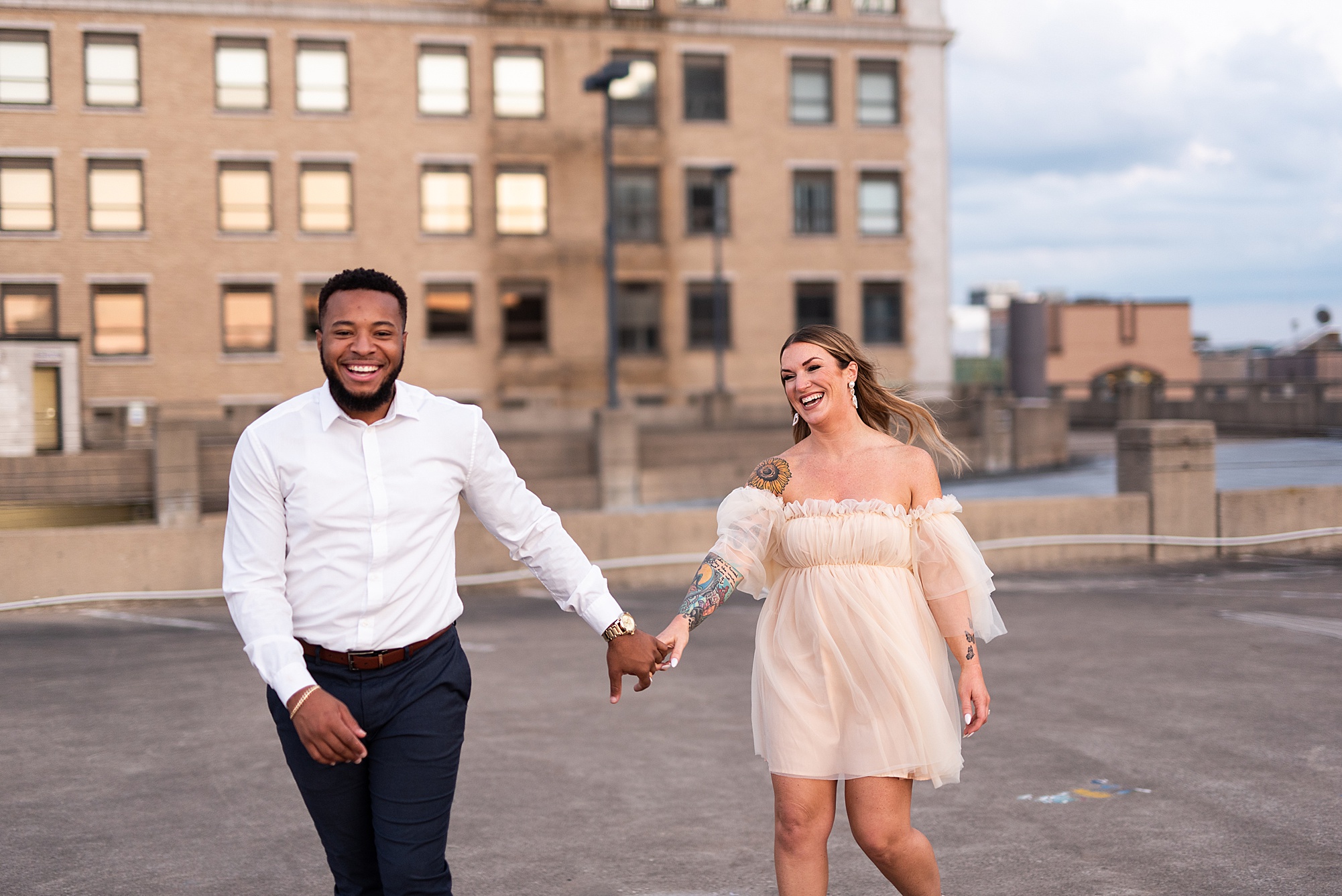 Kinzie told me her dream for an engagement session was in the city, getting glammed up with Aaron and capturing them having fun! So the two of them got all dressed up and we headed up to Peoria to explore. We started in the Warehouse District before heading close to downtown for some rooftop photos. Kinzie and Aaron did a great job making each other laugh, dancing in the streets, cuddling with each other and popping champagne to celebrate their engagement! I loved capturing these two because they are crazy photogenic and so so sweet together! I am so excited to share more of our fun evening and cannot wait to be a part of their wedding day next summer!