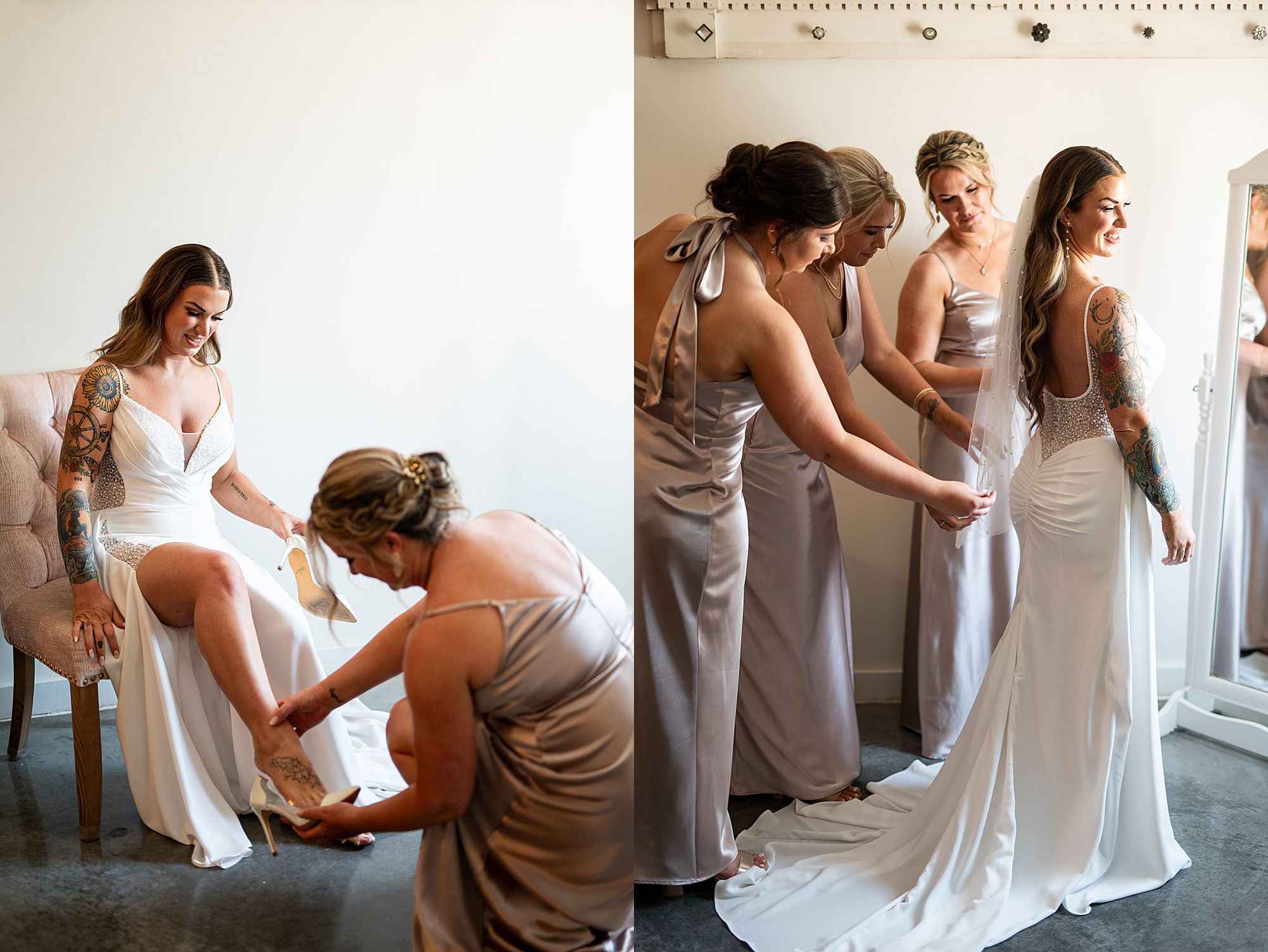 Kinzie & Aaron’s wedding day at The Homestead this summer was hot, but these two were on FIRE! With a boho disco theme, they created a celebration of their love that couldn’t have been more beautiful. Looking amazing and trying to hold tears back, they finally became Mr. and Mrs. Turner!