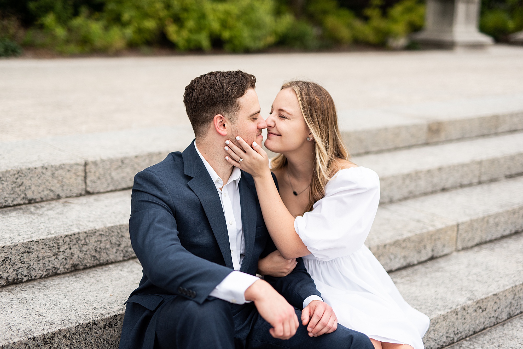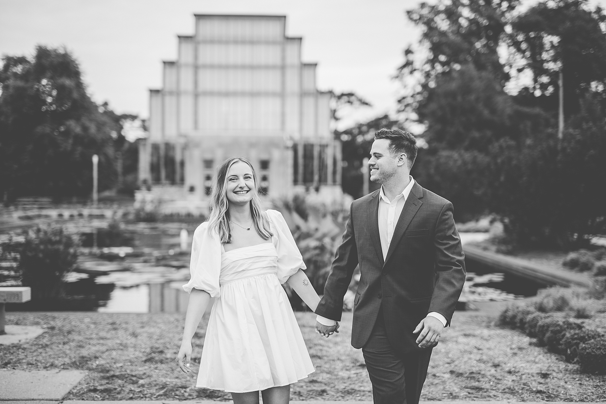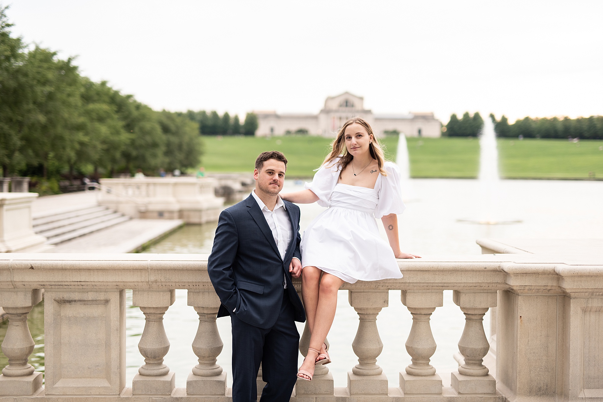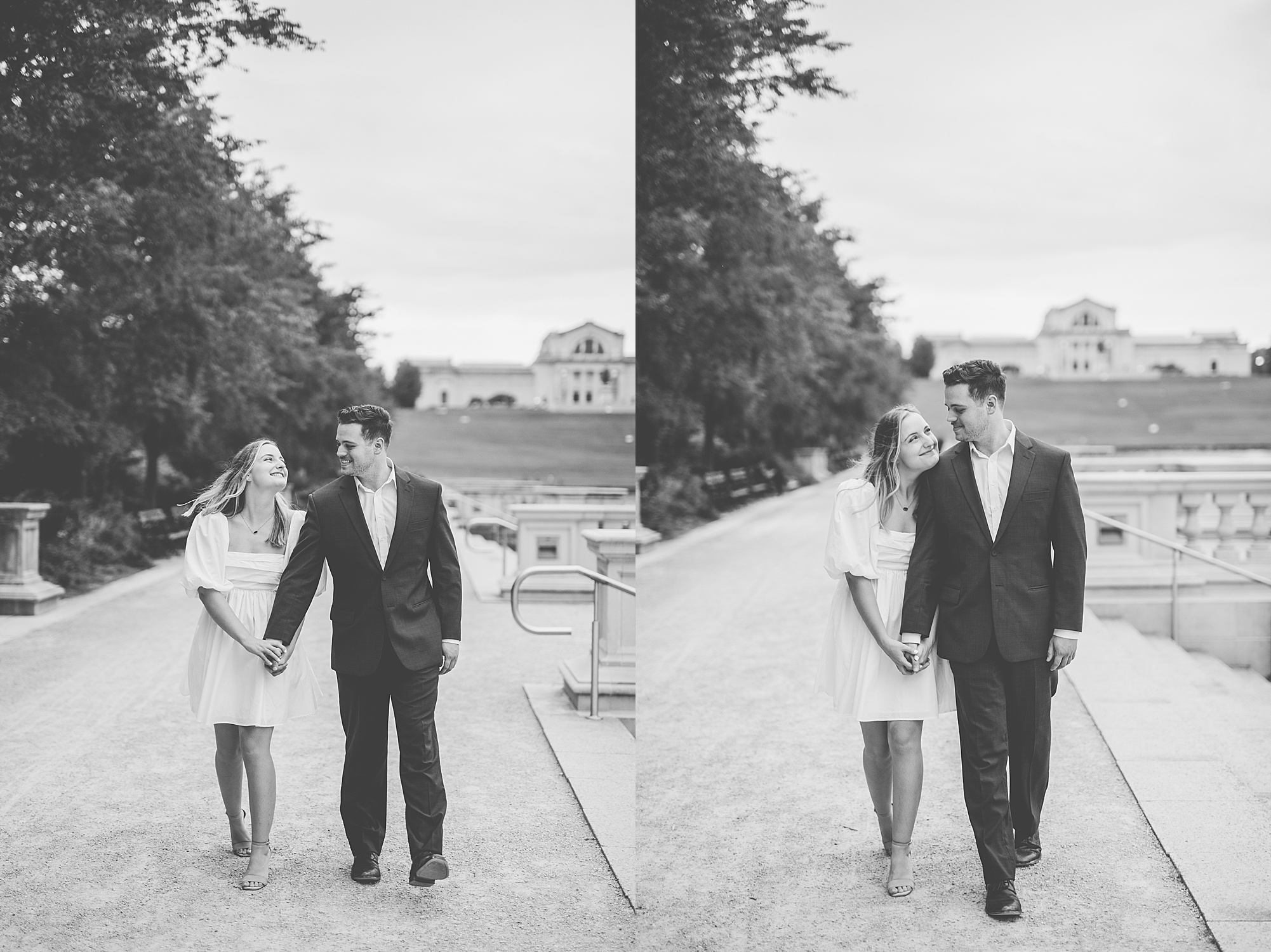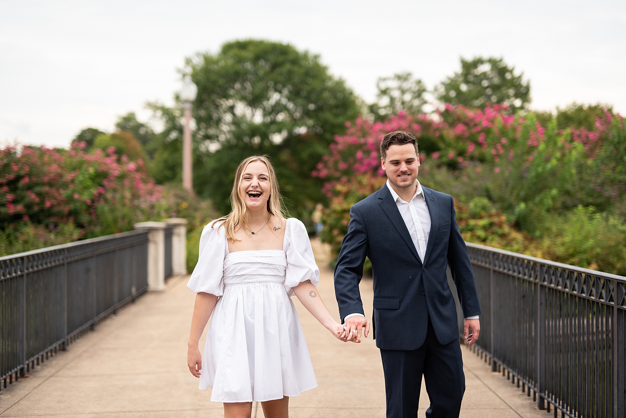 Kristen and Cam met in St. Louis back in 2020 when Kristen’s roommate invited some friends over. One of those friends brought their roommate along, who happened to be Cam! Kristen and Cam hit it off immediately and have been inseparable ever since their first date. They now live together in St. Louis, so it was important for them to capture their engagement photos in the city they love! We chose Forest Park because both Kristen and Cam loved nature and spending a lot of their free time outdoors. Kristen really wanted to incorporate a lot of flowers into her photos so luckily Forest Park had plenty of them! We found some perfect spots throughout the park on a beautiful evening and Cam did such an amazing job making Kristen laugh, they both were so photogenic and made my job super easy! Kristen picked out the cutest outfits for them both and we had gorgeous temperatures for August to top it all off! I loved capturing Kristen and Cam’s engagement session and I am so excited to see them again when they tie the knot next spring!