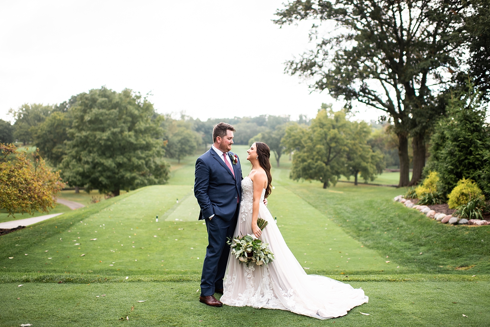 Afterwards, we were blessed with a small break in the rain to capture some more portraits of them with the gorgeous golf course, and then it was time to enter their reception! Lanie and Ryan told me they just wanted to enjoyed their wedding day with all of their friends and family. I believe they did just that! Their dance floor was packed all night long while everyone celebrated the new Mr. and Mrs. Hillestad! I could not be happier for Lanie and Ryan and I am so excited to share more from their big day!