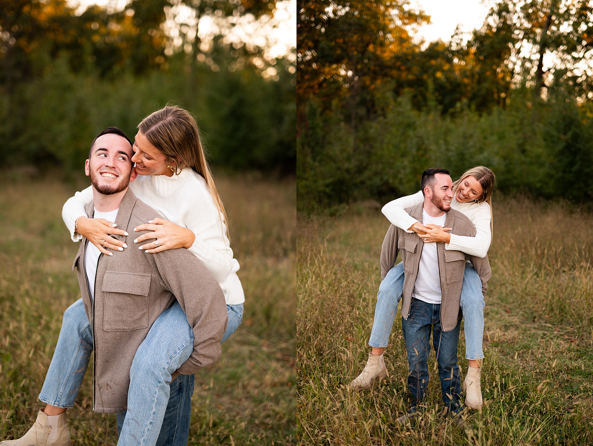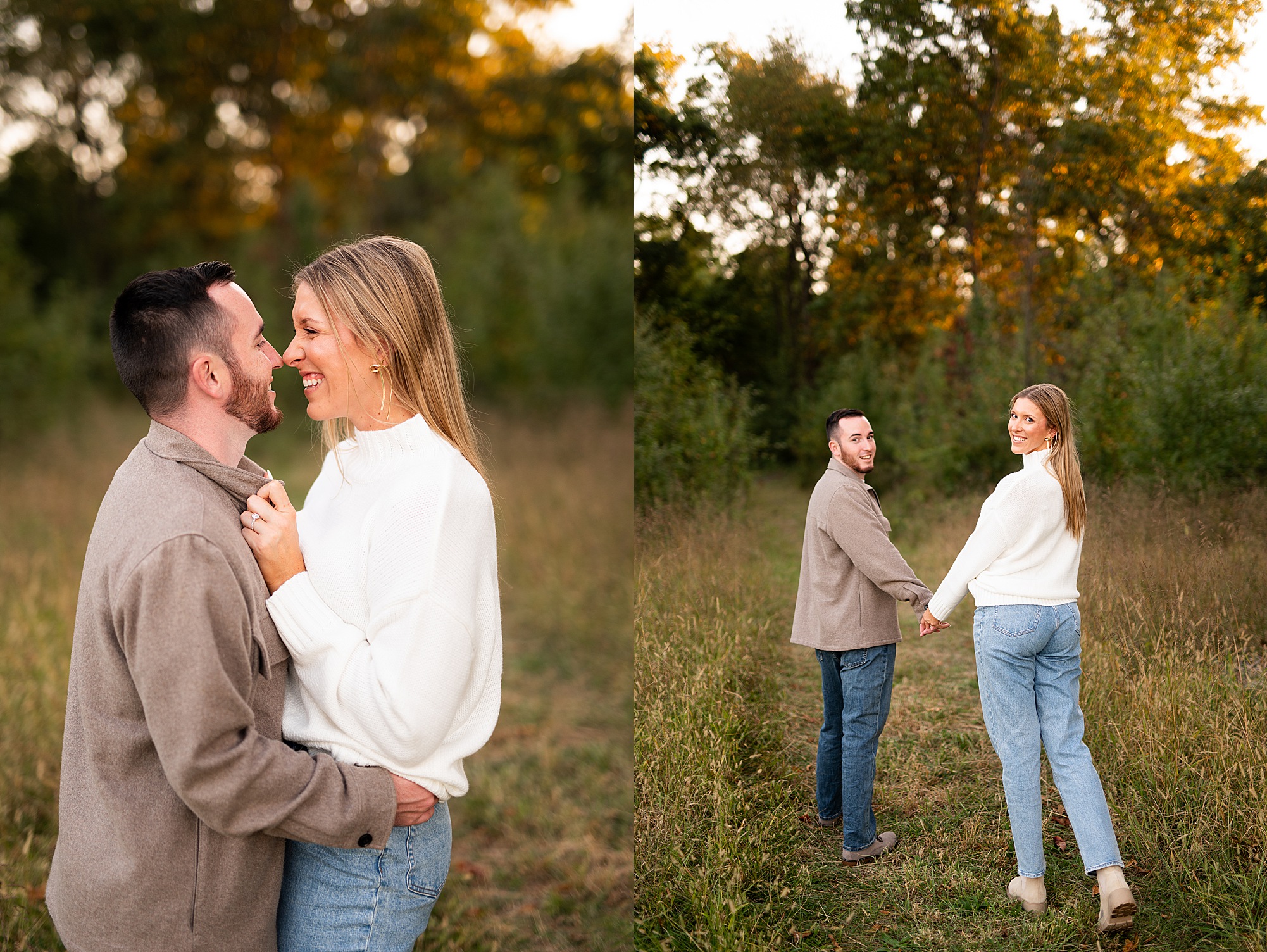 Logan and Steve were absolutely stunning for their engagement photos! We kicked things off with a chic bar vibe before heading to an open field to catch the most gorgeous fall sunset. I had so much fun getting to know them both more and can tell how comfortable and in love they are with each other!