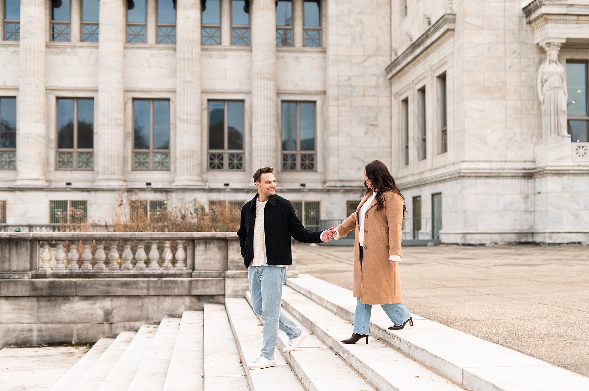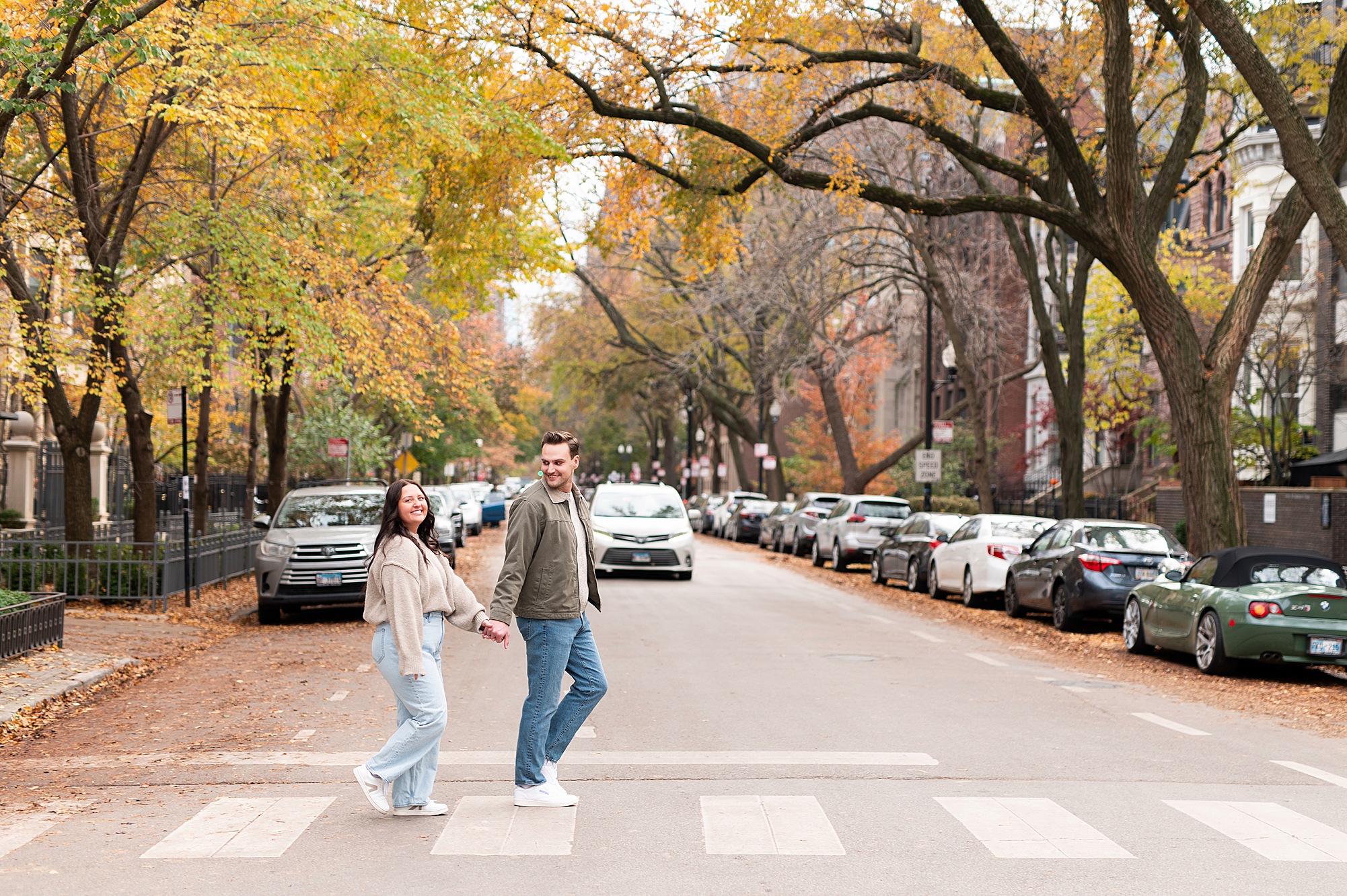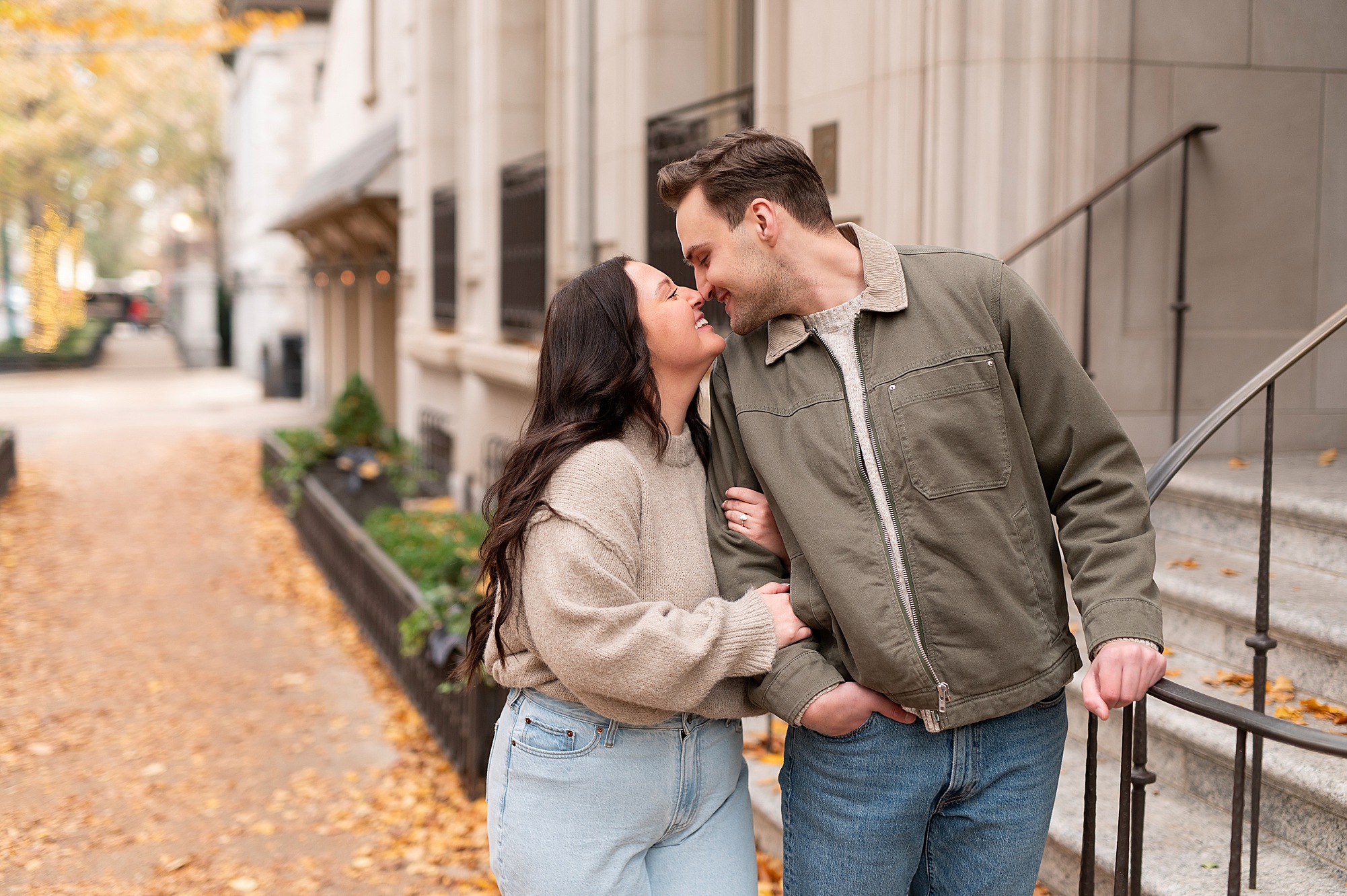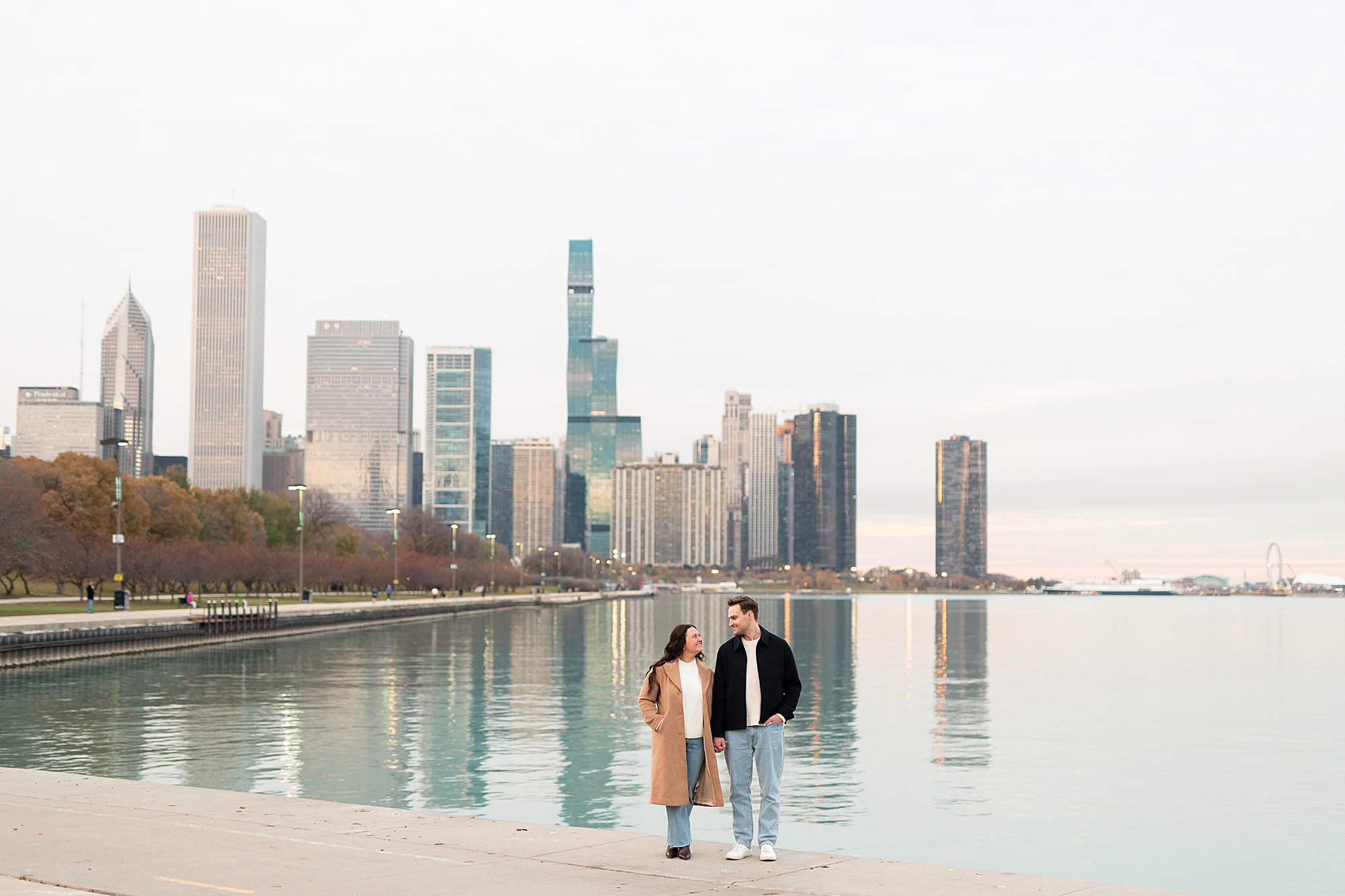 Chicago was the perfect backdrop for Madison and Ben’s engagement photos! These two moved to their favorite city last year, which is also where Ben proposed, so getting to explore their neighborhood with them made this session feel extra special! We wandered through the Gold Coast with the last of the fall leaves, stopped by the Field Museum for a clean and neutral look, and wrapped up along Lake Michigan with the dreamiest skyline views. Madison and Ben were absolute naturals in front of the camera, and I loved spending the afternoon getting to know them. I already can’t wait for their wedding day!