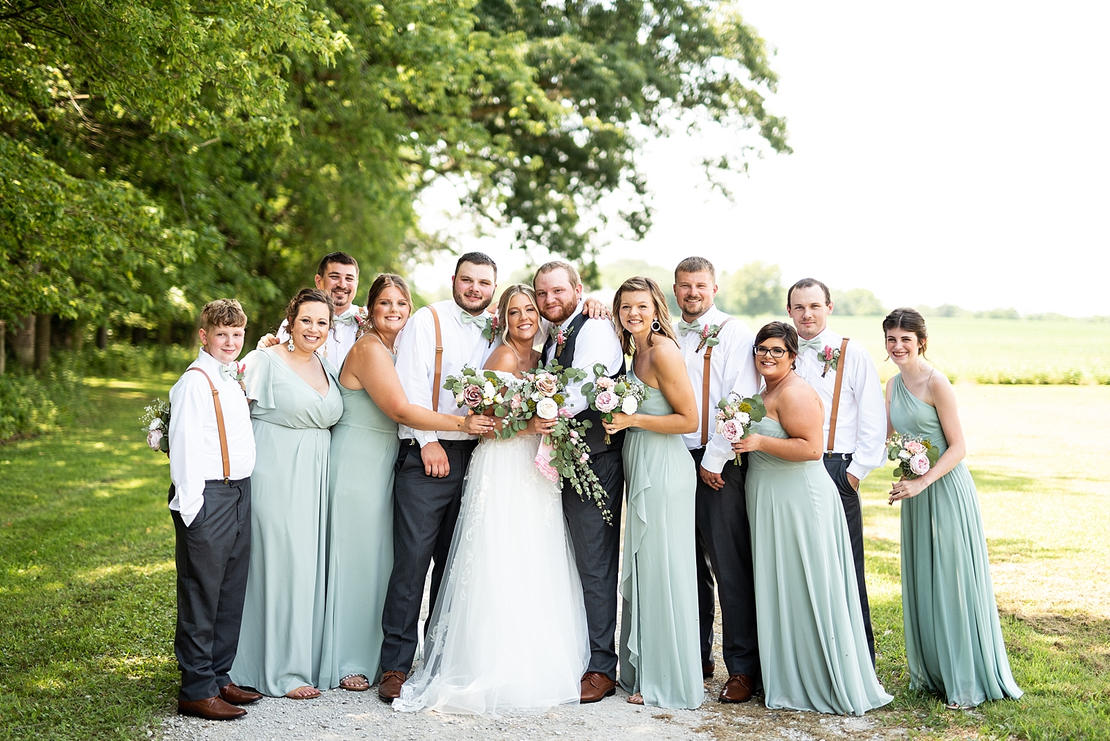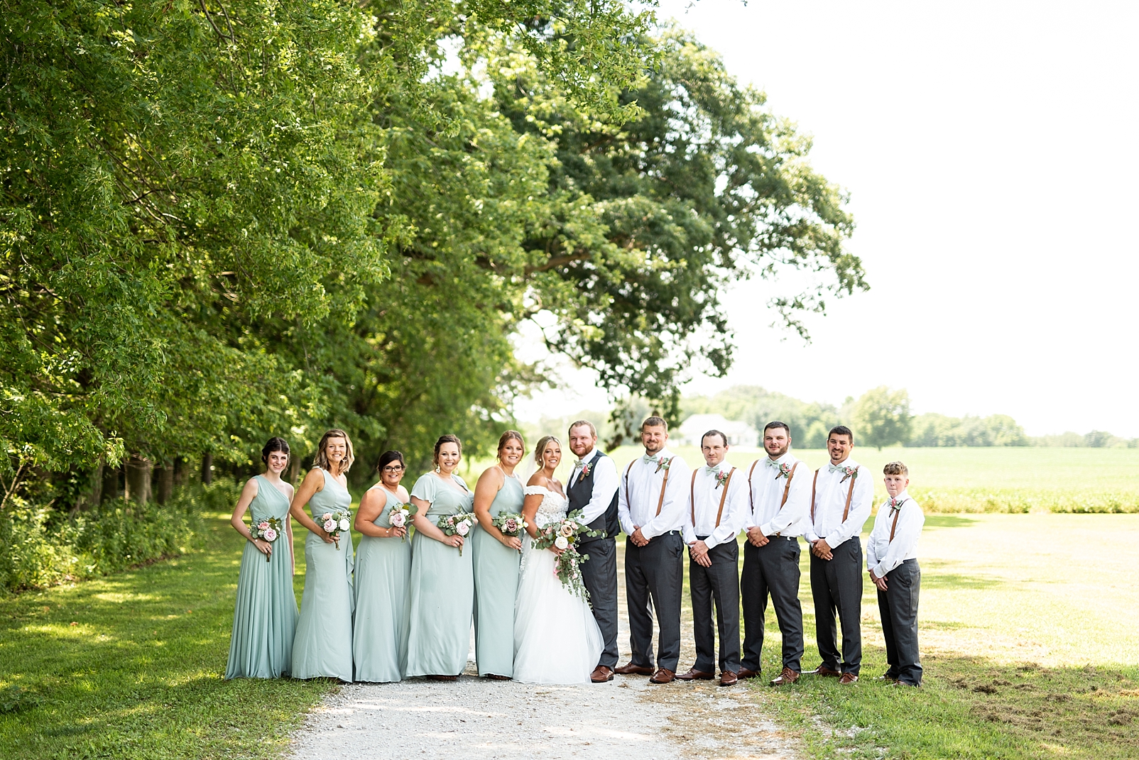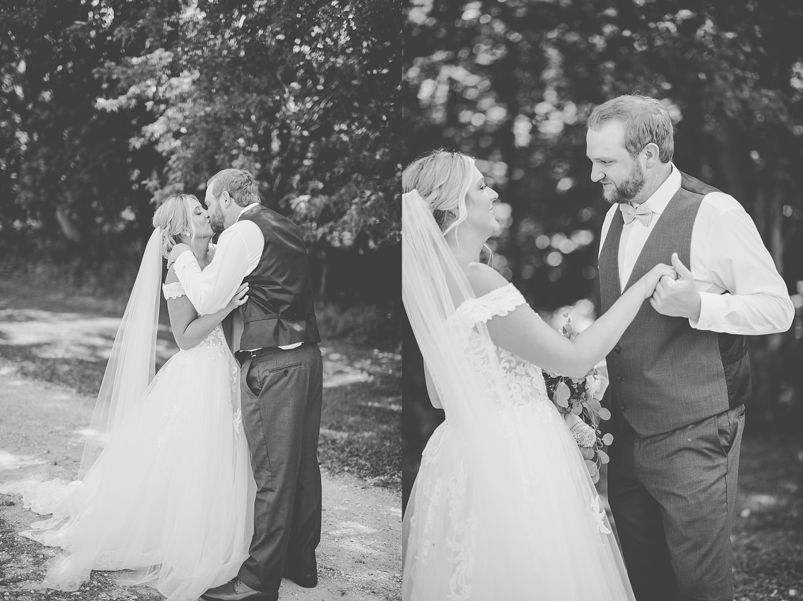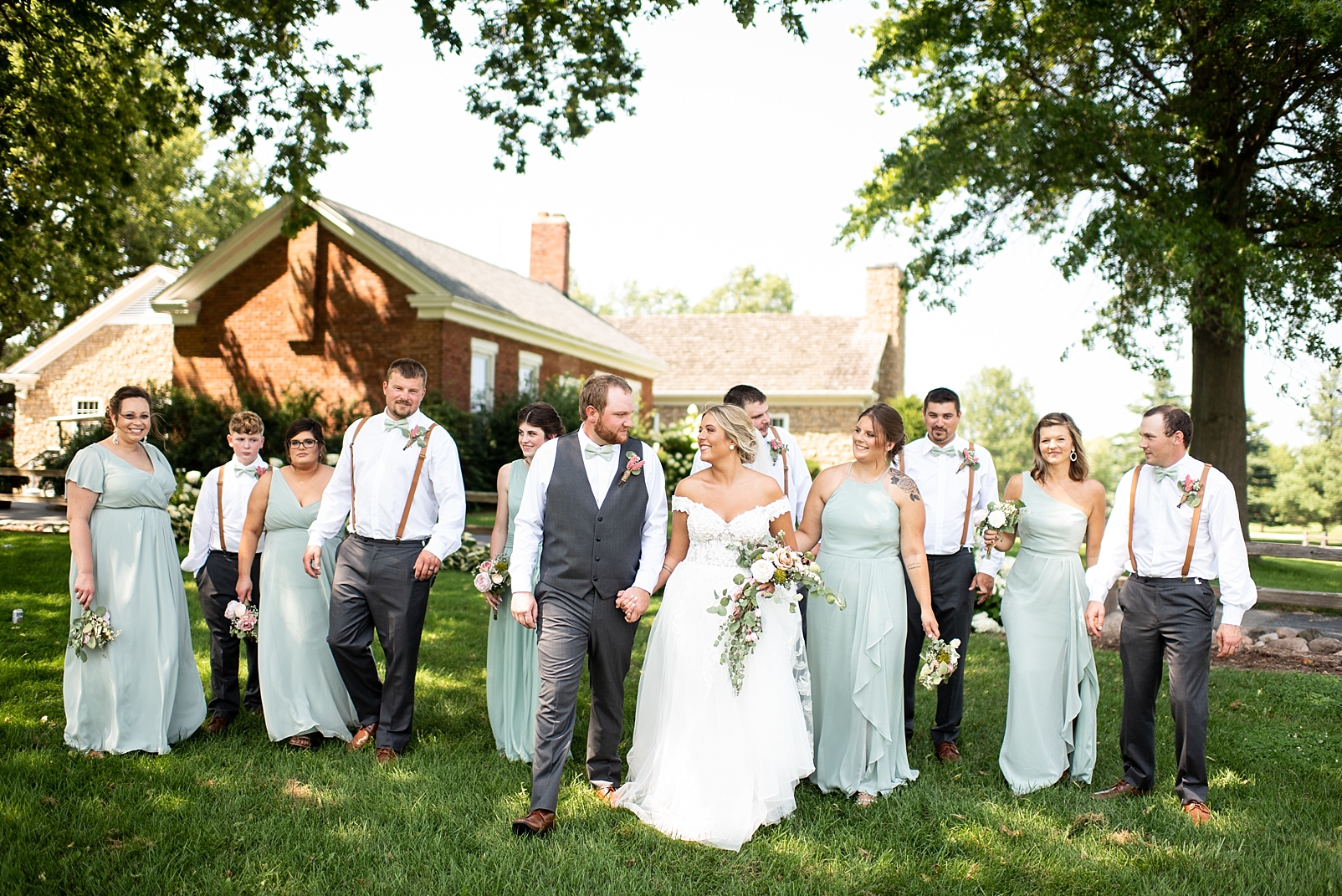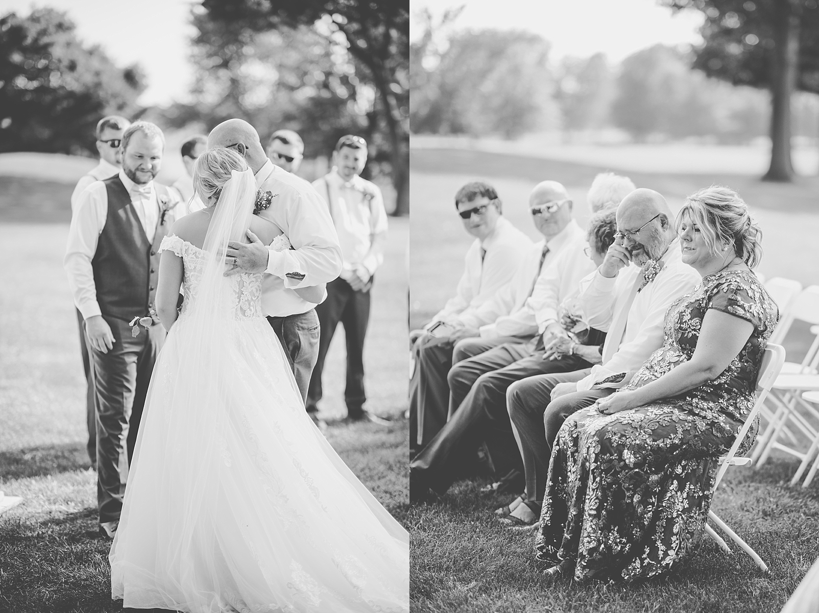 I have been lookin forward to Madison and Jake’s wedding for awhile now. It ended up being a warmer July day, but a nice breeze helped keep it mild! Madison has to be one of the most laid back brides I ever had. She and Jake were so calm and just enjoyed every part of their special day! Madison looked absolutely stunning getting ready and finally it was time to have her first looks. First, with her dad, definitely the most emotional person all day. He was so happy to see her and share this special moment. Then, he drove her up the lane from Jake’s parents house to Madison and Jake’s house to meet Jake for their first look. Jake seemed a little nervous, but was so happy when he finally got to see Madison. We then took the time to grab some photos of them right in their front yard. It was so special to them. We added their bridal party for some photos and then they all hopped on a party bus to head to the Rail Golf Course for their ceremony and reception.