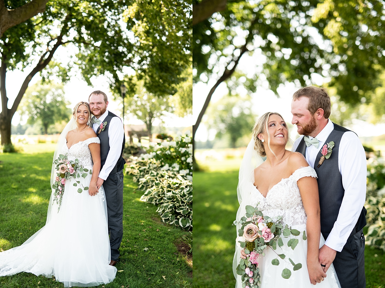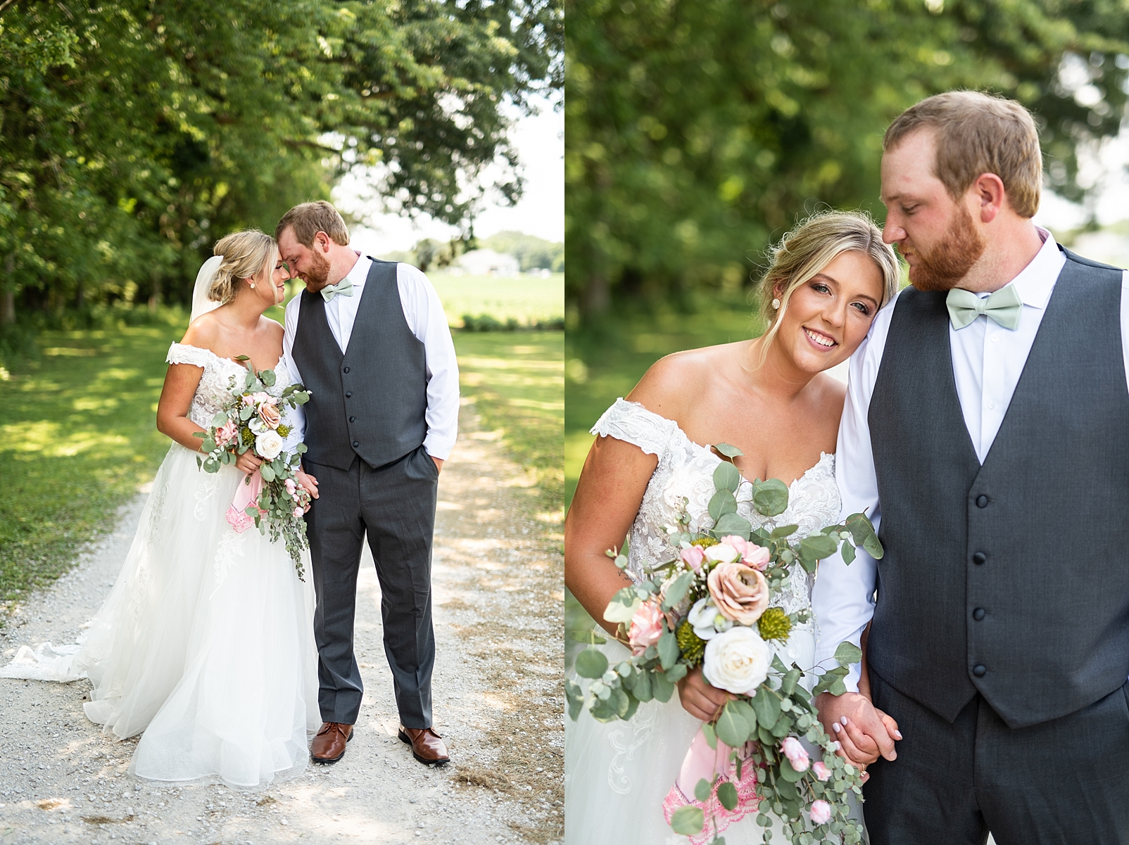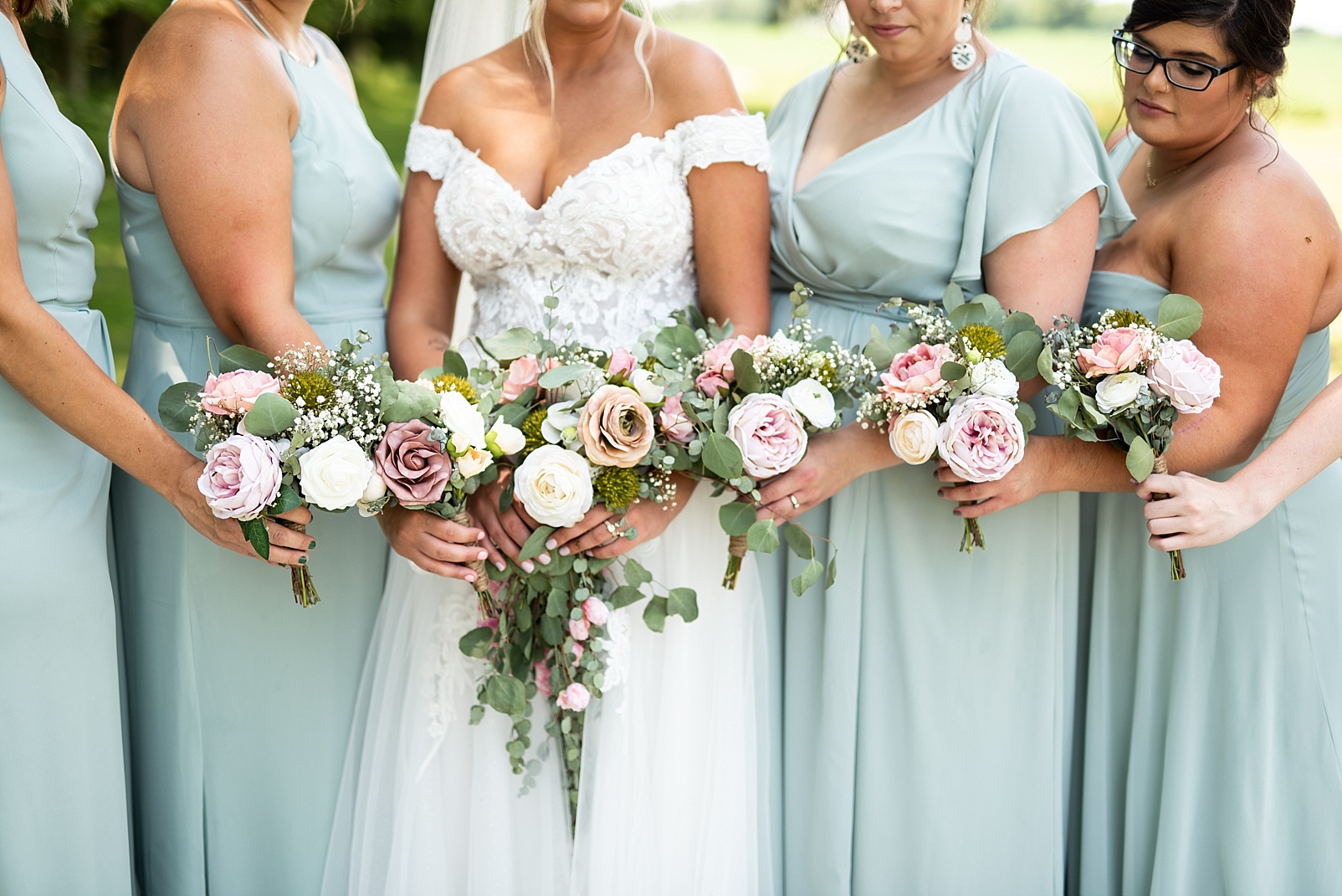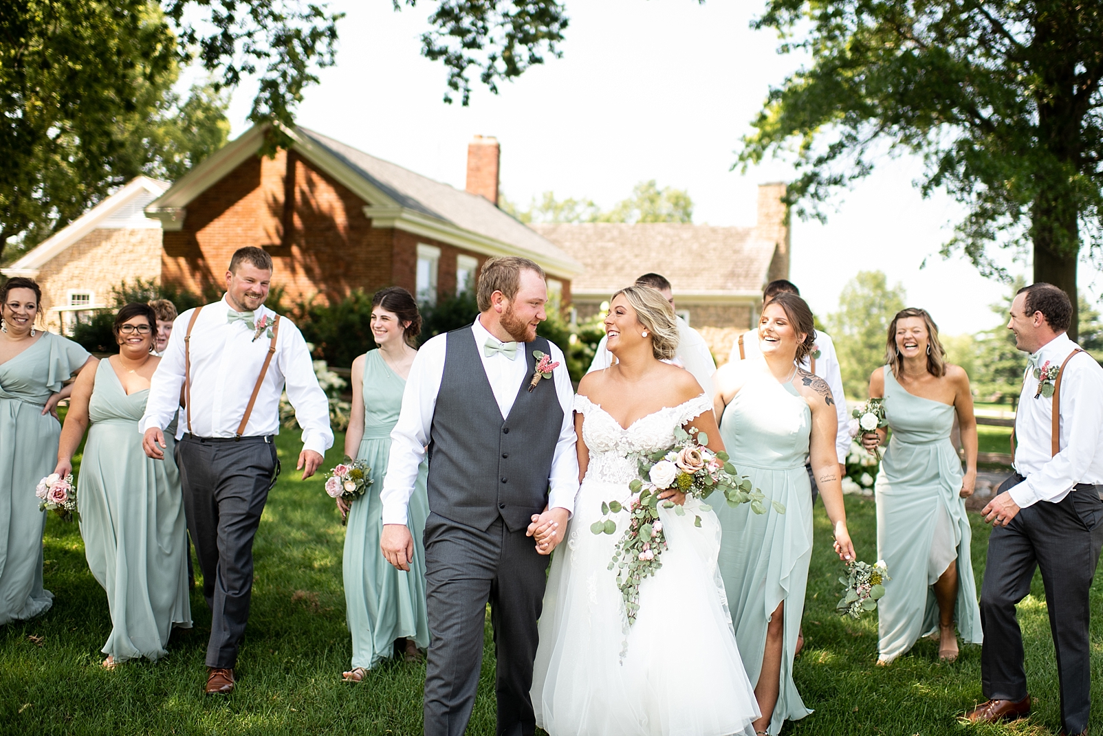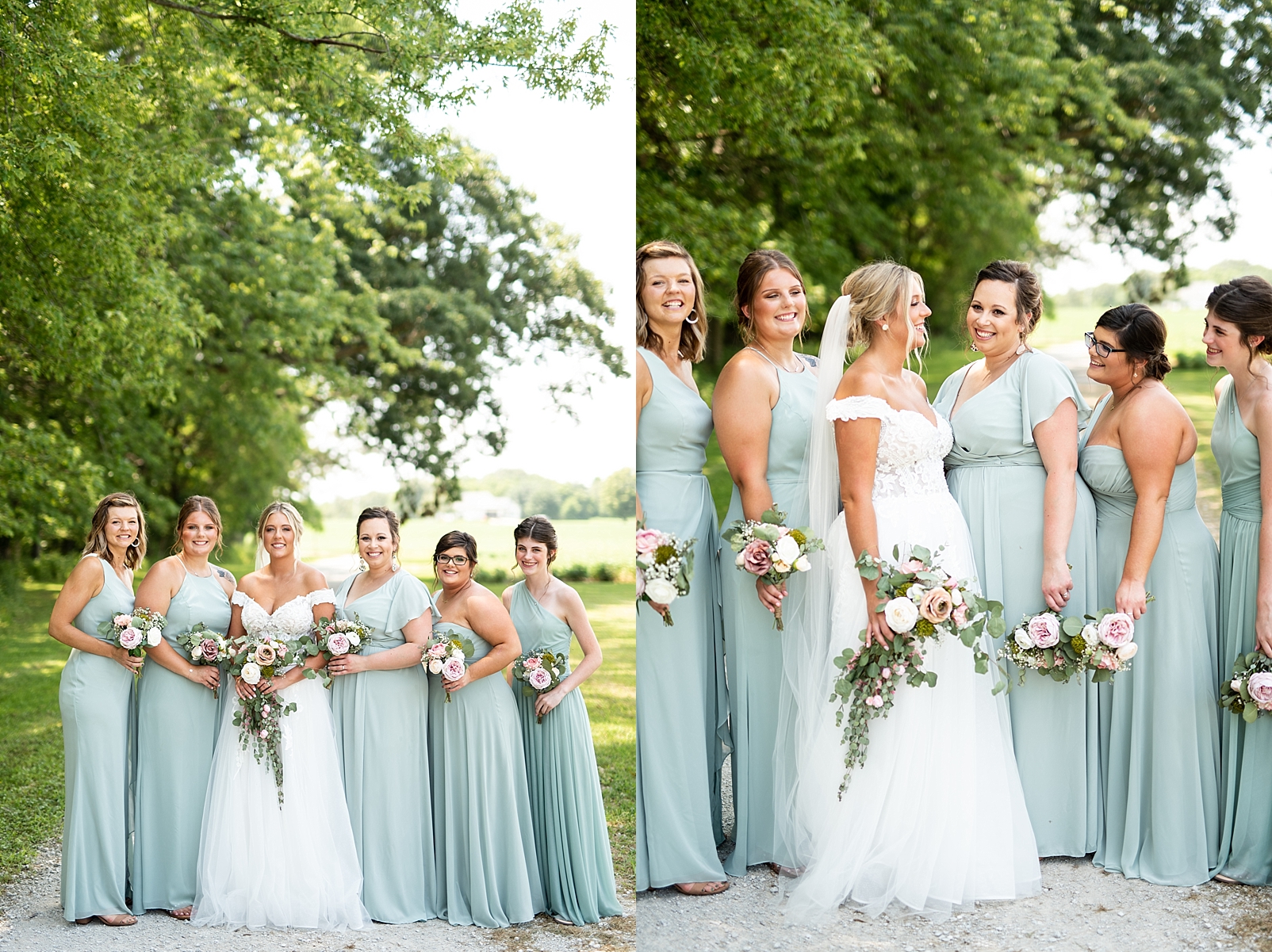 I have been lookin forward to Madison and Jake’s wedding for awhile now. It ended up being a warmer July day, but a nice breeze helped keep it mild! Madison has to be one of the most laid back brides I ever had. She and Jake were so calm and just enjoyed every part of their special day! Madison looked absolutely stunning getting ready and finally it was time to have her first looks. First, with her dad, definitely the most emotional person all day. He was so happy to see her and share this special moment. Then, he drove her up the lane from Jake’s parents house to Madison and Jake’s house to meet Jake for their first look. Jake seemed a little nervous, but was so happy when he finally got to see Madison. We then took the time to grab some photos of them right in their front yard. It was so special to them. We added their bridal party for some photos and then they all hopped on a party bus to head to the Rail Golf Course for their ceremony and reception.