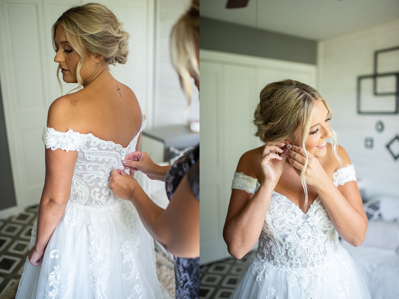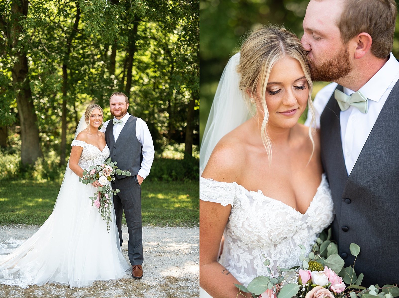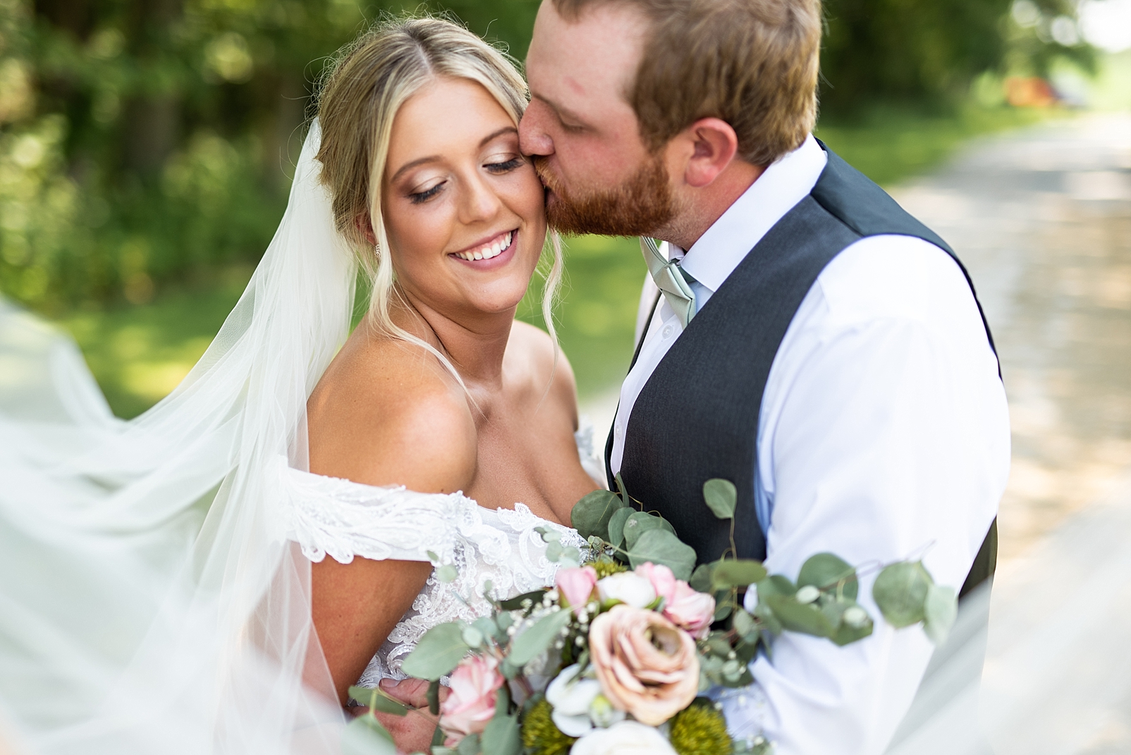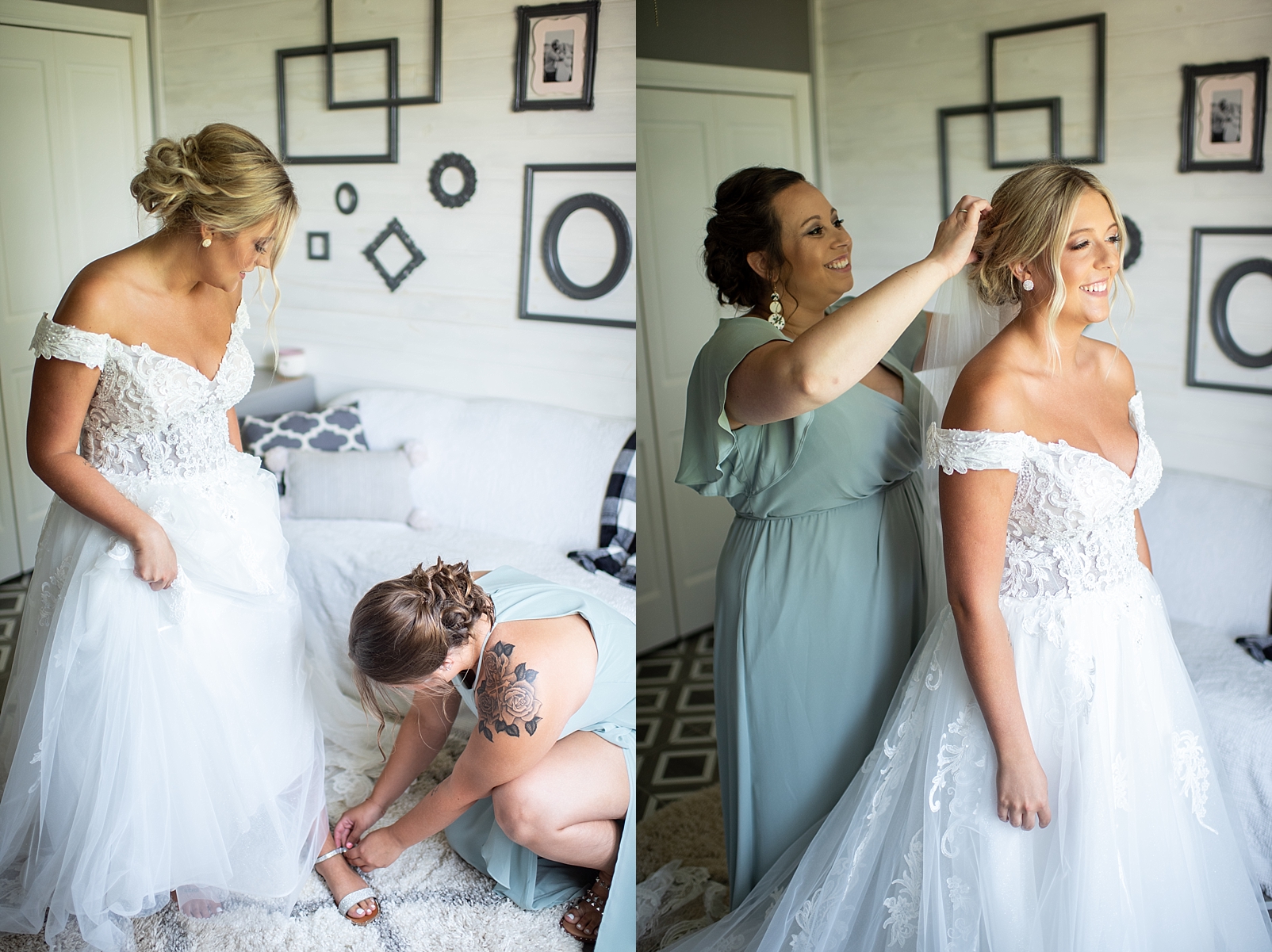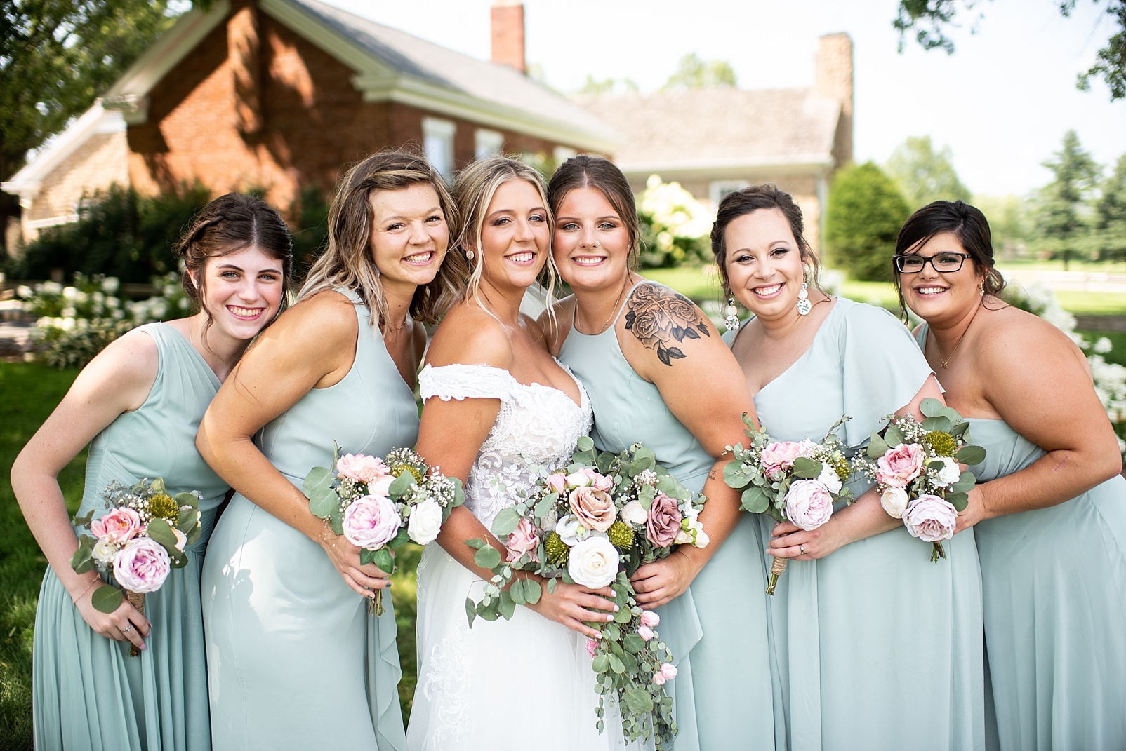 I have been lookin forward to Madison and Jake’s wedding for awhile now. It ended up being a warmer July day, but a nice breeze helped keep it mild! Madison has to be one of the most laid back brides I ever had. She and Jake were so calm and just enjoyed every part of their special day! Madison looked absolutely stunning getting ready and finally it was time to have her first looks. First, with her dad, definitely the most emotional person all day. He was so happy to see her and share this special moment. Then, he drove her up the lane from Jake’s parents house to Madison and Jake’s house to meet Jake for their first look. Jake seemed a little nervous, but was so happy when he finally got to see Madison. We then took the time to grab some photos of them right in their front yard. It was so special to them. We added their bridal party for some photos and then they all hopped on a party bus to head to the Rail Golf Course for their ceremony and reception.