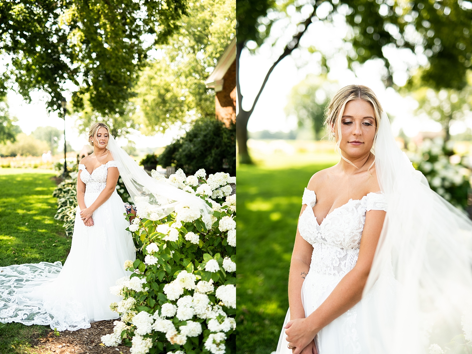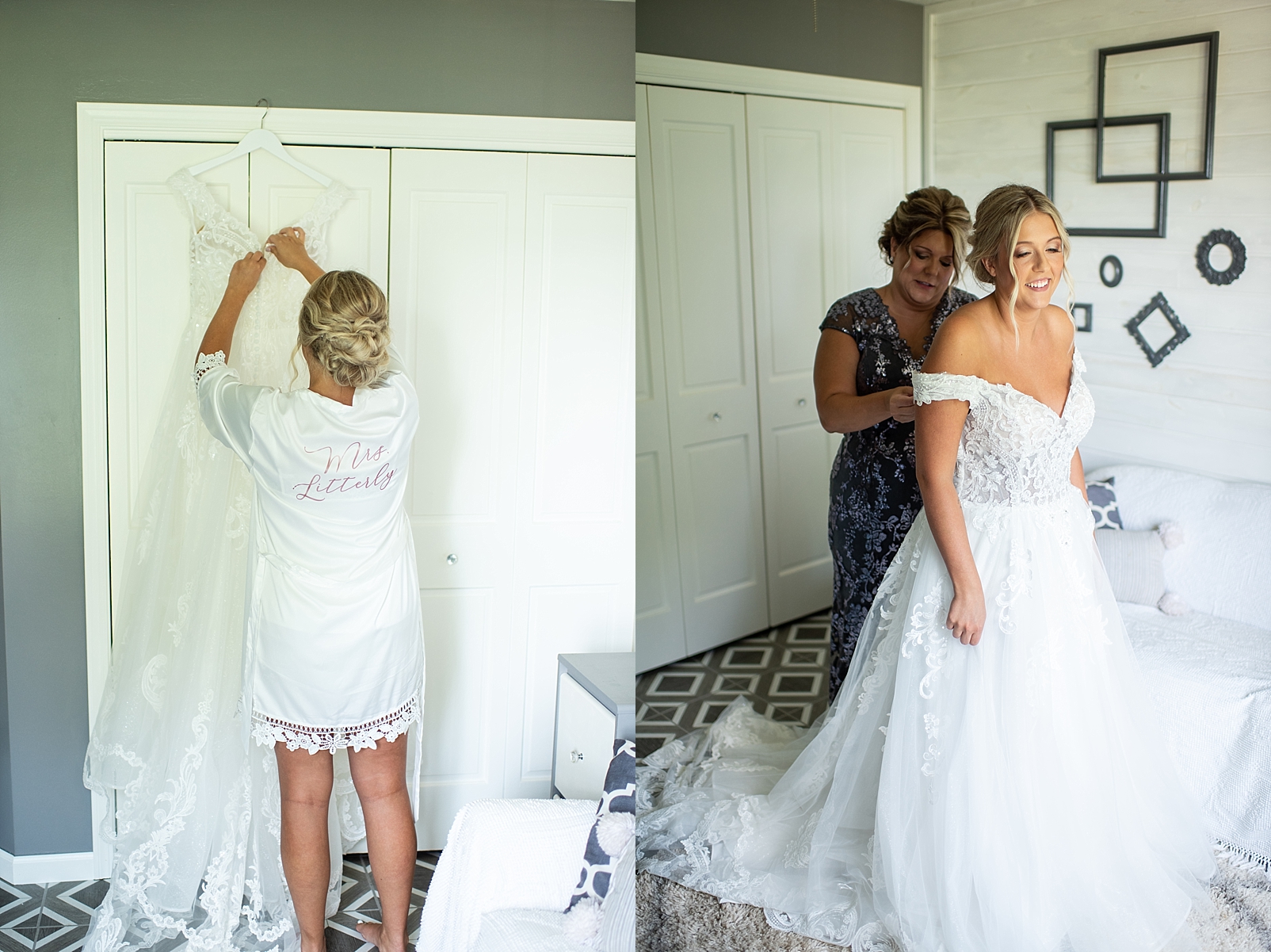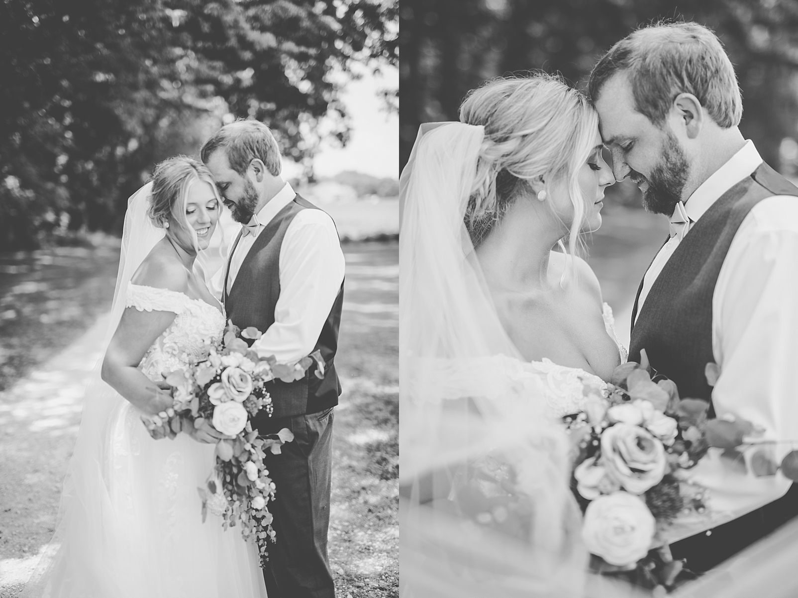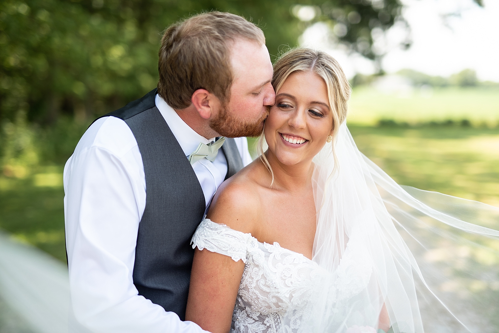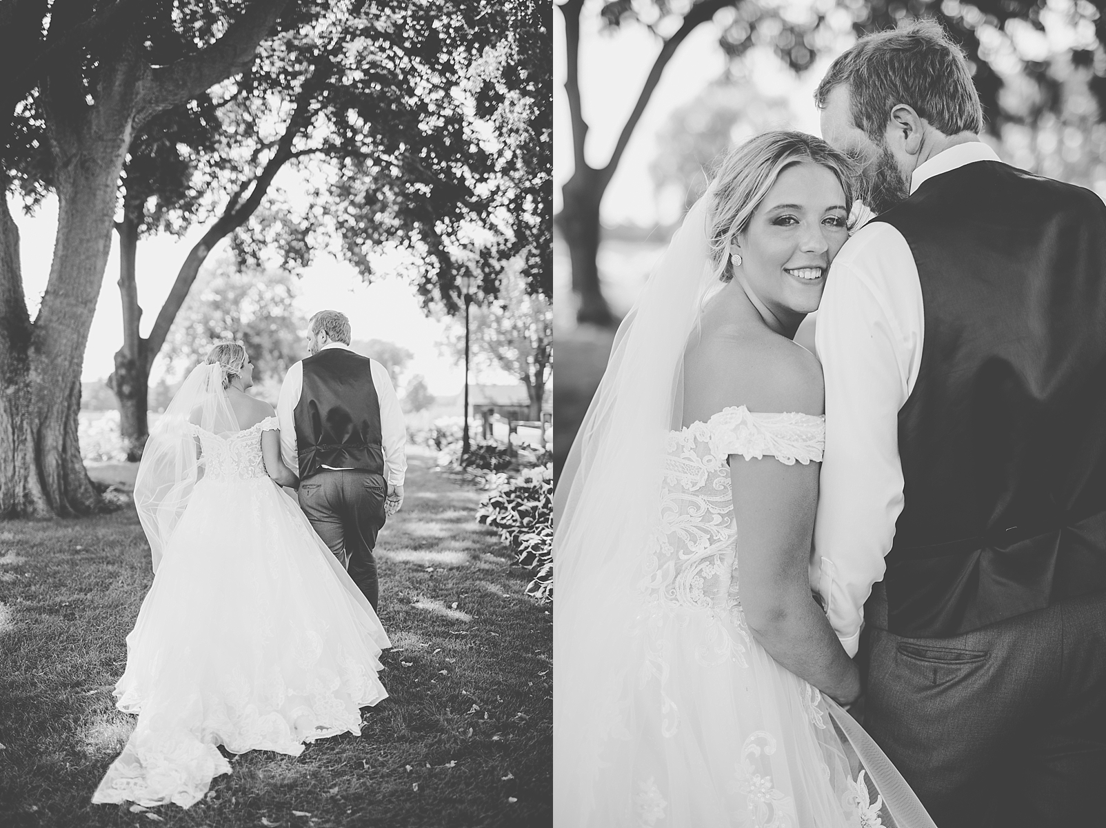 I have been lookin forward to Madison and Jake’s wedding for awhile now. It ended up being a warmer July day, but a nice breeze helped keep it mild! Madison has to be one of the most laid back brides I ever had. She and Jake were so calm and just enjoyed every part of their special day! Madison looked absolutely stunning getting ready and finally it was time to have her first looks. First, with her dad, definitely the most emotional person all day. He was so happy to see her and share this special moment. Then, he drove her up the lane from Jake’s parents house to Madison and Jake’s house to meet Jake for their first look. Jake seemed a little nervous, but was so happy when he finally got to see Madison. We then took the time to grab some photos of them right in their front yard. It was so special to them. We added their bridal party for some photos and then they all hopped on a party bus to head to the Rail Golf Course for their ceremony and reception.