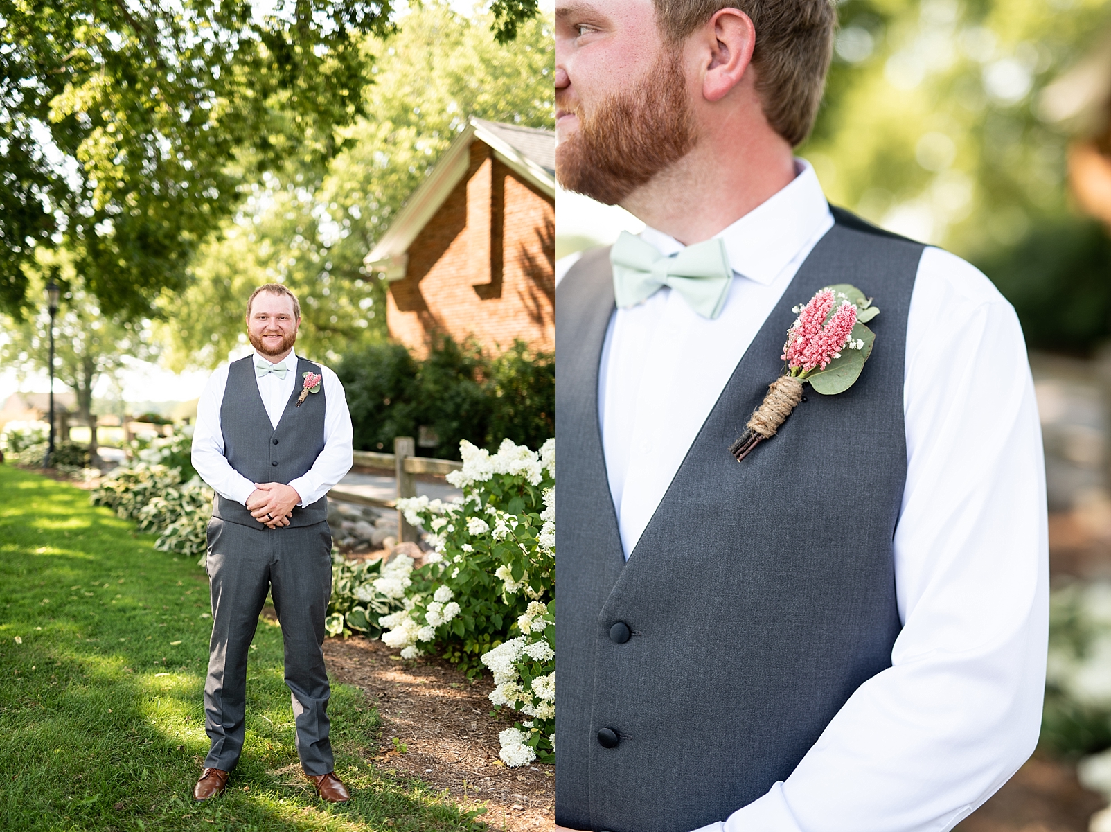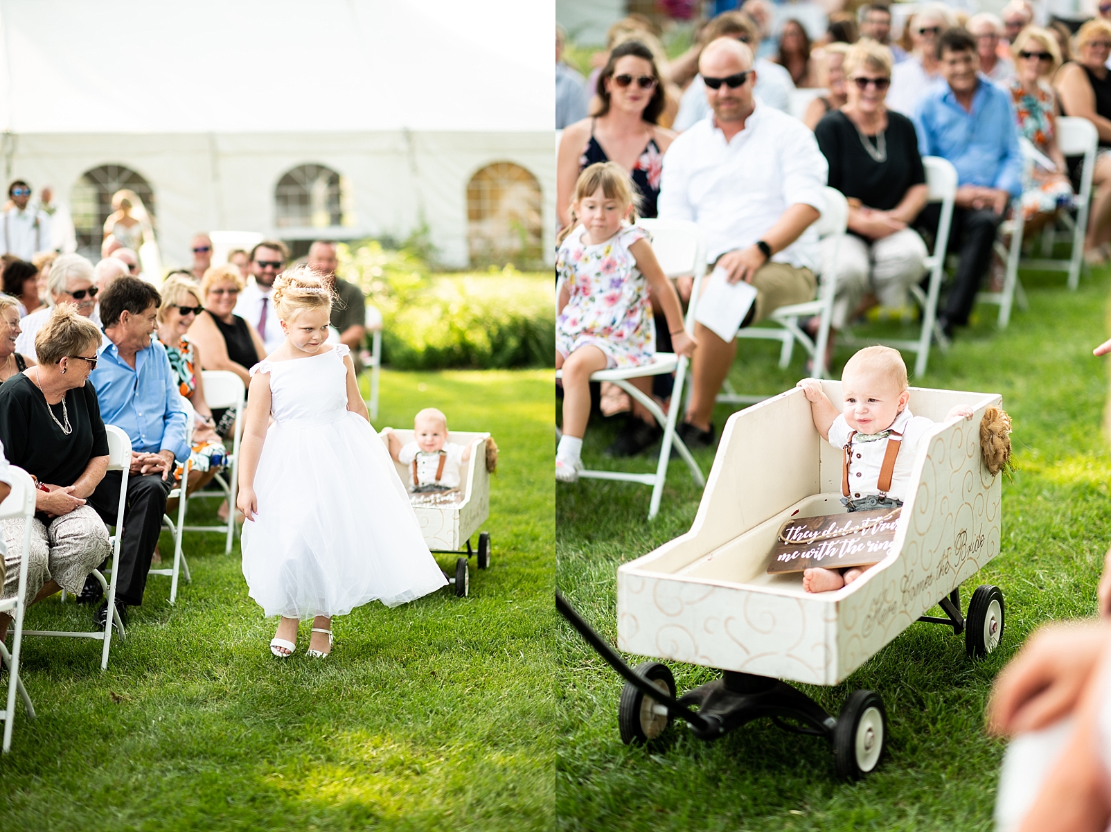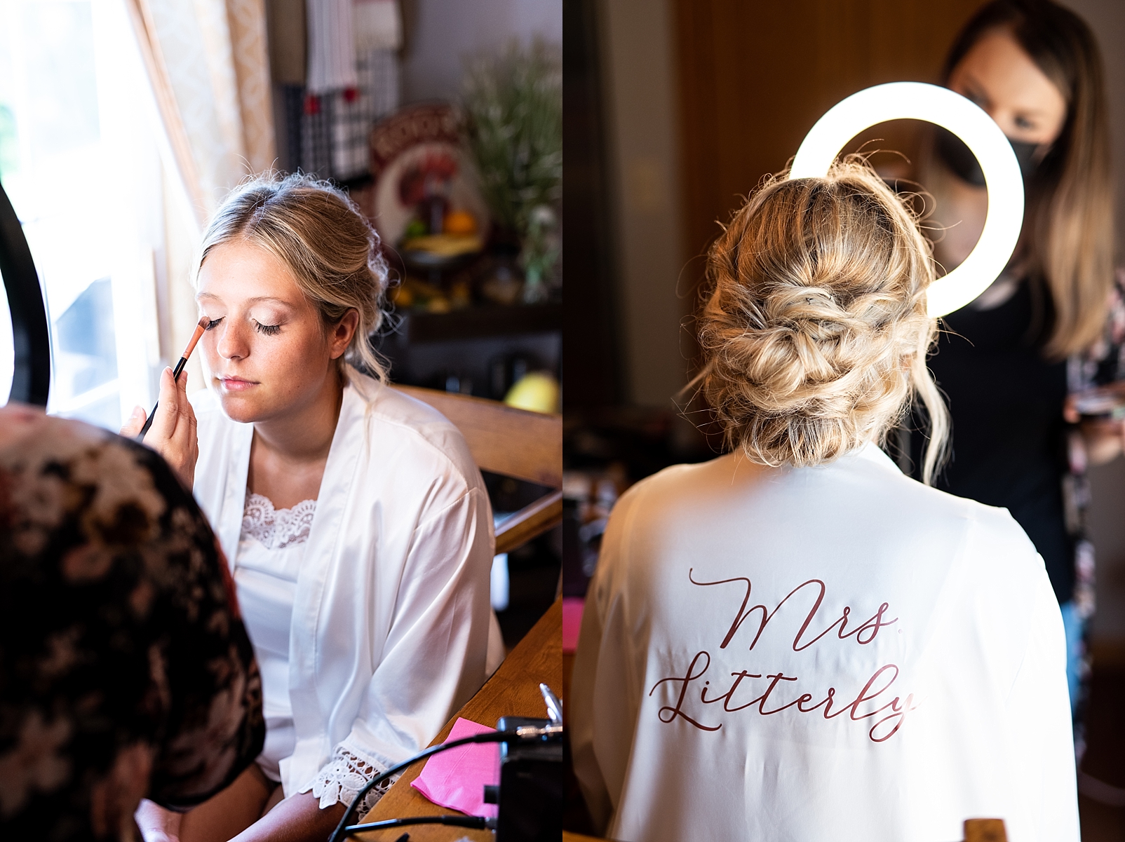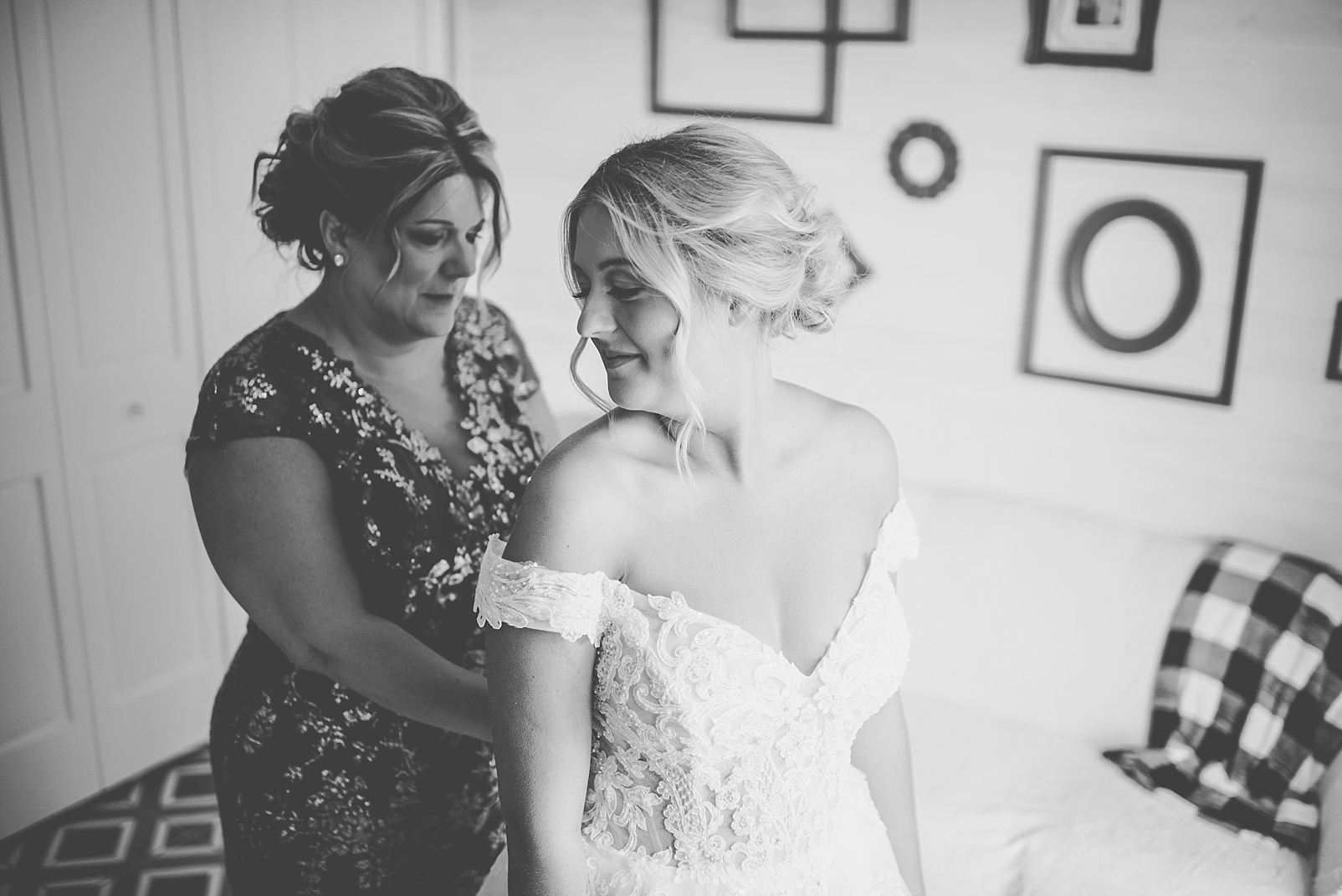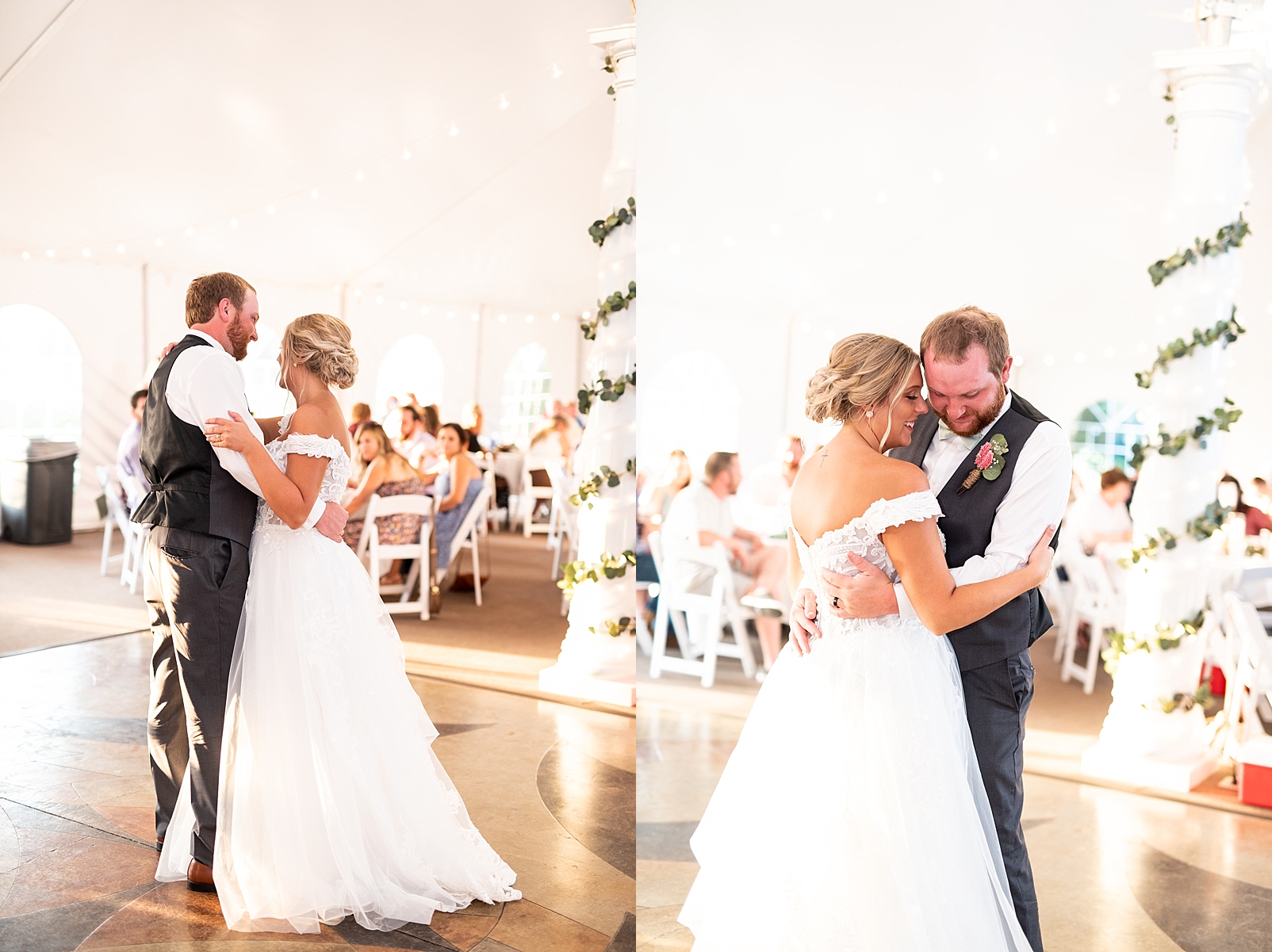 I have been lookin forward to Madison and Jake’s wedding for awhile now. It ended up being a warmer July day, but a nice breeze helped keep it mild! Madison has to be one of the most laid back brides I ever had. She and Jake were so calm and just enjoyed every part of their special day! Madison looked absolutely stunning getting ready and finally it was time to have her first looks. First, with her dad, definitely the most emotional person all day. He was so happy to see her and share this special moment. Then, he drove her up the lane from Jake’s parents house to Madison and Jake’s house to meet Jake for their first look. Jake seemed a little nervous, but was so happy when he finally got to see Madison. We then took the time to grab some photos of them right in their front yard. It was so special to them. We added their bridal party for some photos and then they all hopped on a party bus to head to the Rail Golf Course for their ceremony and reception.