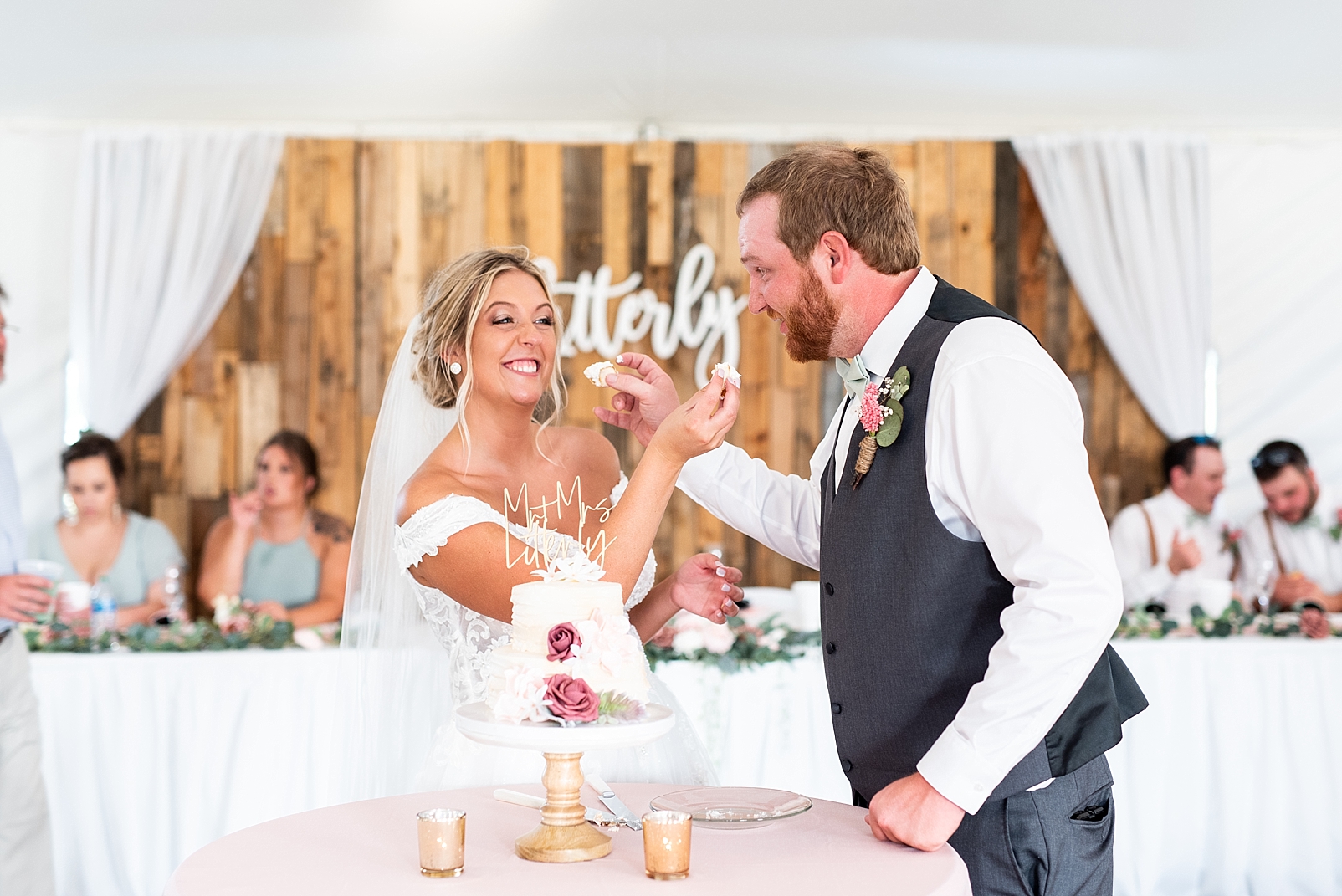 Their ceremony was so beautiful, performed by Jake’s aunt who made it so special to them by reading answers to some questions she asked Jake and Madison about each other. There were a few tears as they exchanged vows and rings, but so much happiness as they shared their first kiss and were finally announced at Mr. and Mrs. Litterly! They never stopped smiling all the way down the aisle!