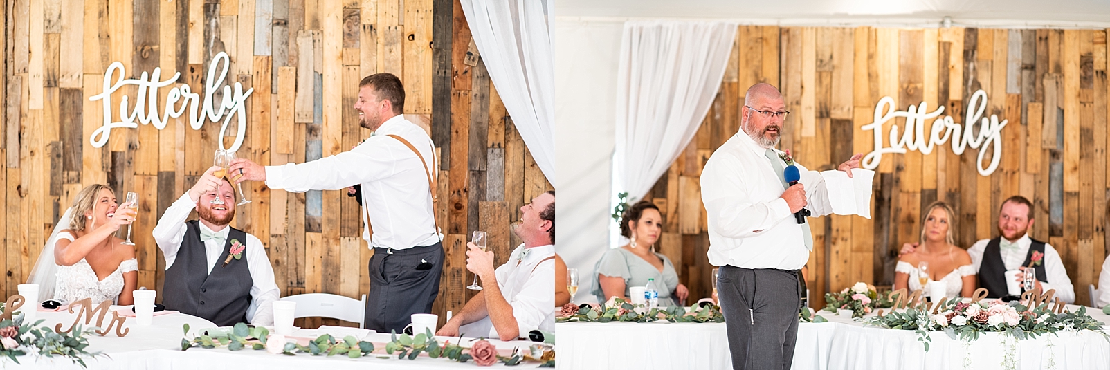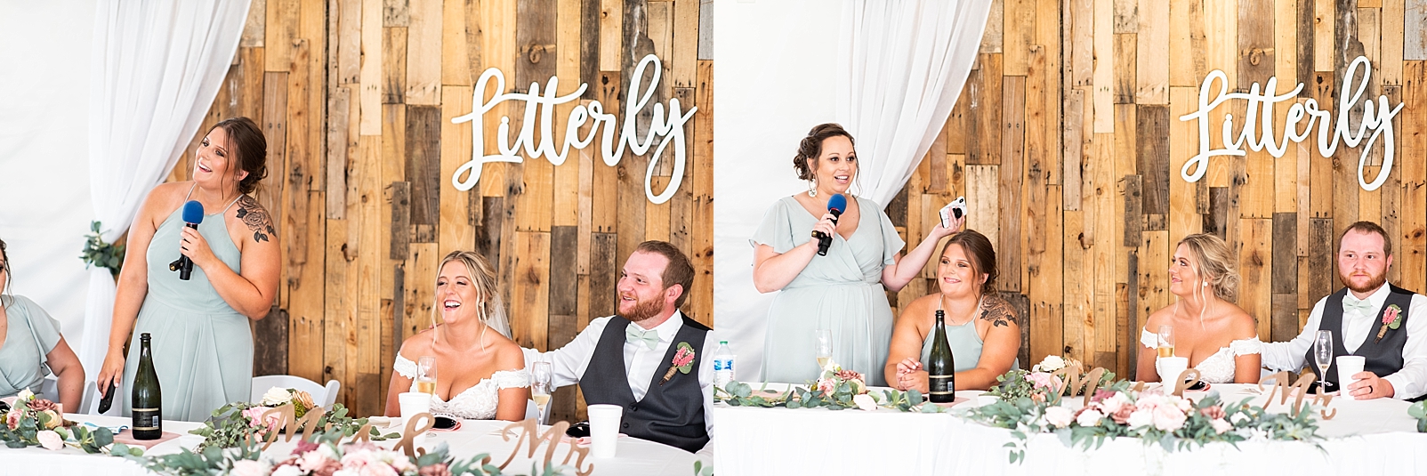 They had a wonderful cocktail hour and then entered into their reception. Madison and her mom worked so hard to create such a gorgeous reception space full of beautiful flowers. They threw a huge party with all of their friends and family there to celebrate them! It was truly such an amazing day and I could not be happier for Madison and Jake. I am so happy to have been a part of it and even more excited to share more photos here! Congratulations Mr. and Mrs. Litterly!