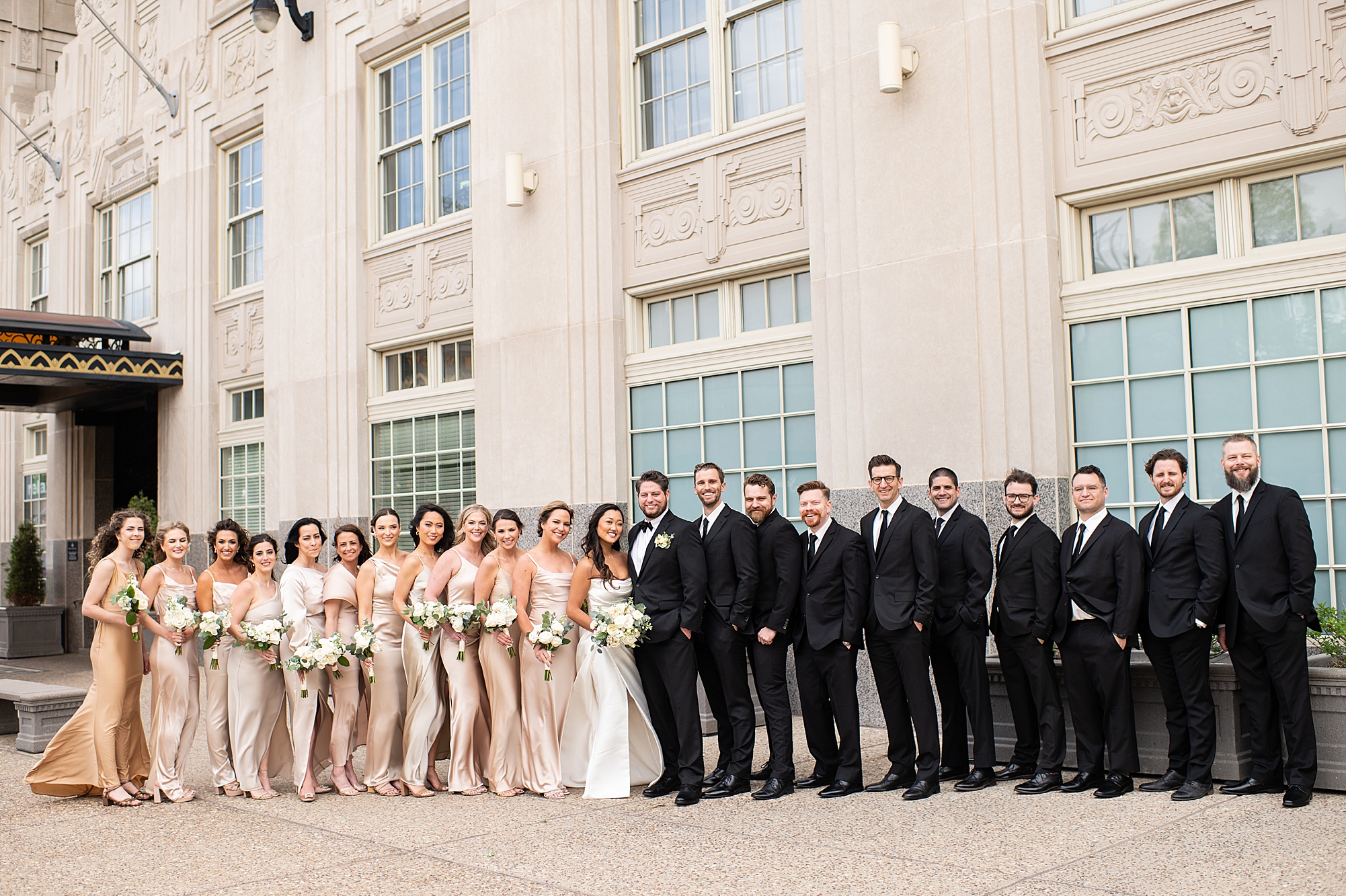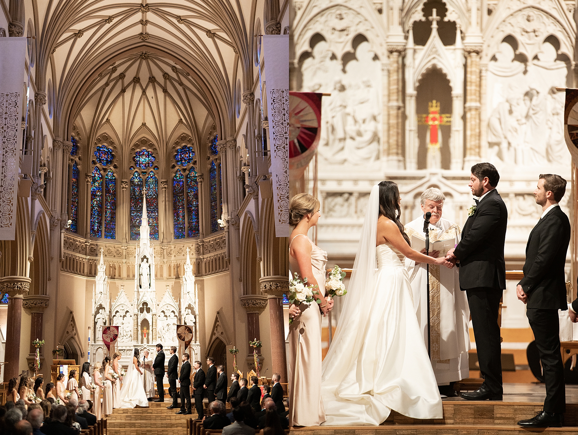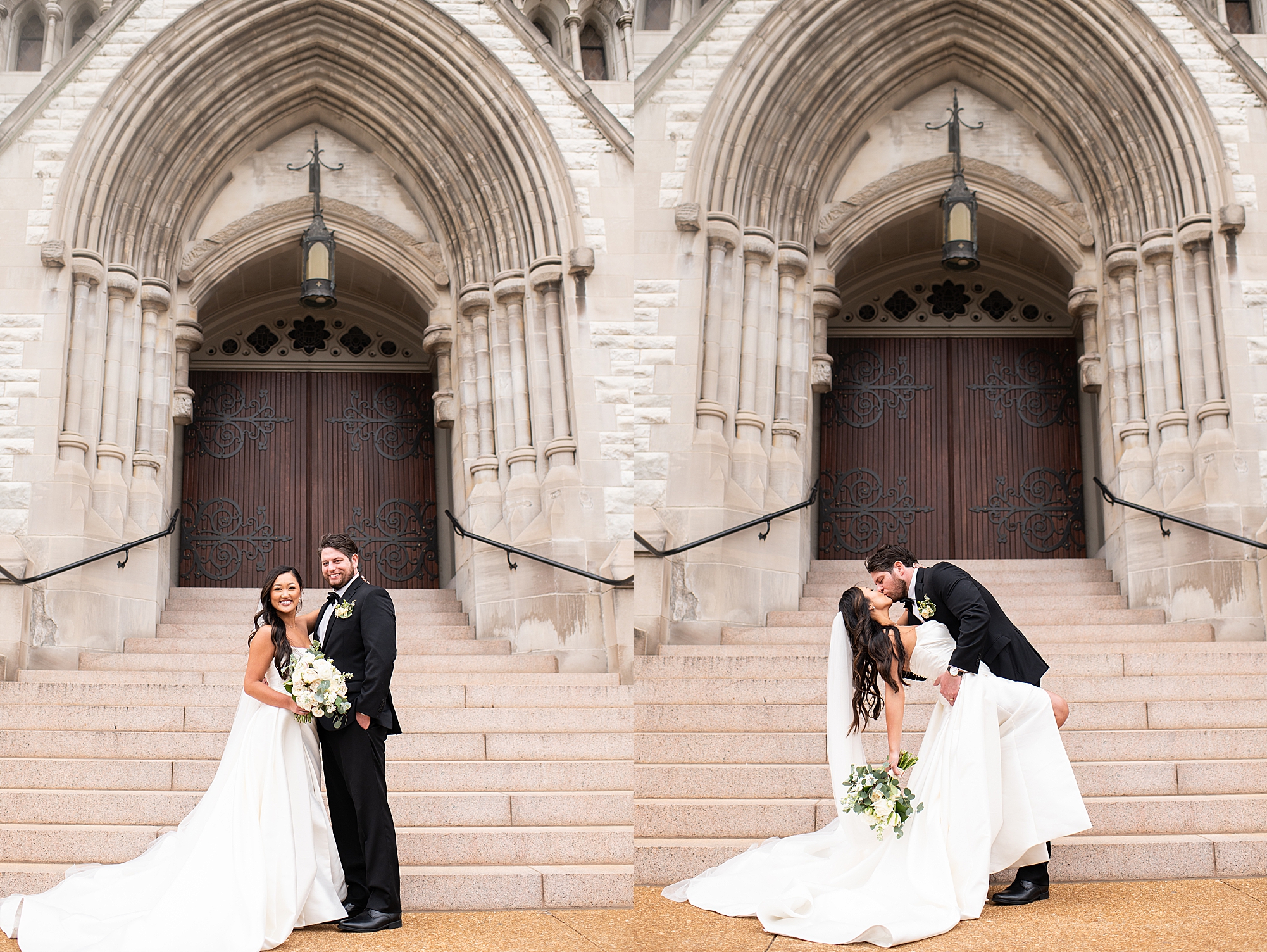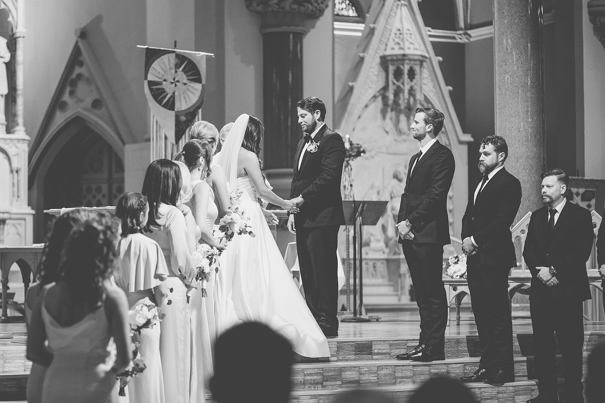 I could not have been more excited to capture Mallory and Zach’s St. Louis wedding day! They met in high school and started dating while going to Physical Therapy school at St. Louis University, so what better setting than Saint Francis Xavier College Church right on SLU’s campus? Mallory and Zach both spent a relaxing morning at the Chase Park plaza getting ready with their wedding parties. Mallory’s mom helped her put on her final details, she was absolutely stunning in her custom gown fit for a princess. Mallory and Zach shared a beautiful first look and spent a few moments really taking in the fact that it was their wedding day! We met up with their bridal party and took some really fun portraits before heading to the church to make it official.