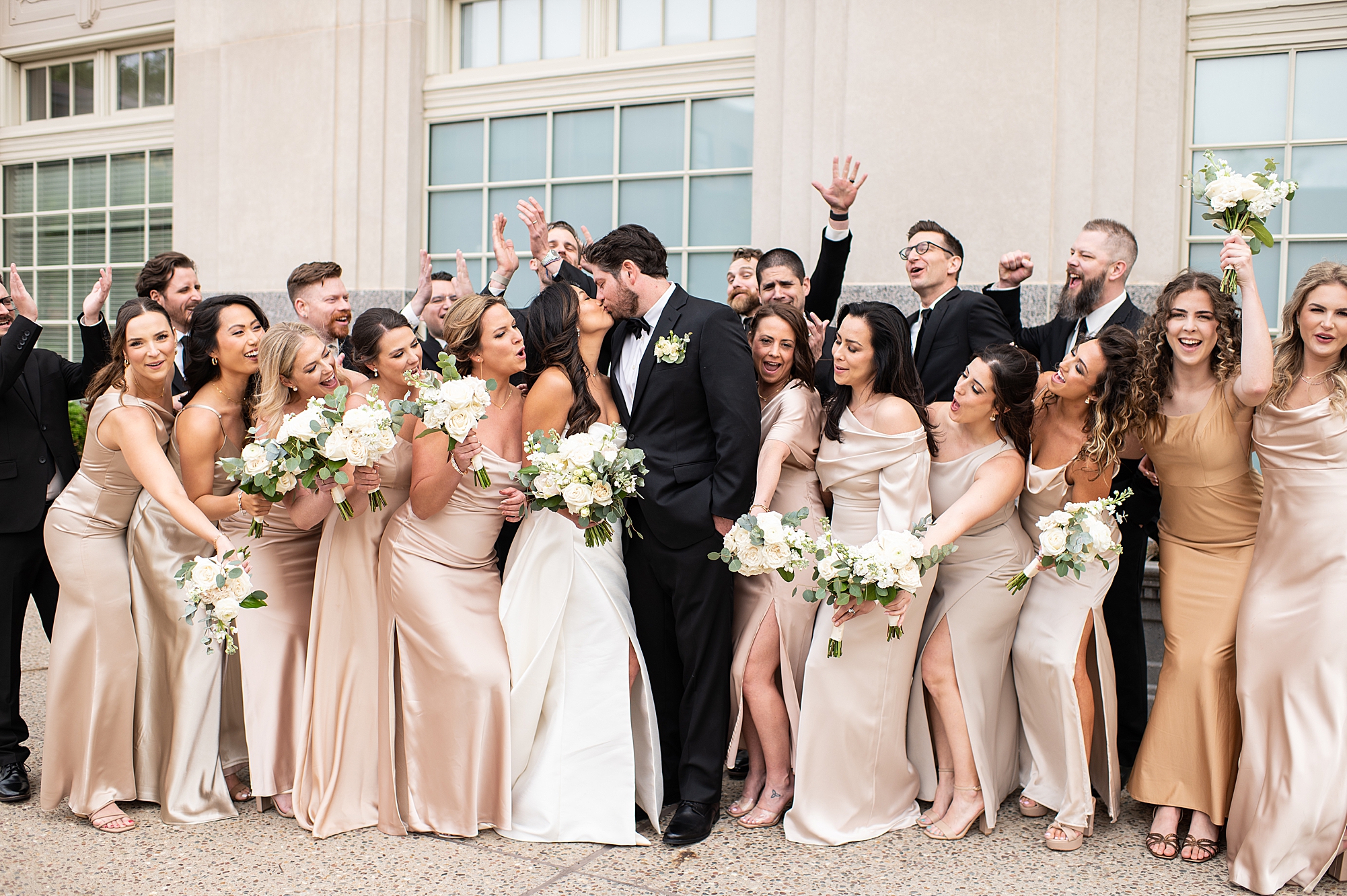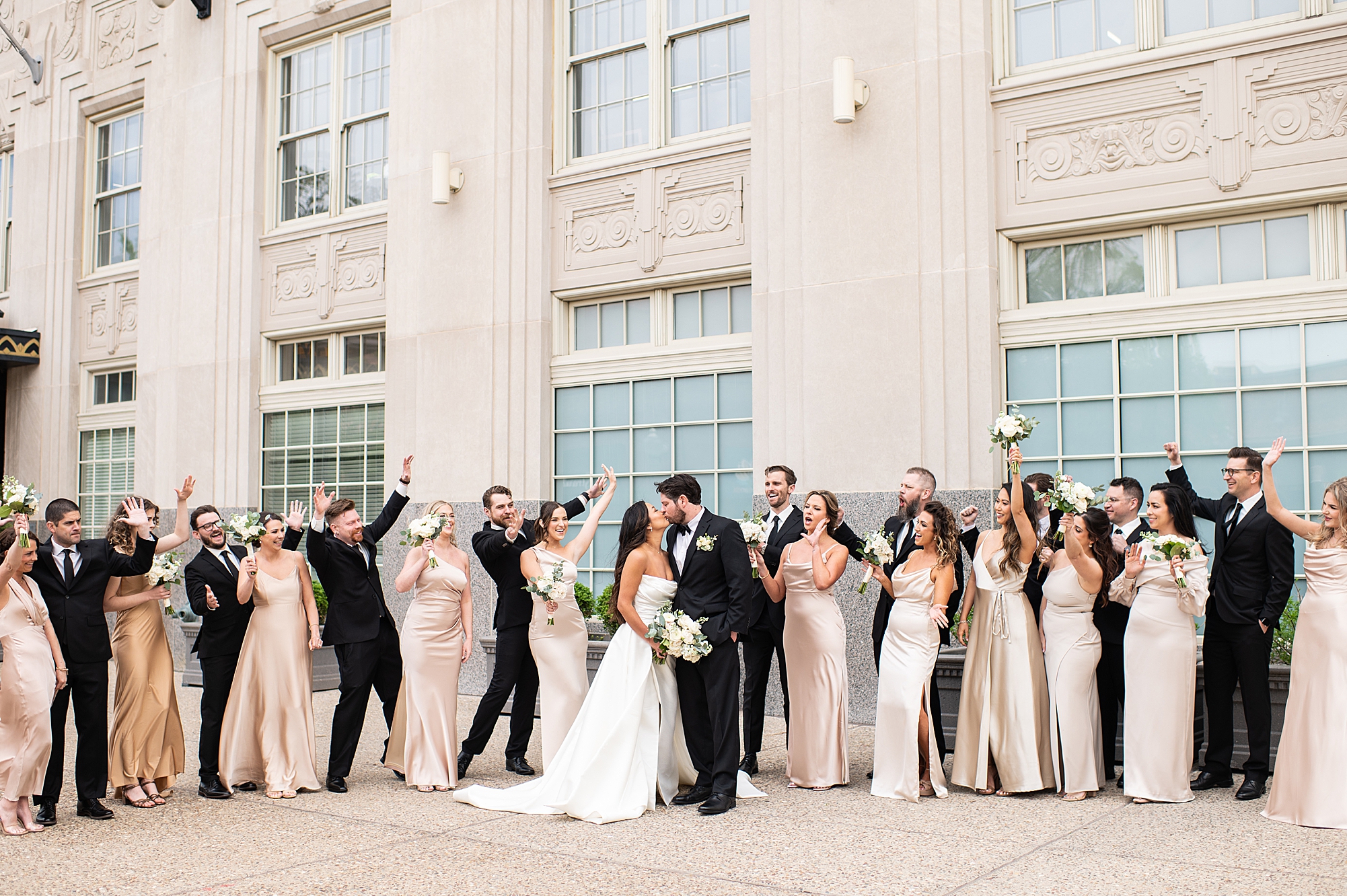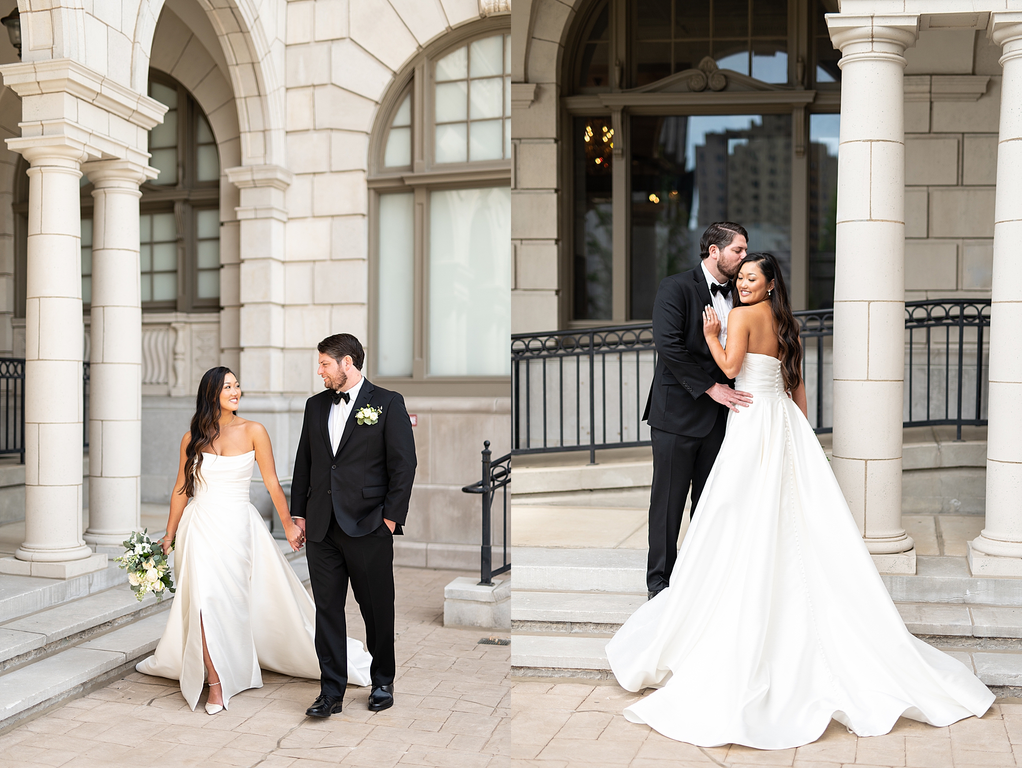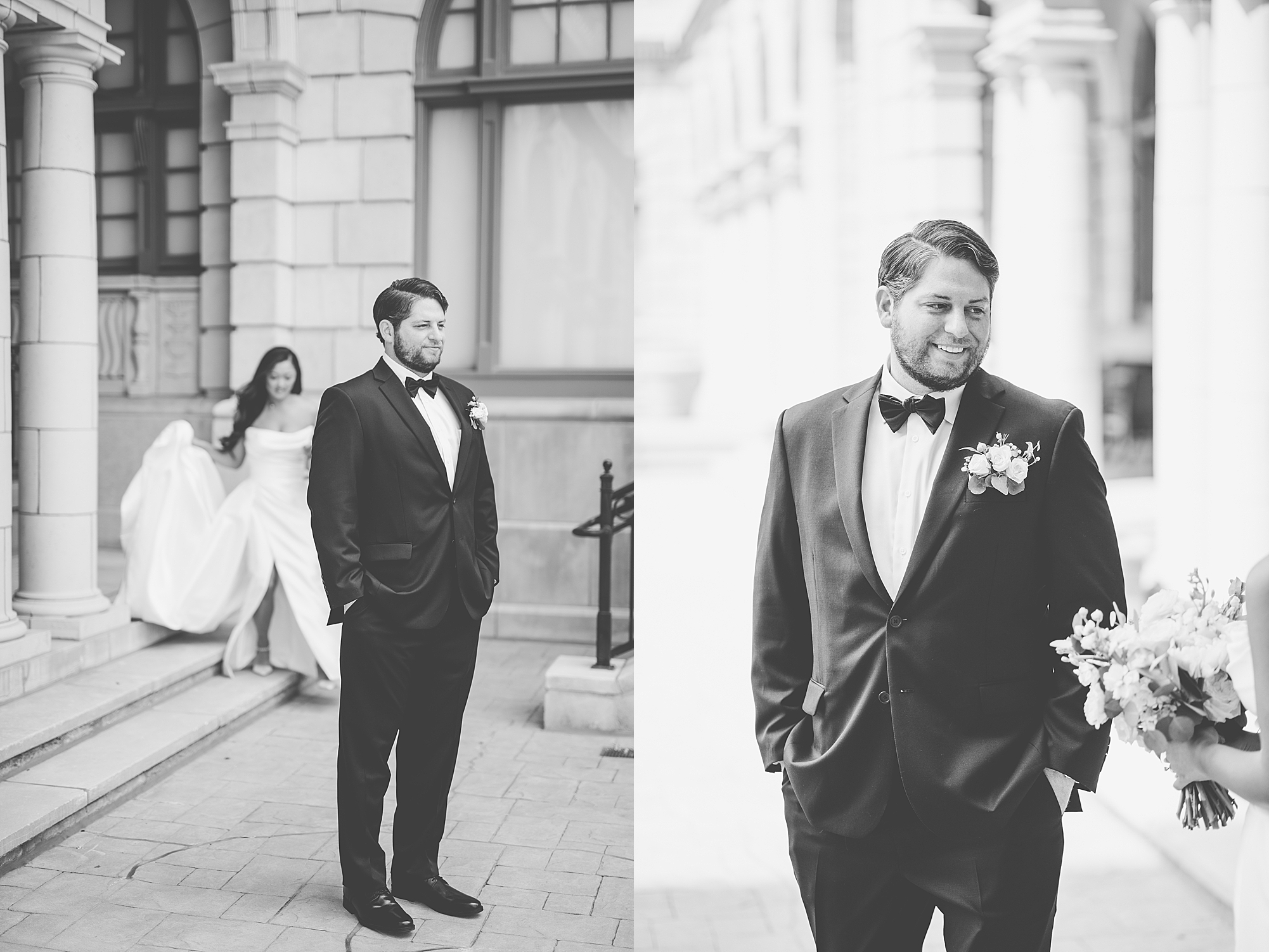 I could not have been more excited to capture Mallory and Zach’s St. Louis wedding day! They met in high school and started dating while going to Physical Therapy school at St. Louis University, so what better setting than Saint Francis Xavier College Church right on SLU’s campus? Mallory and Zach both spent a relaxing morning at the Chase Park plaza getting ready with their wedding parties. Mallory’s mom helped her put on her final details, she was absolutely stunning in her custom gown fit for a princess. Mallory and Zach shared a beautiful first look and spent a few moments really taking in the fact that it was their wedding day! We met up with their bridal party and took some really fun portraits before heading to the church to make it official.