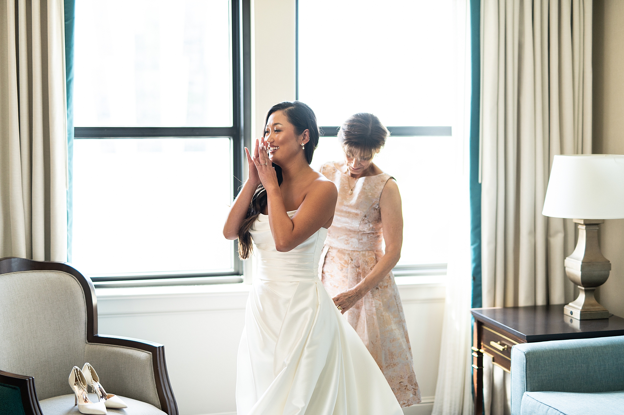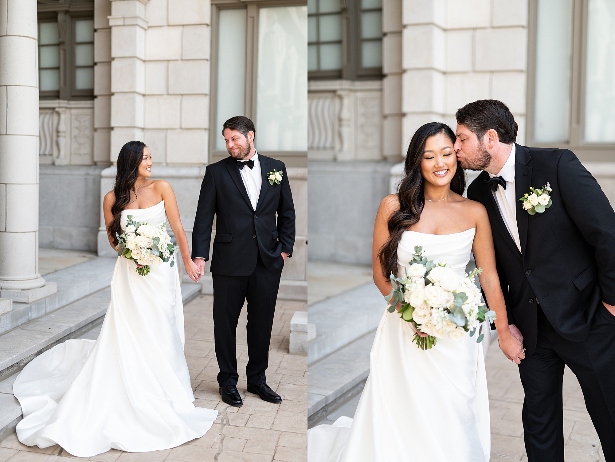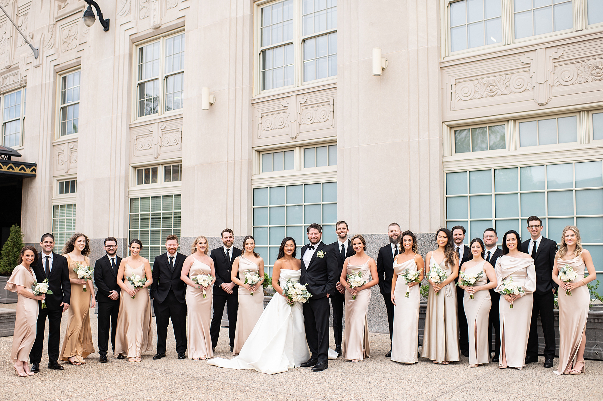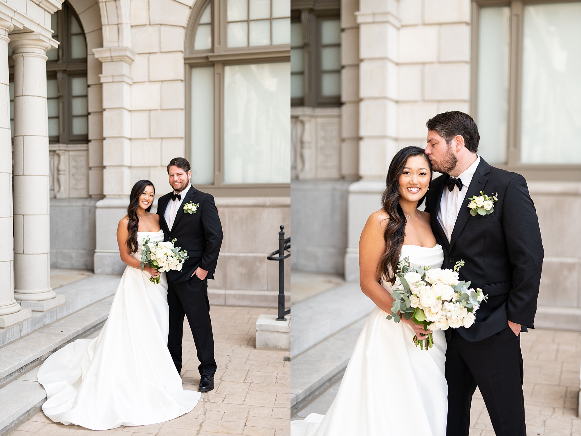 I could not have been more excited to capture Mallory and Zach’s St. Louis wedding day! They met in high school and started dating while going to Physical Therapy school at St. Louis University, so what better setting than Saint Francis Xavier College Church right on SLU’s campus? Mallory and Zach both spent a relaxing morning at the Chase Park plaza getting ready with their wedding parties. Mallory’s mom helped her put on her final details, she was absolutely stunning in her custom gown fit for a princess. Mallory and Zach shared a beautiful first look and spent a few moments really taking in the fact that it was their wedding day! We met up with their bridal party and took some really fun portraits before heading to the church to make it official.