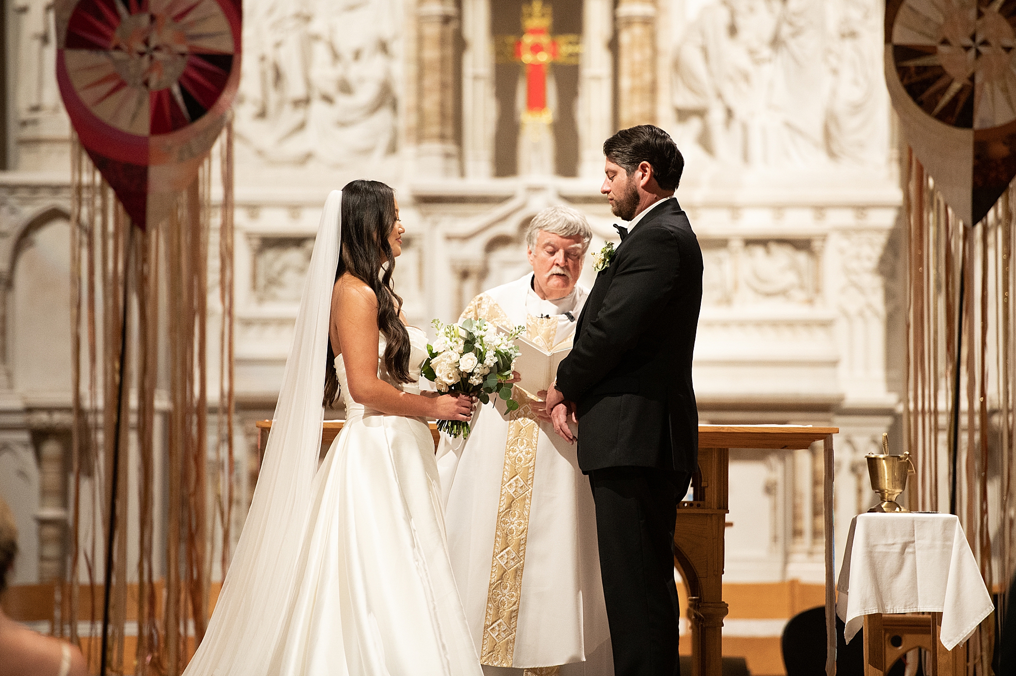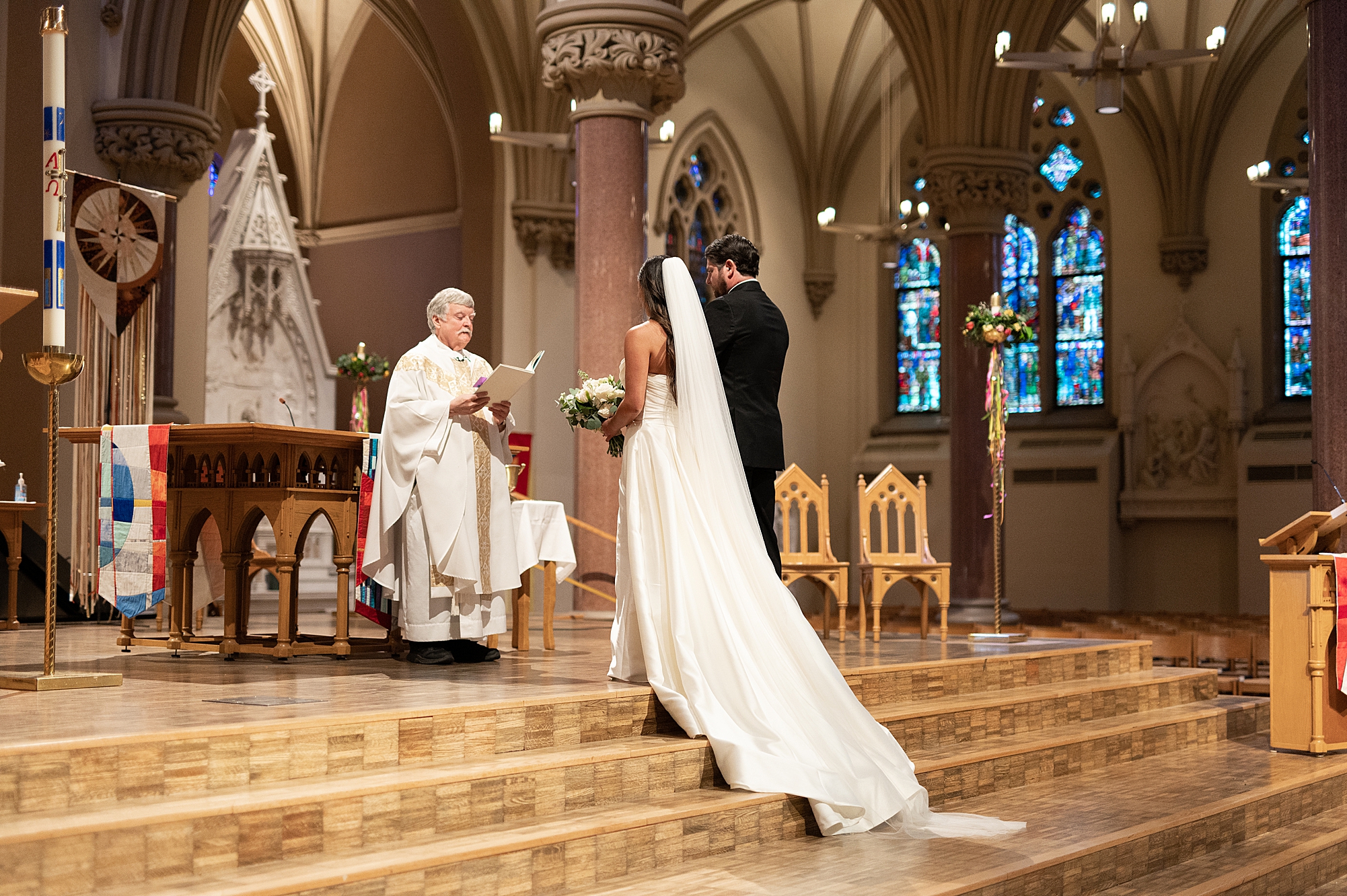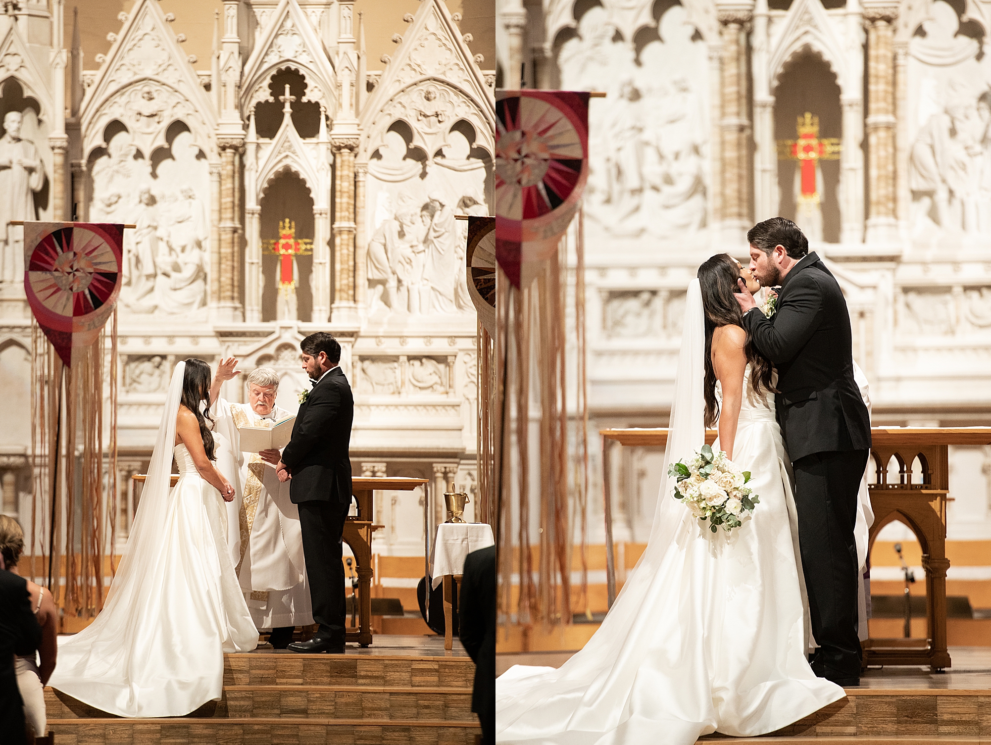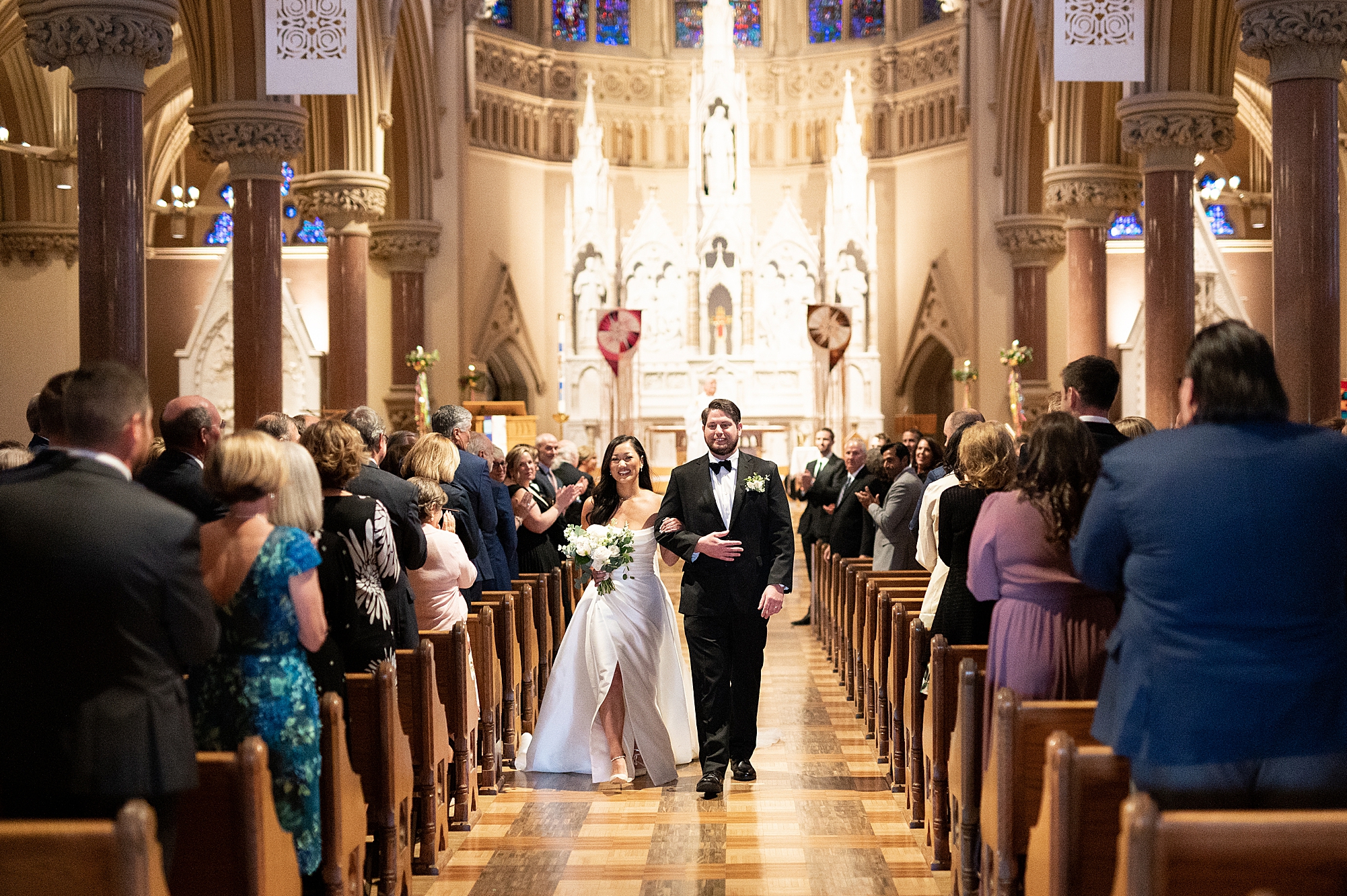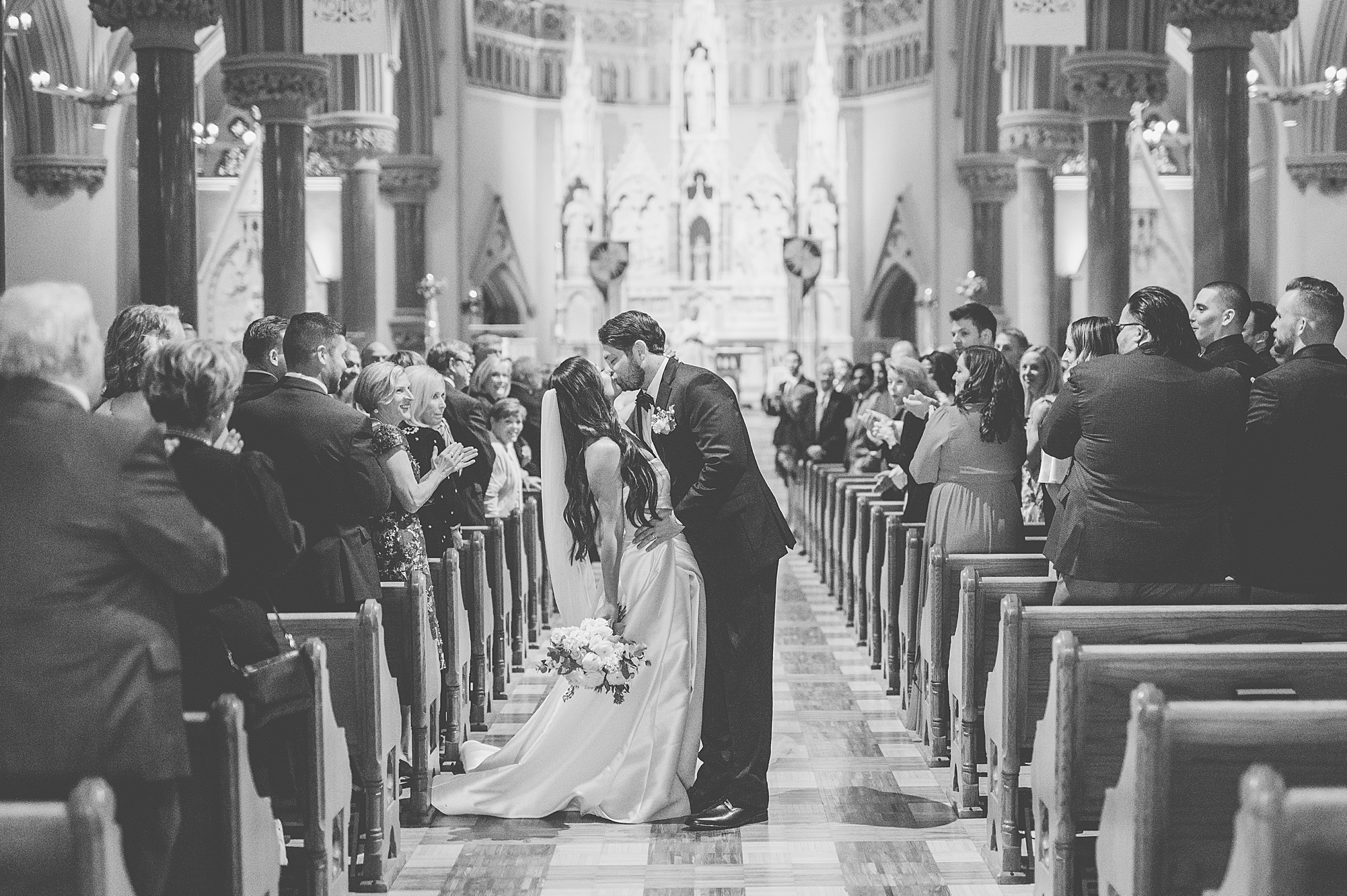 Mallory’s dad walked her down the aisle and both her and Zach smiled through the tears as her dad gave his only daughter away. Their priest performed a beautiful, traditional catholic ceremony uniting Mallory and Zach in marriage. They shared their first kiss as husband and wife before excitedly walking back down the aisle hand in hand!