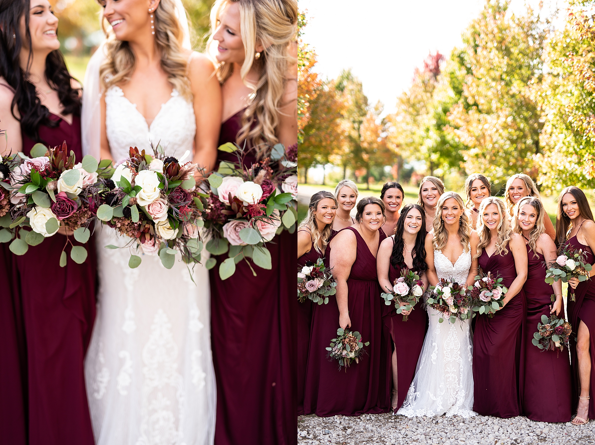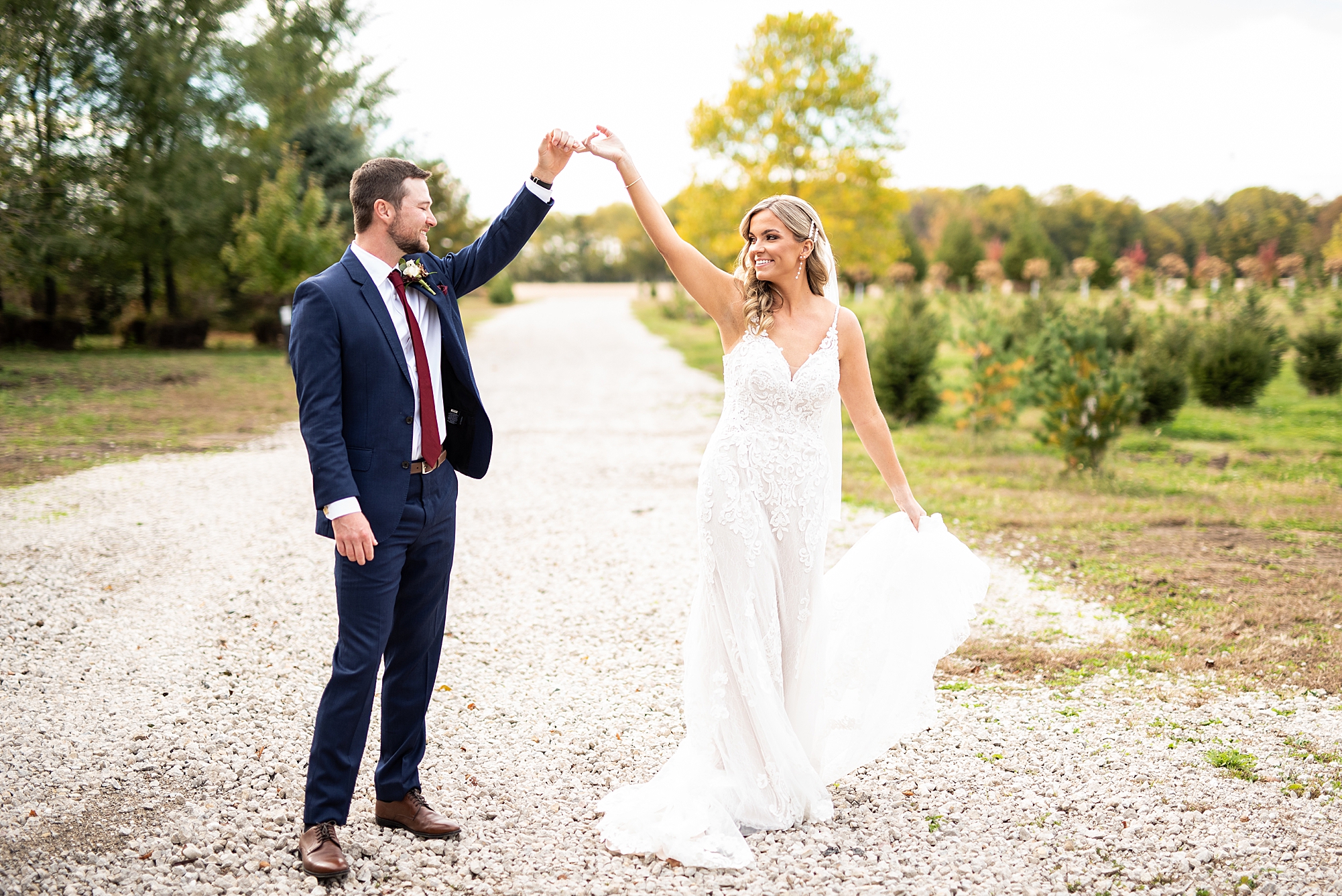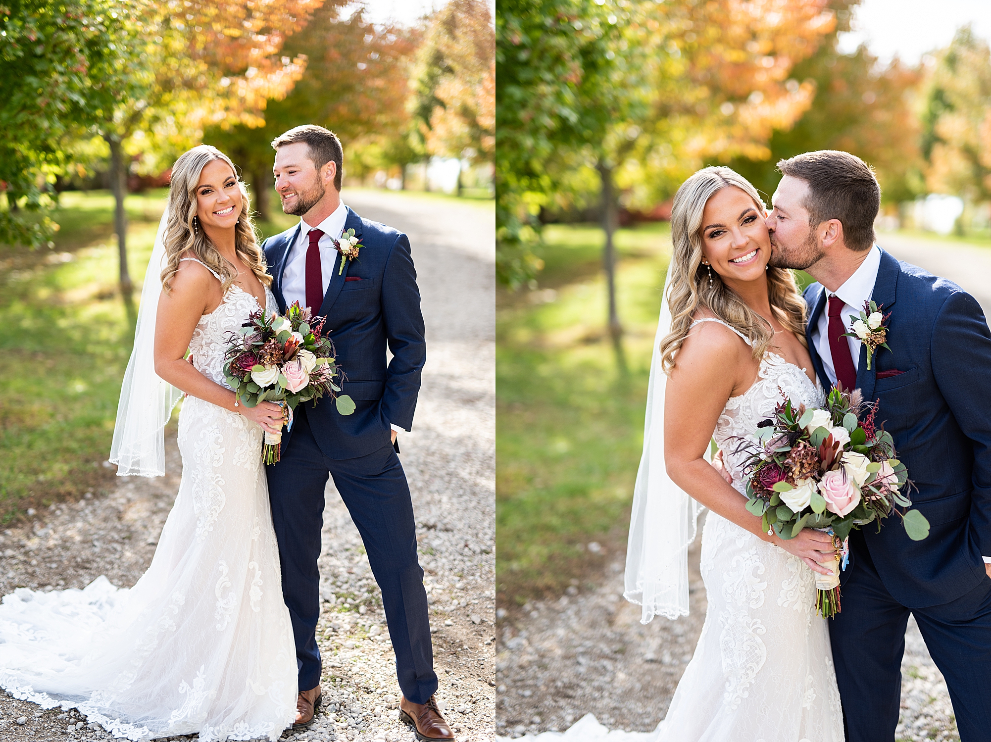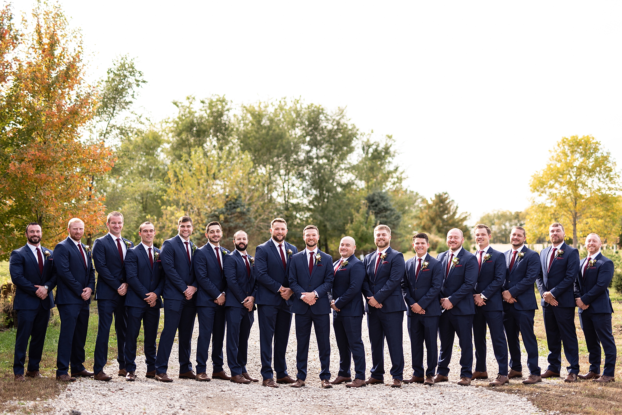 Morgan spent the morning getting ready at home with her bridesmaids and then her mom helped her put on her final touches before it was time to go meet Brett. Brett got ready at the venue, Paul Tree Farms with his groomsmen while he waiting for Morgan’s arrival. They shared a sweet first look overlooking the pond, both of them smiling so big when they saw each other! It was an absolutely beautiful fall day, full of sunshine and warm weather. We spent that afternoon taking photos of them together and then with their wedding party who truly made the whole day so much fun!