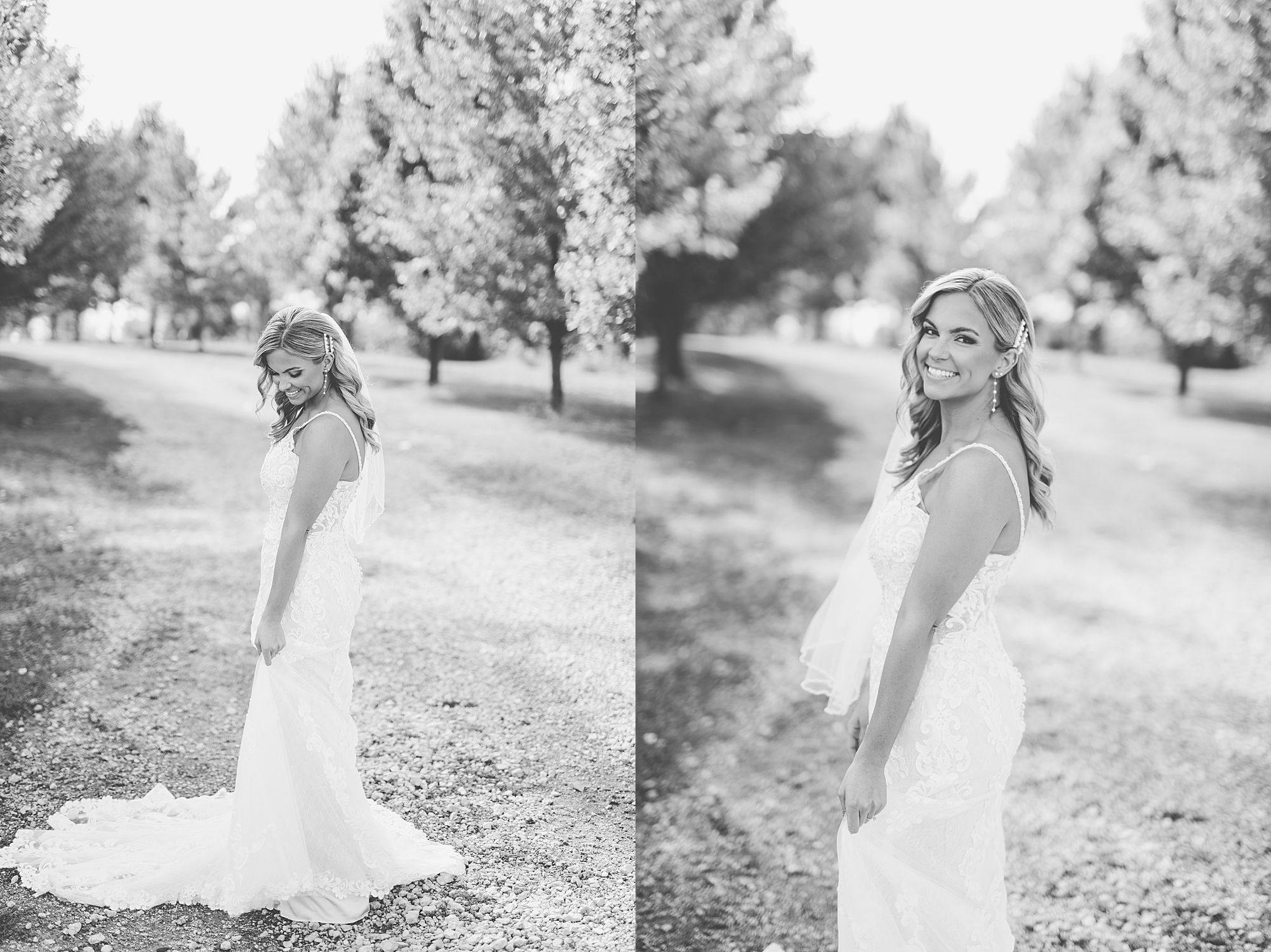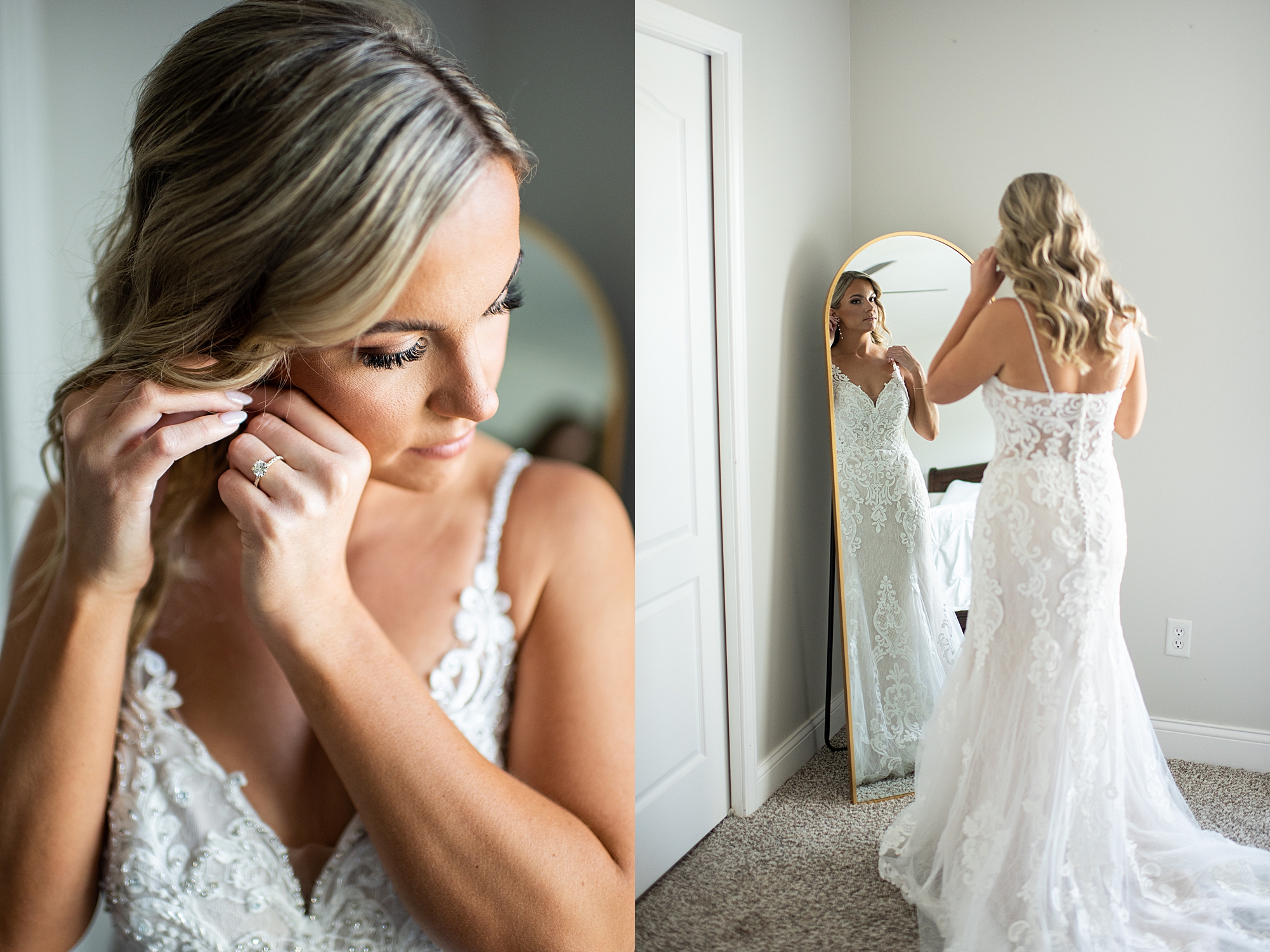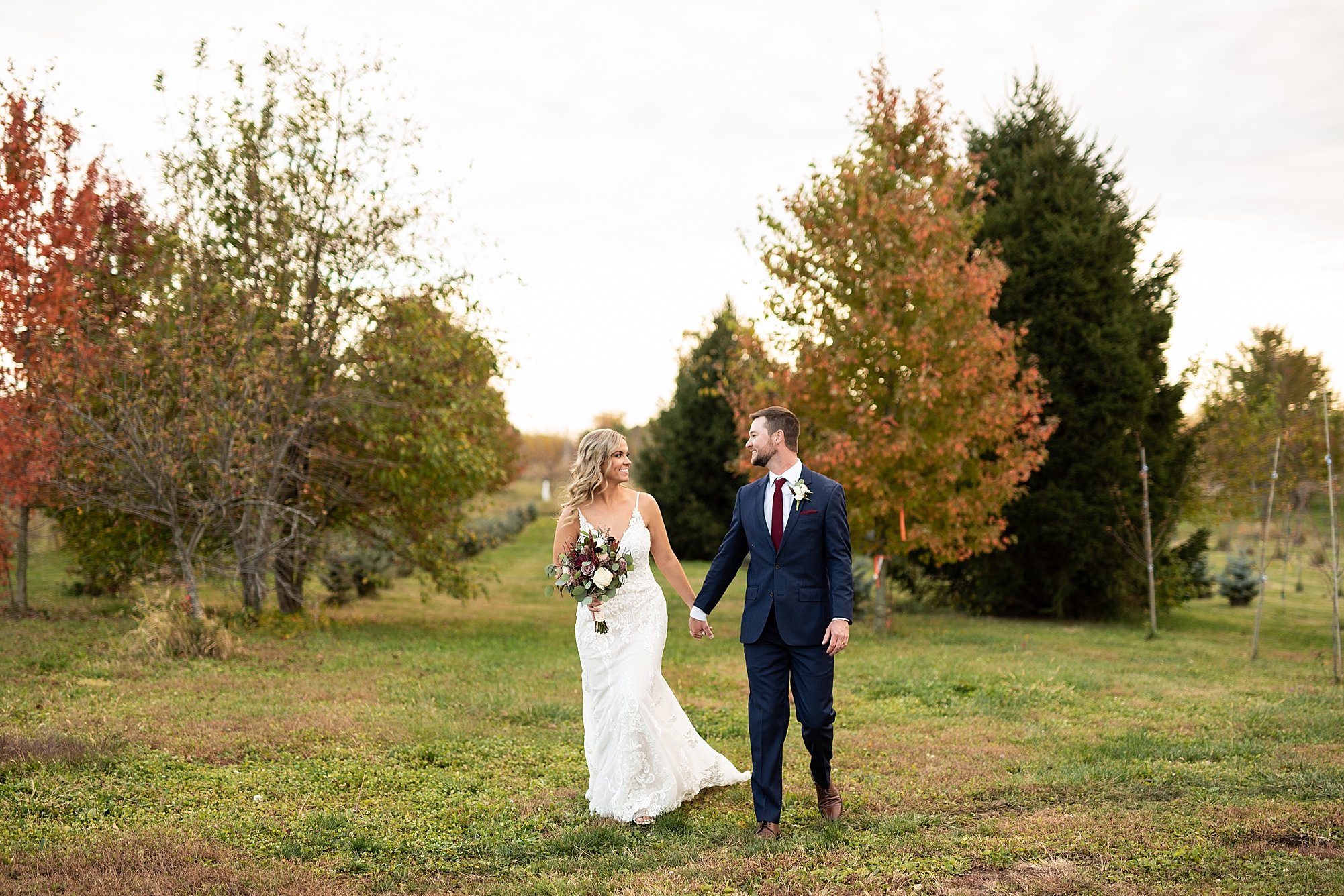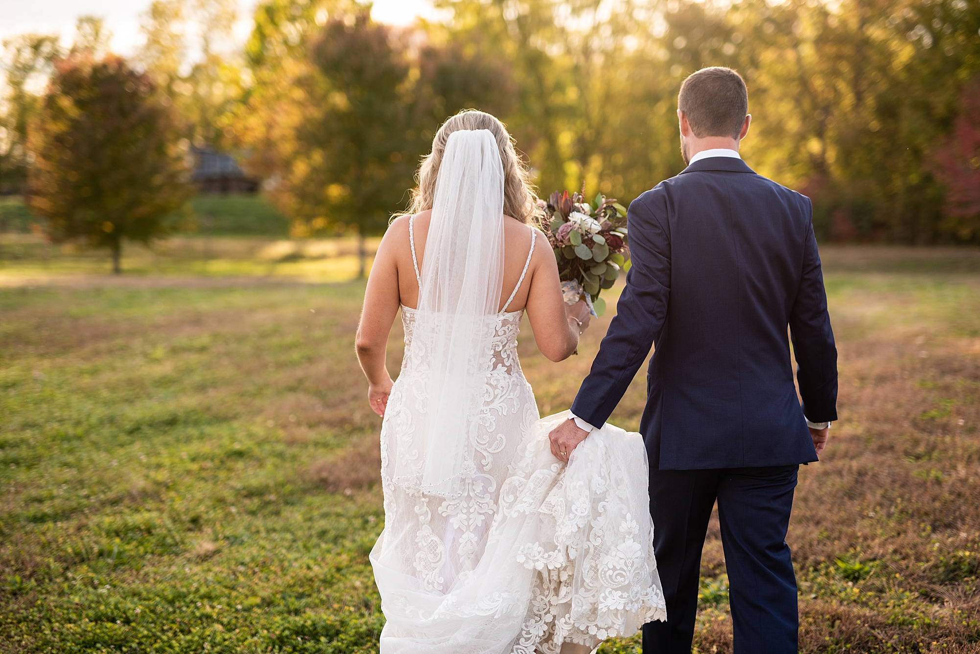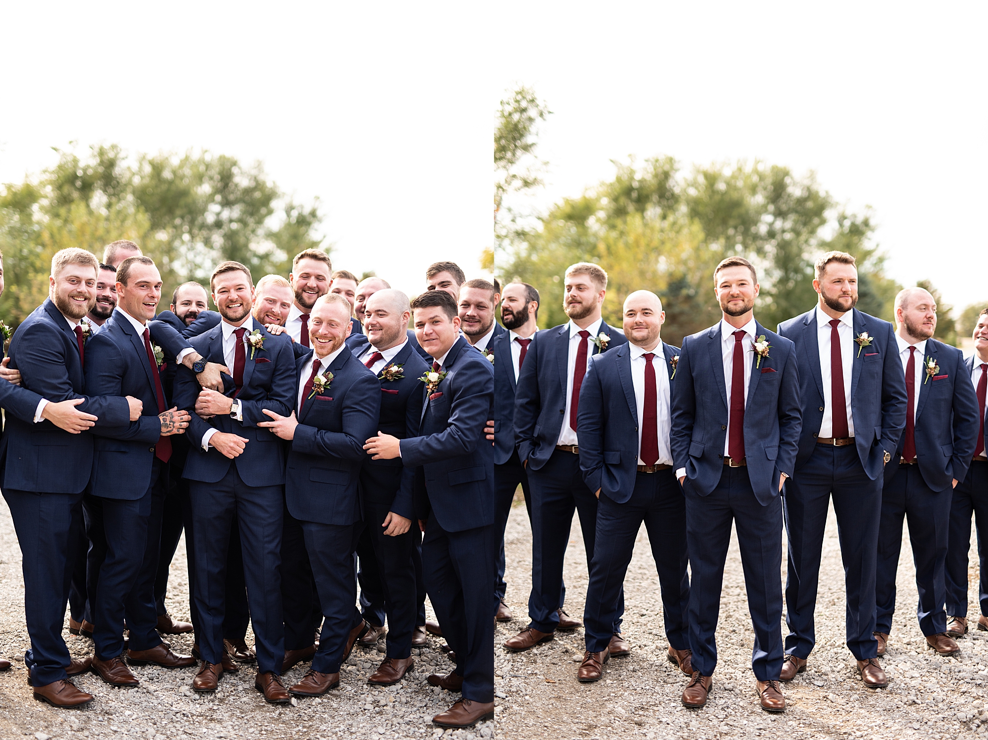 Morgan spent the morning getting ready at home with her bridesmaids and then her mom helped her put on her final touches before it was time to go meet Brett. Brett got ready at the venue, Paul Tree Farms with his groomsmen while he waiting for Morgan’s arrival. They shared a sweet first look overlooking the pond, both of them smiling so big when they saw each other! It was an absolutely beautiful fall day, full of sunshine and warm weather. We spent that afternoon taking photos of them together and then with their wedding party who truly made the whole day so much fun!