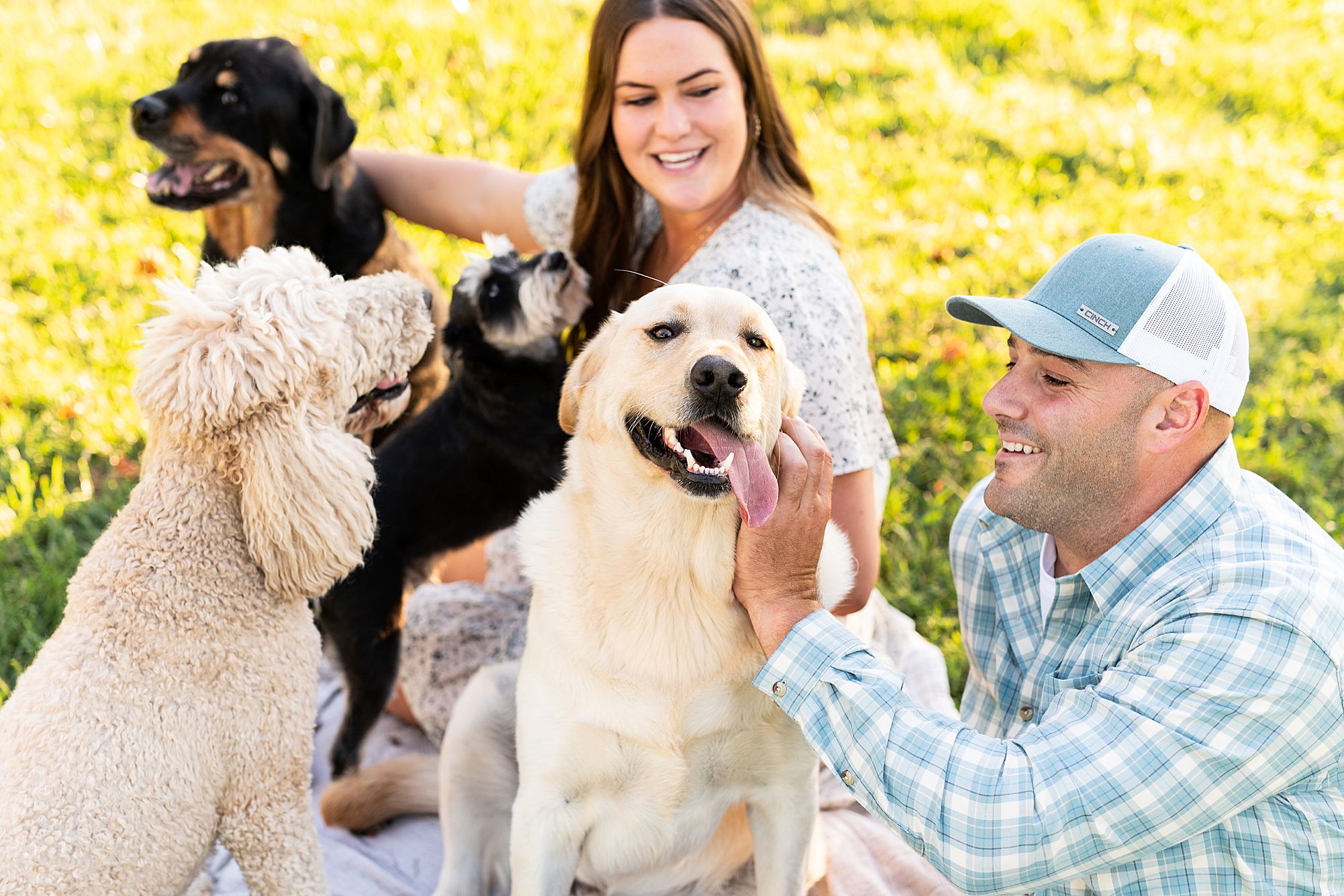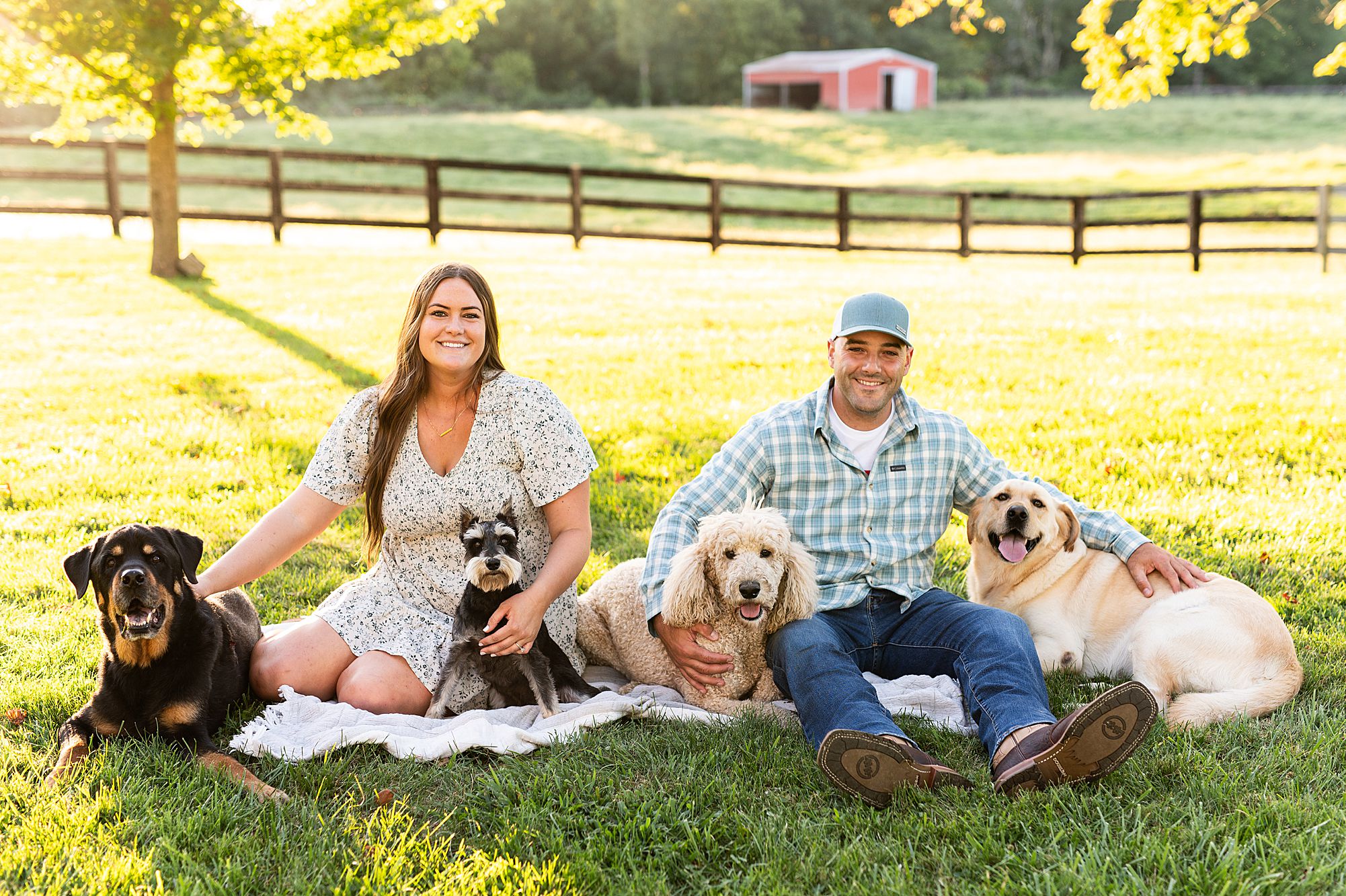 I seriously enjoyed capturing this adorable couple out at their farm. Morgan is a huge animal lover who runs the amazing Almost Home Rescue and Nick is her biggest supporter! I just knew we had to include their sweet animals in their engagement photos! We had a gorgeous summer evening for their session.