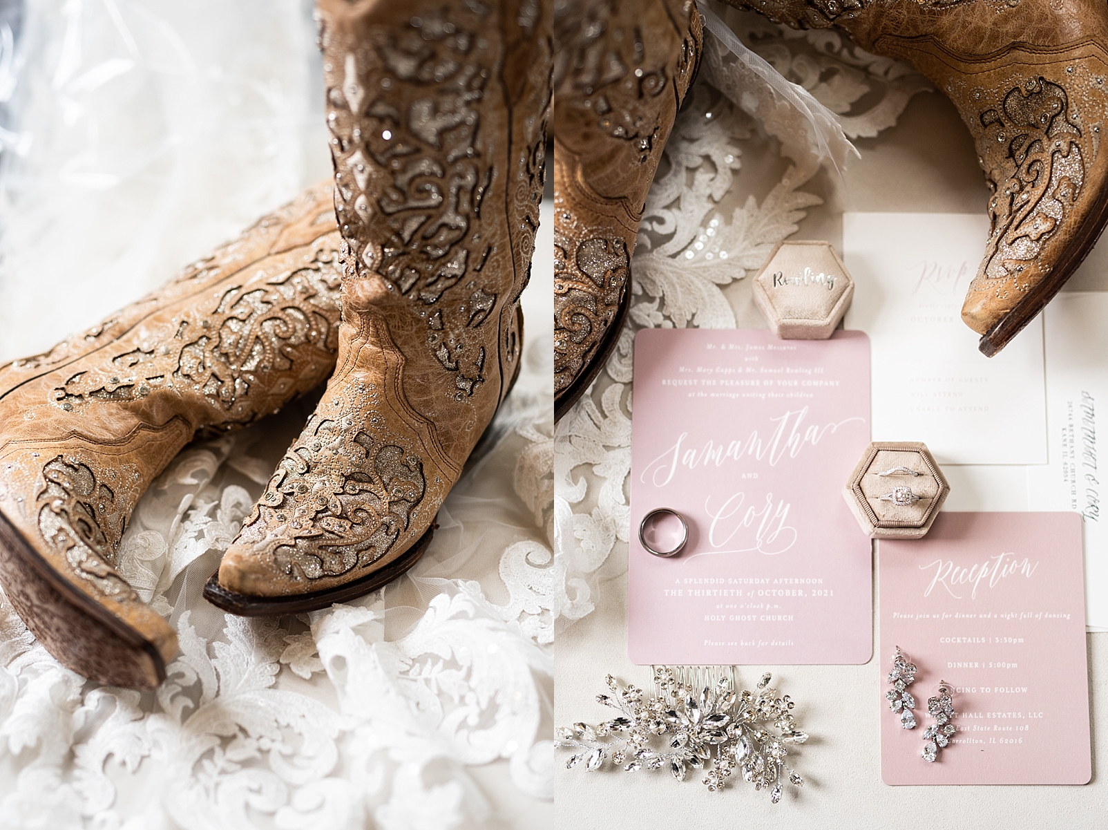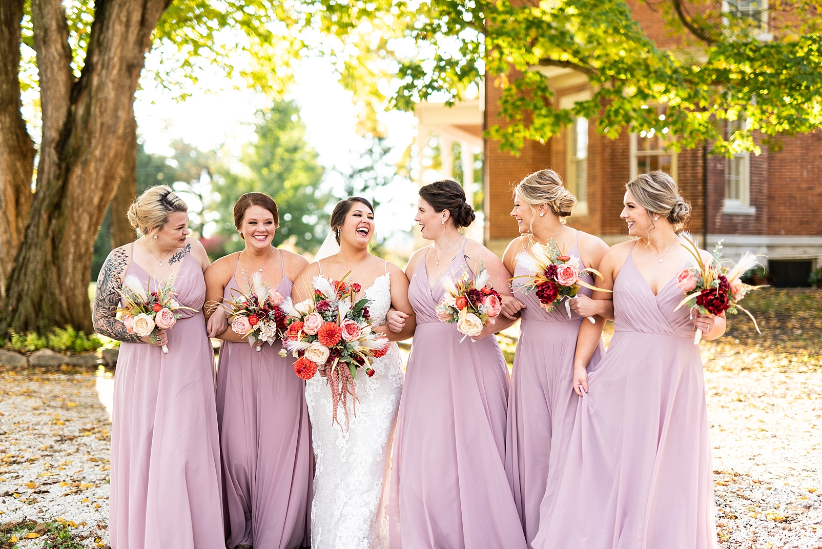 Sam and Cory were a flower girl and ring bearer in a wedding together when they were babies. Little did they know they would be doing the real thing years later and marrying each other in the church they both grew up in! Their wedding day was the most perfect 60 degree fall day and the leaves were just starting to change their beautiful colors. They got ready at the gorgeous Walnut Hall Estates in Carrollton. It was an absolutely dreamy getting ready spot and their reception was held just next door in their beautiful barn!
