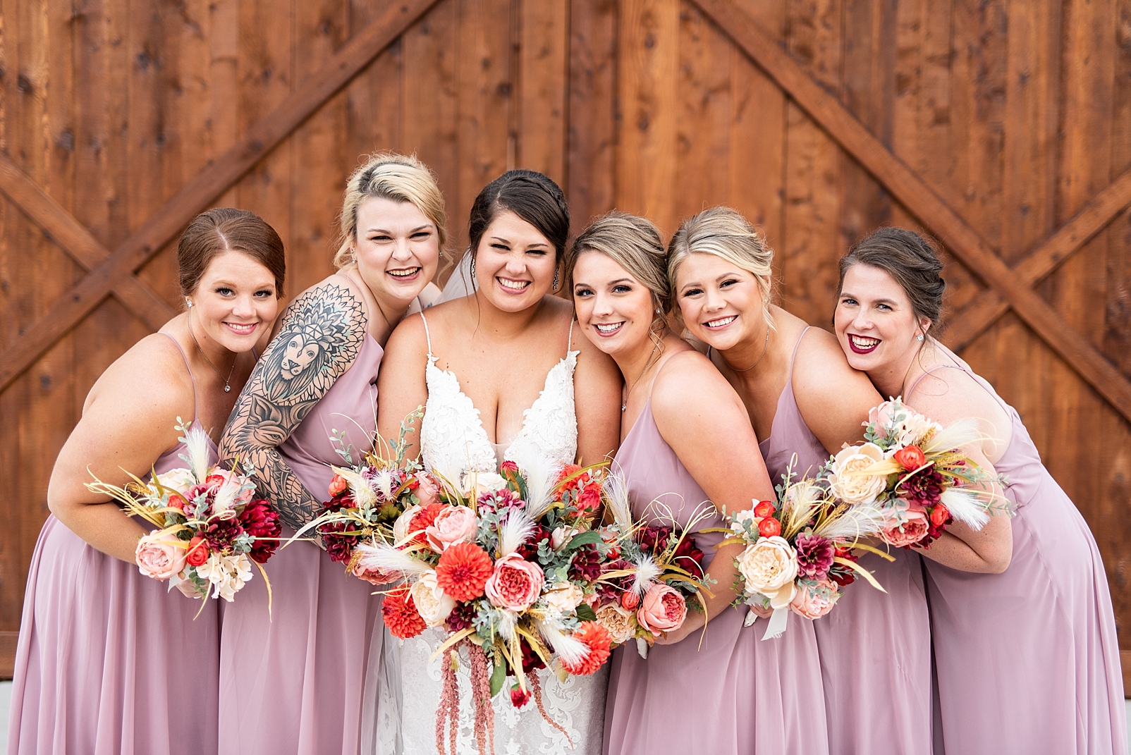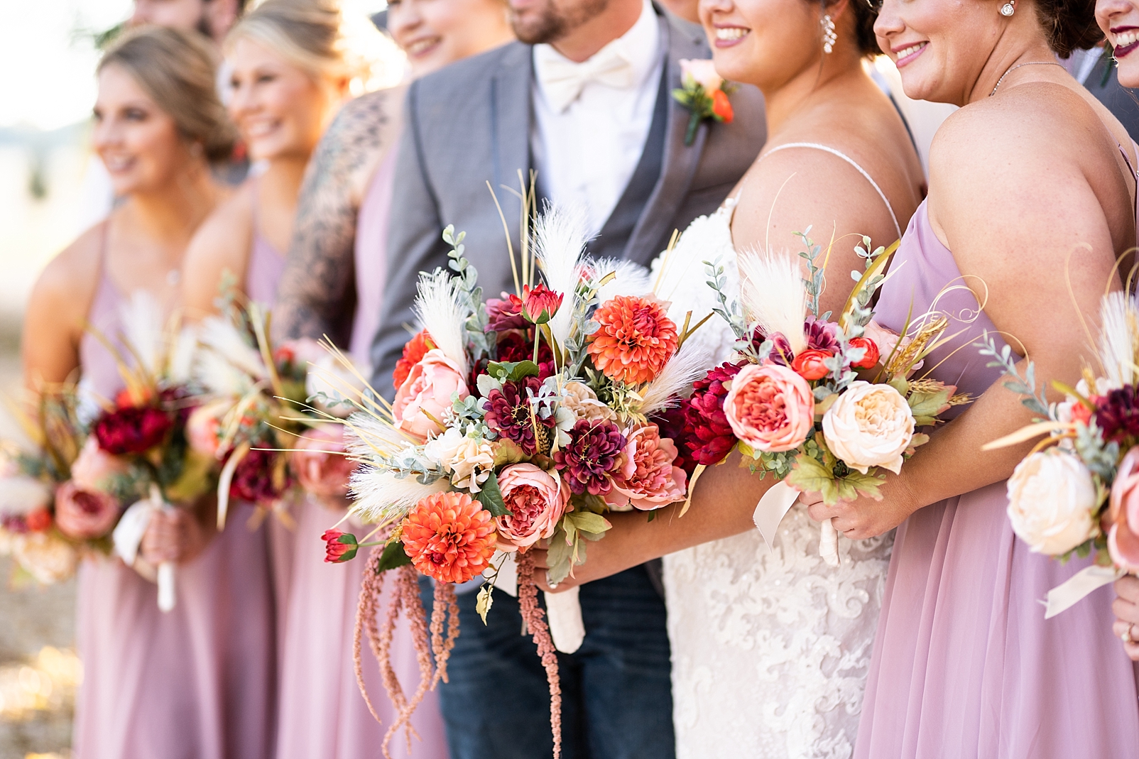 Afterwards, we stopped by Cory’s family farm to get some photos of them with their bridal party and their sweet pup, Bendu, before heading back to their reception. Sam did an amazing job designing and decorating their venue. Her flowers were absolutely gorgeous and all the pops of color were beautiful. Their celebration was so full of love and laughter and Sam and Cory enjoyed the entire night with all of their friends and family. Congratulations to the new Mr. and Mrs. Rowling, it was such an honor to capture your special day!
