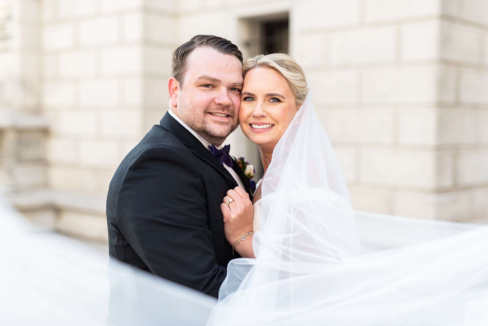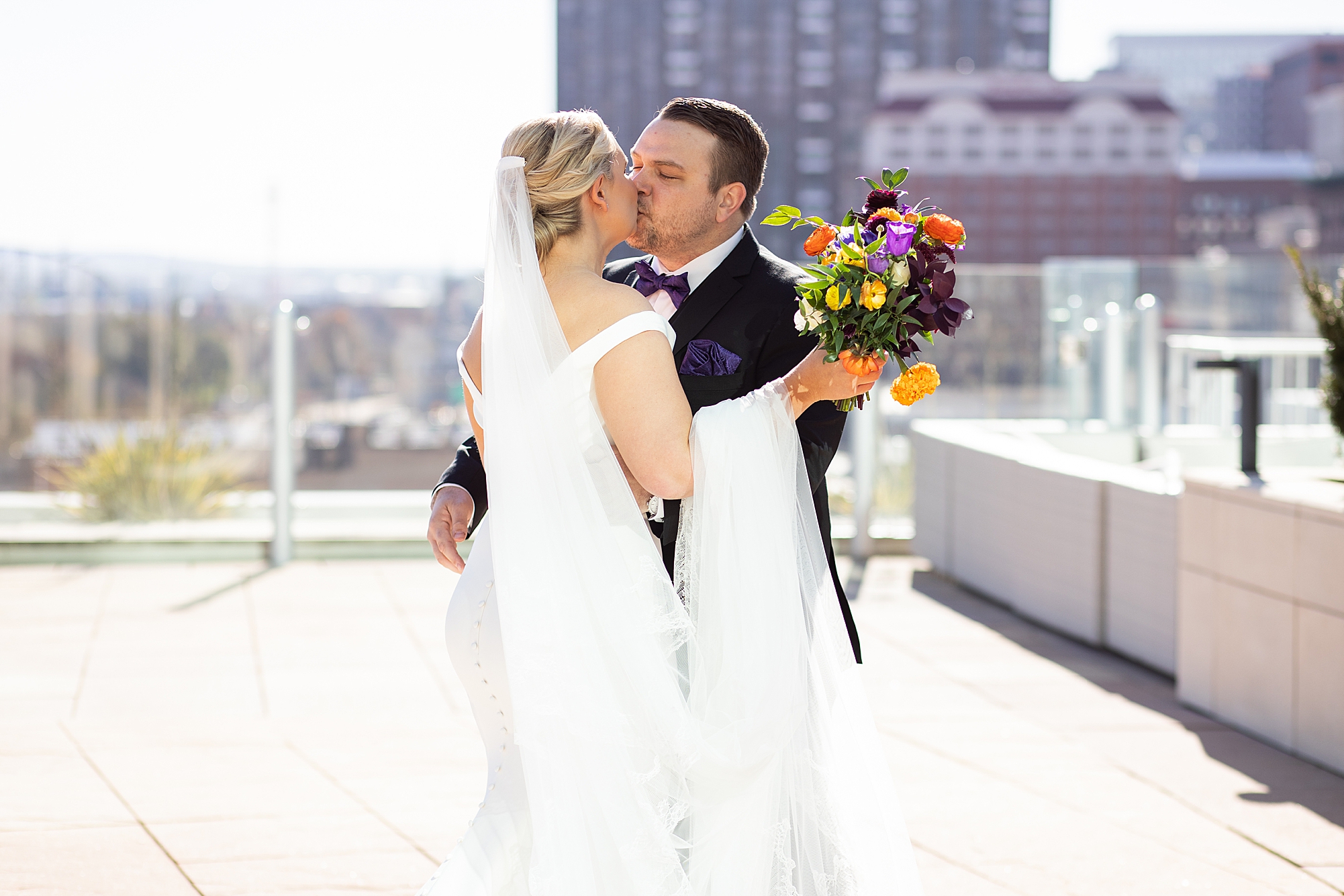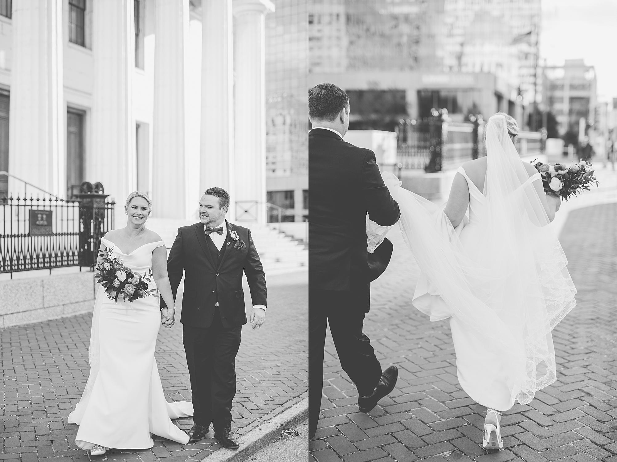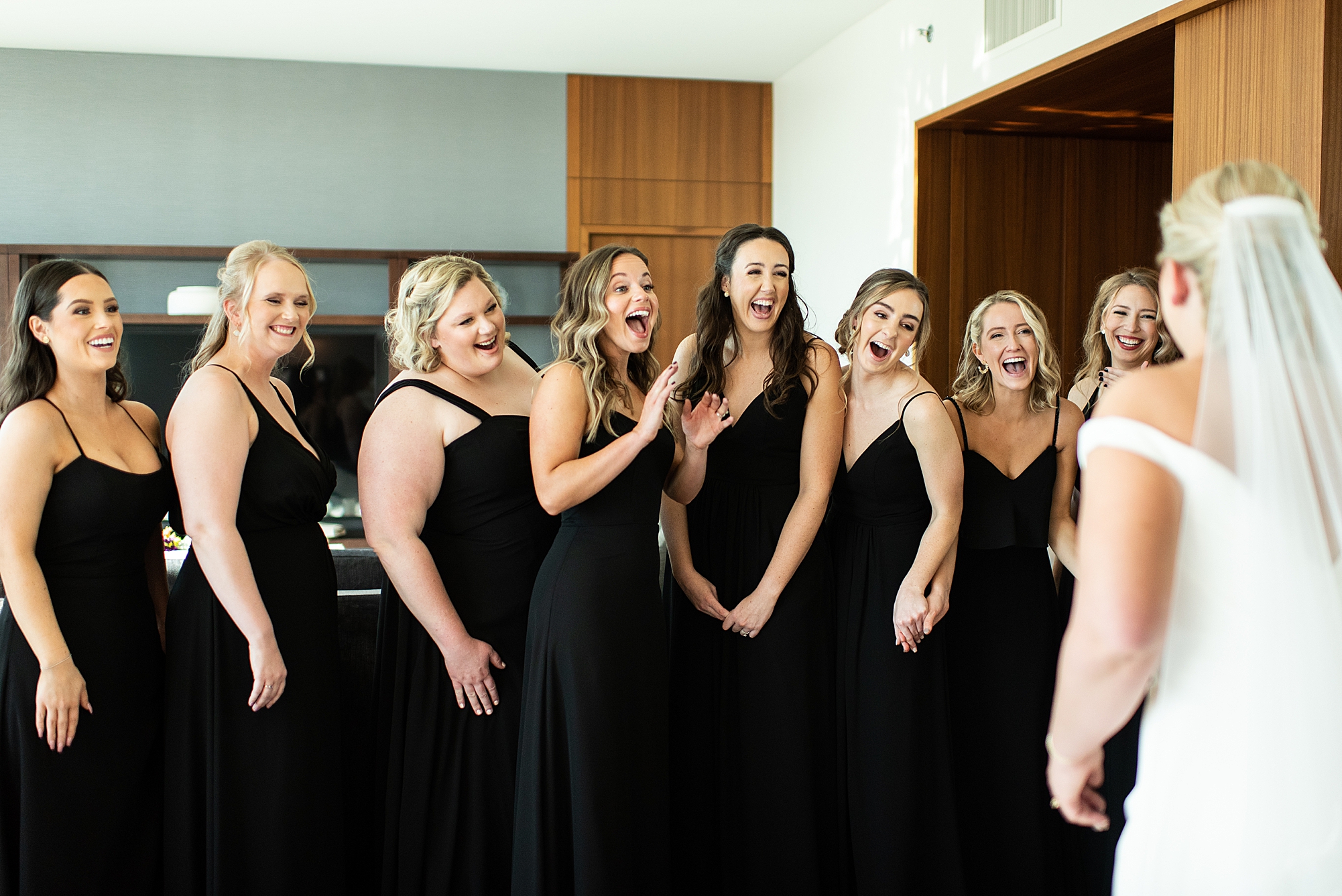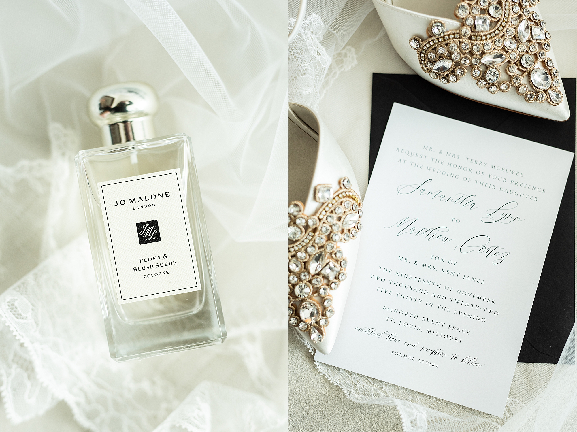 Sami and Matt have a huge love for the city of St. Louis so it was the perfect setting for their wedding day. They both got ready at the gorgeous Four Seasons Hotel, then shared a first look on the rooftop with the perfect view of the arch. They read adorable letters to each other reminiscing on their years together so far and anticipating their future together. Then we loaded up their bridal bridal party and traveled around the city for a bit hitting a few of their favorite spots like the old courthouse, Busch Stadium and the Arch Park. Their bridal party was so much fun and full of celebration!