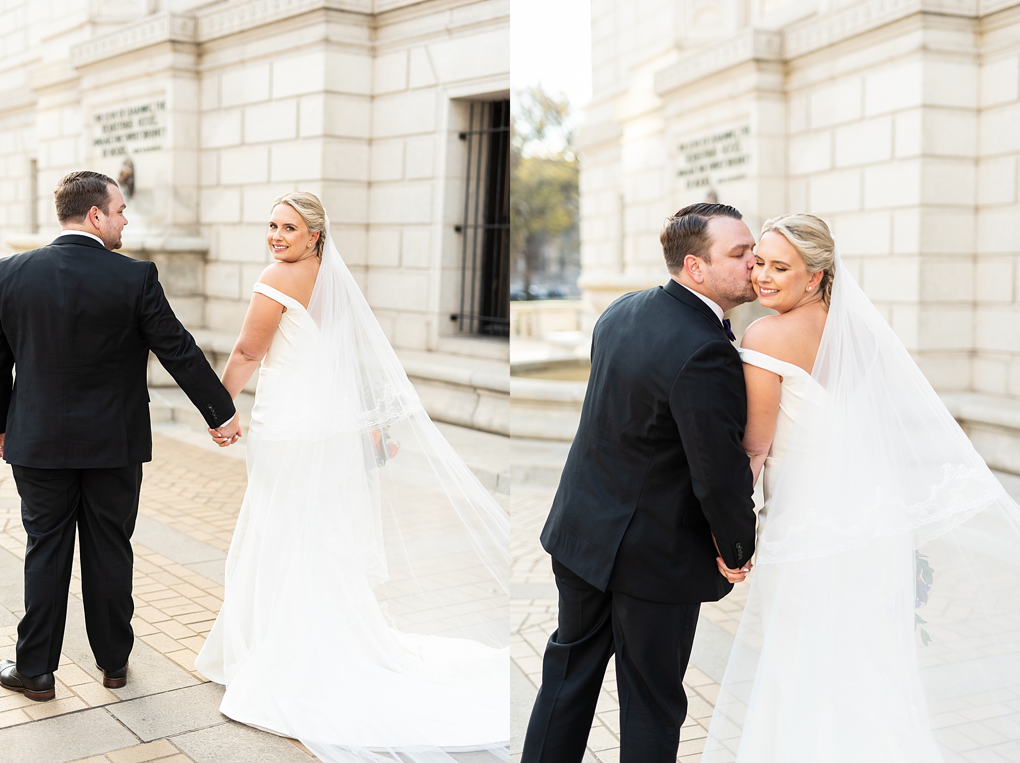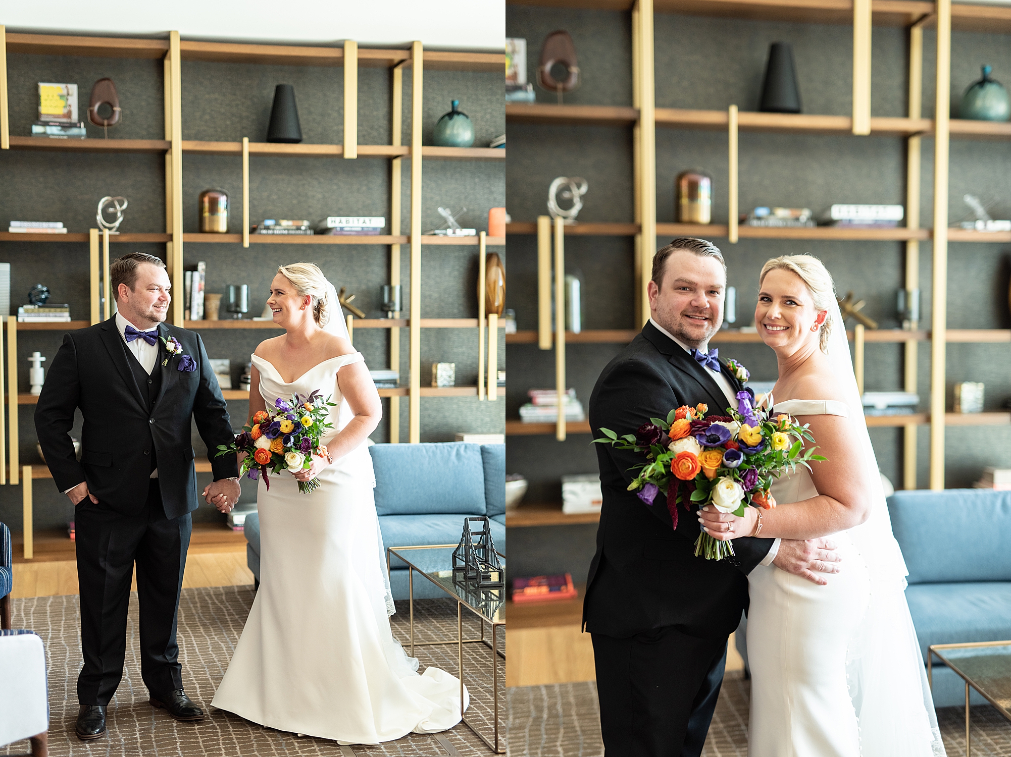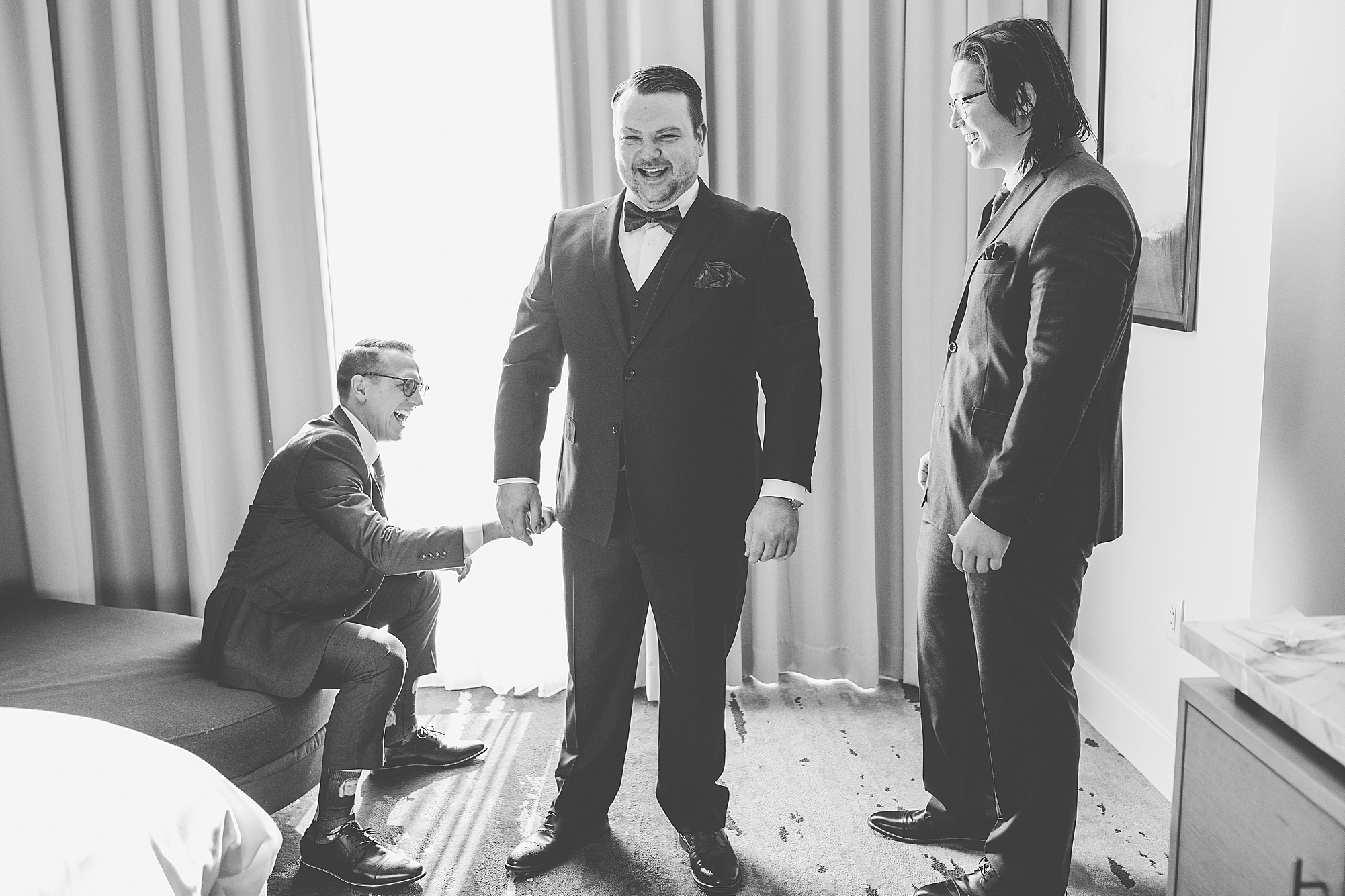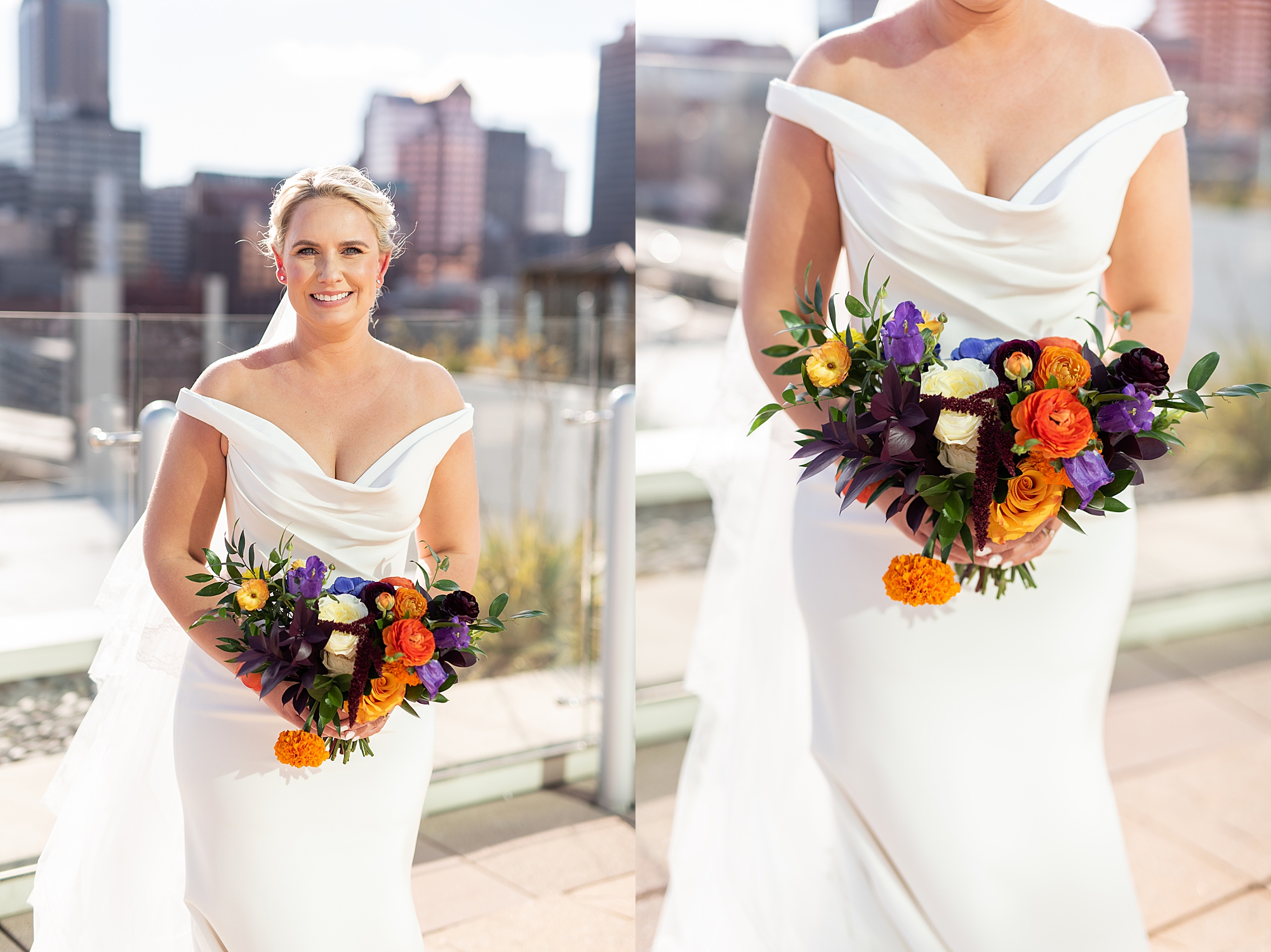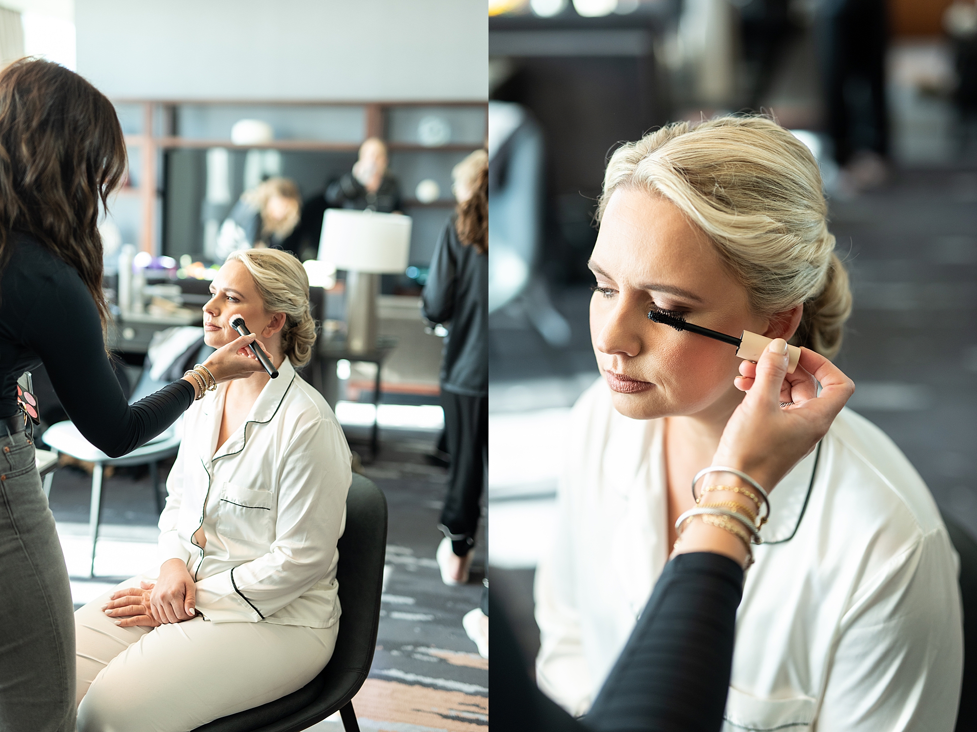 Sami and Matt have a huge love for the city of St. Louis so it was the perfect setting for their wedding day. They both got ready at the gorgeous Four Seasons Hotel, then shared a first look on the rooftop with the perfect view of the arch. They read adorable letters to each other reminiscing on their years together so far and anticipating their future together. Then we loaded up their bridal bridal party and traveled around the city for a bit hitting a few of their favorite spots like the old courthouse, Busch Stadium and the Arch Park. Their bridal party was so much fun and full of celebration!
