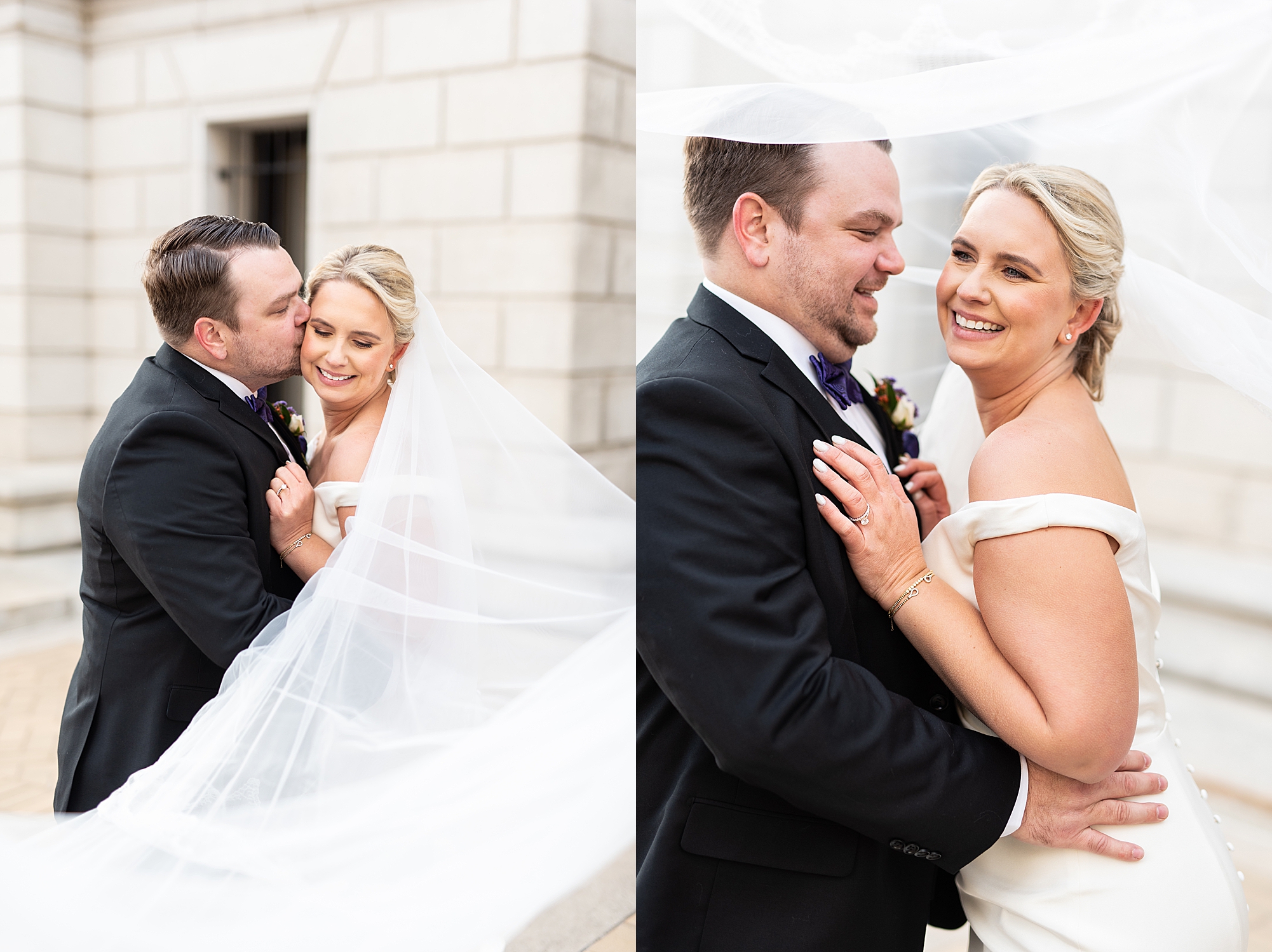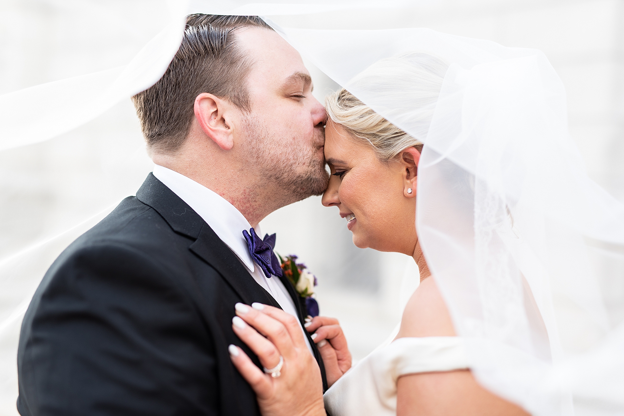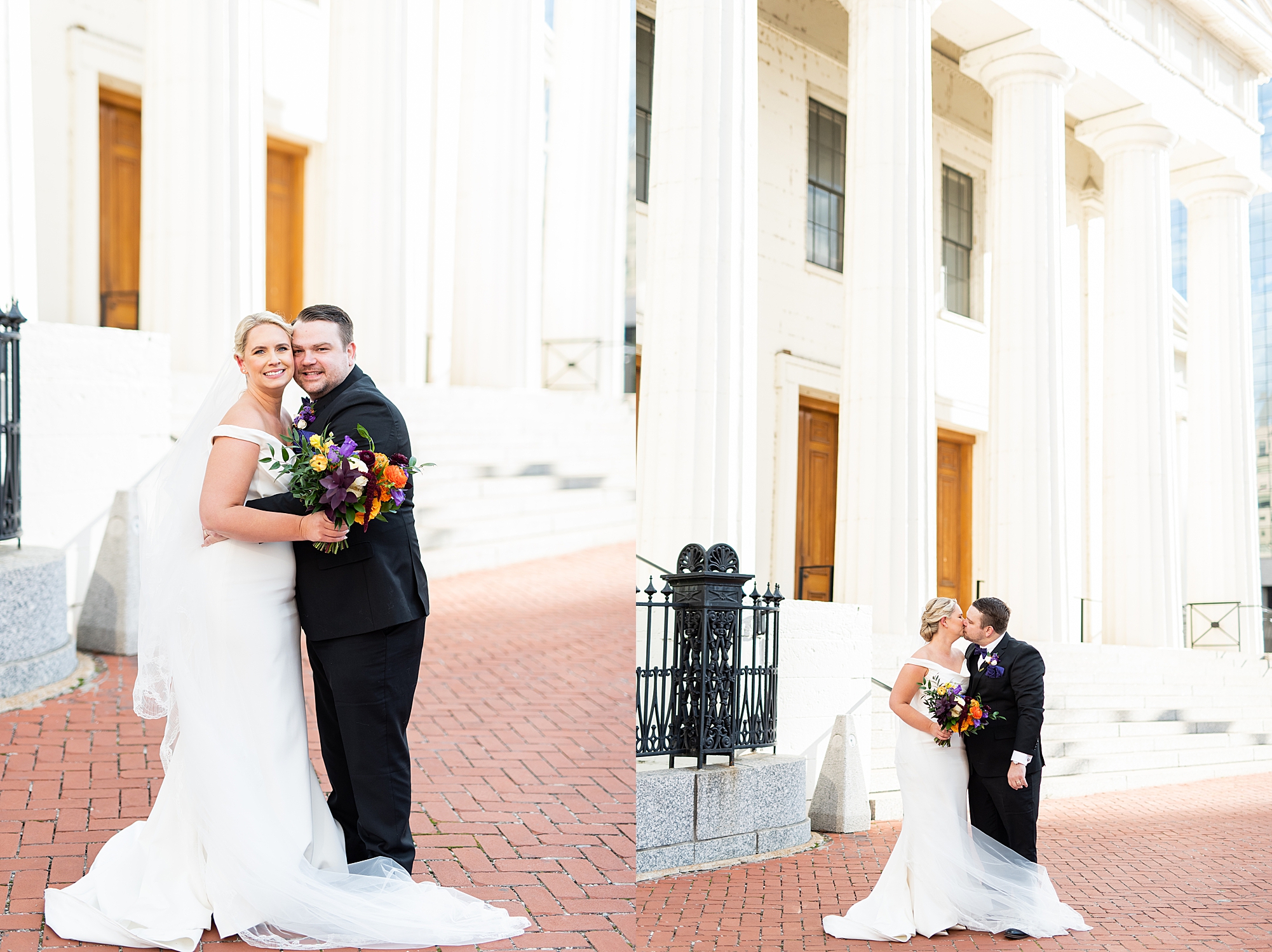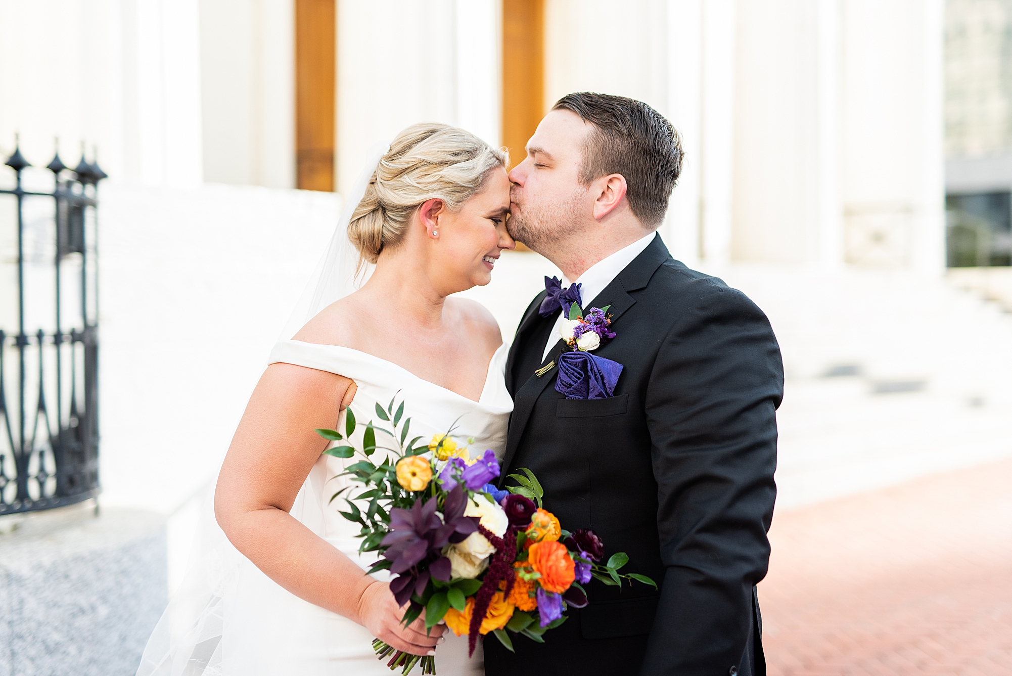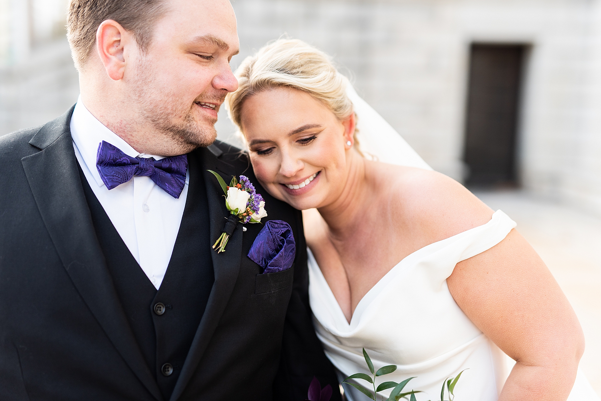Sami and Matt have a huge love for the city of St. Louis so it was the perfect setting for their wedding day. They both got ready at the gorgeous Four Seasons Hotel, then shared a first look on the rooftop with the perfect view of the arch. They read adorable letters to each other reminiscing on their years together so far and anticipating their future together. Then we loaded up their bridal bridal party and traveled around the city for a bit hitting a few of their favorite spots like the old courthouse, Busch Stadium and the Arch Park. Their bridal party was so much fun and full of celebration!