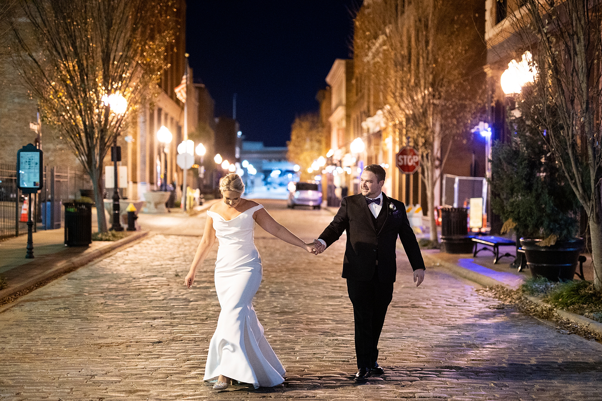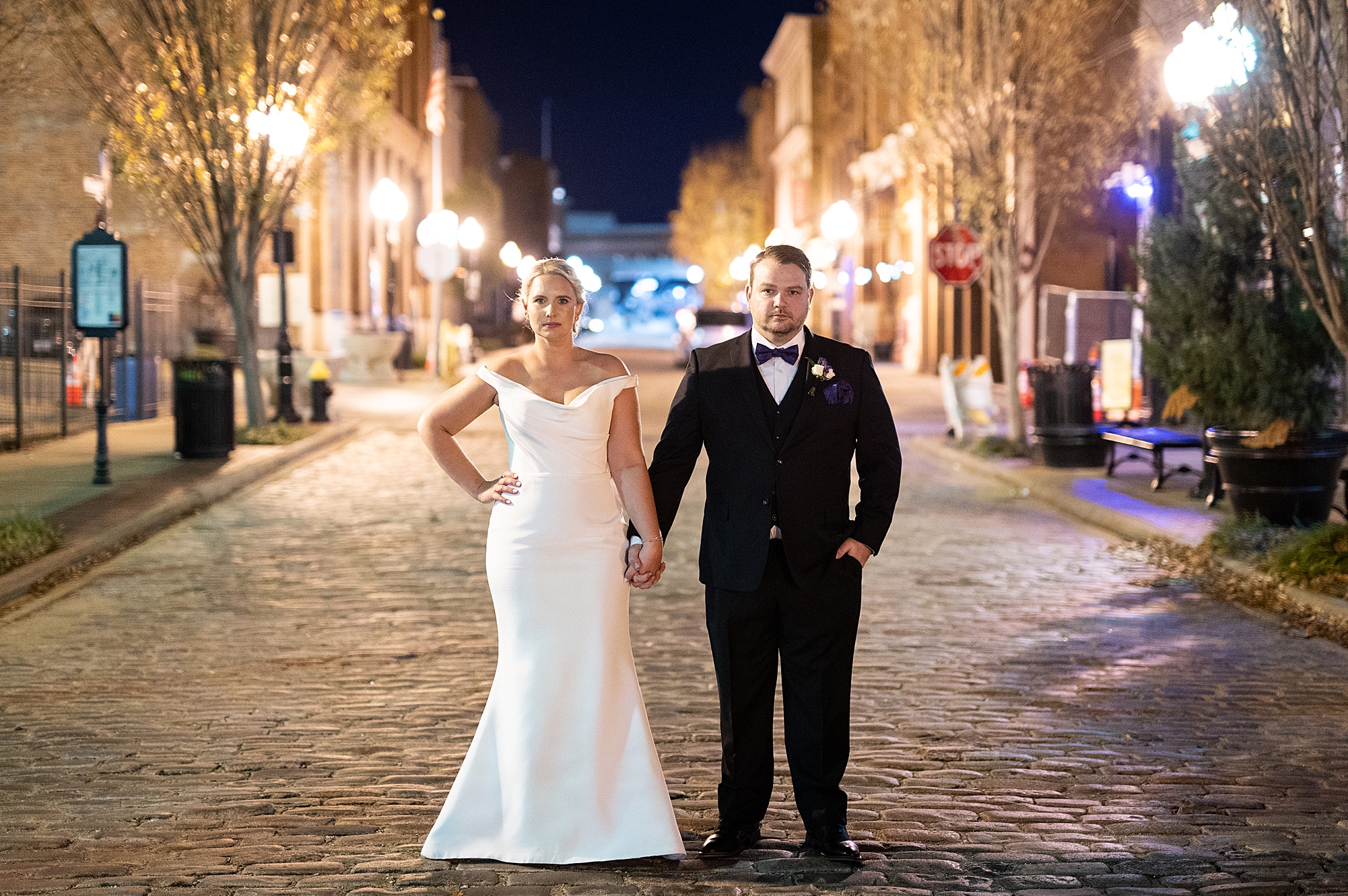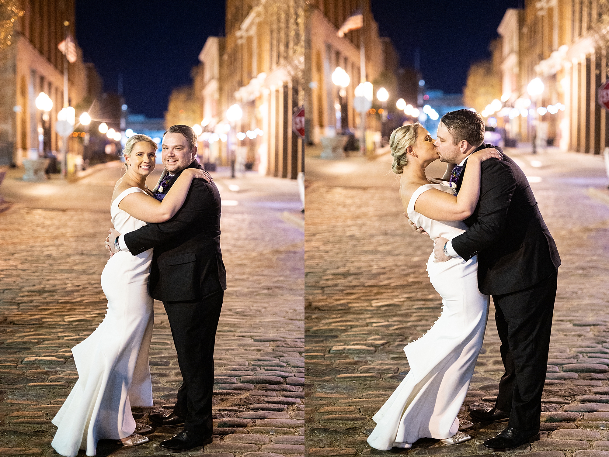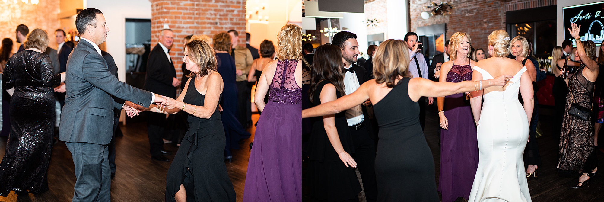 During an intimate cocktail hour we took Sami and Matt back outside to the gorgeous landing streets and grabbed some night photos under the lights. It was bitterly cold, but these two were total troopers and braved it! Then it was time to finally announce them in their reception. They did such an amazing job dreaming up and finding the perfect vendors to finalize every single detail of their reception space. From signature cocktails, gorgeous florals and tons of candlelight, it was truly a dream space to welcome all of their guests. Sami and Matt’s friends and family gave heartfelt speeches, they both shared a dance with their parents and then a first dance as husband and wife. The amazing Diamond Empire Band rocked the rest of the night keeping the dance floor full of celebration! It was truly a beautiful winter night for the newlyweds and I am so thankful to have been a part of it. Congratulations Mr. And Mrs. Janes!