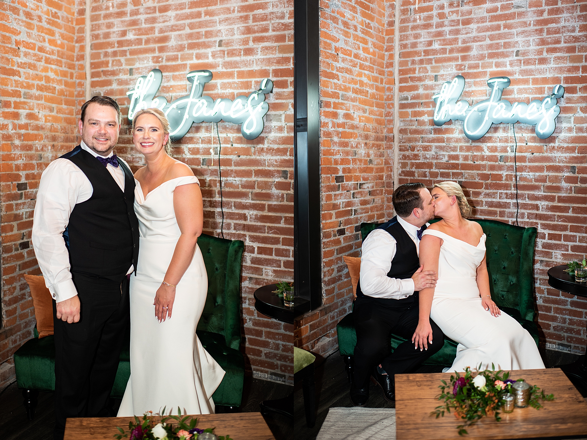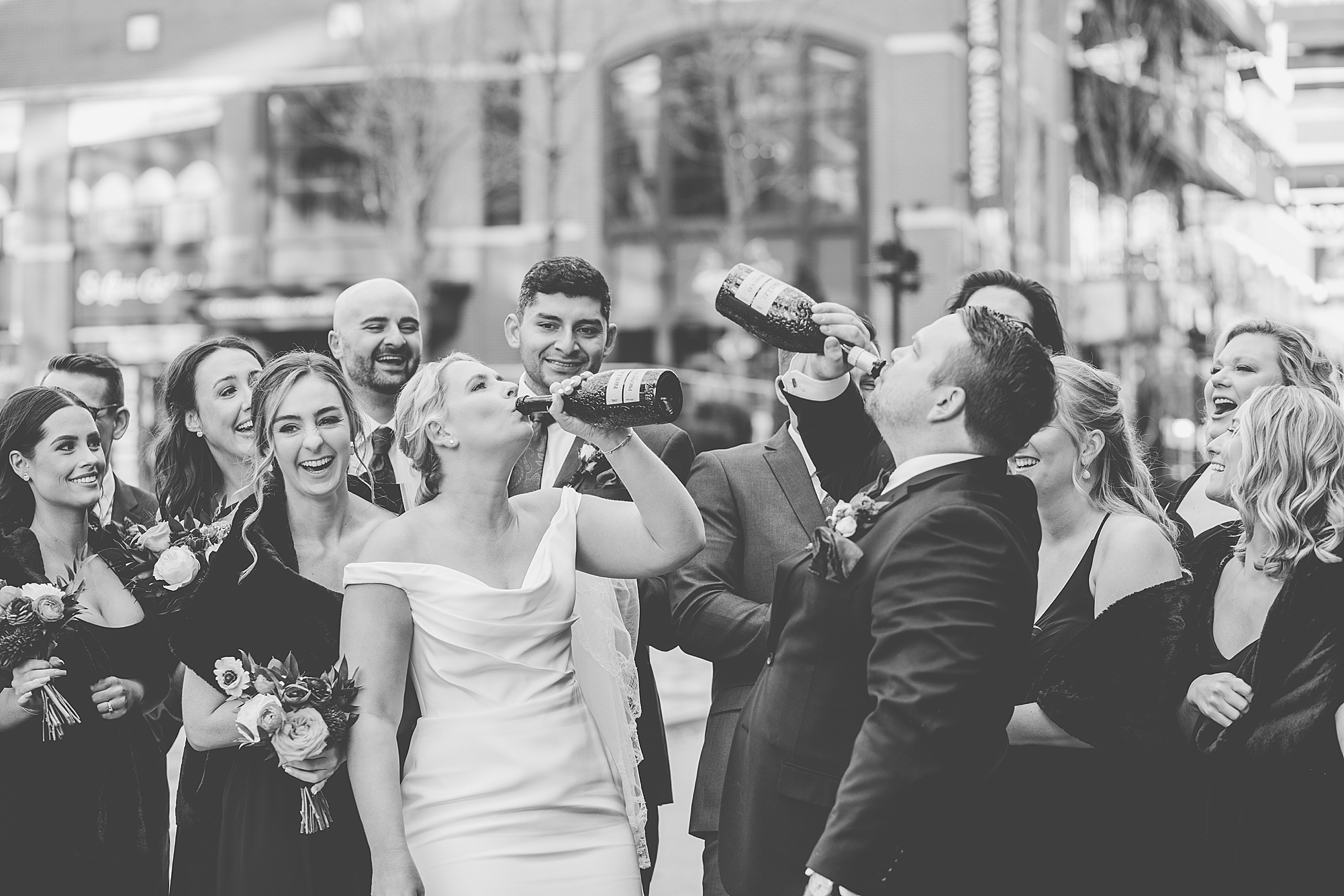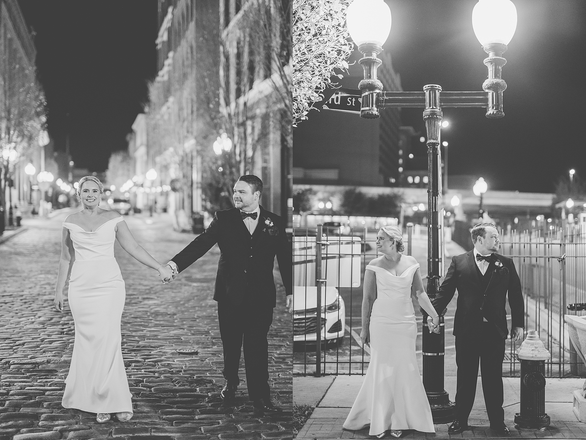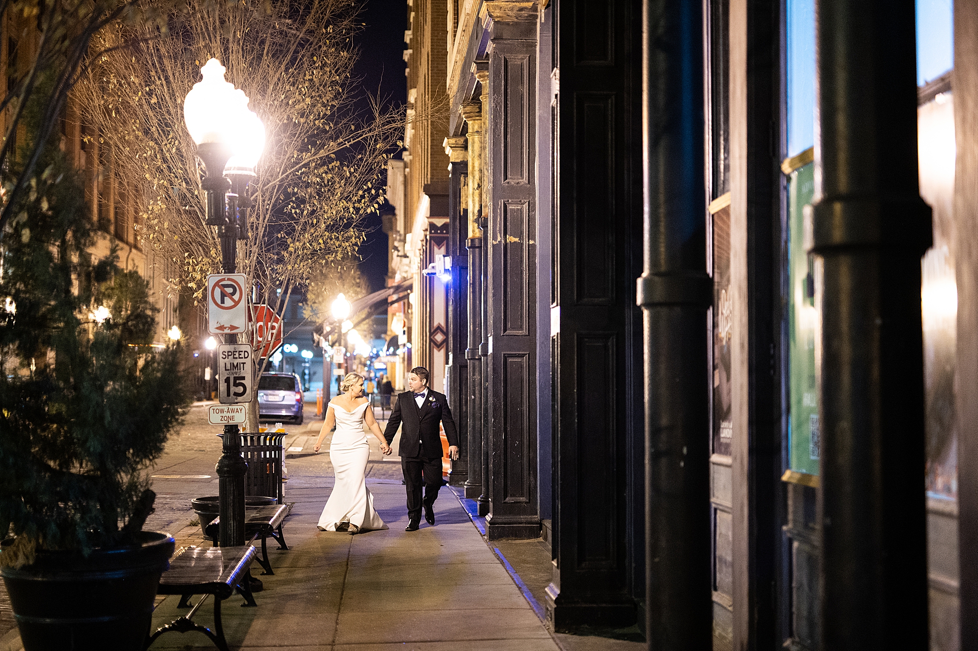 During an intimate cocktail hour we took Sami and Matt back outside to the gorgeous landing streets and grabbed some night photos under the lights. It was bitterly cold, but these two were total troopers and braved it! Then it was time to finally announce them in their reception. They did such an amazing job dreaming up and finding the perfect vendors to finalize every single detail of their reception space. From signature cocktails, gorgeous florals and tons of candlelight, it was truly a dream space to welcome all of their guests. Sami and Matt’s friends and family gave heartfelt speeches, they both shared a dance with their parents and then a first dance as husband and wife. The amazing Diamond Empire Band rocked the rest of the night keeping the dance floor full of celebration! It was truly a beautiful winter night for the newlyweds and I am so thankful to have been a part of it. Congratulations Mr. And Mrs. Janes!