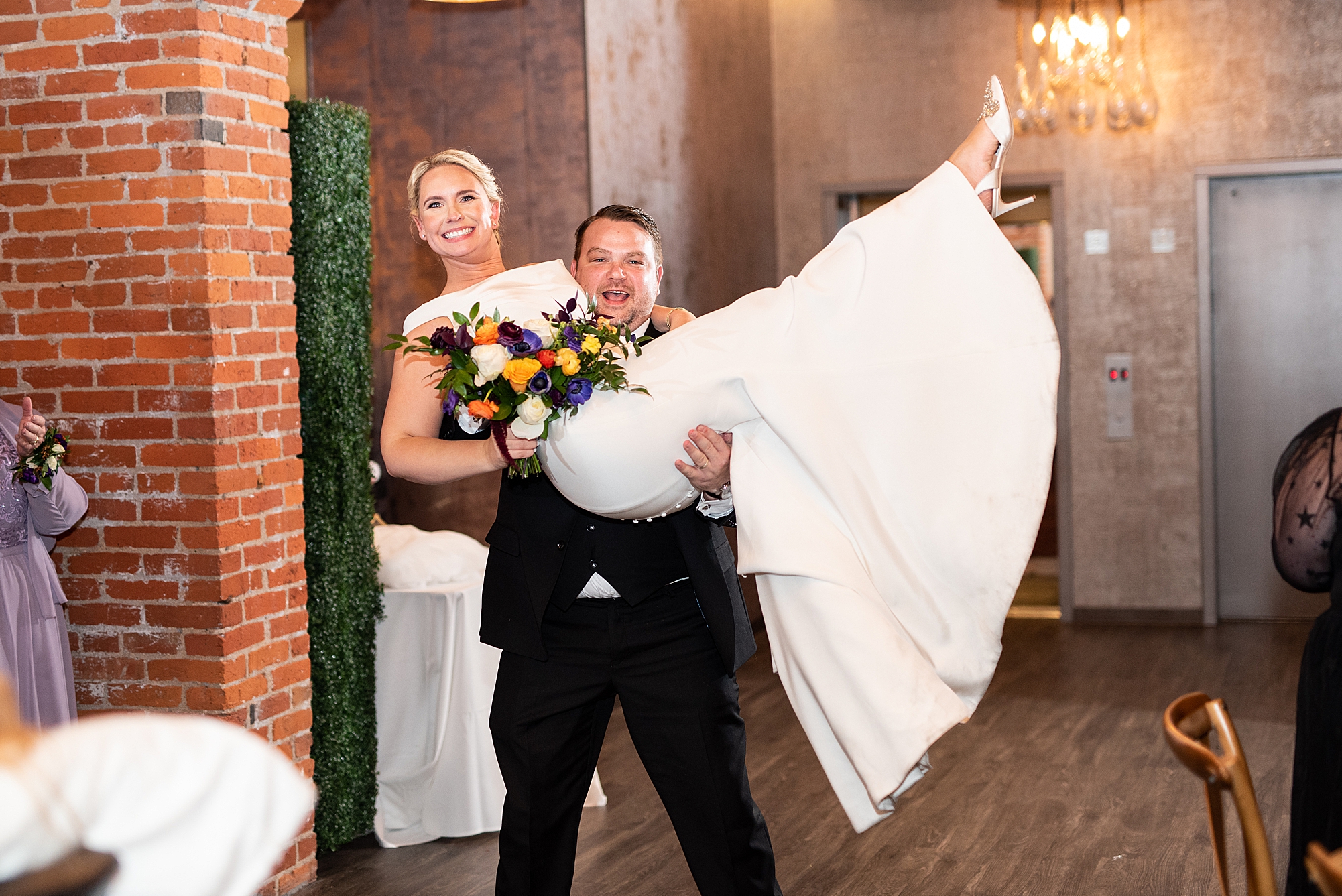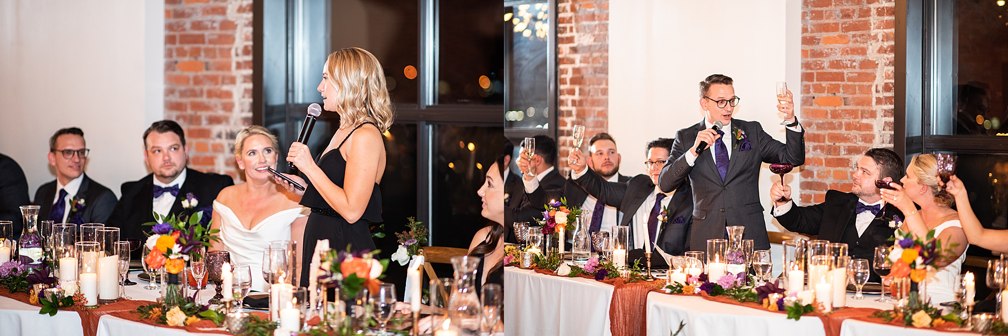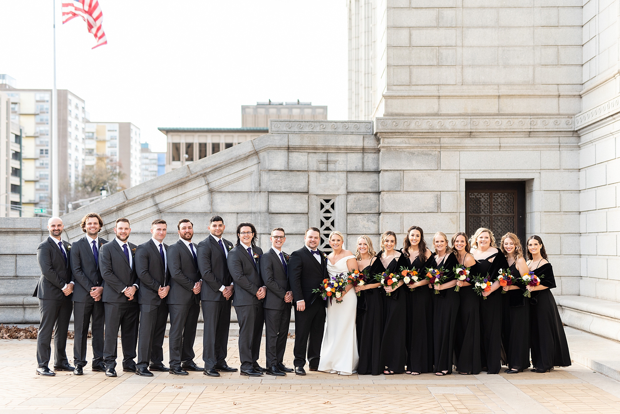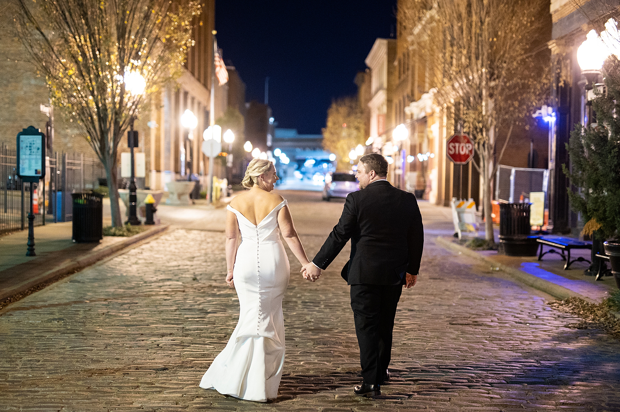 During an intimate cocktail hour we took Sami and Matt back outside to the gorgeous landing streets and grabbed some night photos under the lights. It was bitterly cold, but these two were total troopers and braved it! Then it was time to finally announce them in their reception. They did such an amazing job dreaming up and finding the perfect vendors to finalize every single detail of their reception space. From signature cocktails, gorgeous florals and tons of candlelight, it was truly a dream space to welcome all of their guests. Sami and Matt’s friends and family gave heartfelt speeches, they both shared a dance with their parents and then a first dance as husband and wife. The amazing Diamond Empire Band rocked the rest of the night keeping the dance floor full of celebration! It was truly a beautiful winter night for the newlyweds and I am so thankful to have been a part of it. Congratulations Mr. And Mrs. Janes!