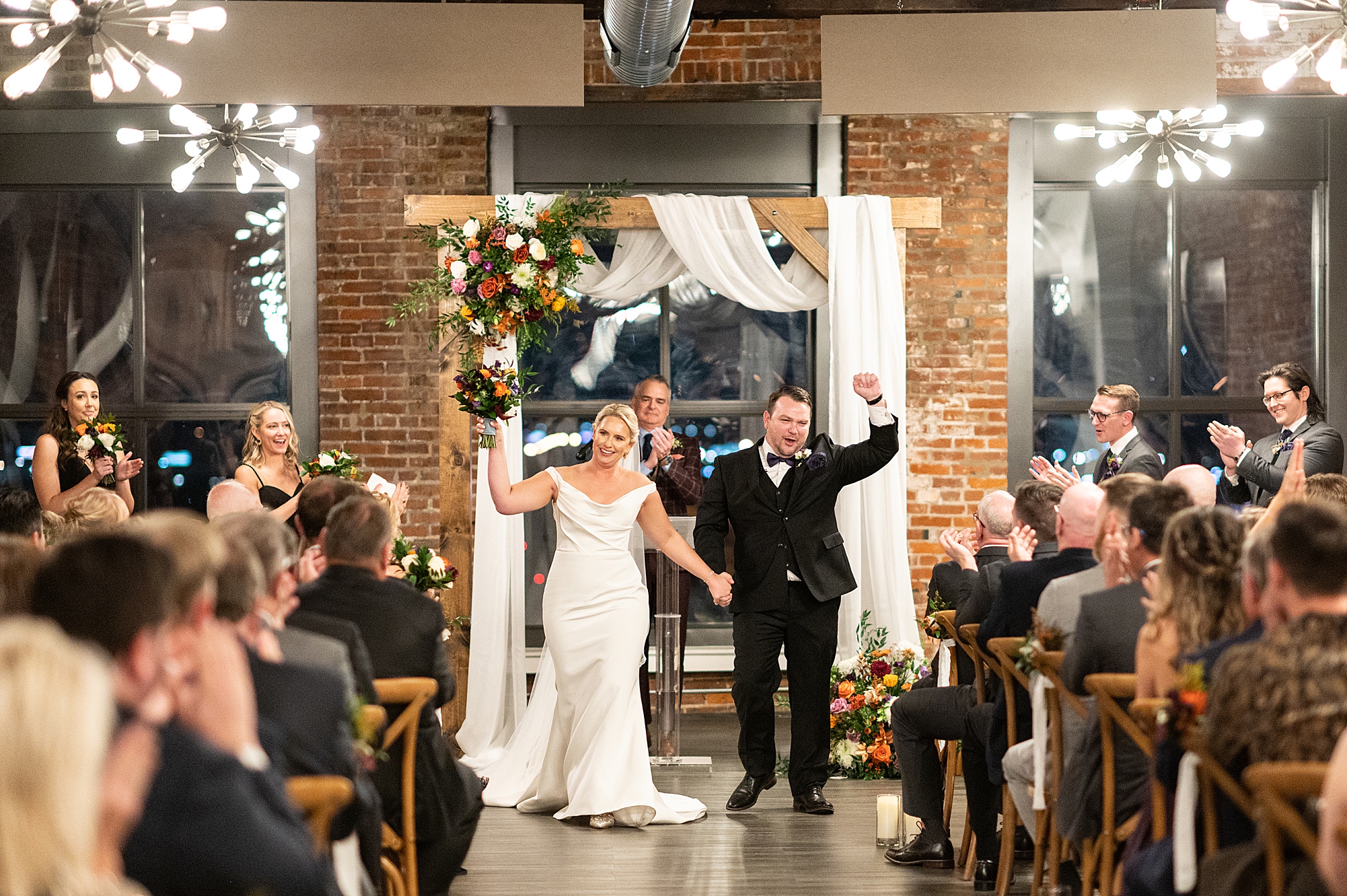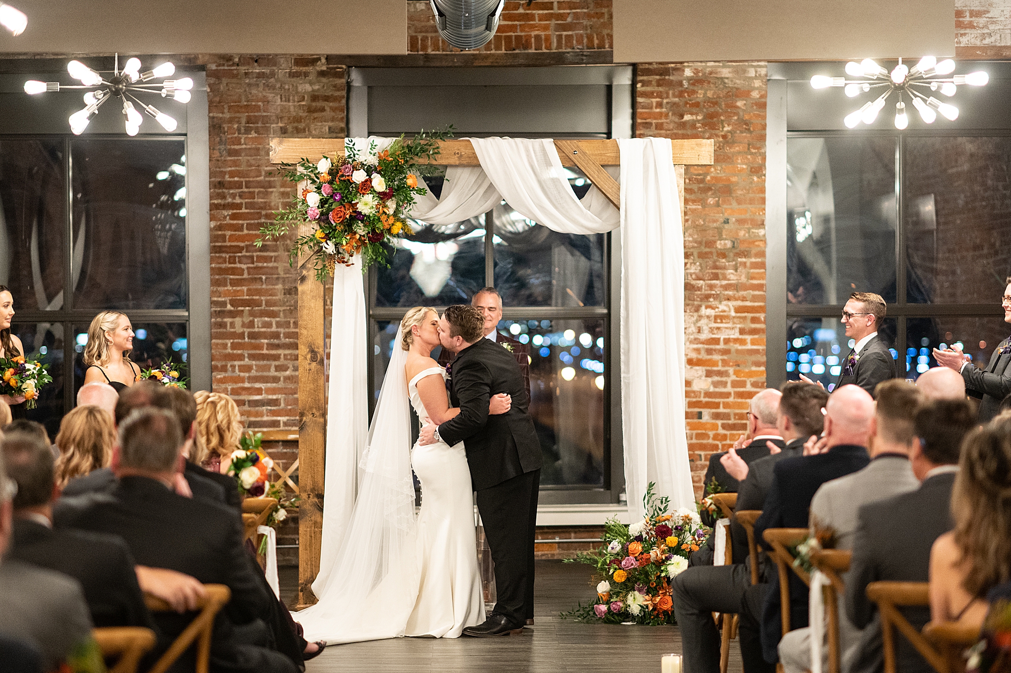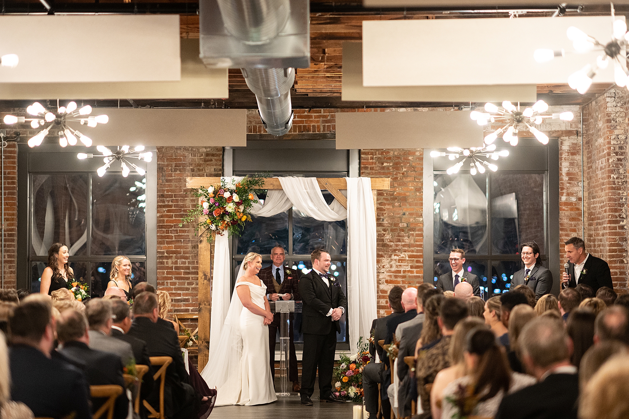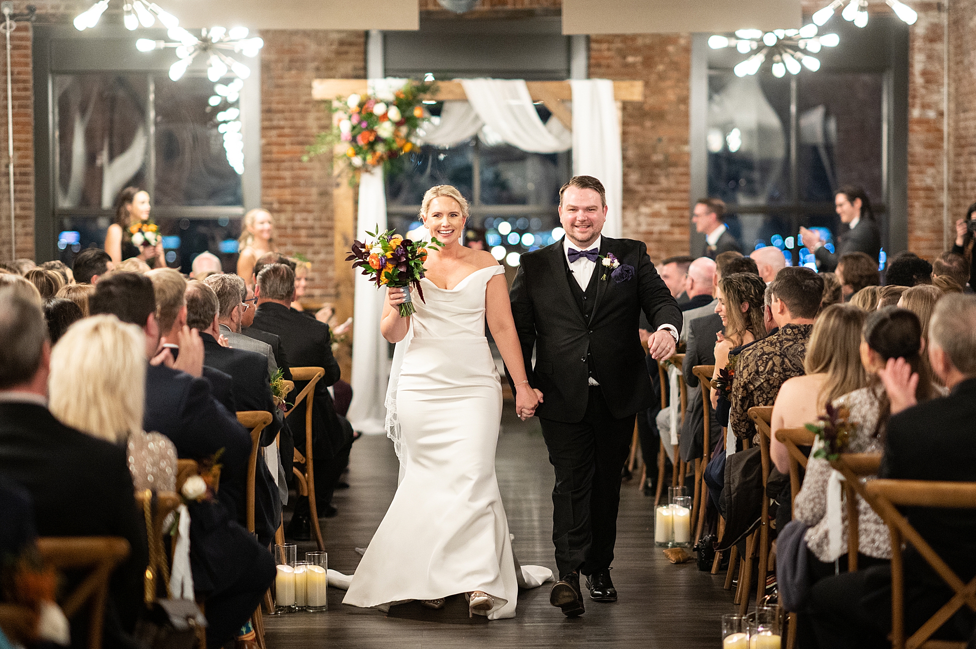 Our last stop was to 612 North, their gorgeous wedding venue on the St. Louis landing. The ceremony was so perfectly full of candle light and all of the people who love Sami and Matt. Matt had a huge smile of his face as Sami’s dad walked her down the aisle to give her away. Their family friend officiated a sweet ceremony and officially married them as Mr. and Mrs. Janes! They danced back down the aisle with huge smiles on their faces!
