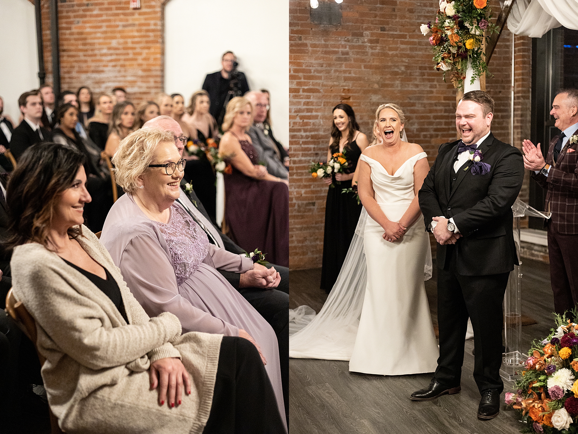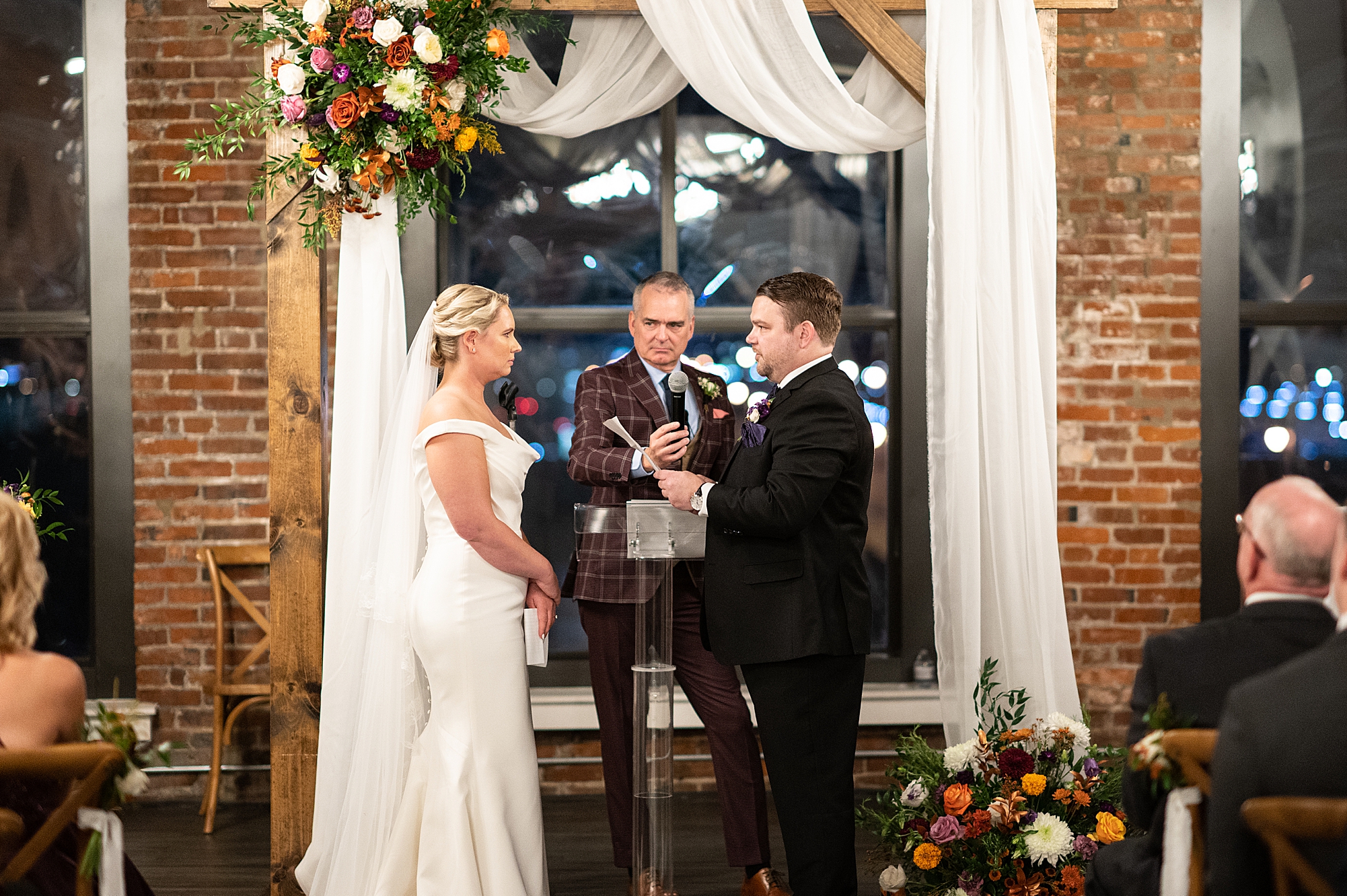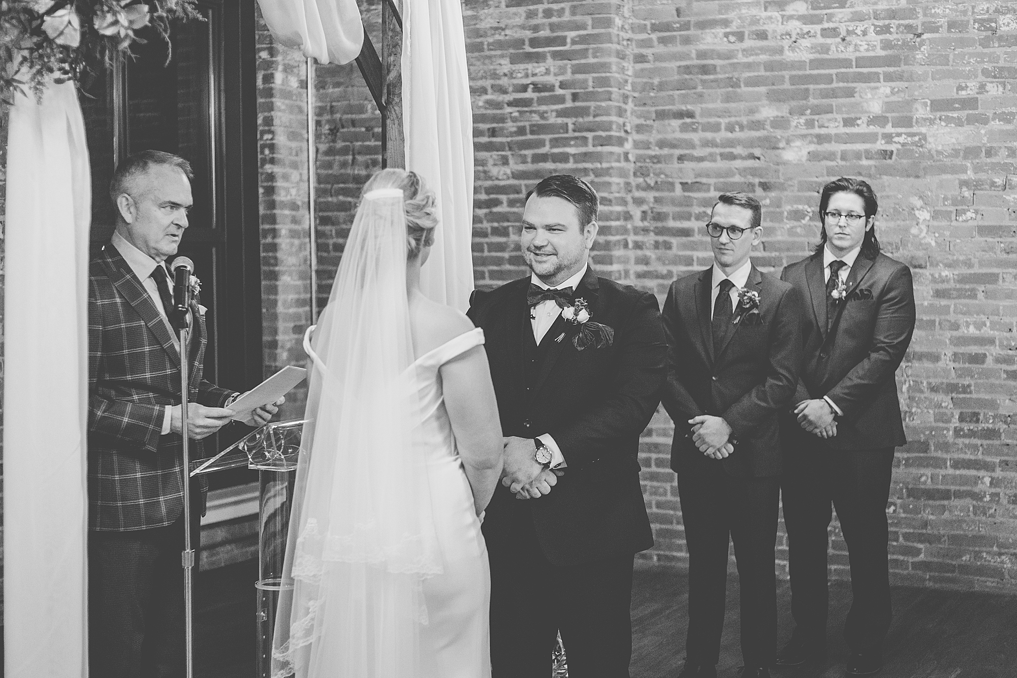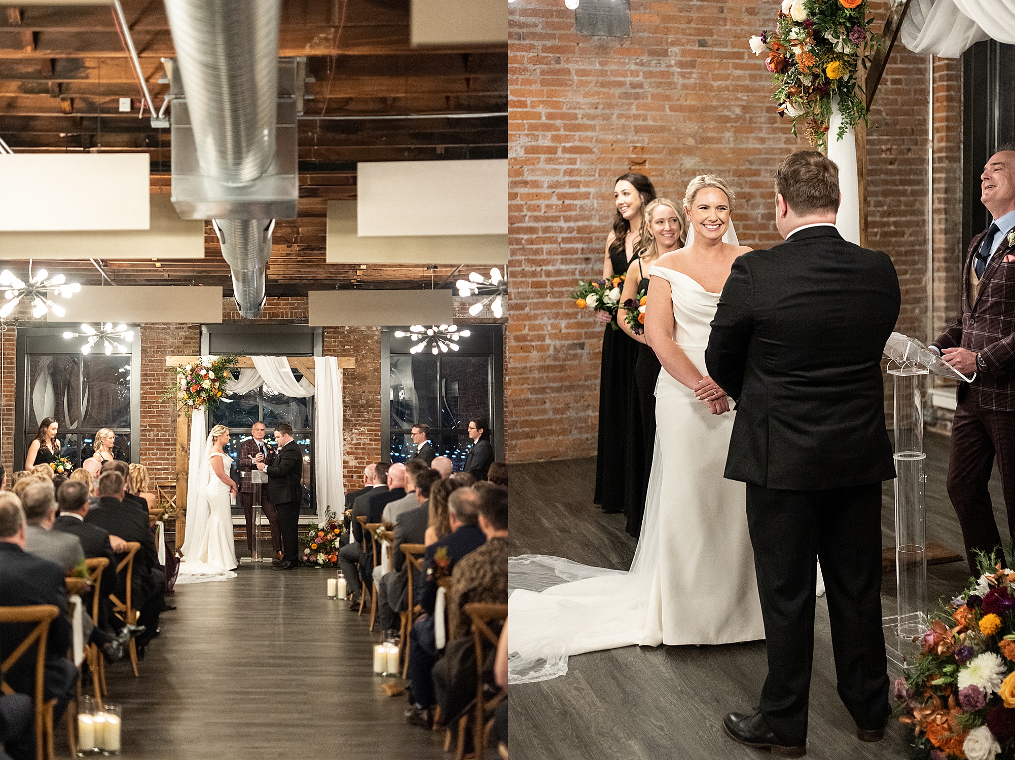 Our last stop was to 612 North, their gorgeous wedding venue on the St. Louis landing. The ceremony was so perfectly full of candle light and all of the people who love Sami and Matt. Matt had a huge smile of his face as Sami’s dad walked her down the aisle to give her away. Their family friend officiated a sweet ceremony and officially married them as Mr. and Mrs. Janes! They danced back down the aisle with huge smiles on their faces!