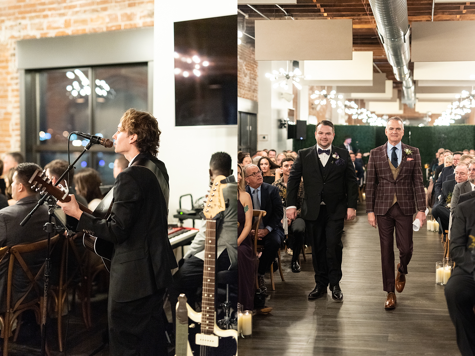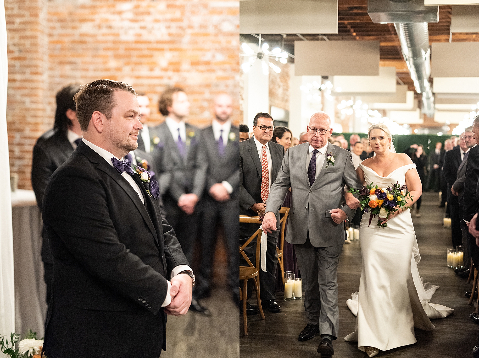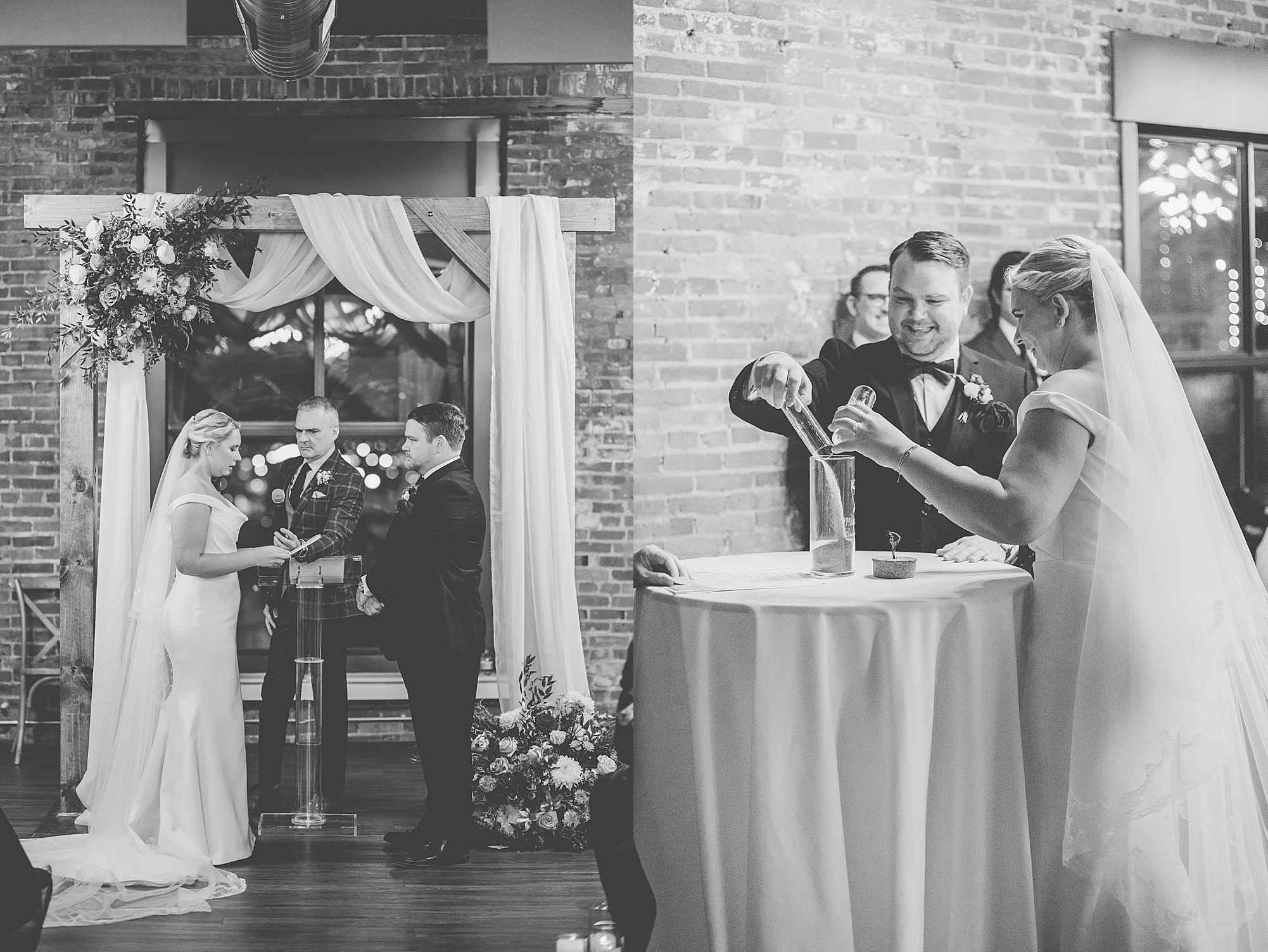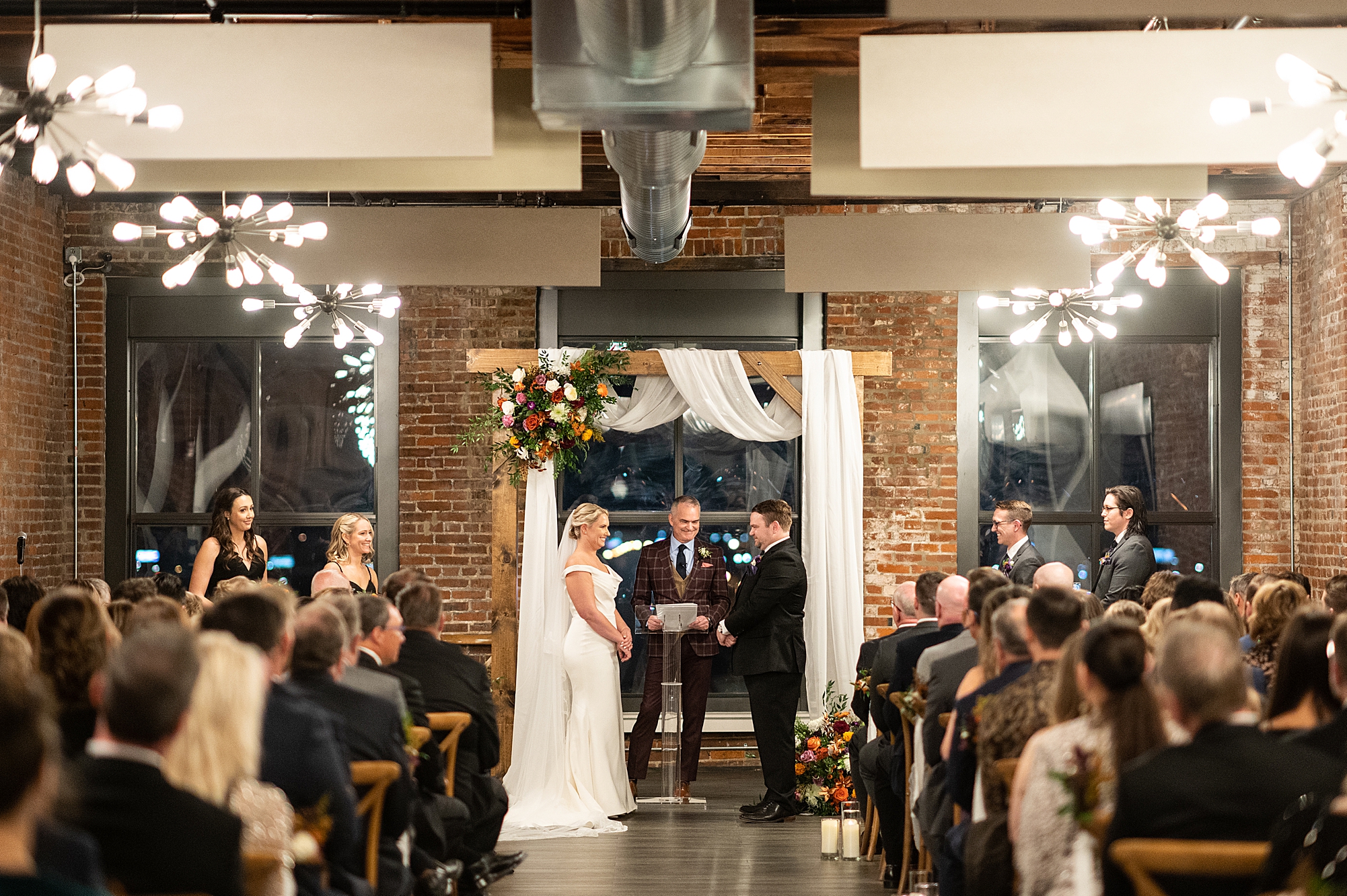 Our last stop was to 612 North, their gorgeous wedding venue on the St. Louis landing. The ceremony was so perfectly full of candle light and all of the people who love Sami and Matt. Matt had a huge smile of his face as Sami’s dad walked her down the aisle to give her away. Their family friend officiated a sweet ceremony and officially married them as Mr. and Mrs. Janes! They danced back down the aisle with huge smiles on their faces!