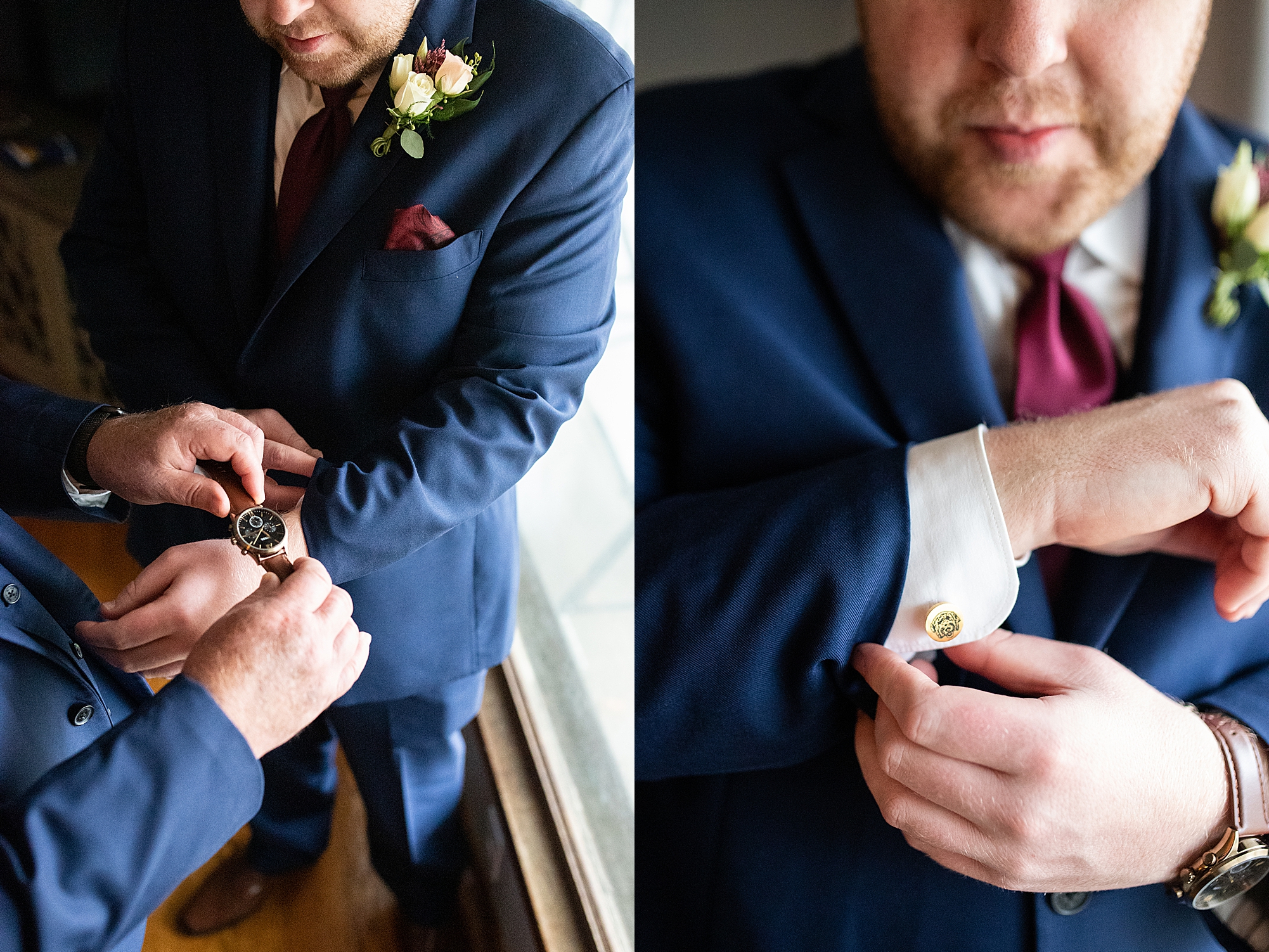Sarah and Chris are absolutely adorable together. Their entire wedding day was so laid back and fun, I just loved capturing them together surrounded by all of their friends a family. They did such a great job planning out every little detail! From the colors, to the gorgeous florals down to Chris’ cuff links with their adorable puppy on them, they did not leave a single thing out.