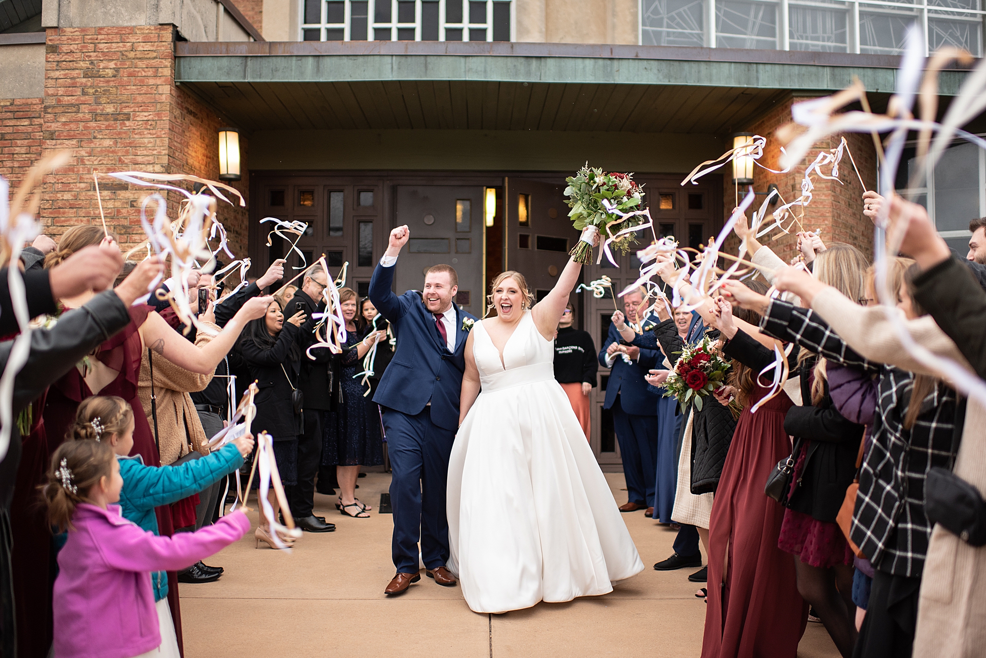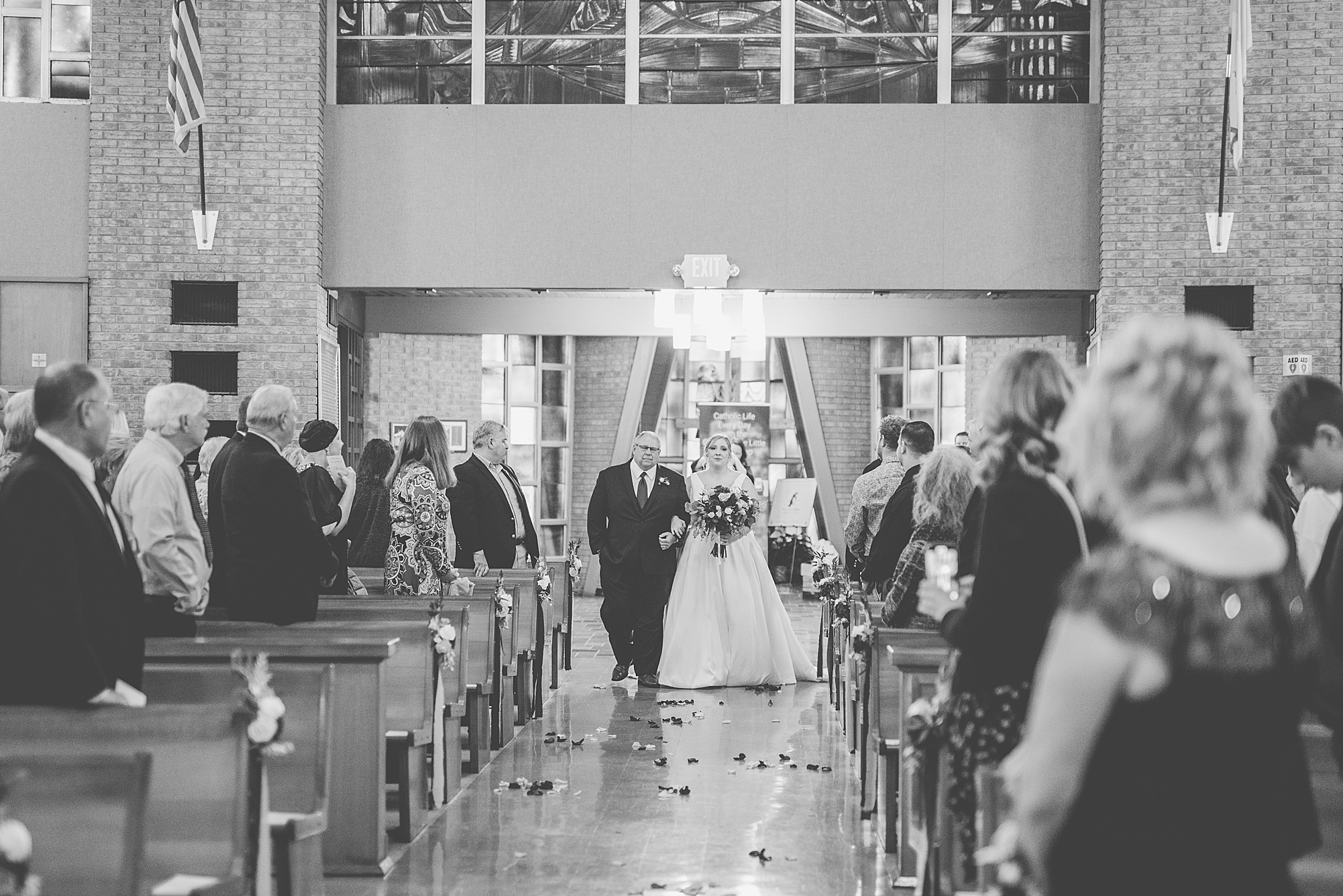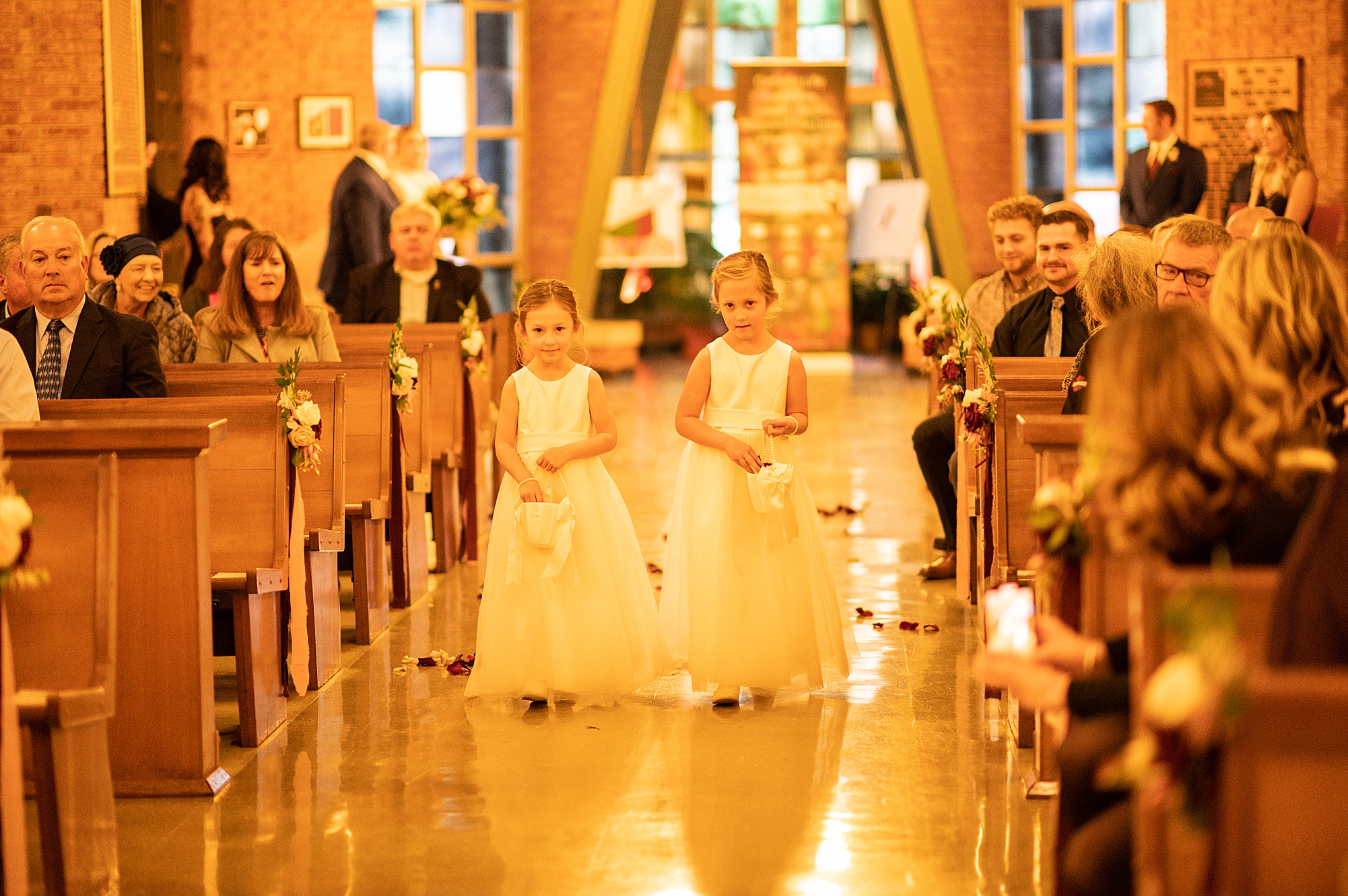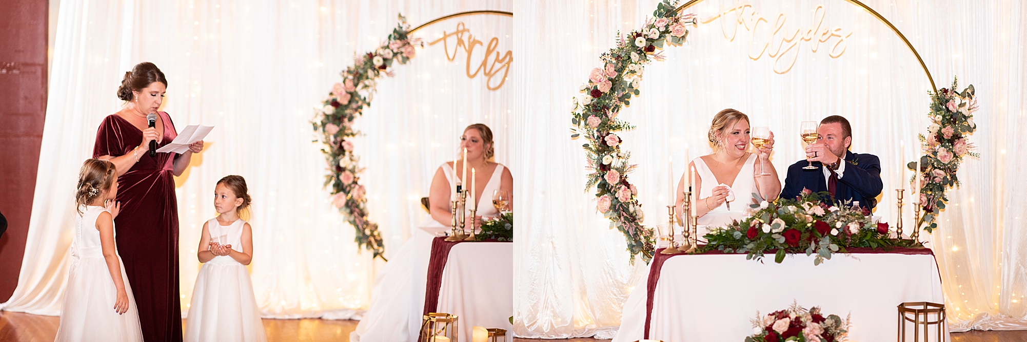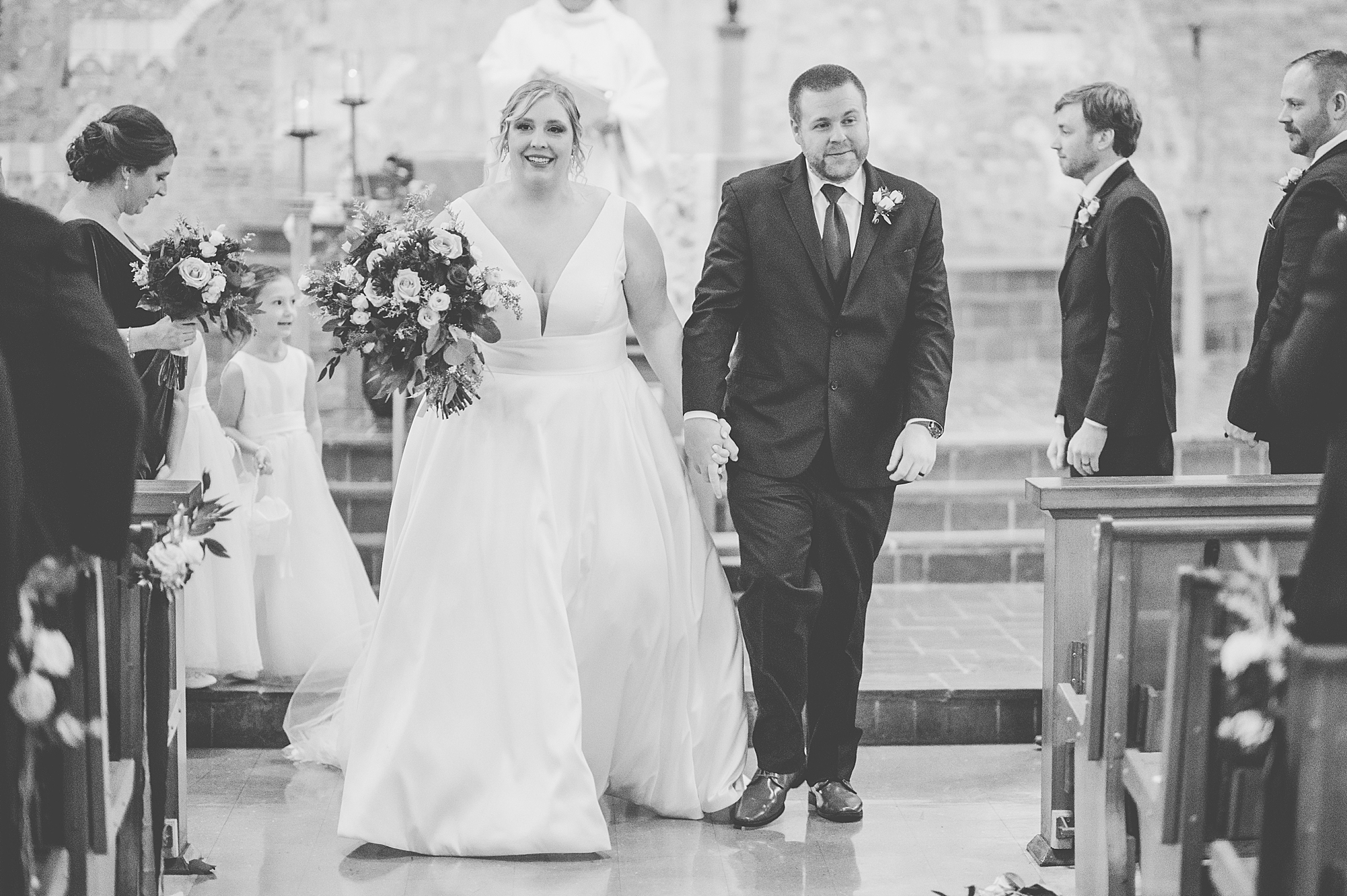 Sarah grew up at Little Flower Church, so it was so important to her to have her dad walk her down that aisle and give her away to her forever person. Her adorable nieces, who Sarah is very close to, came before them and dropped flower petals for her to walk over. Their ceremony was absolutely beautiful as Sarah and Chris promised their vows to each other and exchanged rings. They shared their first kiss as husband and wife and walked back down the aisle officially as the Clydes!