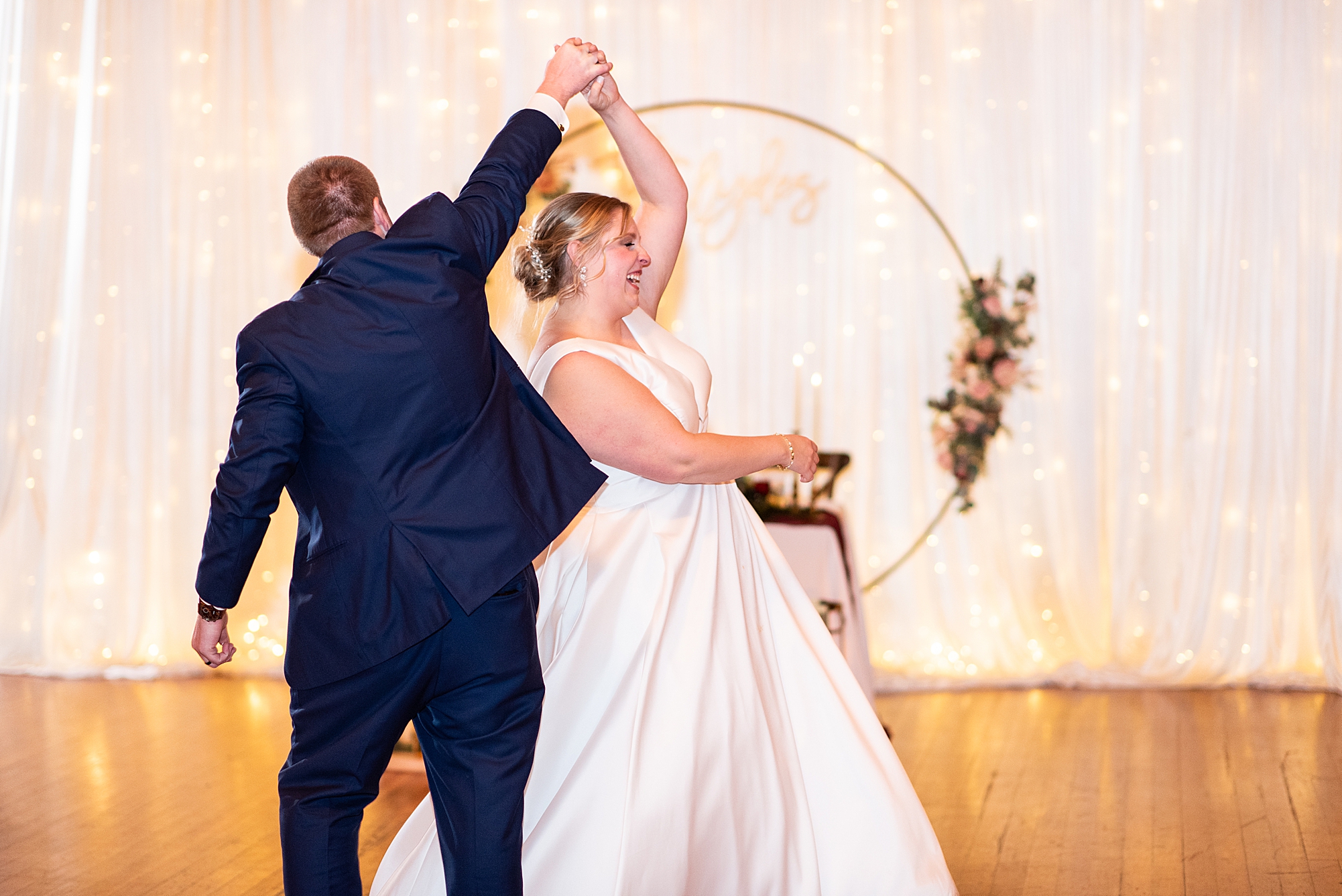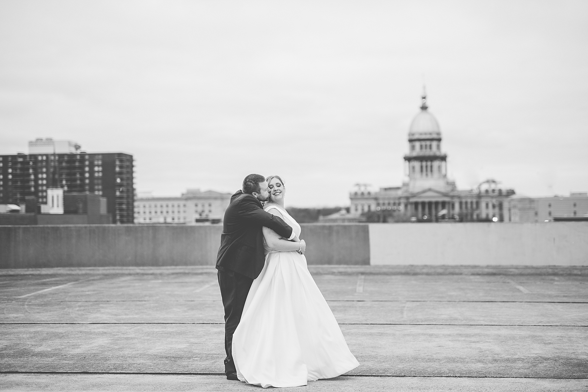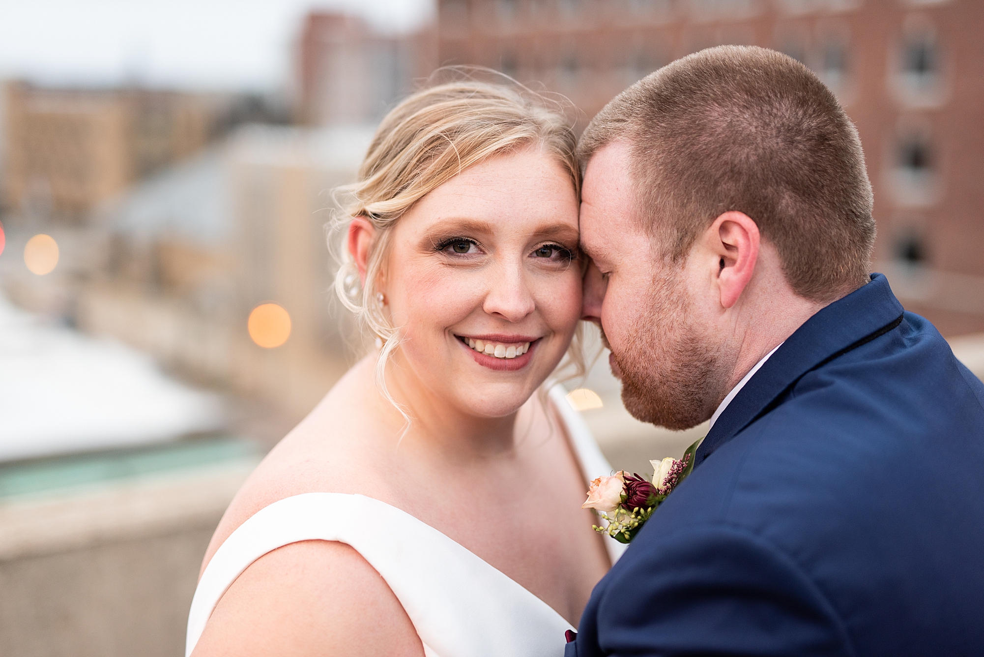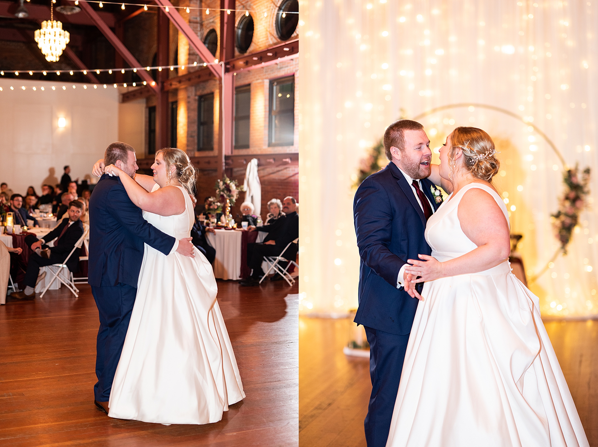 After the ceremony, Sarah and Chris loaded up their bridal party and we headed downtown Springfield for a couple more portraits of them as newlyweds. We stopped at their favorite downtown bar and even climbed a rooftop for a gorgeous cityscape! Chris did such a great job making Sarah laugh and they truly enjoyed spending every moment of their day together! Then, it was finally time to head to their reception to continue their celebration! The Artisans building was packed with all of their guests eager to welcome the newlyweds. Sarah and Chris decorated the venue so perfectly with candle light and so many gorgeous floral details. Everyone truly had such a great night dancing and celebrating Mr. and Mrs. Clyde! I could not be more honored to have been a part of such a special day for Sarah and Chris and I am so excited to share more from their big day!